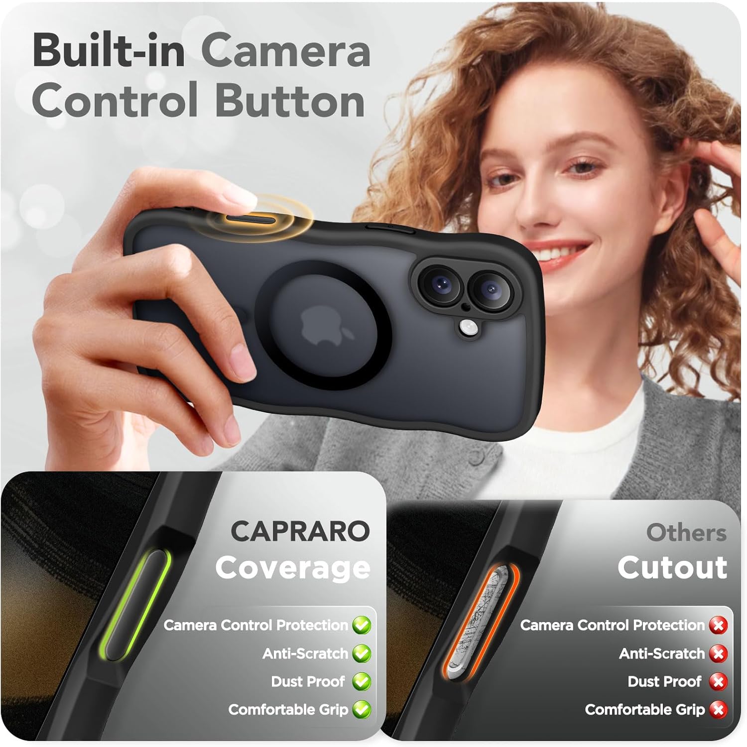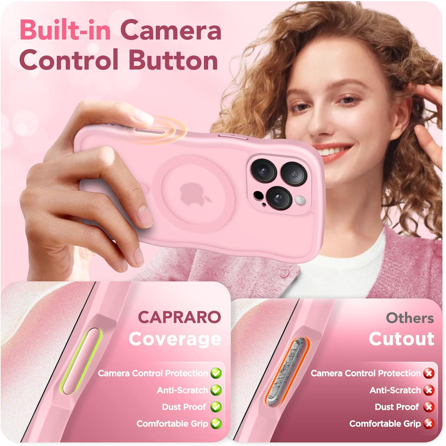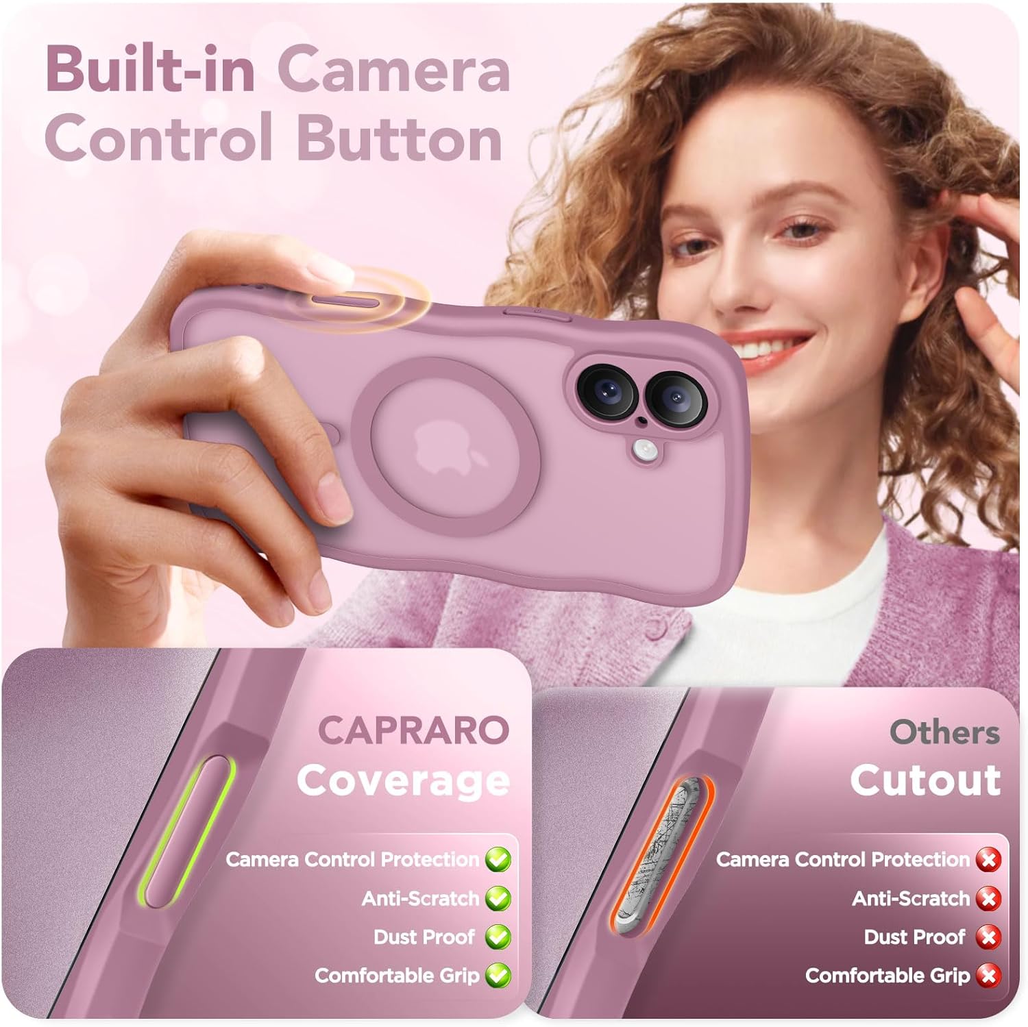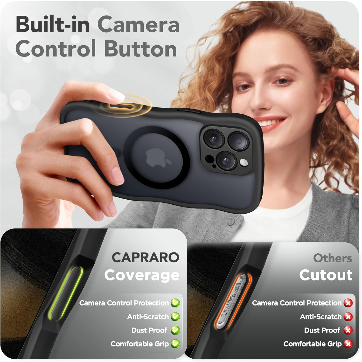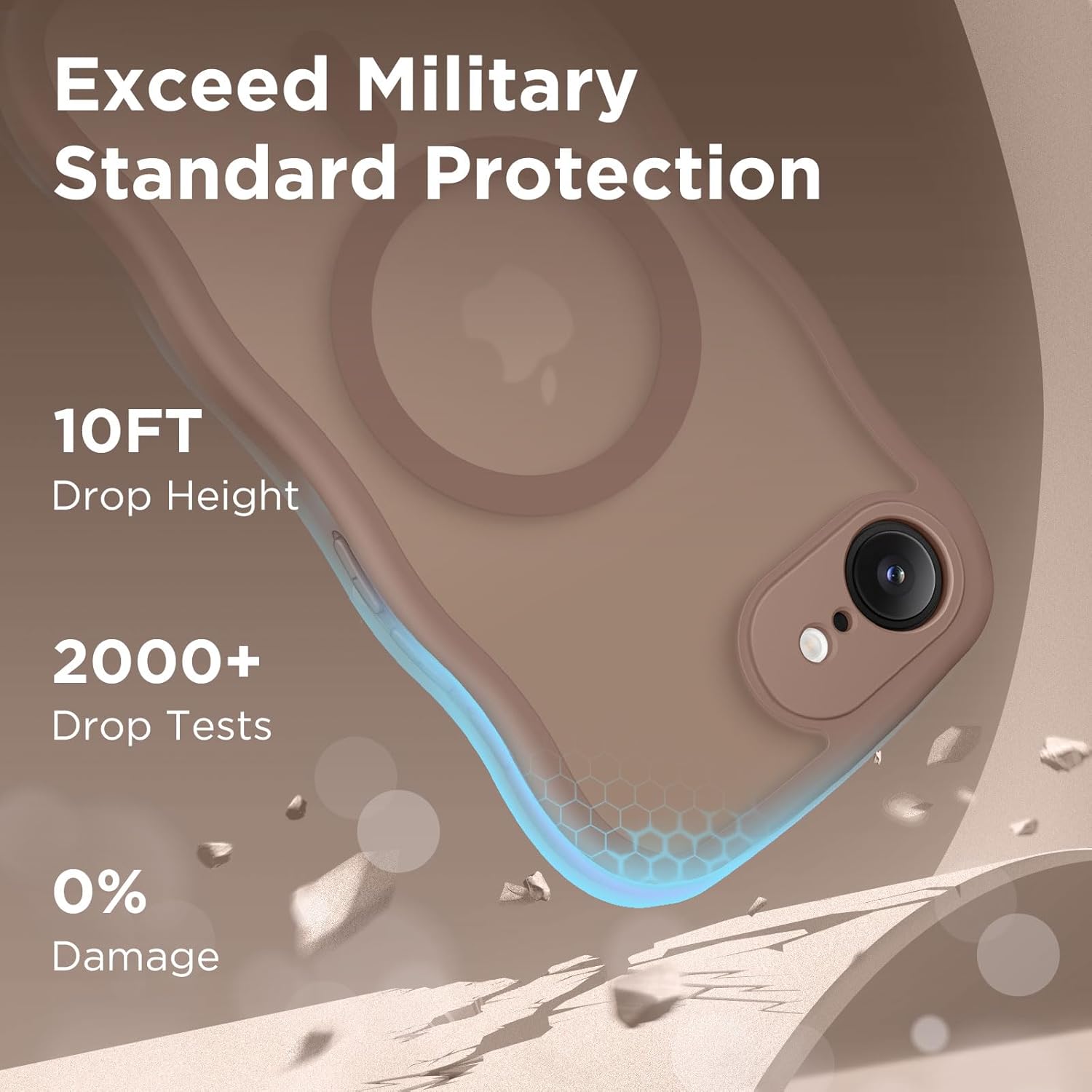 CAPRARO 适用于 iPhone 16 Pro 女士女孩手机壳,升级 [全摄像头保护] [兼容 MagSafe] 可爱波浪半透明哑光手机壳适用于 iPhone 16 Pro,棕色