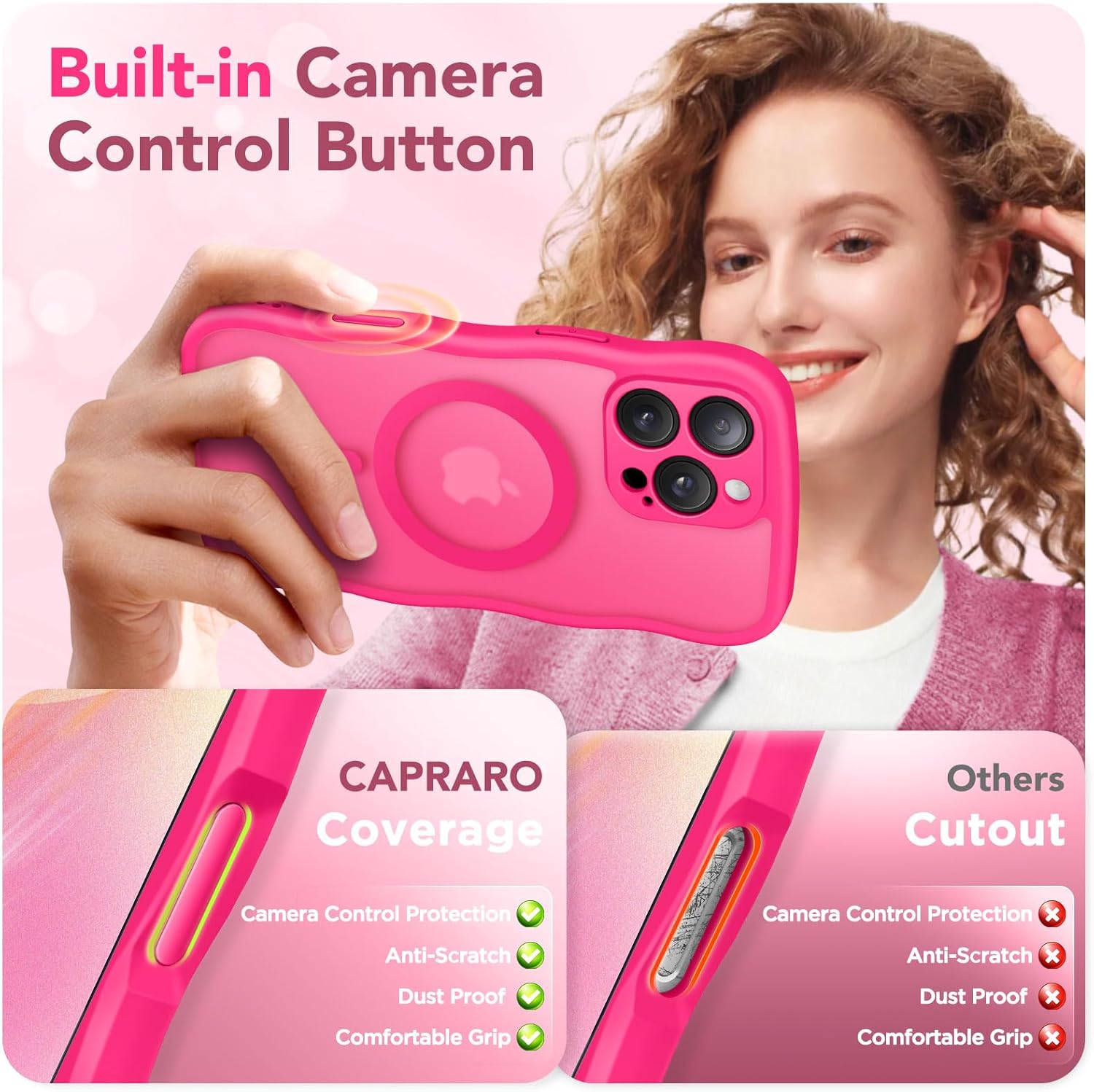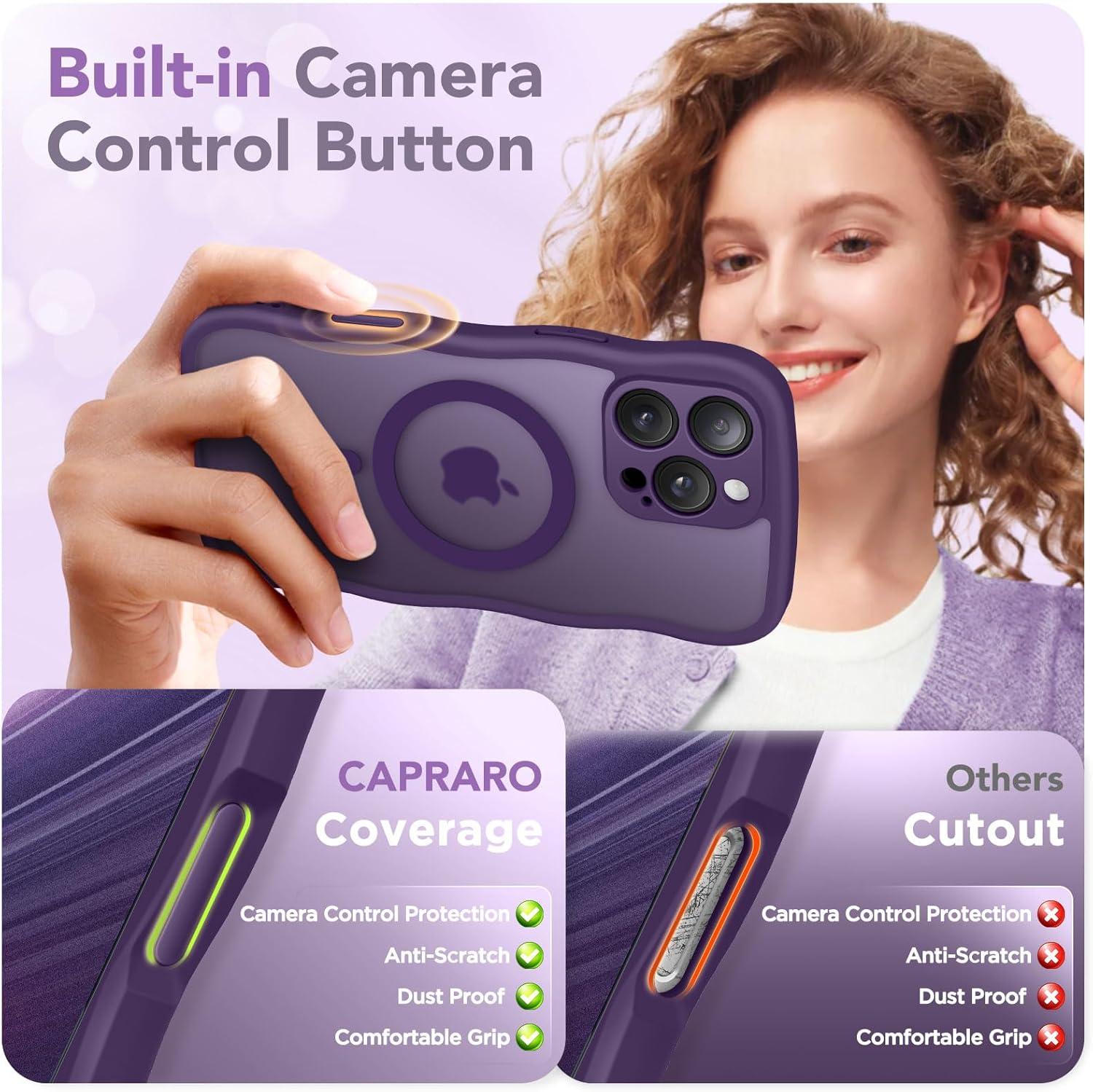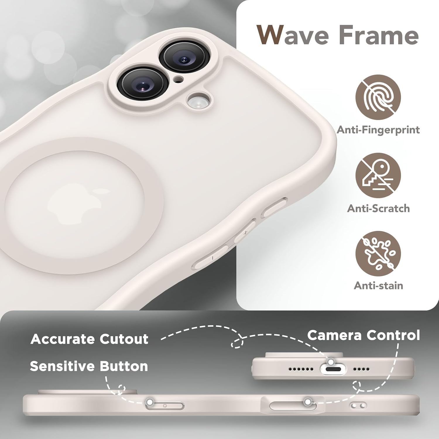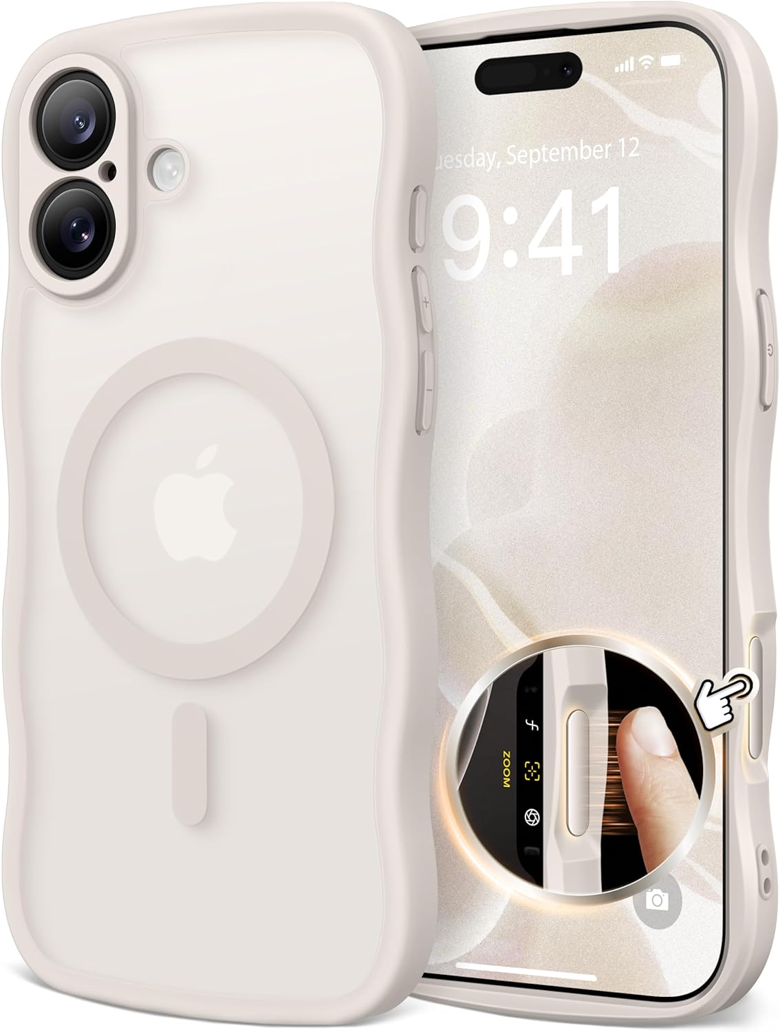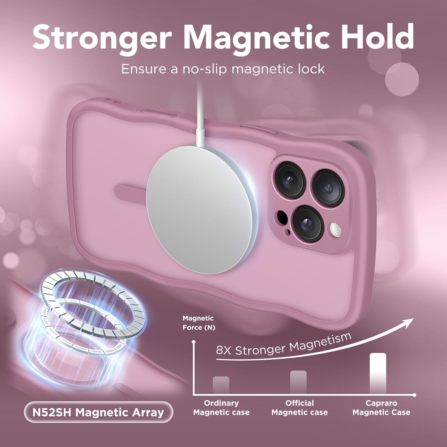 CAPRARO 适用于 iPhone 16 Pro 女士女孩手机壳,升级 [全摄像头保护] [兼容 MagSafe] 可爱波浪半透明哑光手机壳适用于 iPhone 16 Pro,棕色