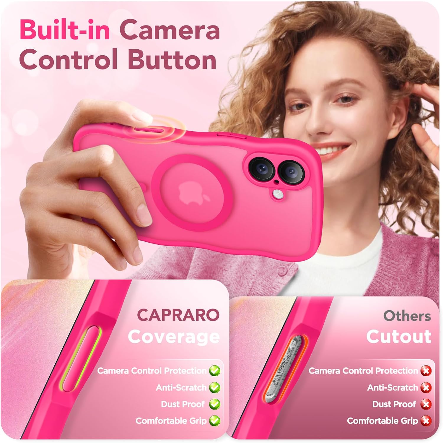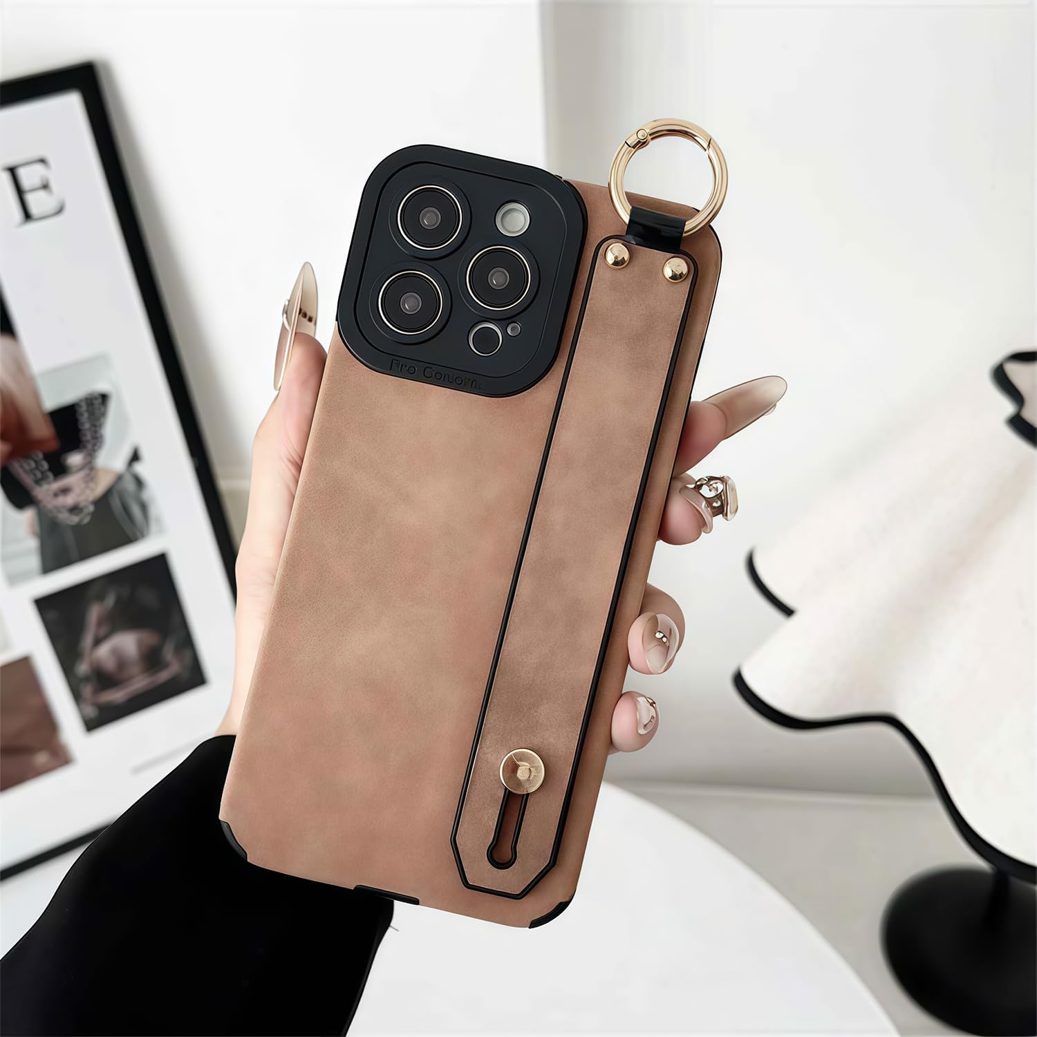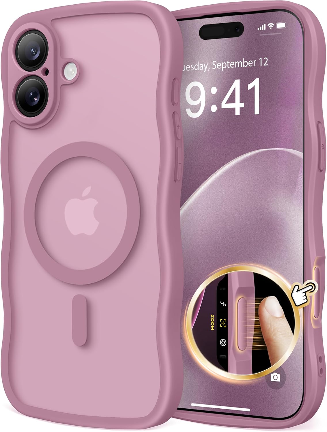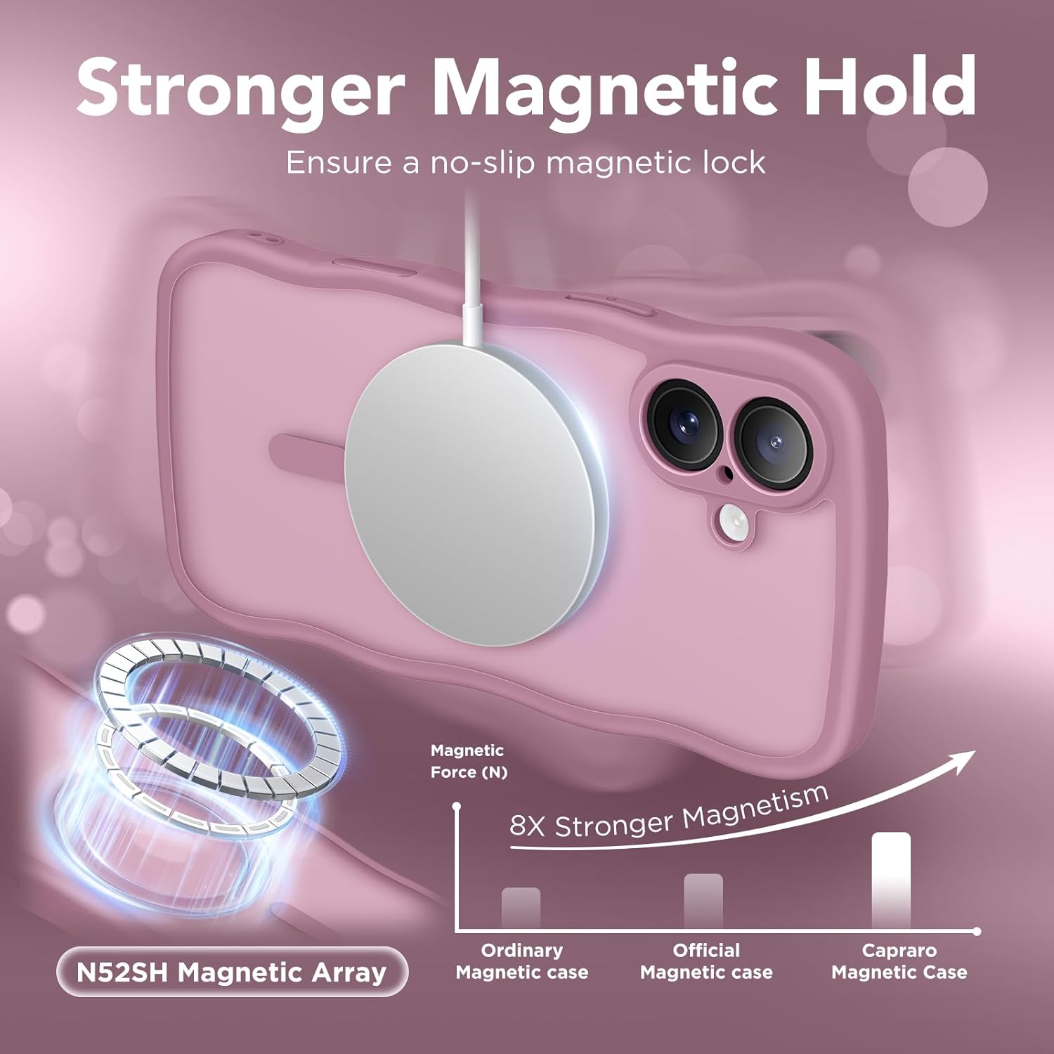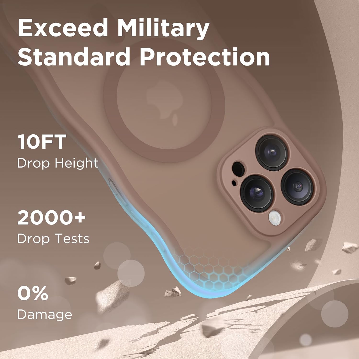 CAPRARO 适用于 iPhone 16 Pro 女士女孩手机壳,升级 [全摄像头保护] [兼容 MagSafe] 可爱波浪半透明哑光手机壳适用于 iPhone 16 Pro,棕色