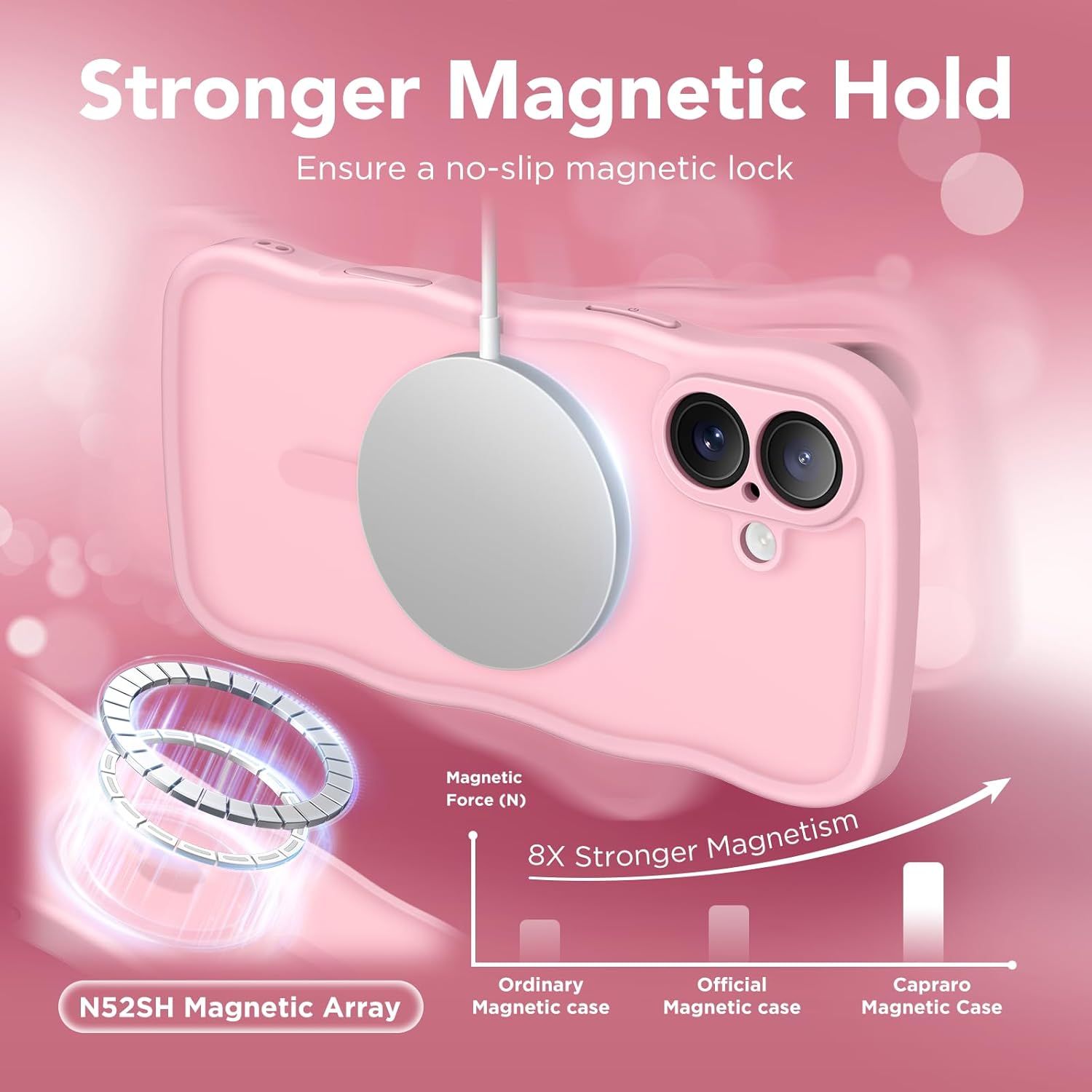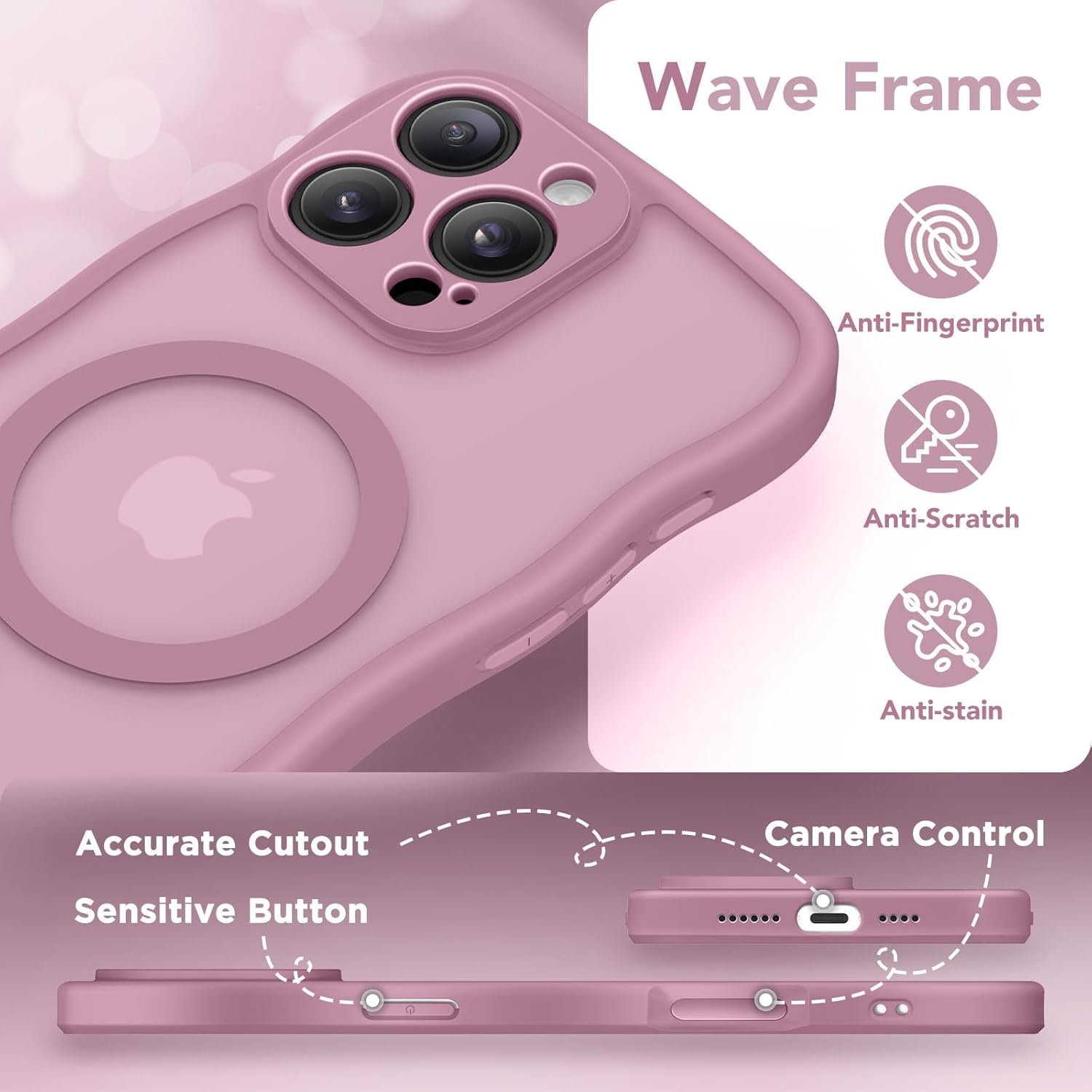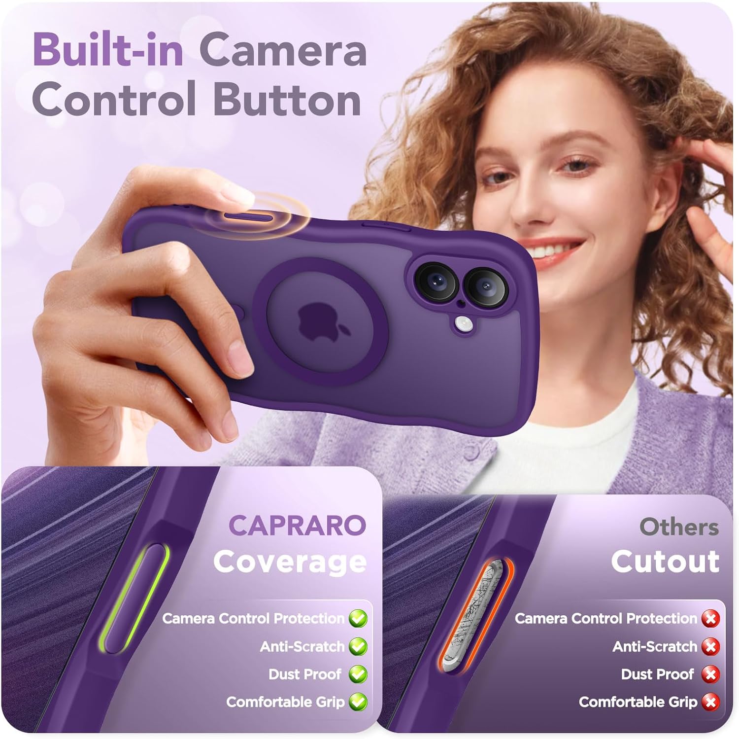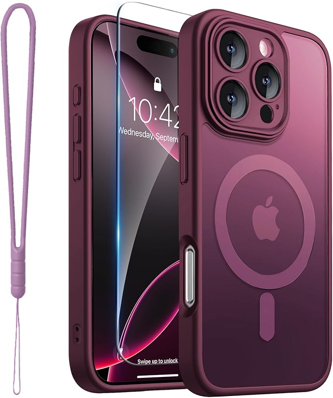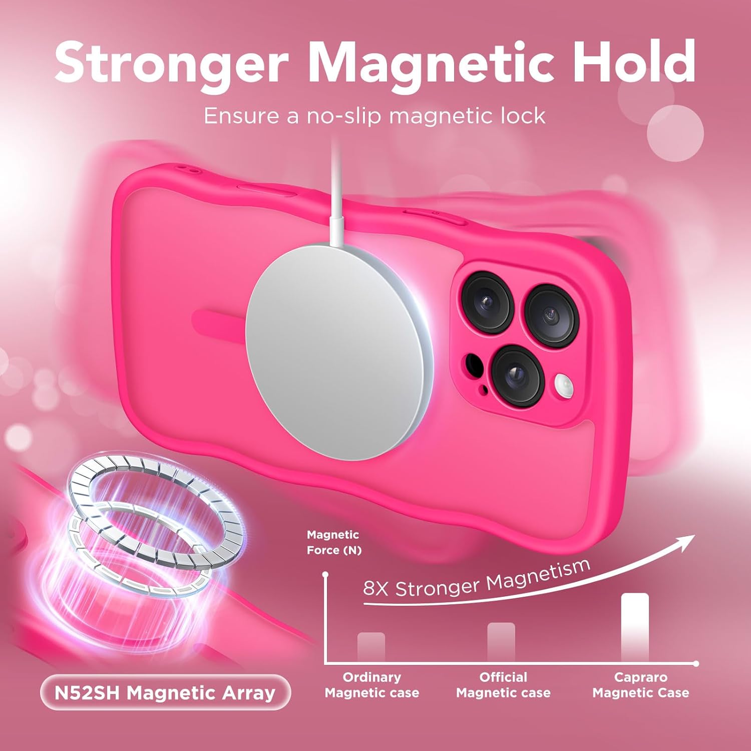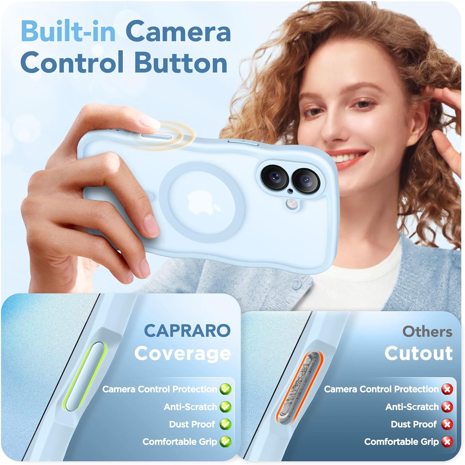 CAPRARO 适用于 iPhone 16 Pro 女士女孩手机壳,升级 [全摄像头保护] [兼容 MagSafe] 可爱波浪半透明哑光手机壳适用于 iPhone 16 Pro,棕色