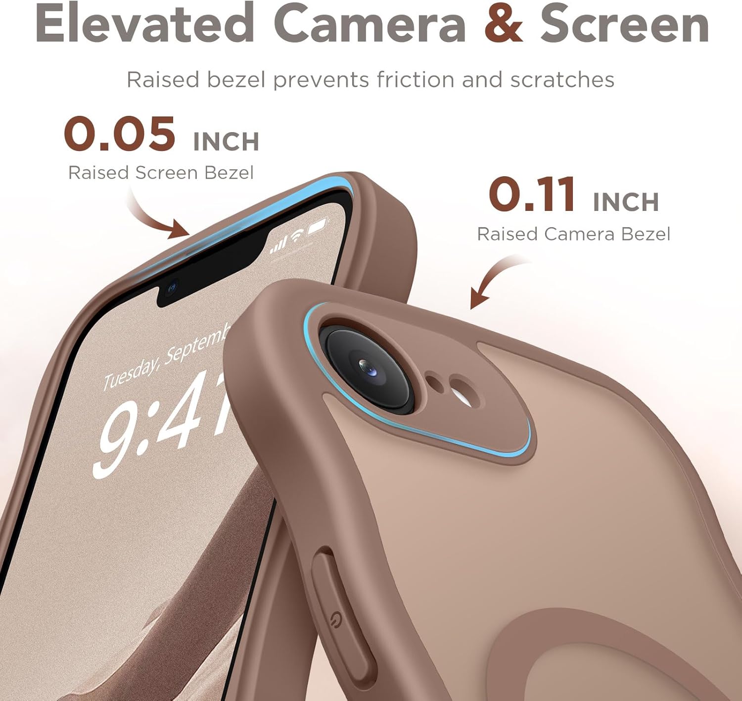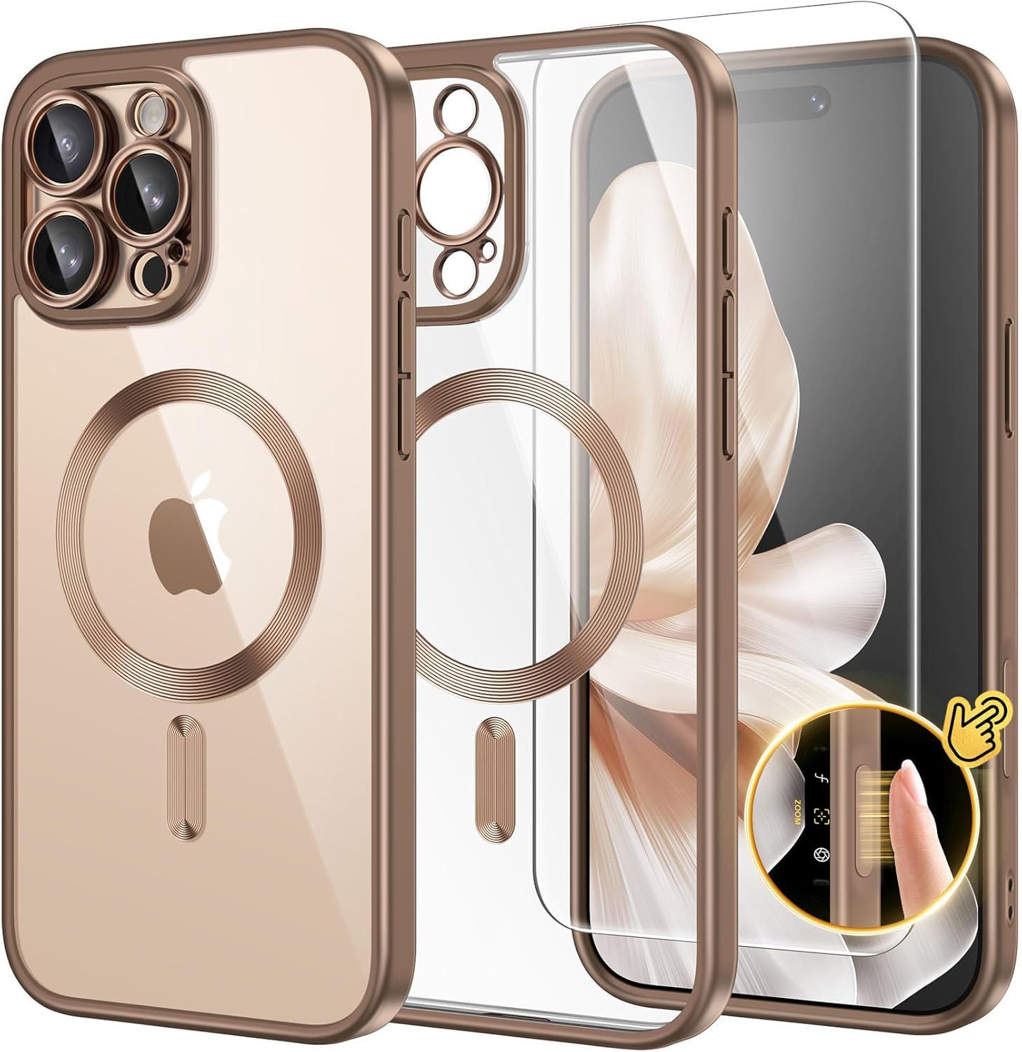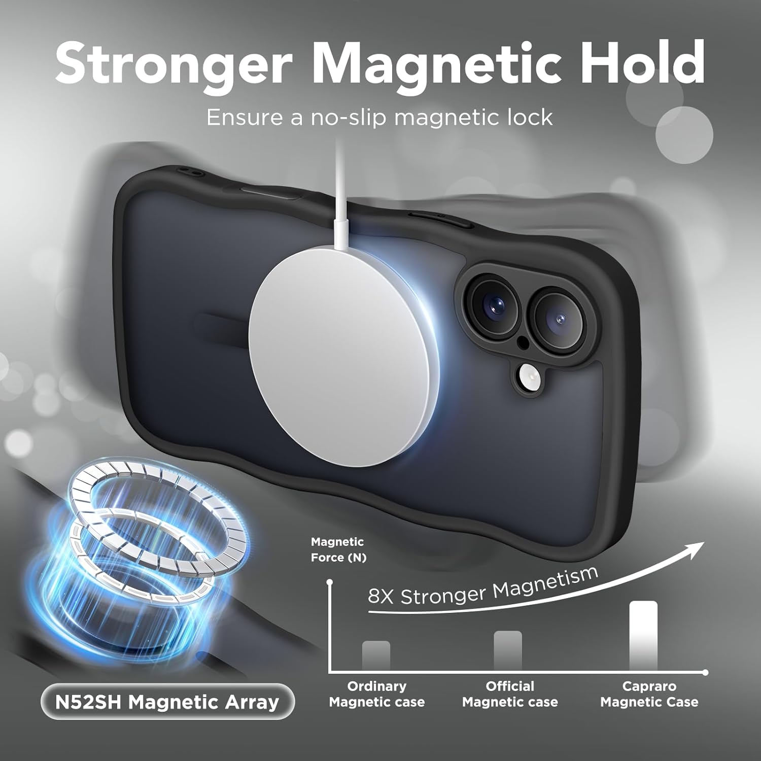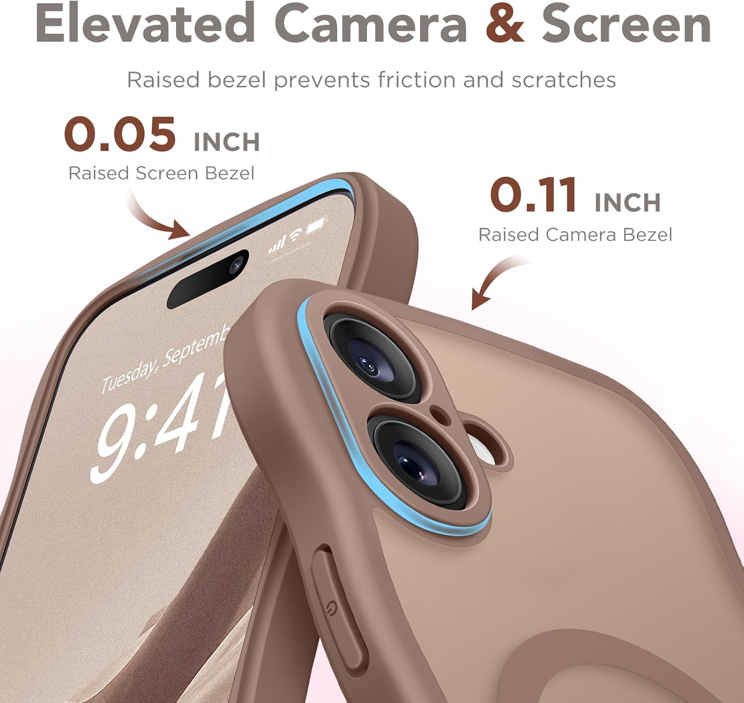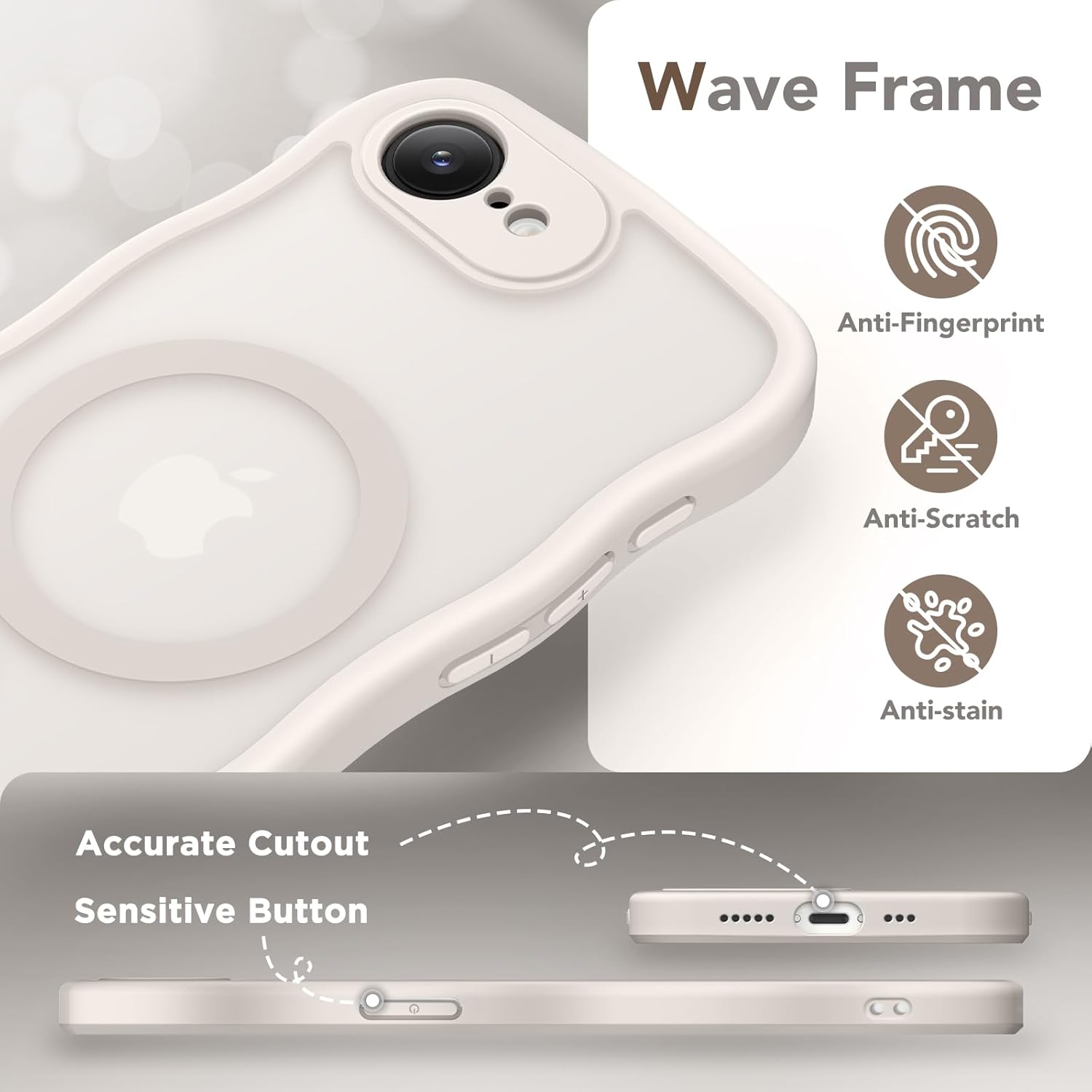 CAPRARO 适用于 iPhone 16 Pro 女士女孩手机壳,升级 [全摄像头保护] [兼容 MagSafe] 可爱波浪半透明哑光手机壳适用于 iPhone 16 Pro,棕色