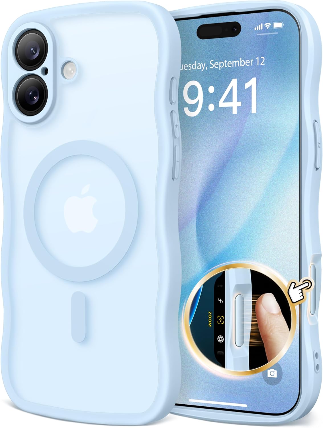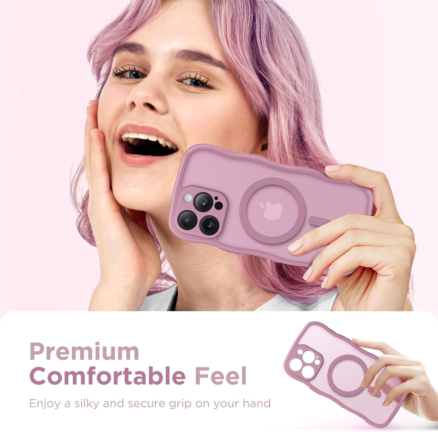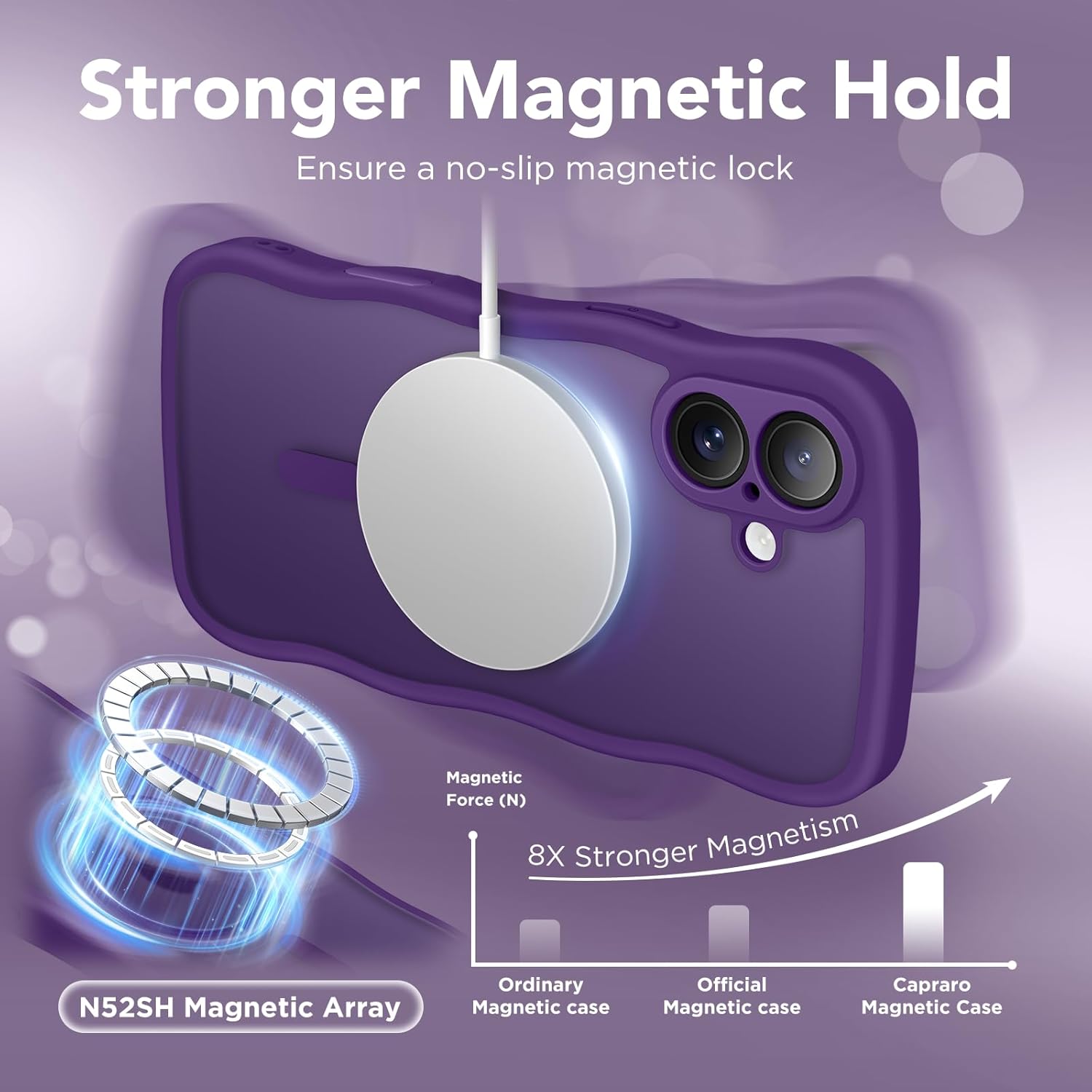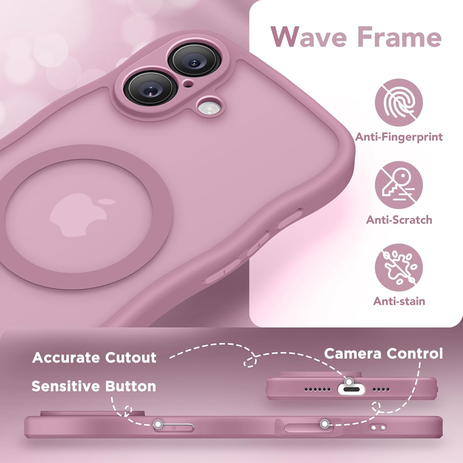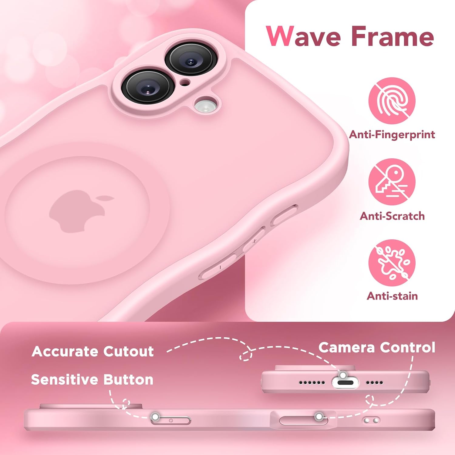 CAPRARO 适用于 iPhone 16 Pro 女士女孩手机壳,升级 [全摄像头保护] [兼容 MagSafe] 可爱波浪半透明哑光手机壳适用于 iPhone 16 Pro,棕色