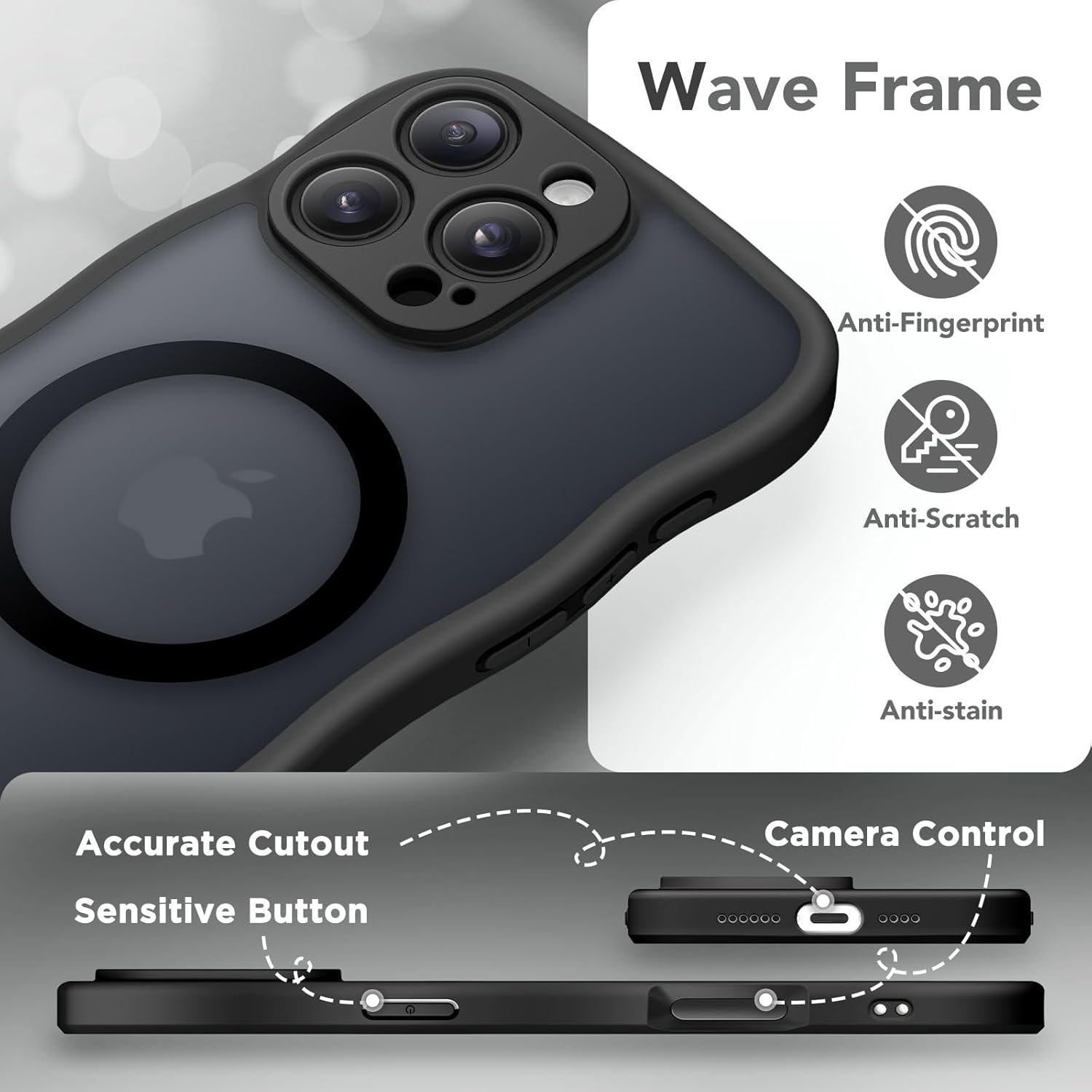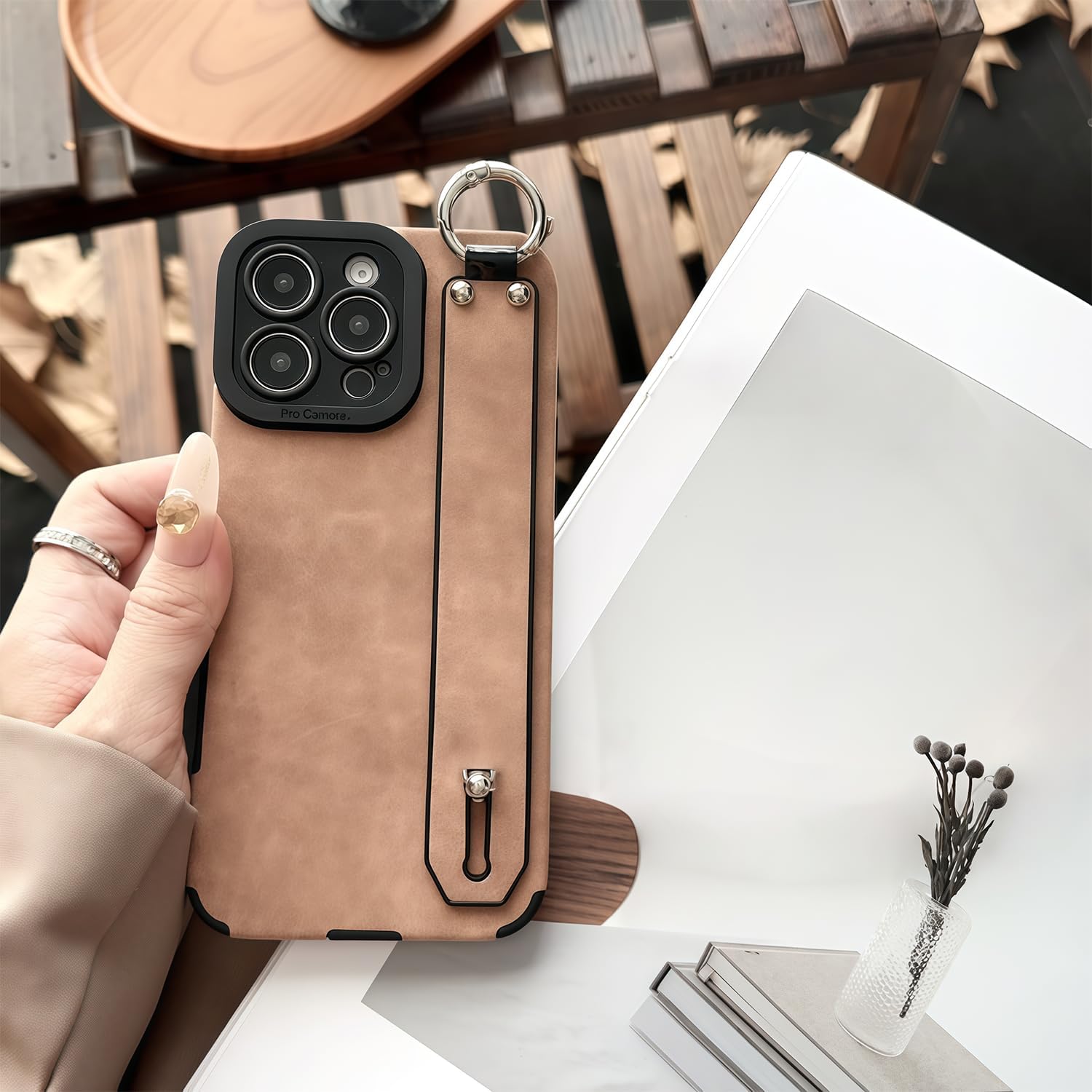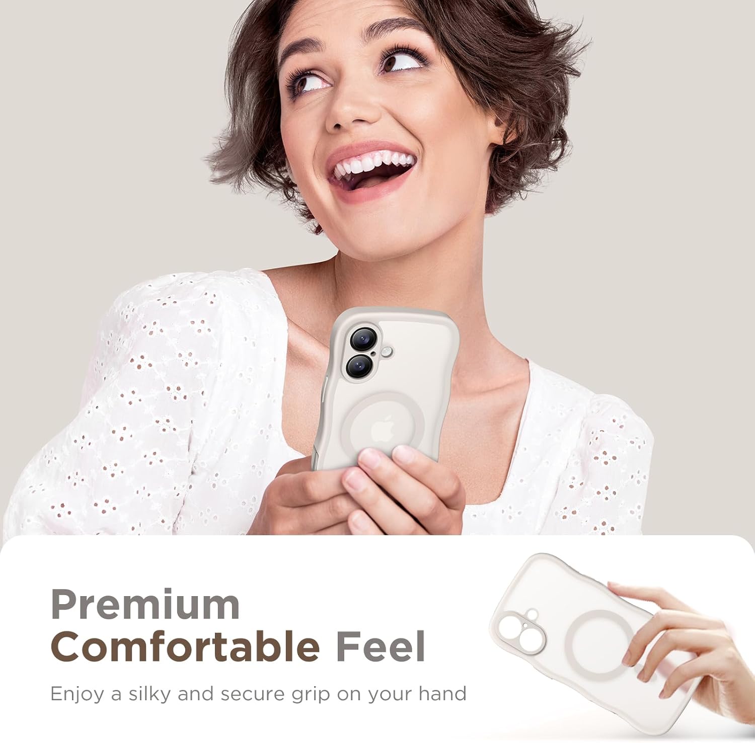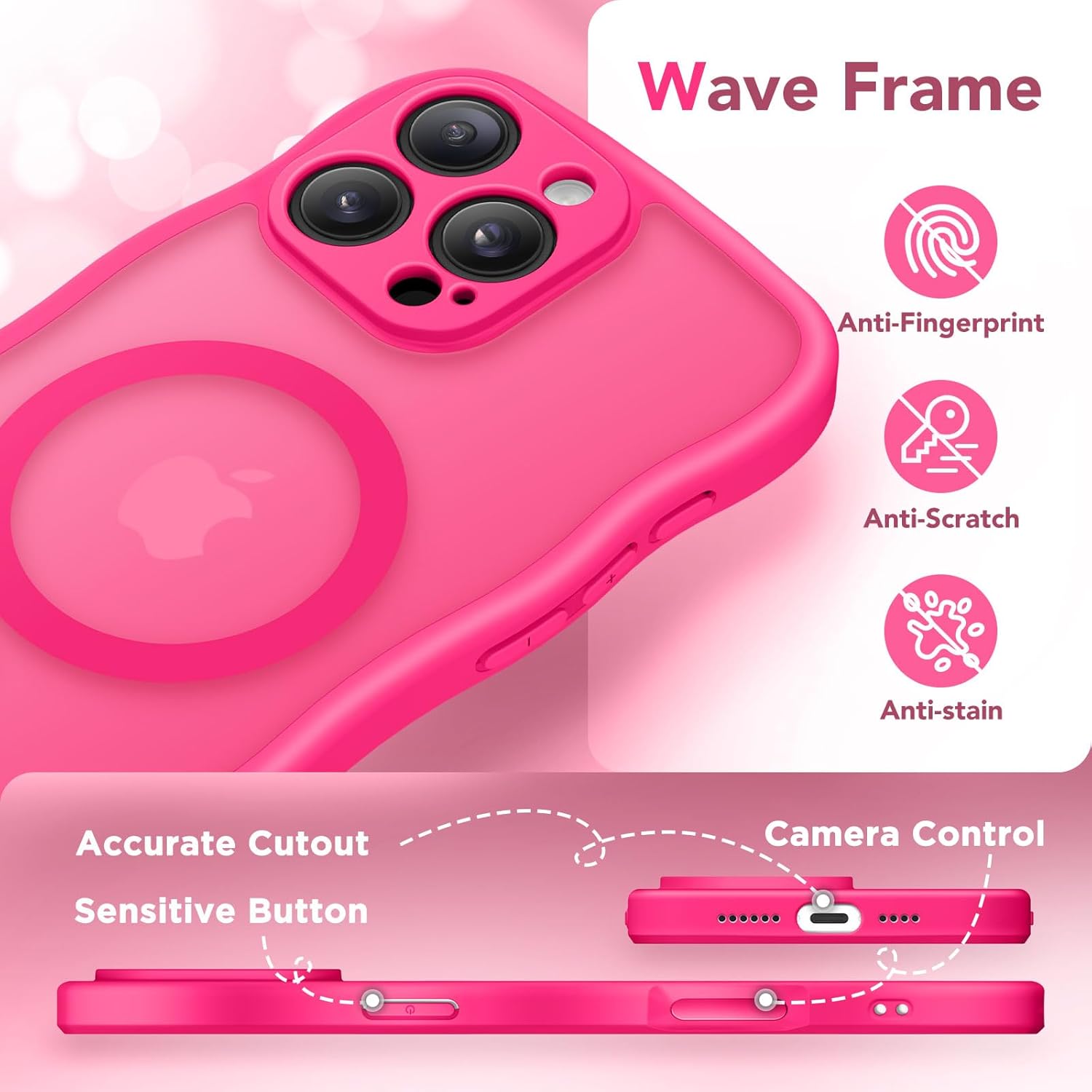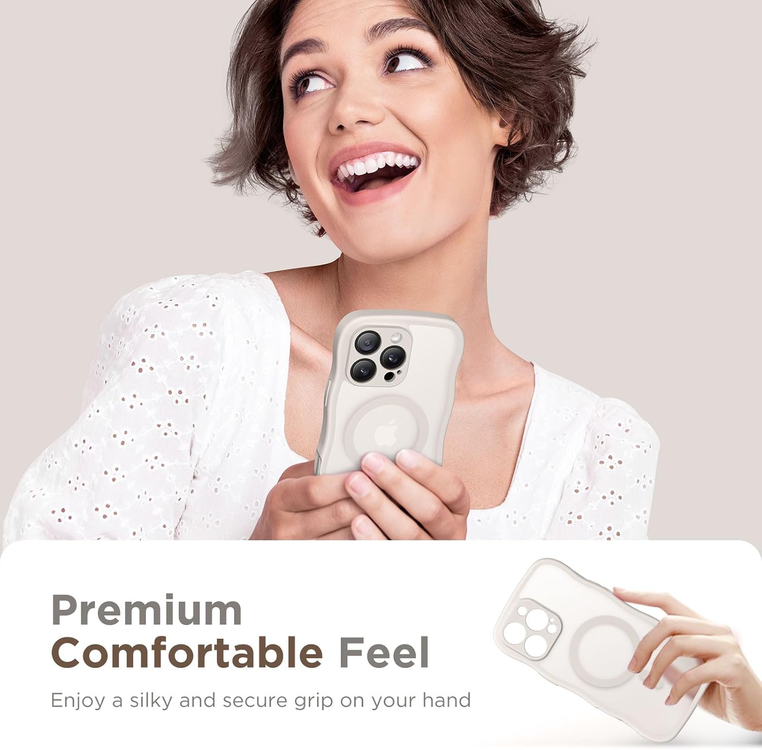 CAPRARO 适用于 iPhone 16 Pro 女士女孩手机壳,升级 [全摄像头保护] [兼容 MagSafe] 可爱波浪半透明哑光手机壳适用于 iPhone 16 Pro,棕色