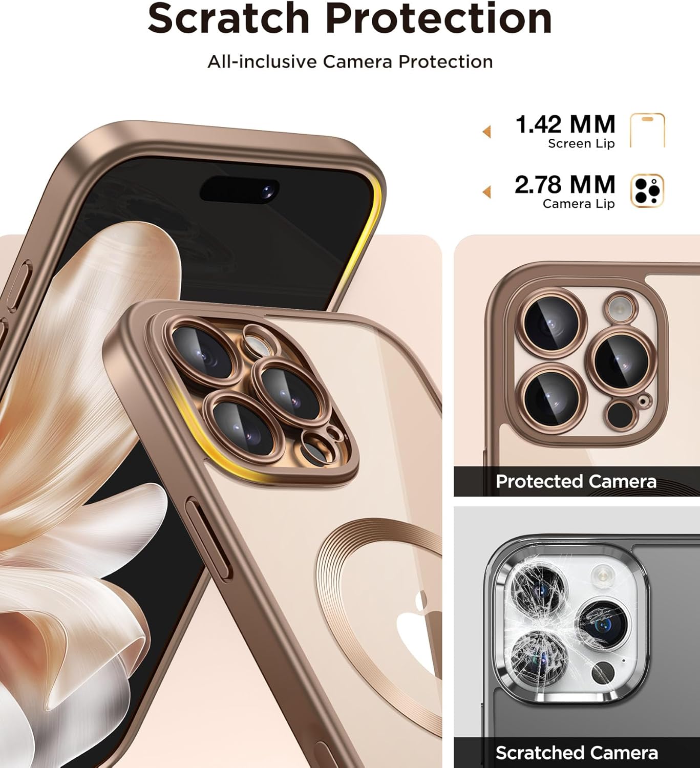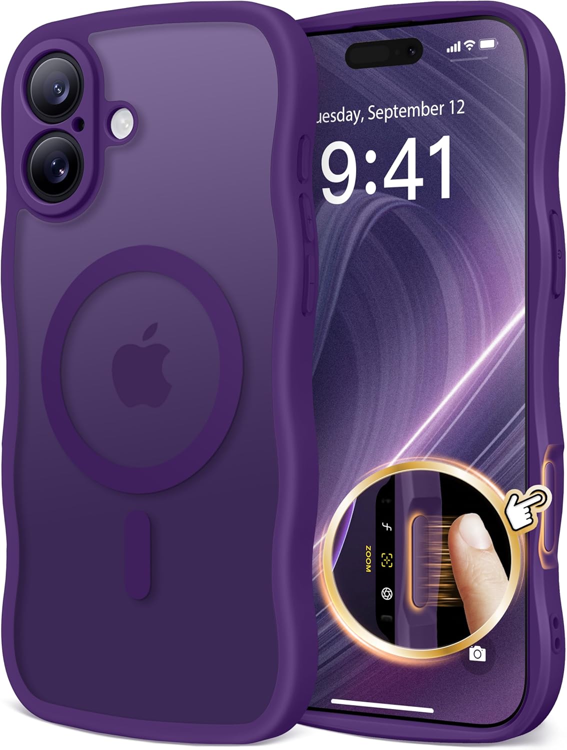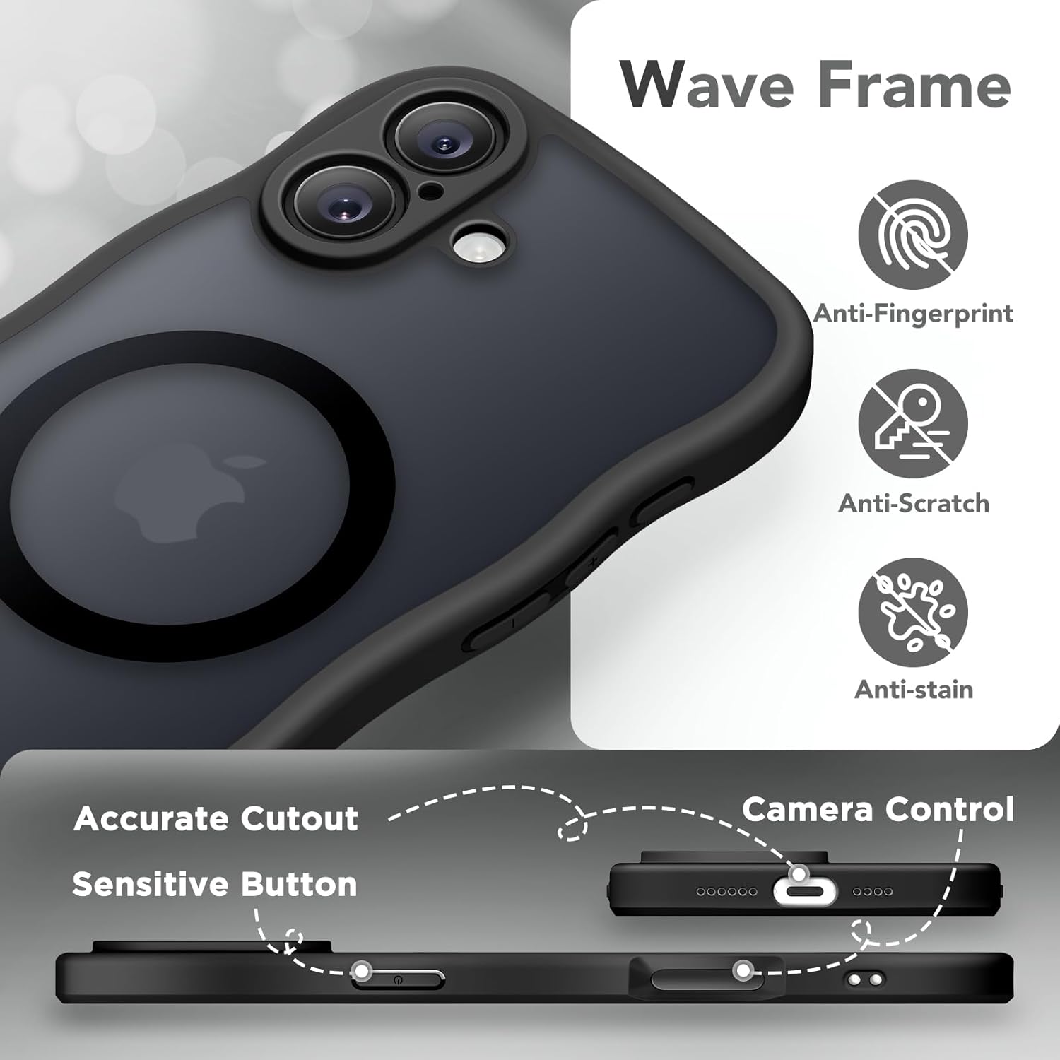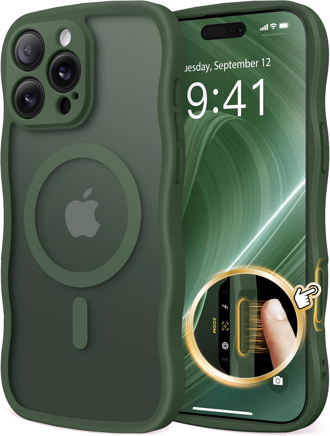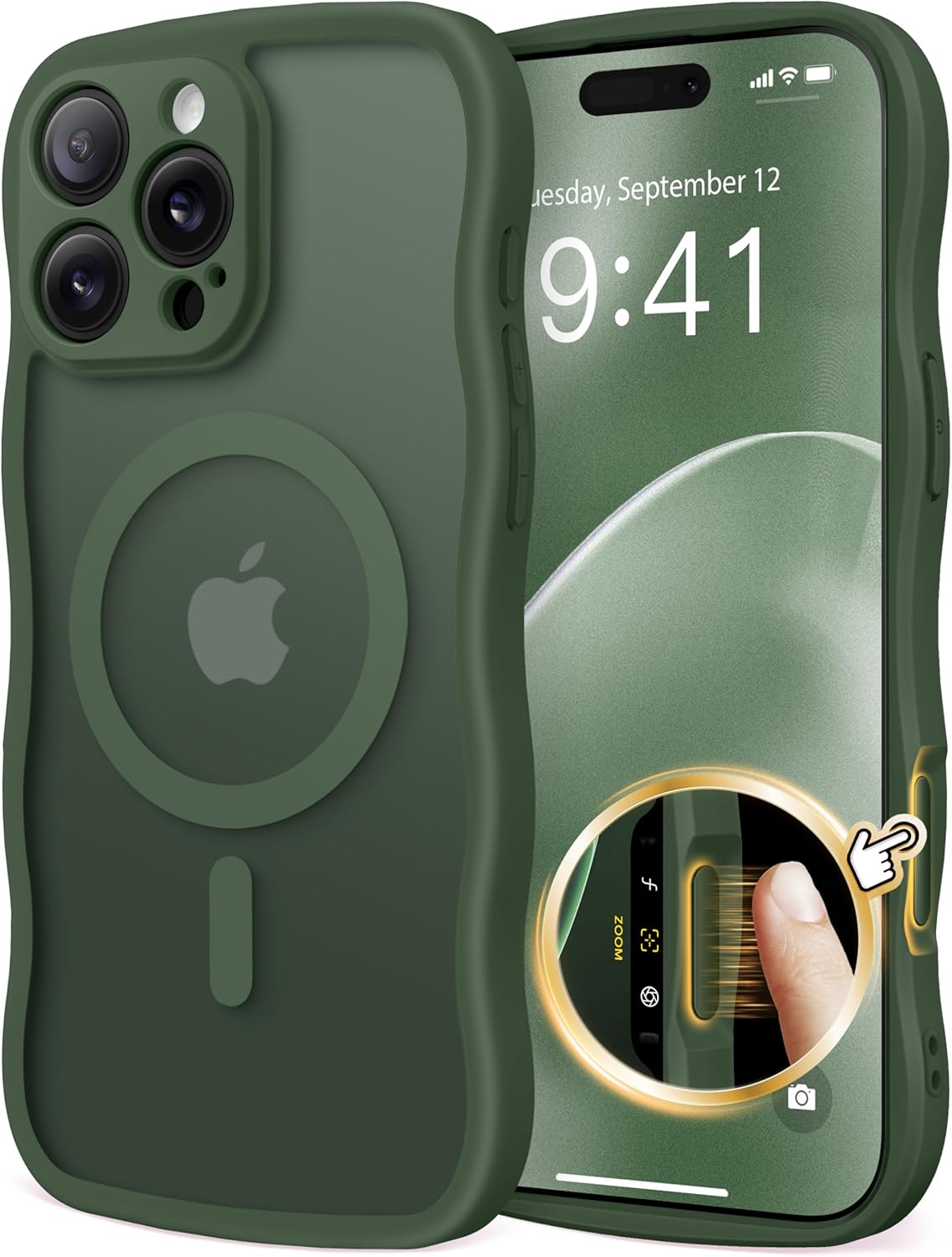 CAPRARO 适用于 iPhone 16 Pro 女士女孩手机壳,升级 [全摄像头保护] [兼容 MagSafe] 可爱波浪半透明哑光手机壳适用于 iPhone 16 Pro,棕色