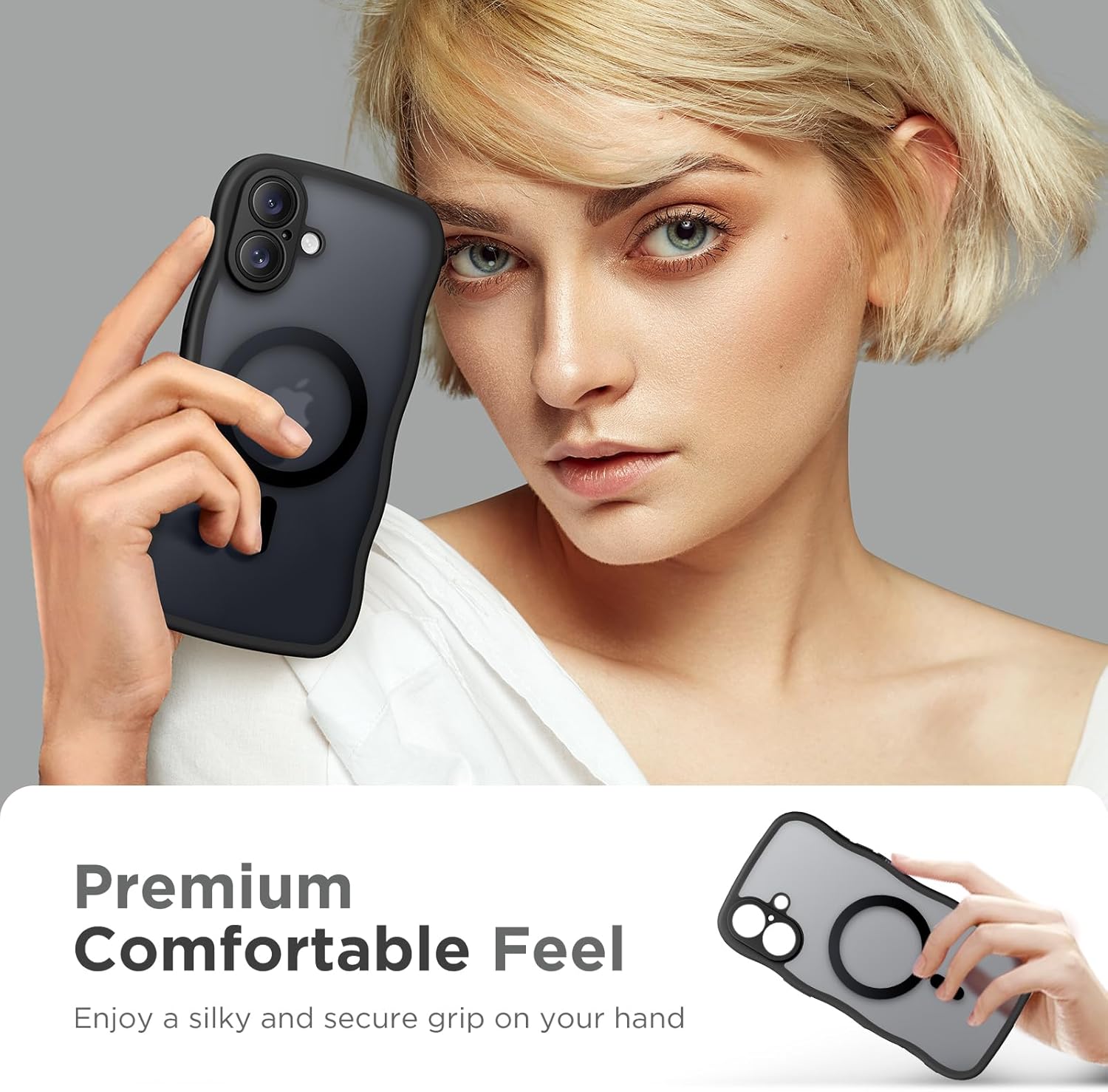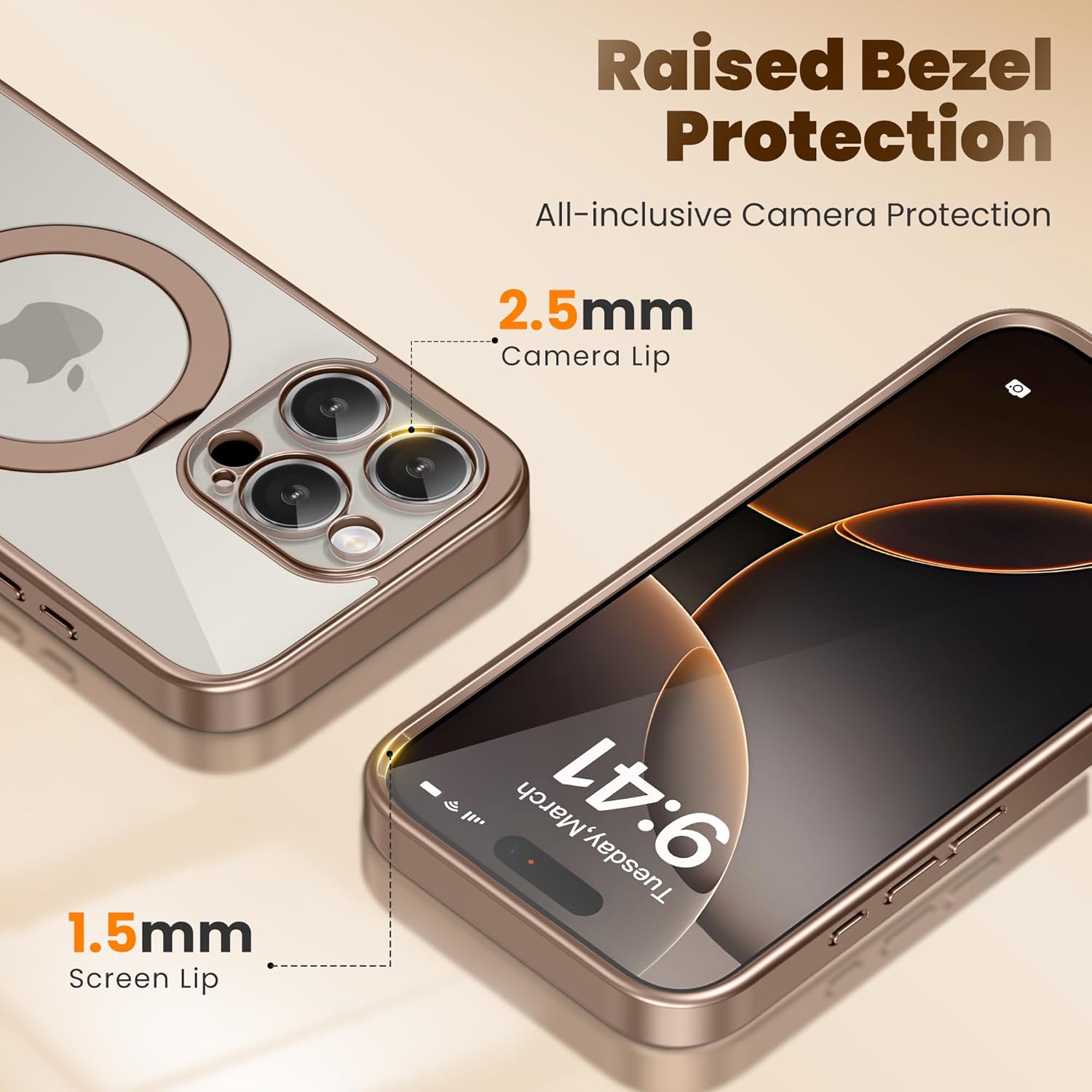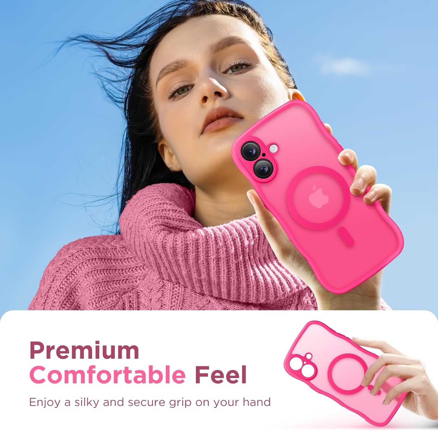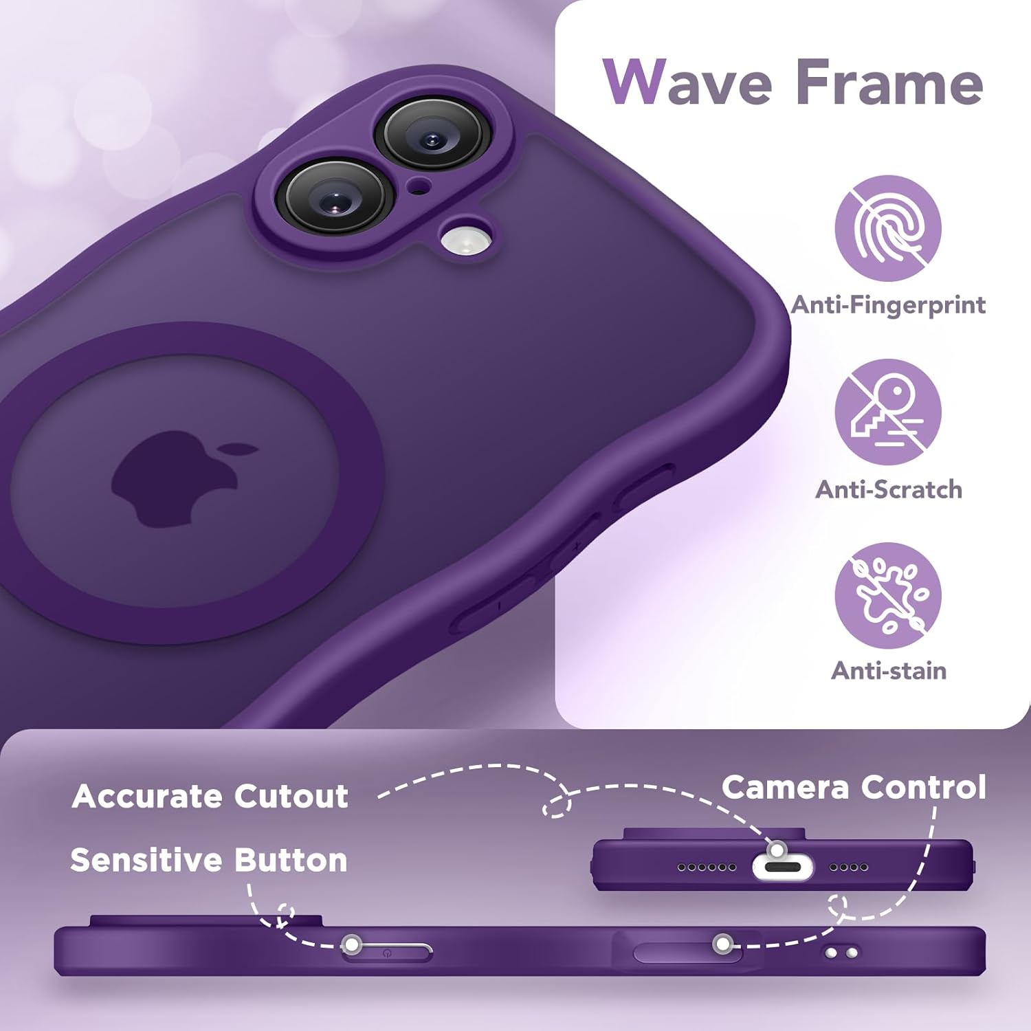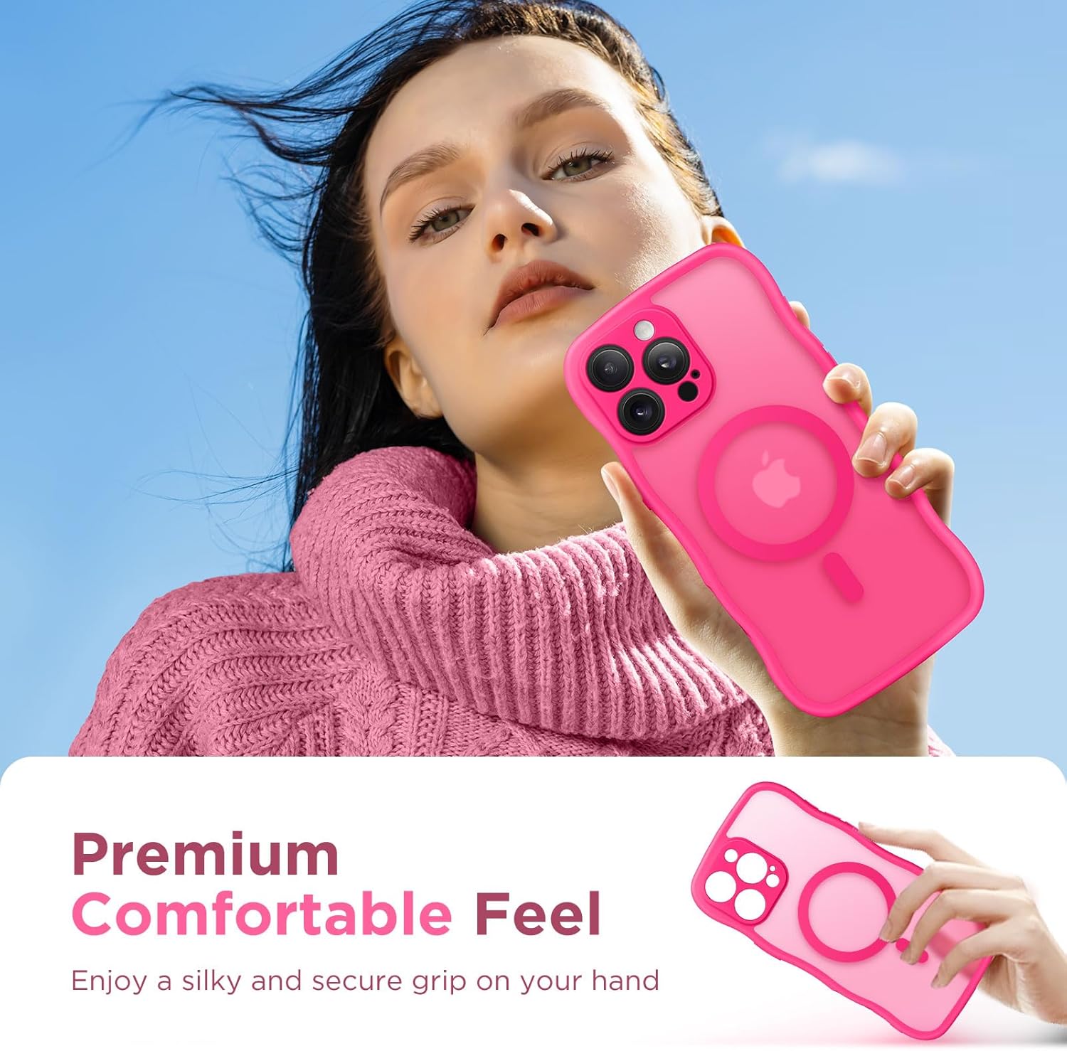 CAPRARO 适用于 iPhone 16 Pro 女士女孩手机壳,升级 [全摄像头保护] [兼容 MagSafe] 可爱波浪半透明哑光手机壳适用于 iPhone 16 Pro,棕色
