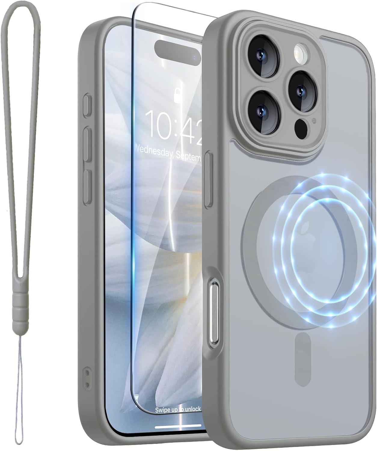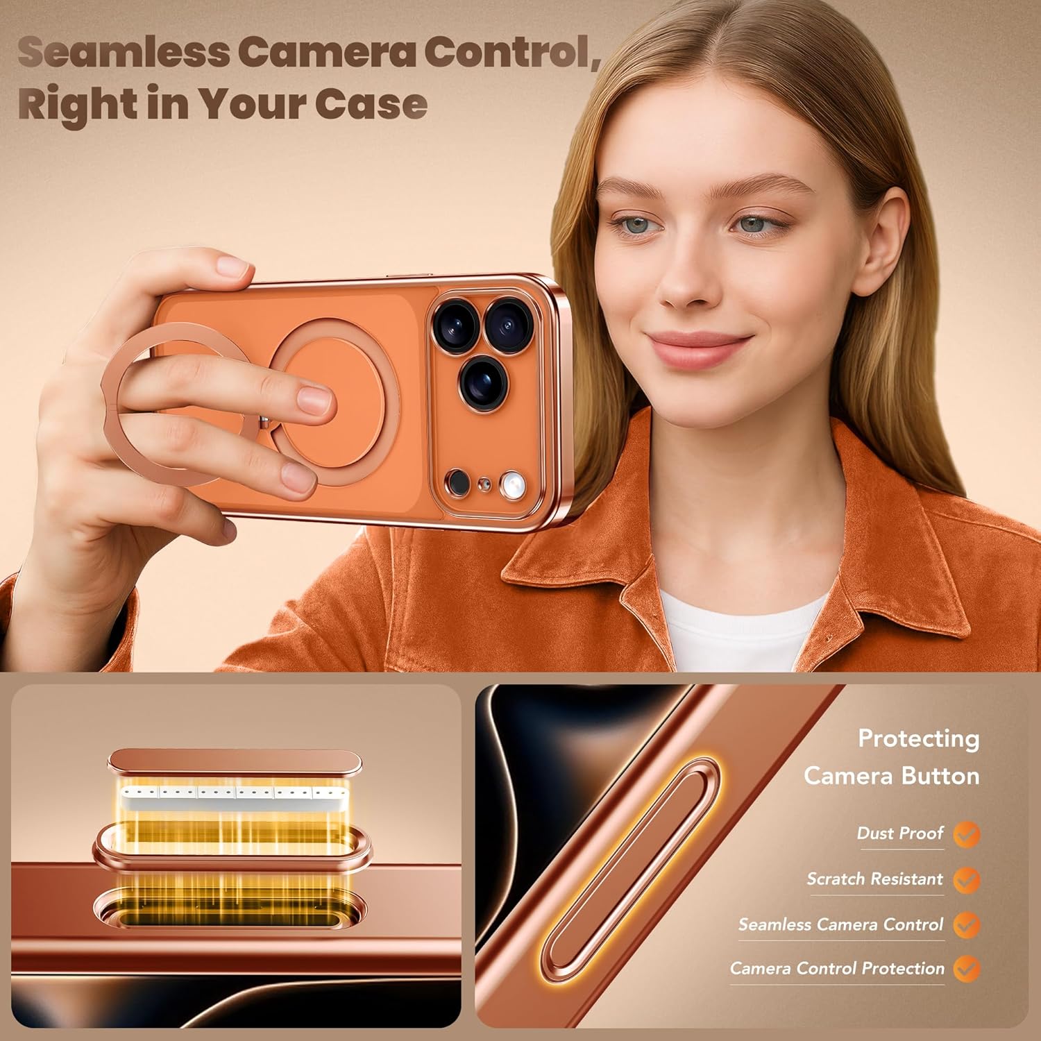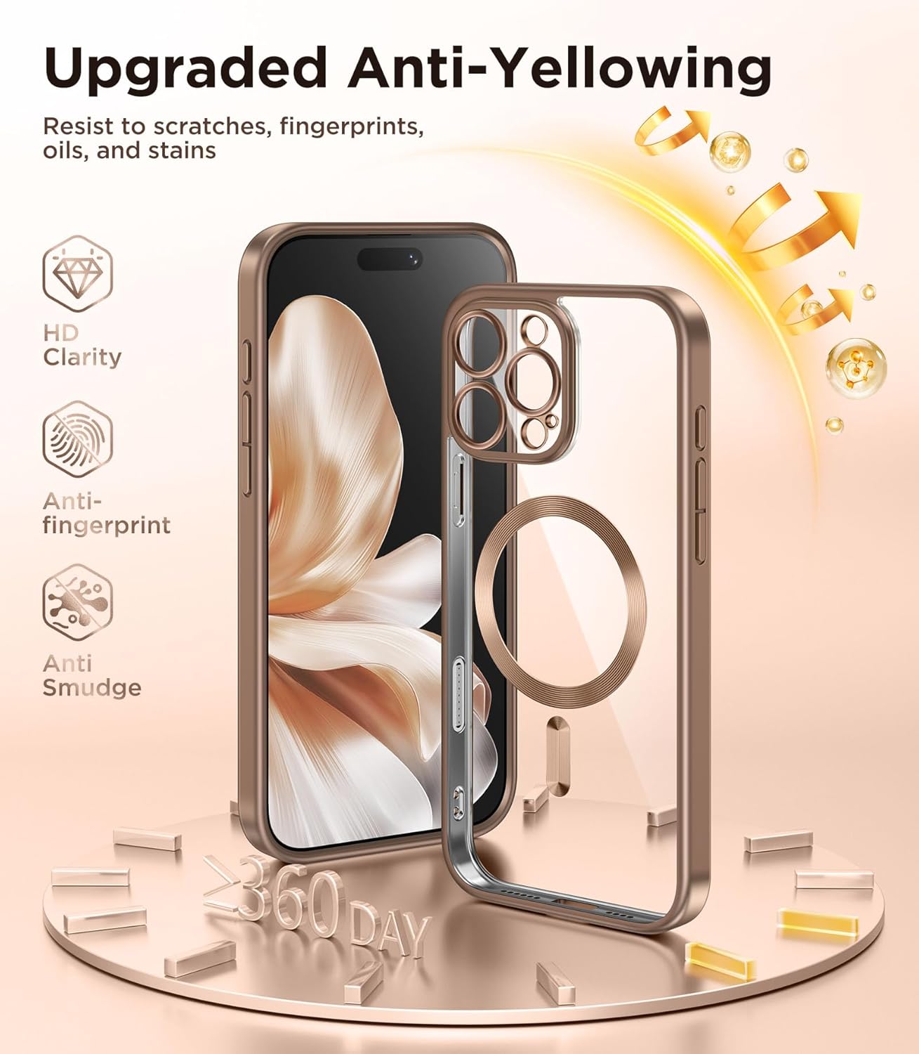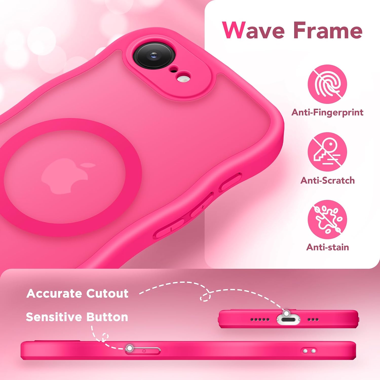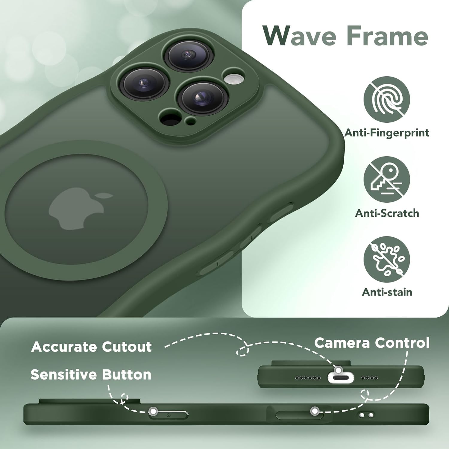 CAPRARO 适用于 iPhone 16 Pro 女士女孩手机壳,升级 [全摄像头保护] [兼容 MagSafe] 可爱波浪半透明哑光手机壳适用于 iPhone 16 Pro,棕色