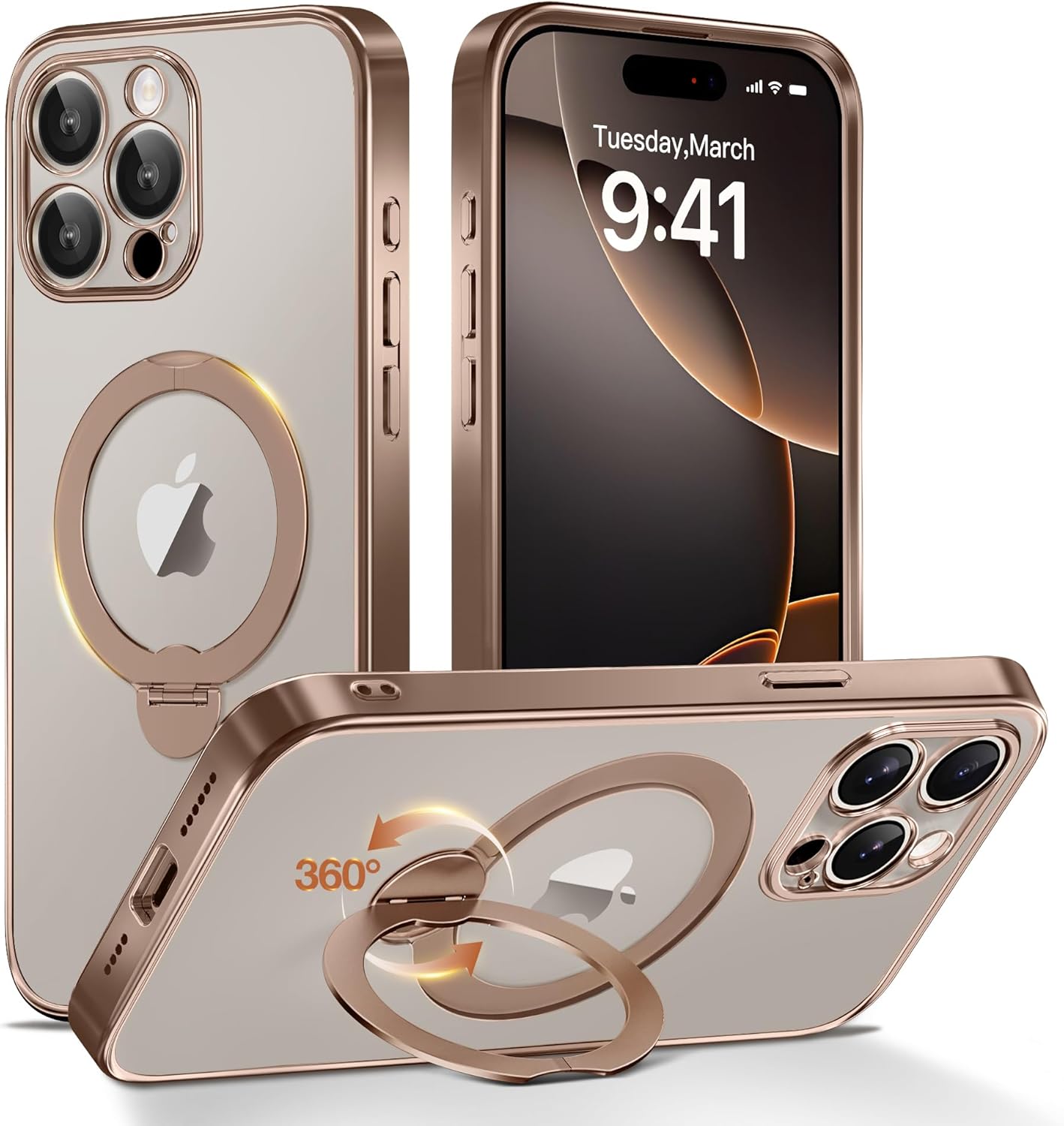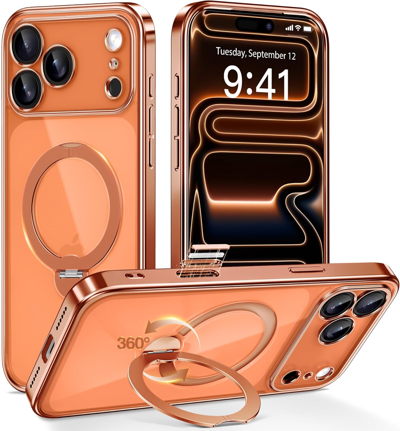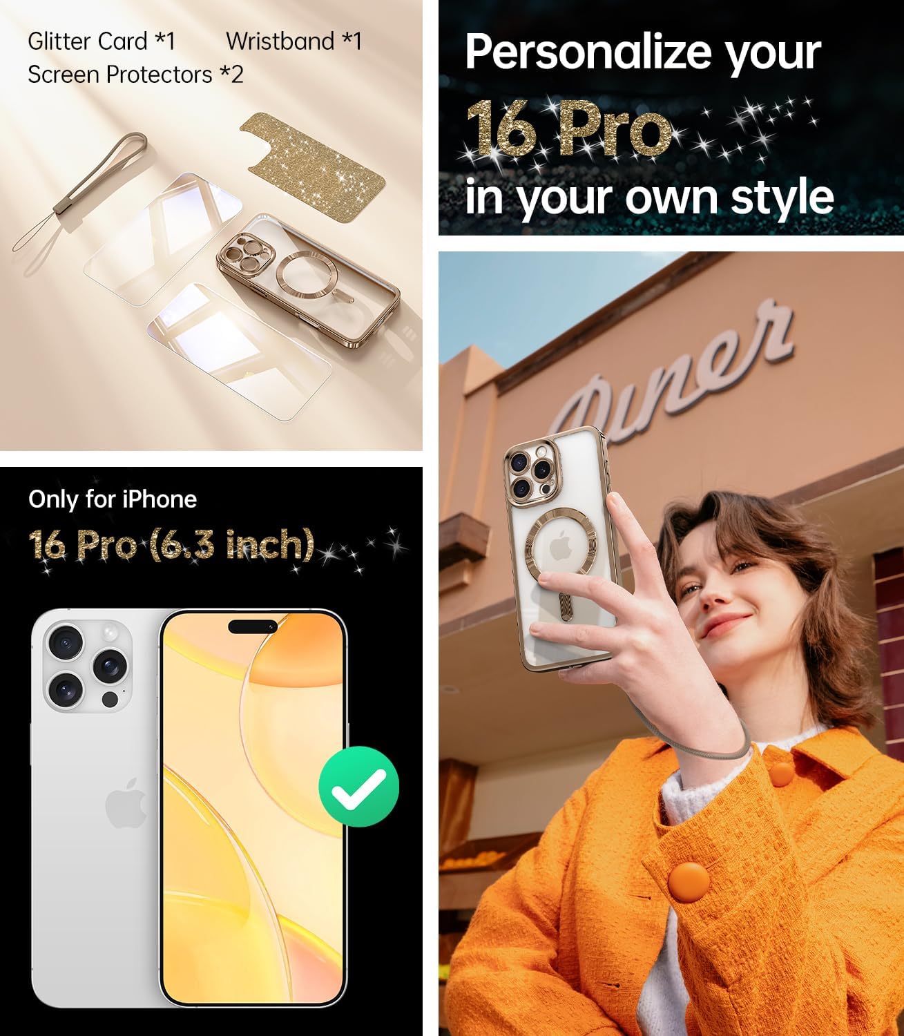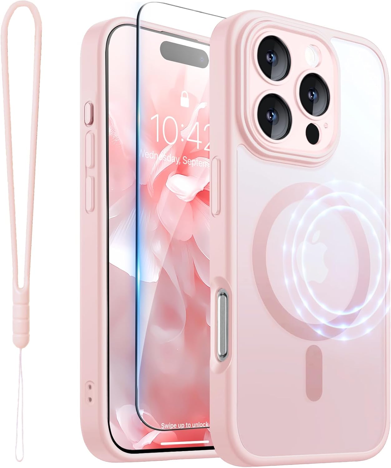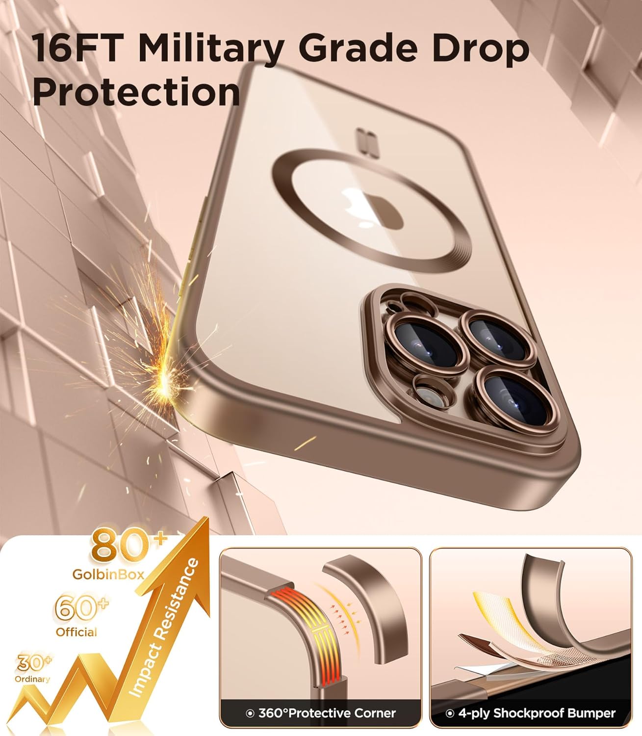CAPRARO 适用于 iPhone 16 Pro 女士女孩手机壳,升级 [全摄像头保护] [兼容 MagSafe] 可爱波浪半透明哑光手机壳适用于 iPhone 16 Pro,棕色