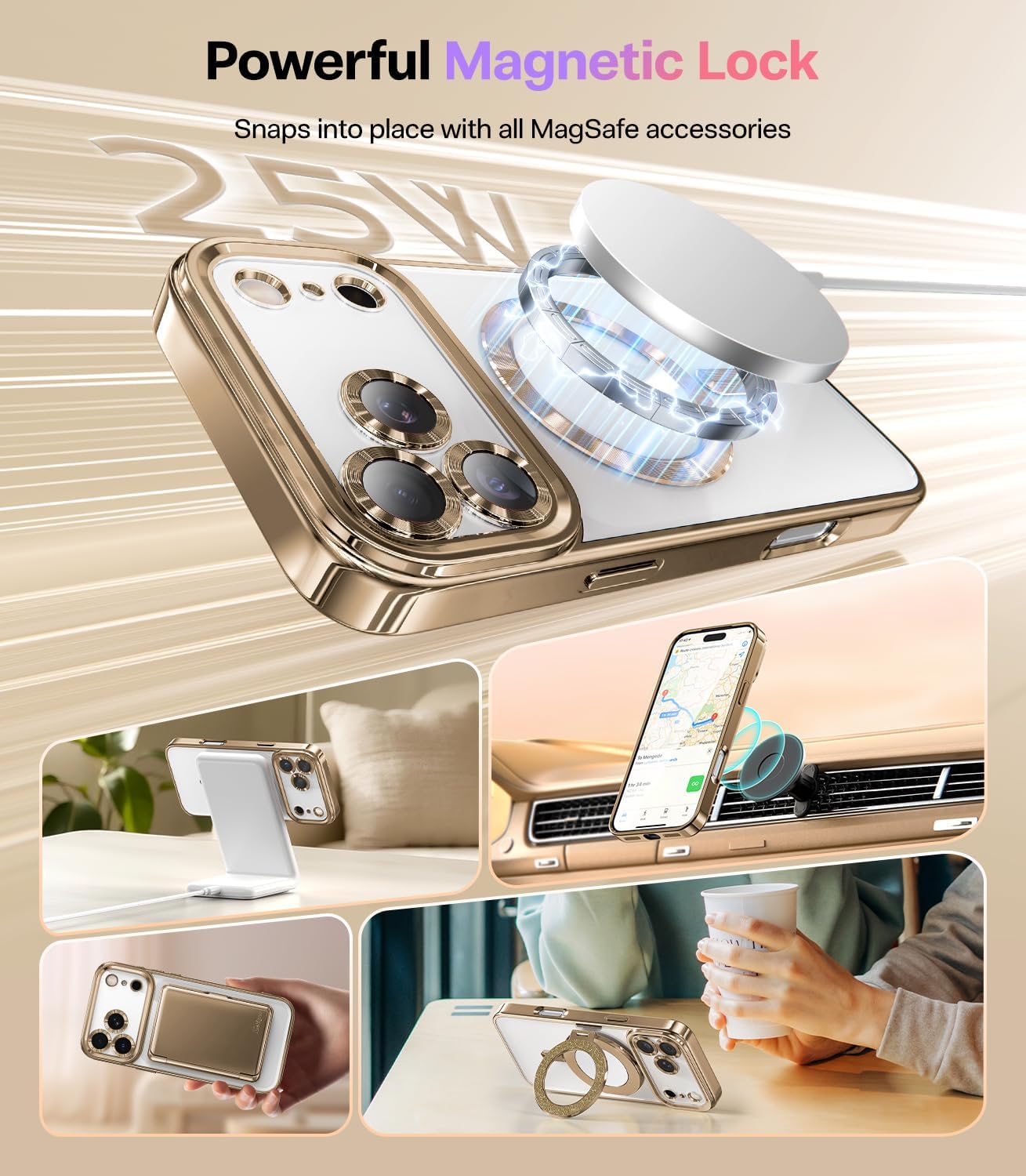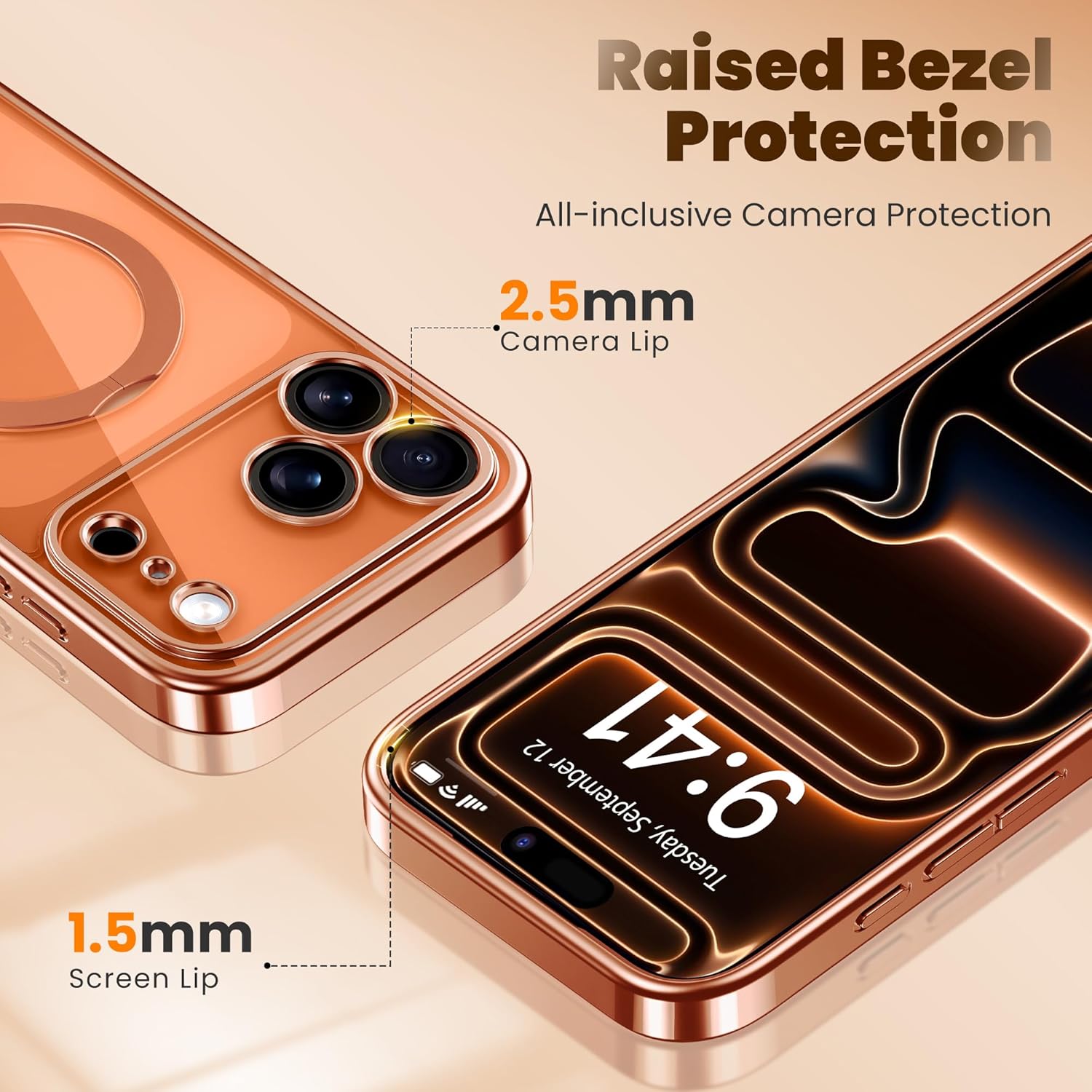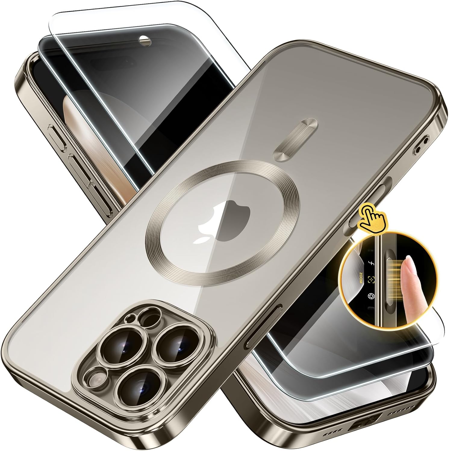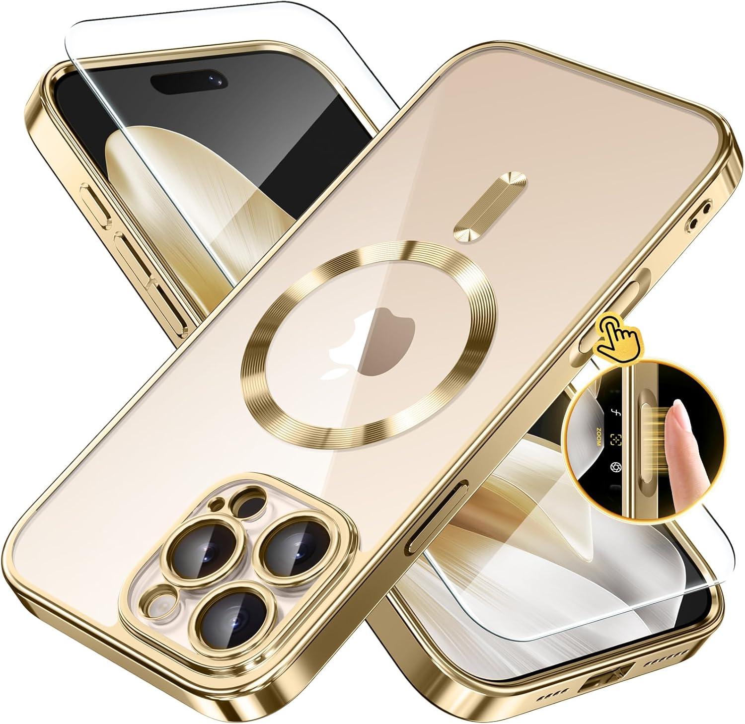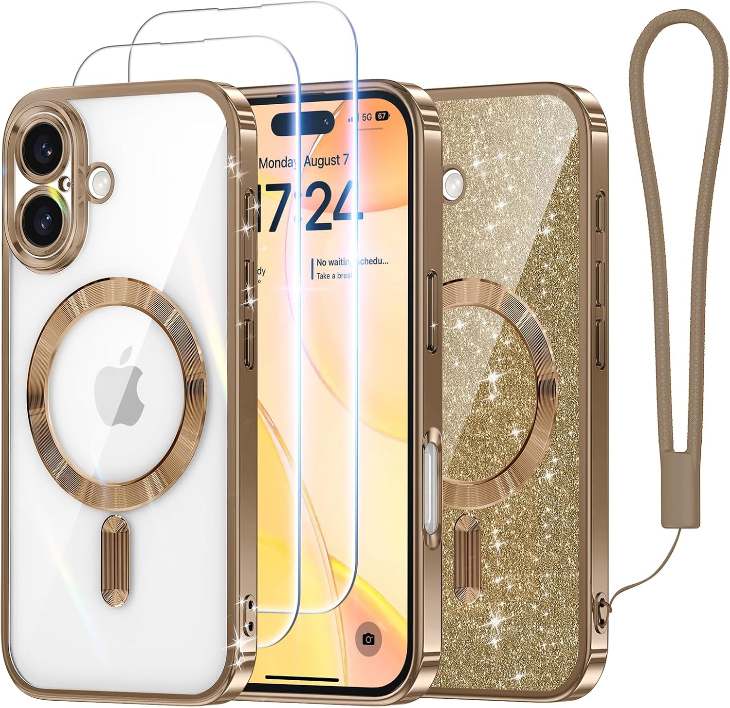 CAPRARO 适用于 iPhone 16 Pro 女士女孩手机壳,升级 [全摄像头保护] [兼容 MagSafe] 可爱波浪半透明哑光手机壳适用于 iPhone 16 Pro,棕色