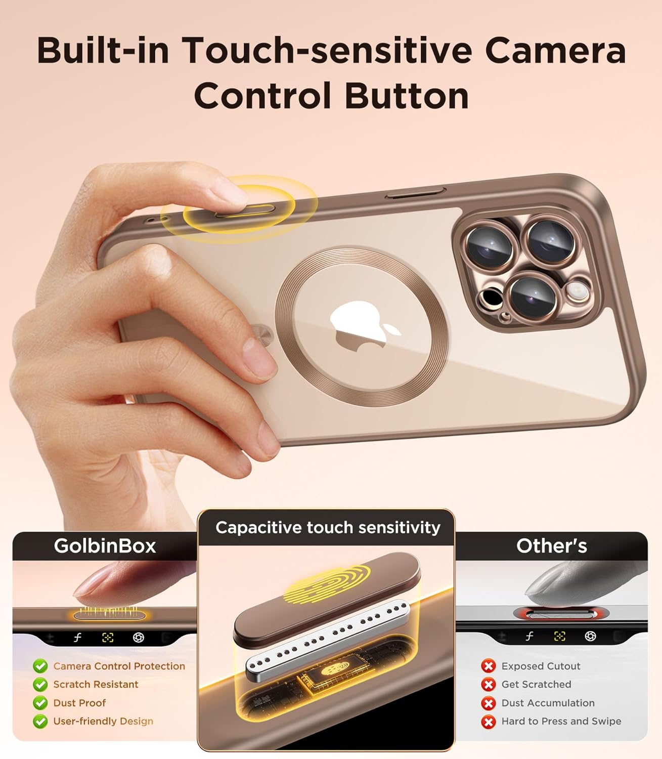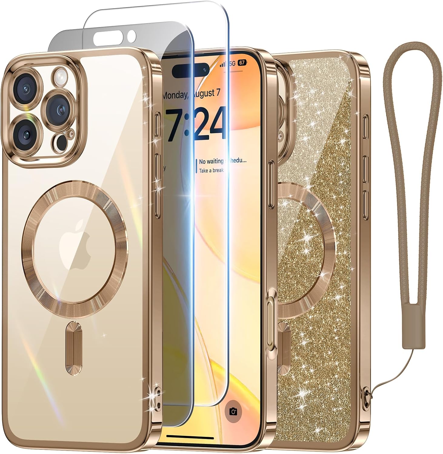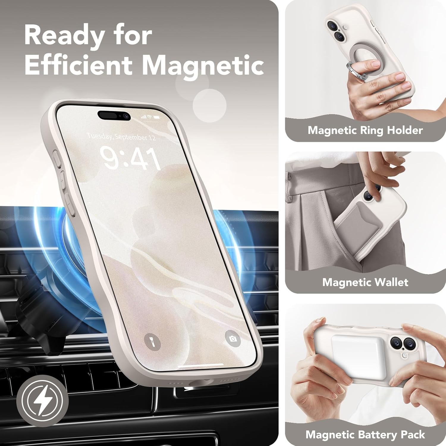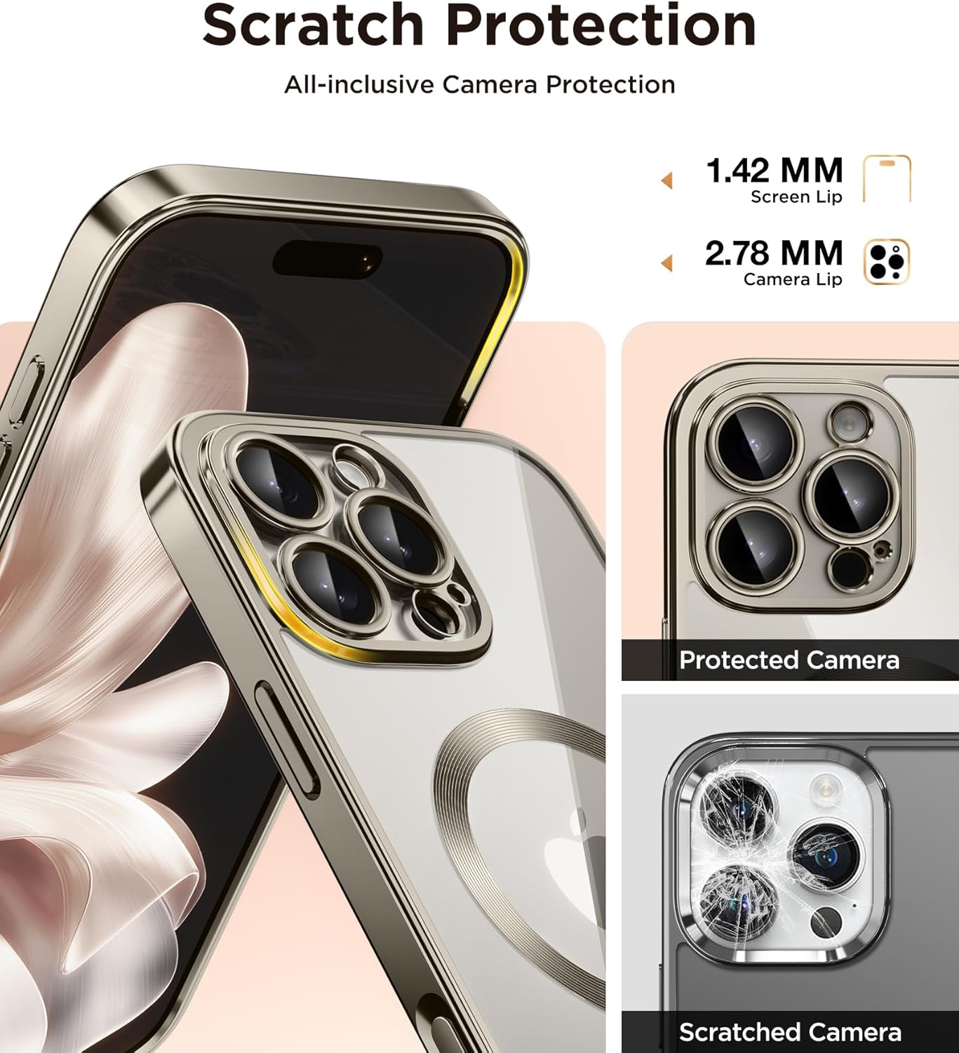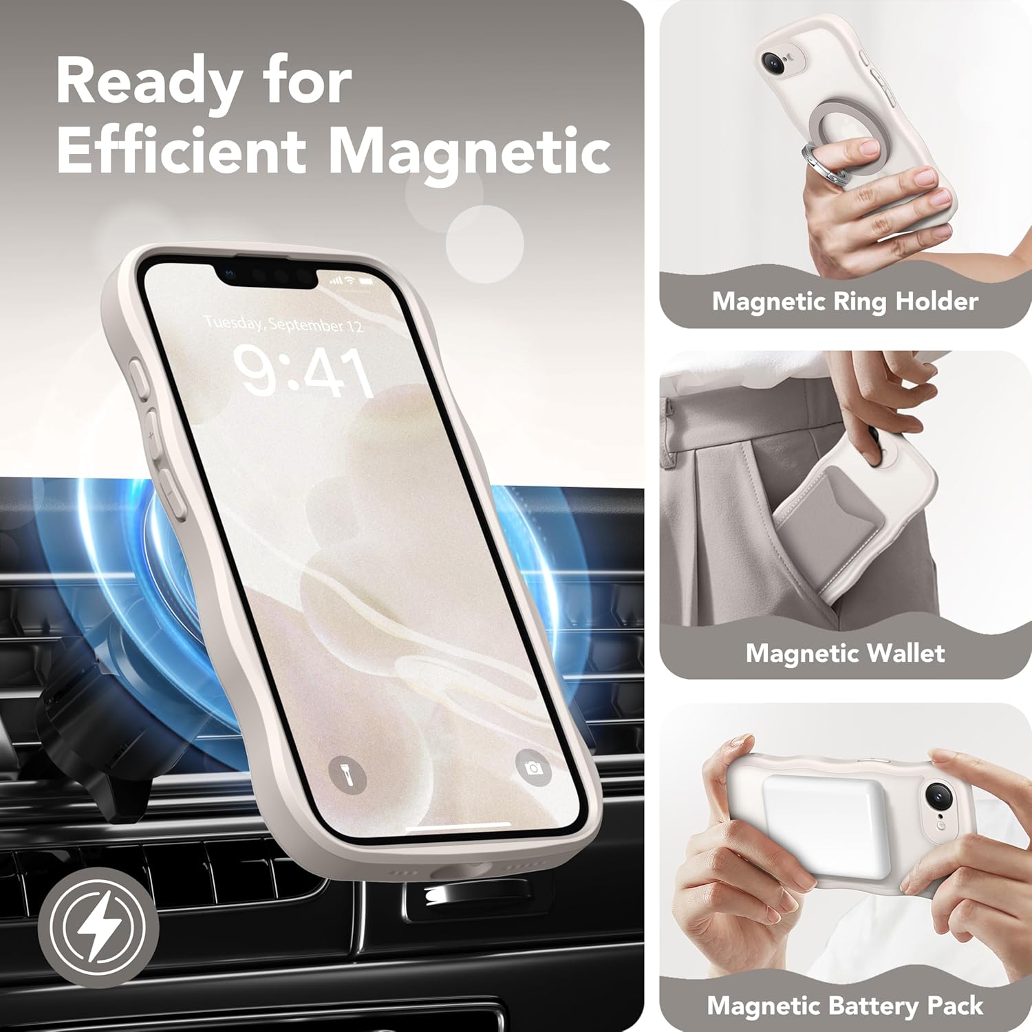 CAPRARO 适用于 iPhone 16 Pro 女士女孩手机壳,升级 [全摄像头保护] [兼容 MagSafe] 可爱波浪半透明哑光手机壳适用于 iPhone 16 Pro,棕色