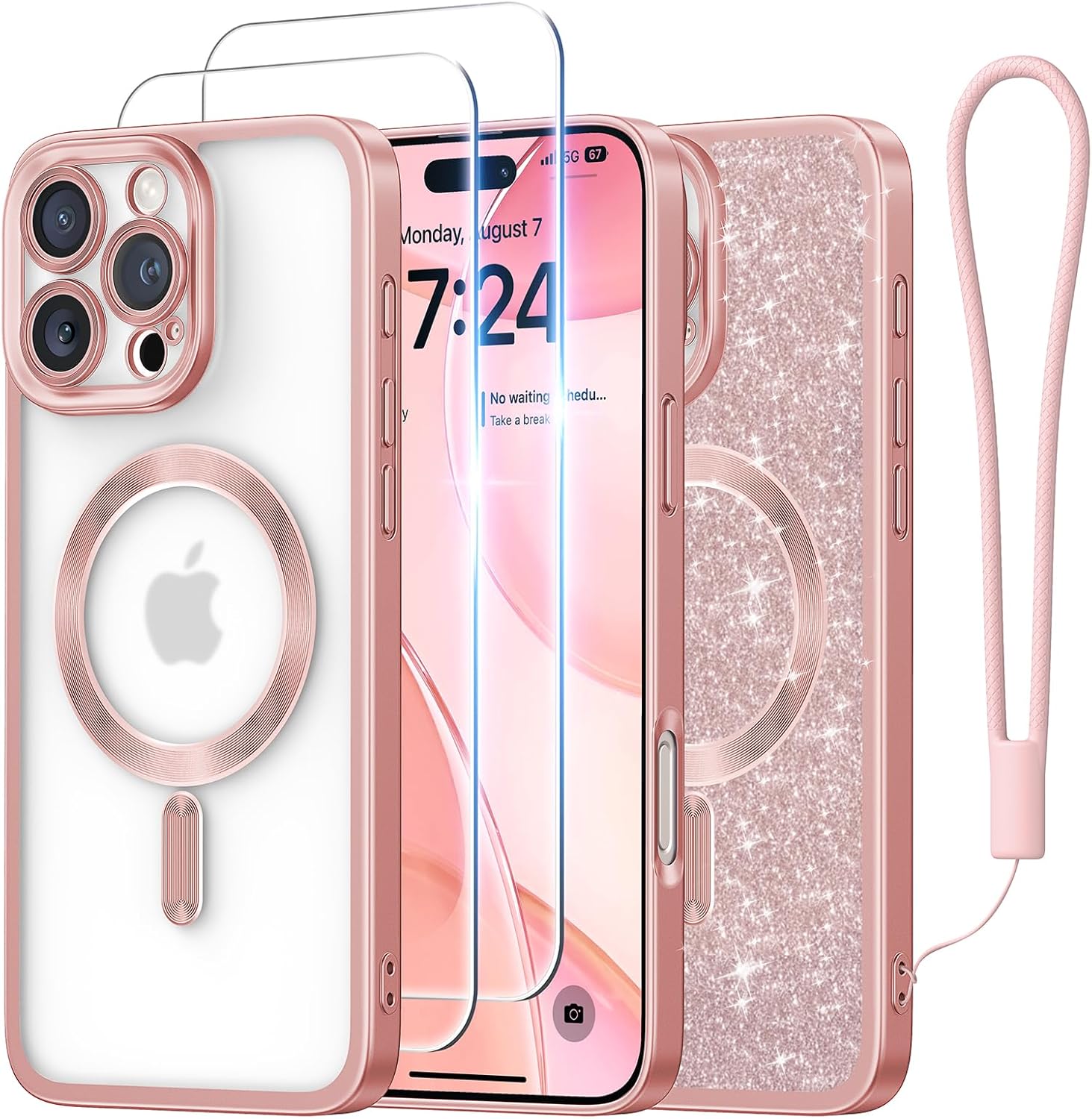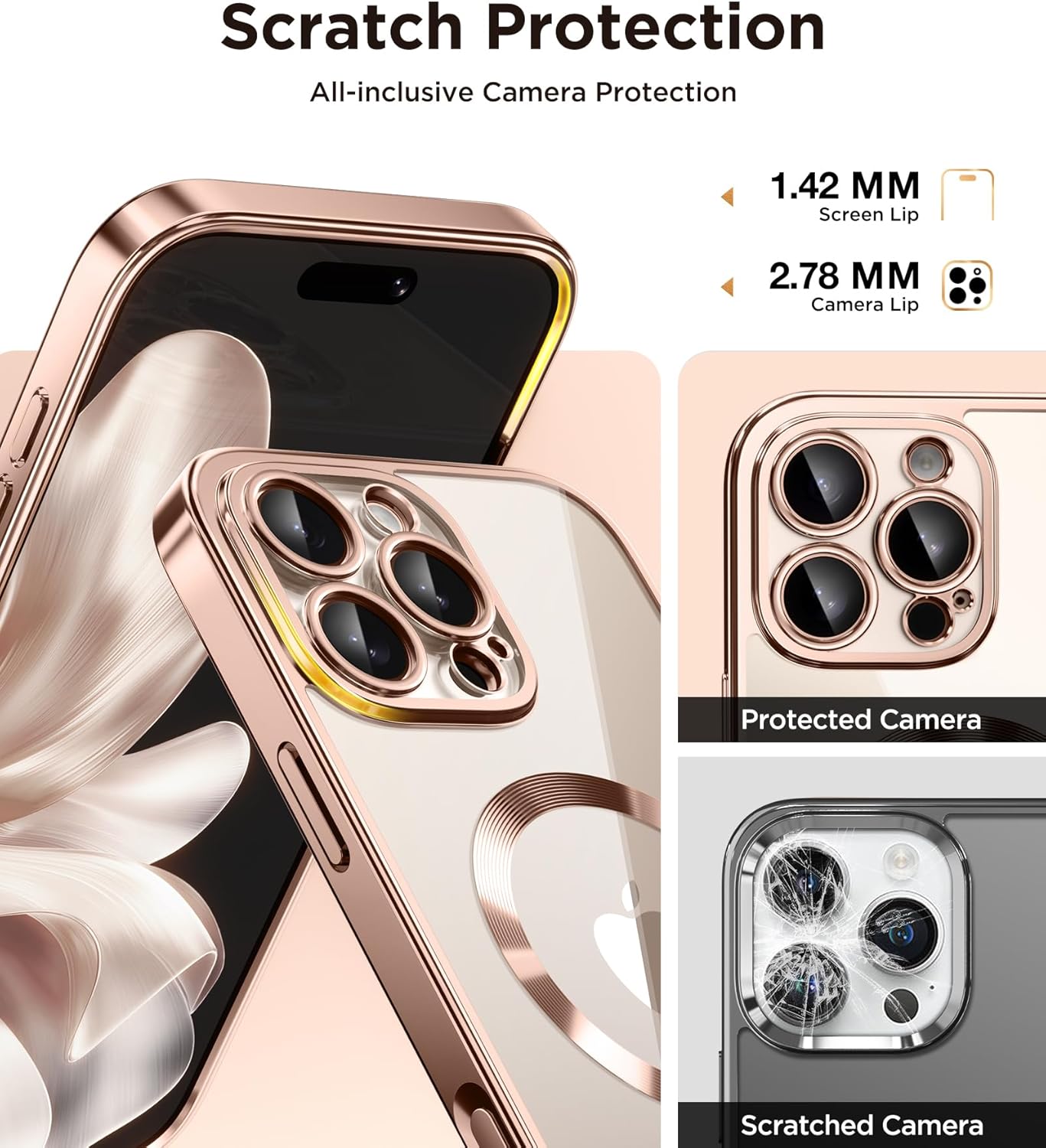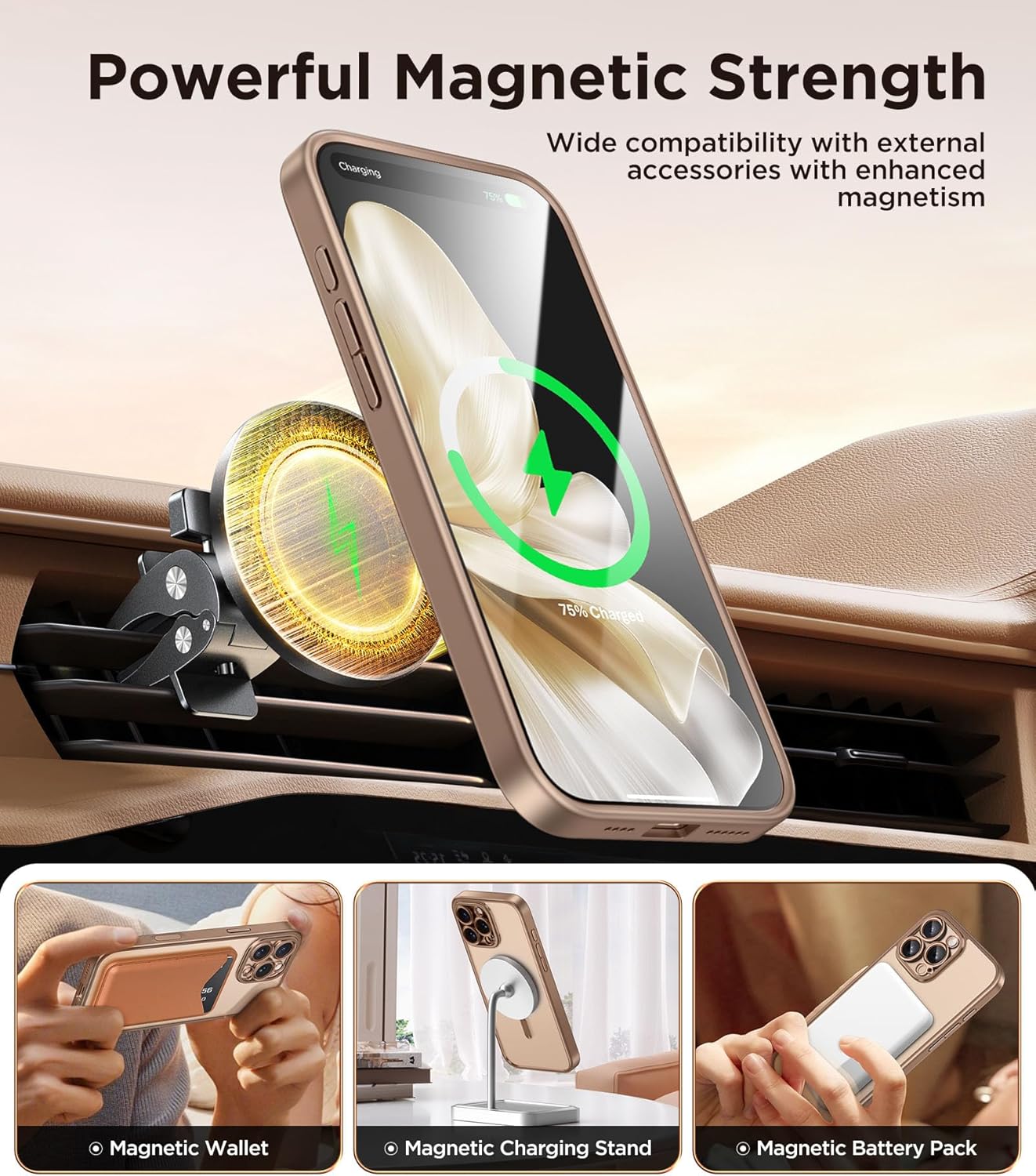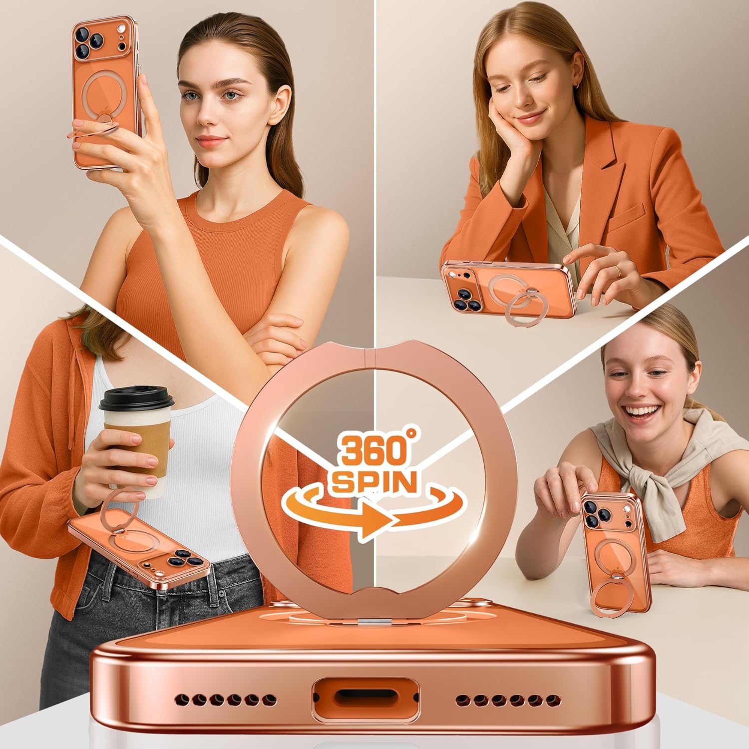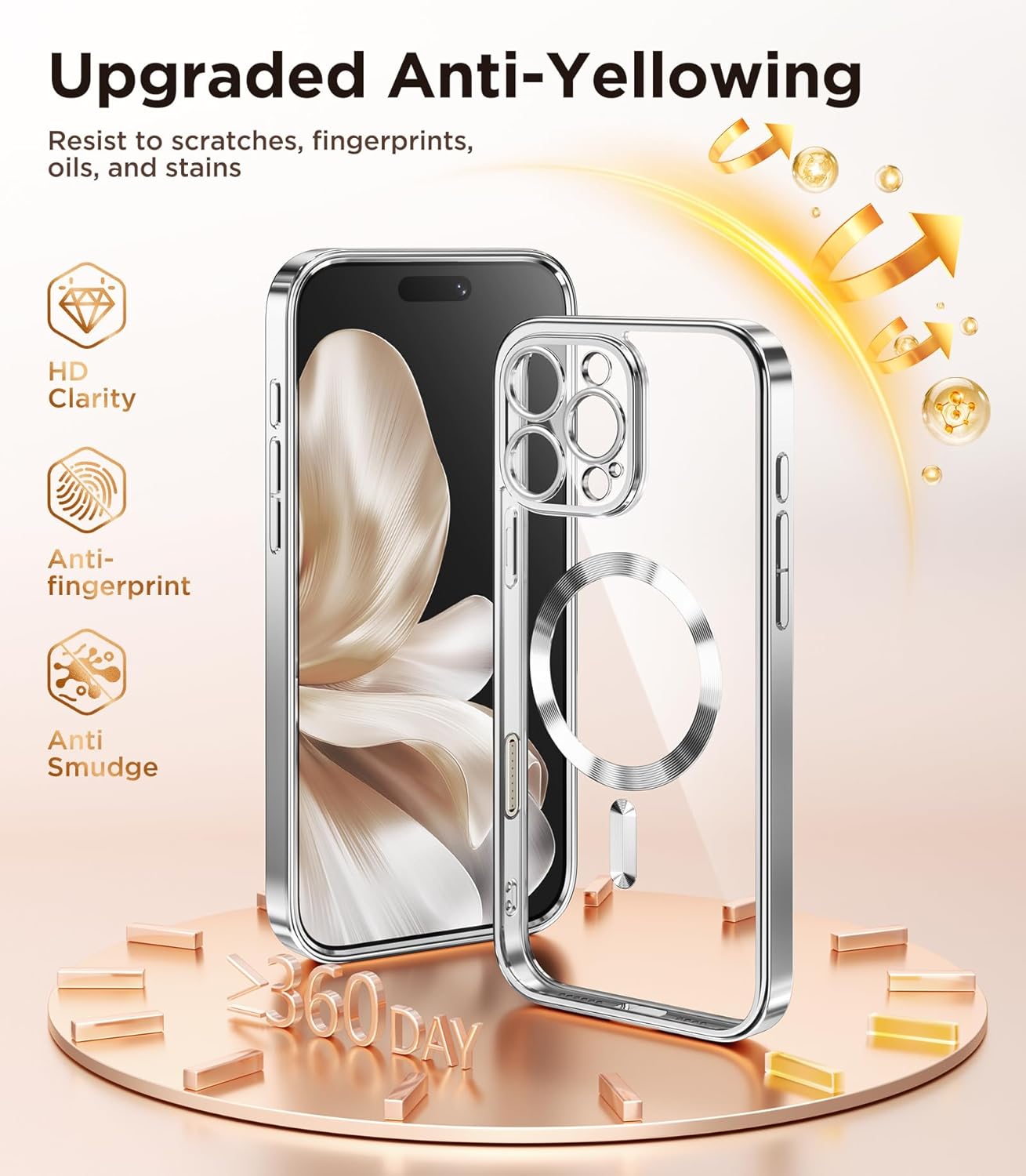 CAPRARO 适用于 iPhone 16 Pro 女士女孩手机壳,升级 [全摄像头保护] [兼容 MagSafe] 可爱波浪半透明哑光手机壳适用于 iPhone 16 Pro,棕色