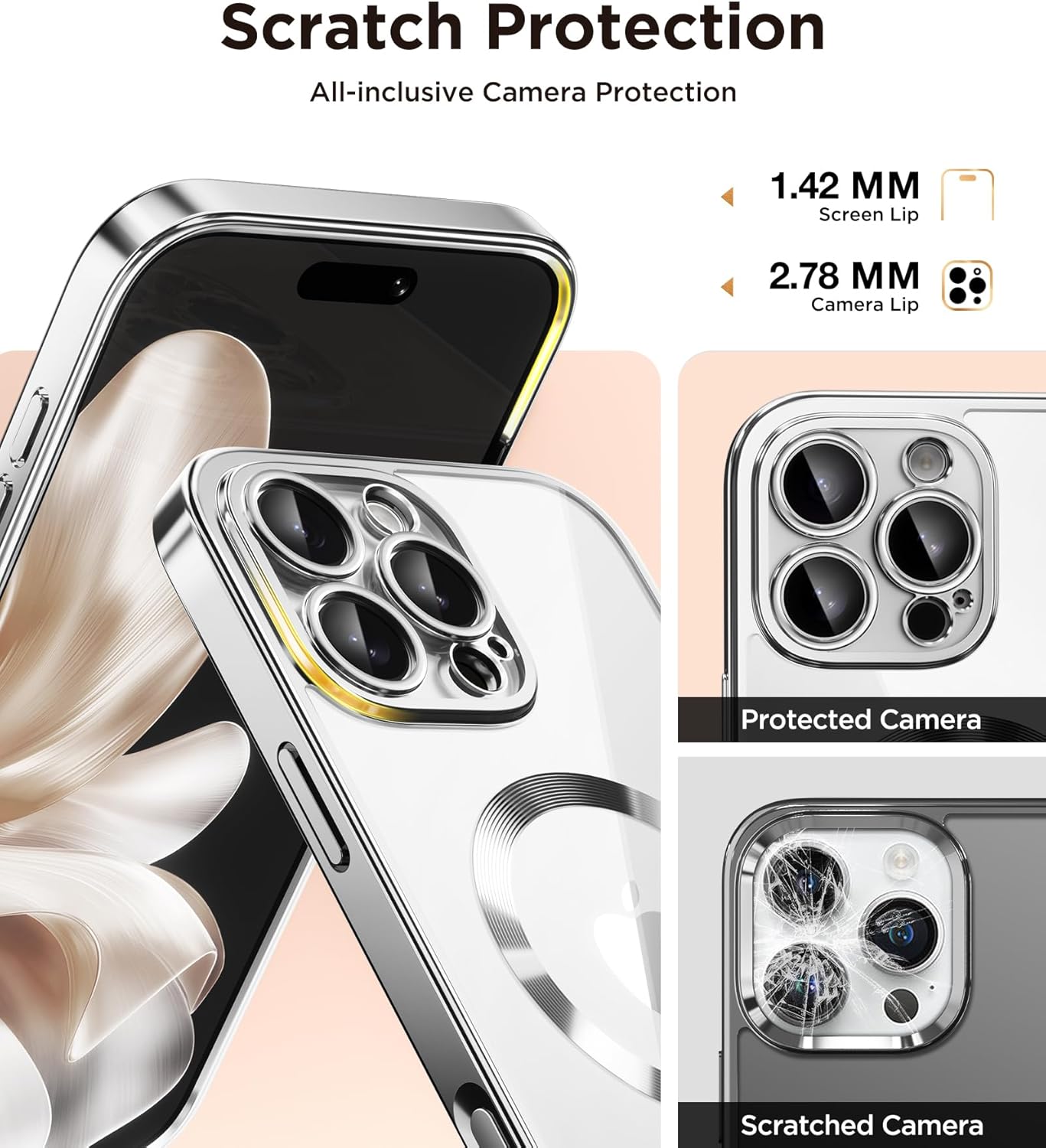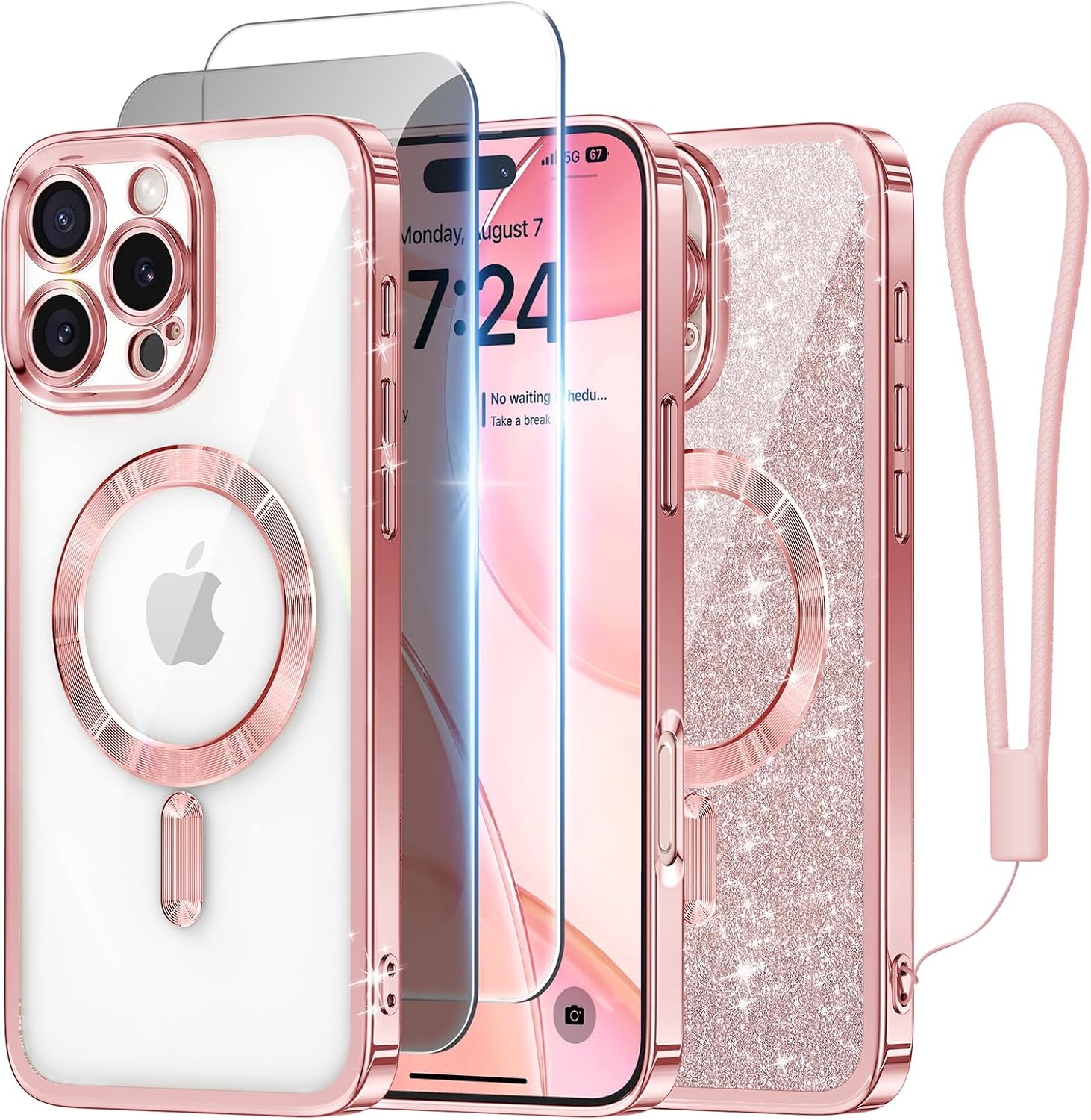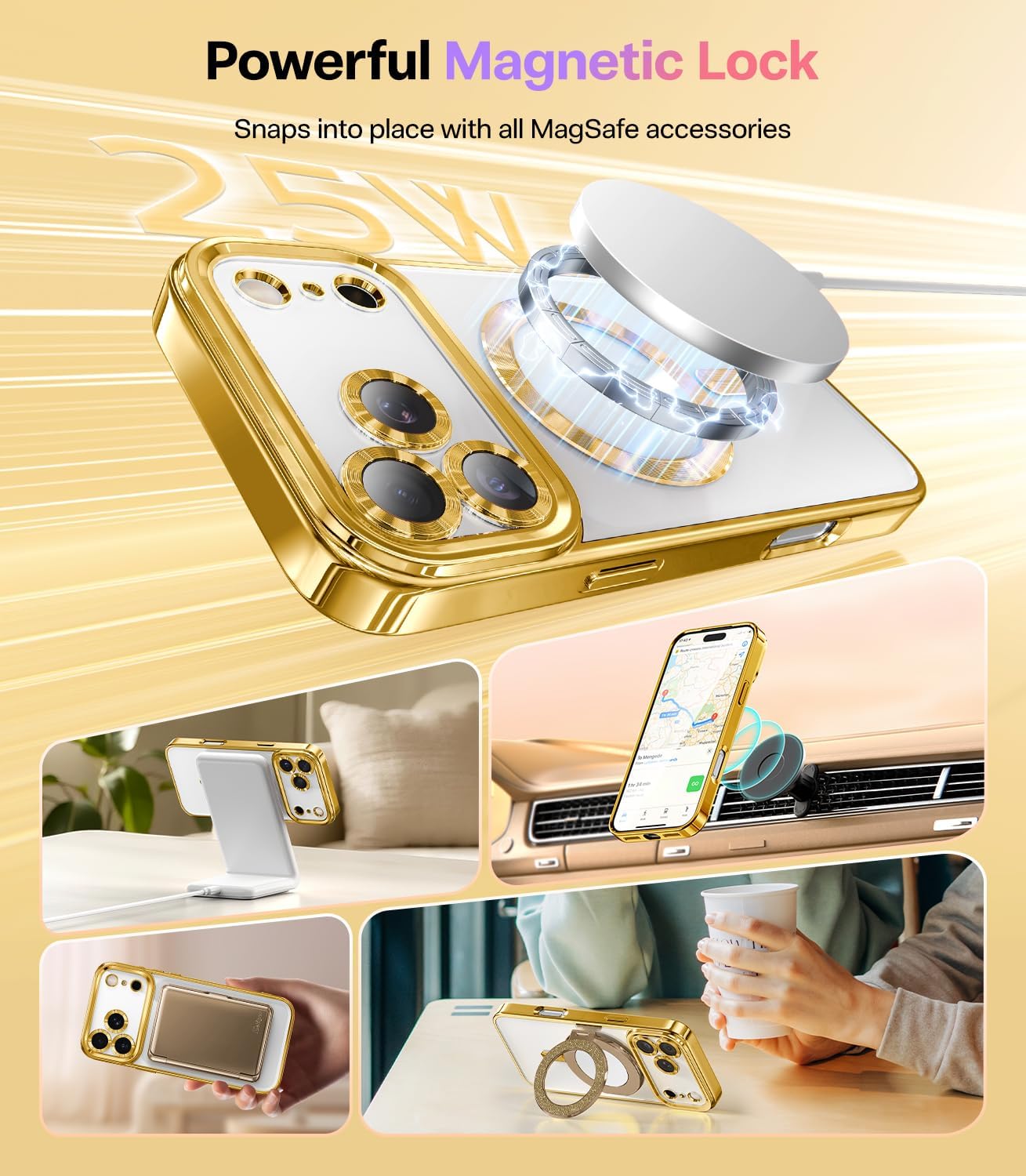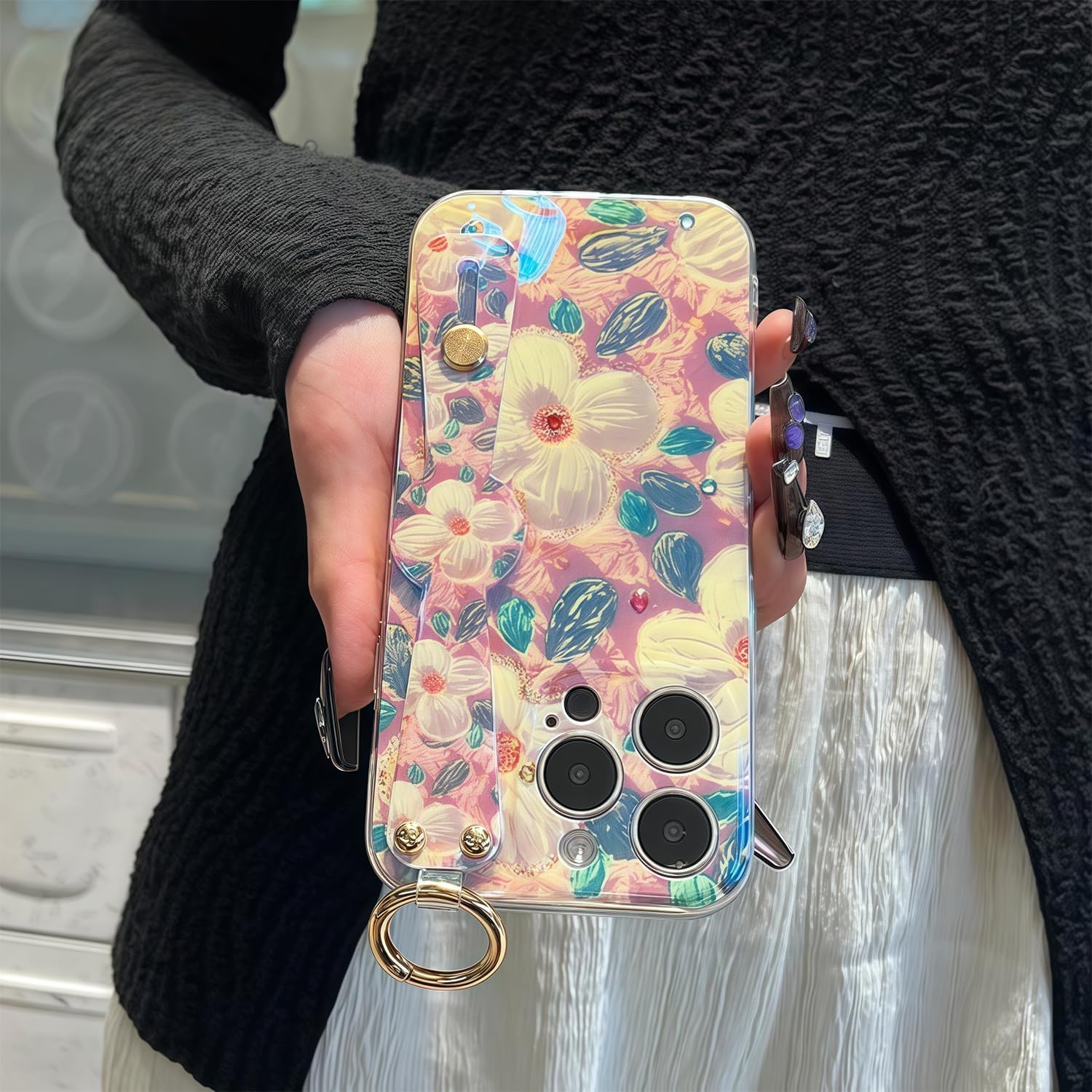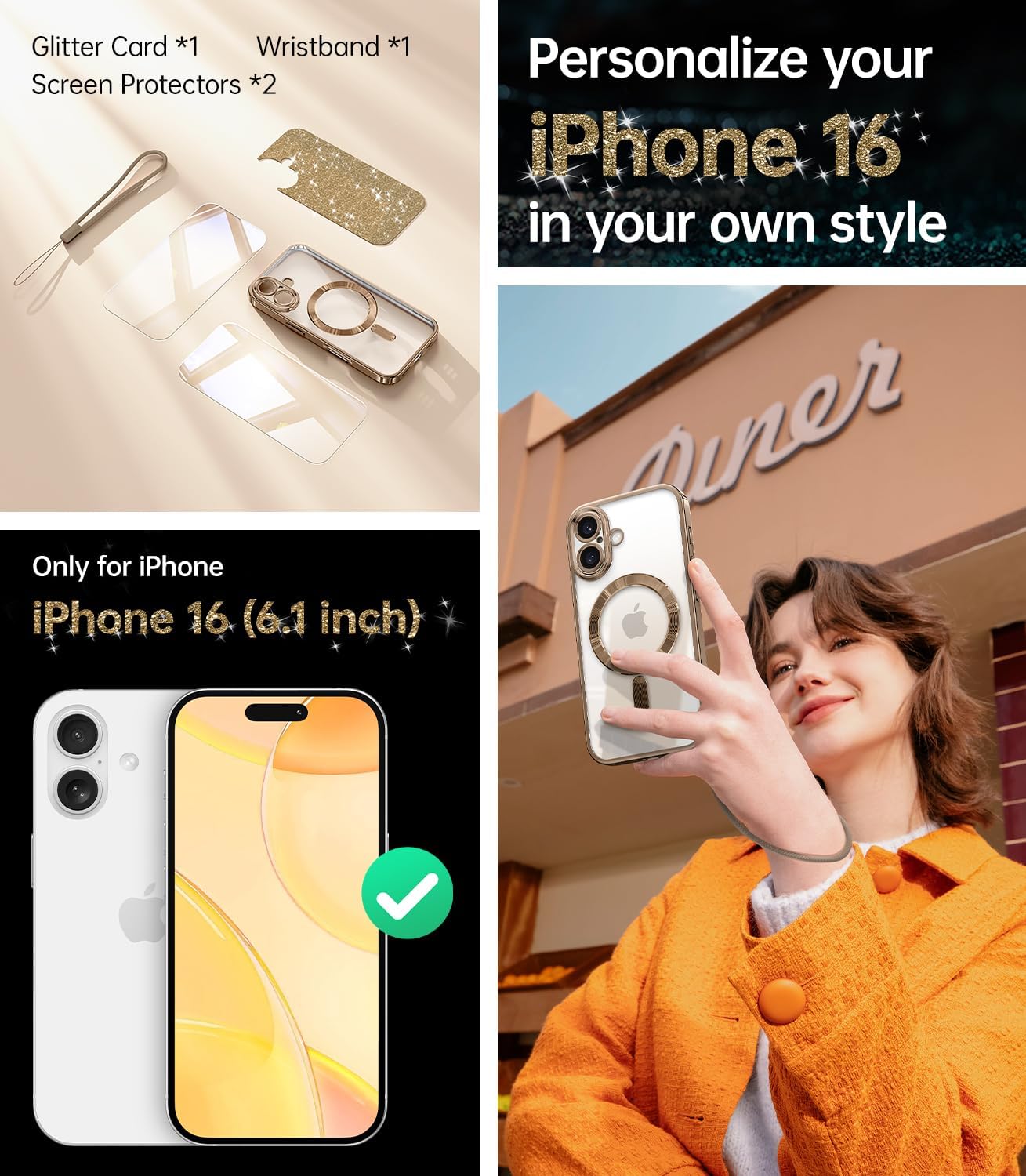 CAPRARO 适用于 iPhone 16 Pro 女士女孩手机壳,升级 [全摄像头保护] [兼容 MagSafe] 可爱波浪半透明哑光手机壳适用于 iPhone 16 Pro,棕色