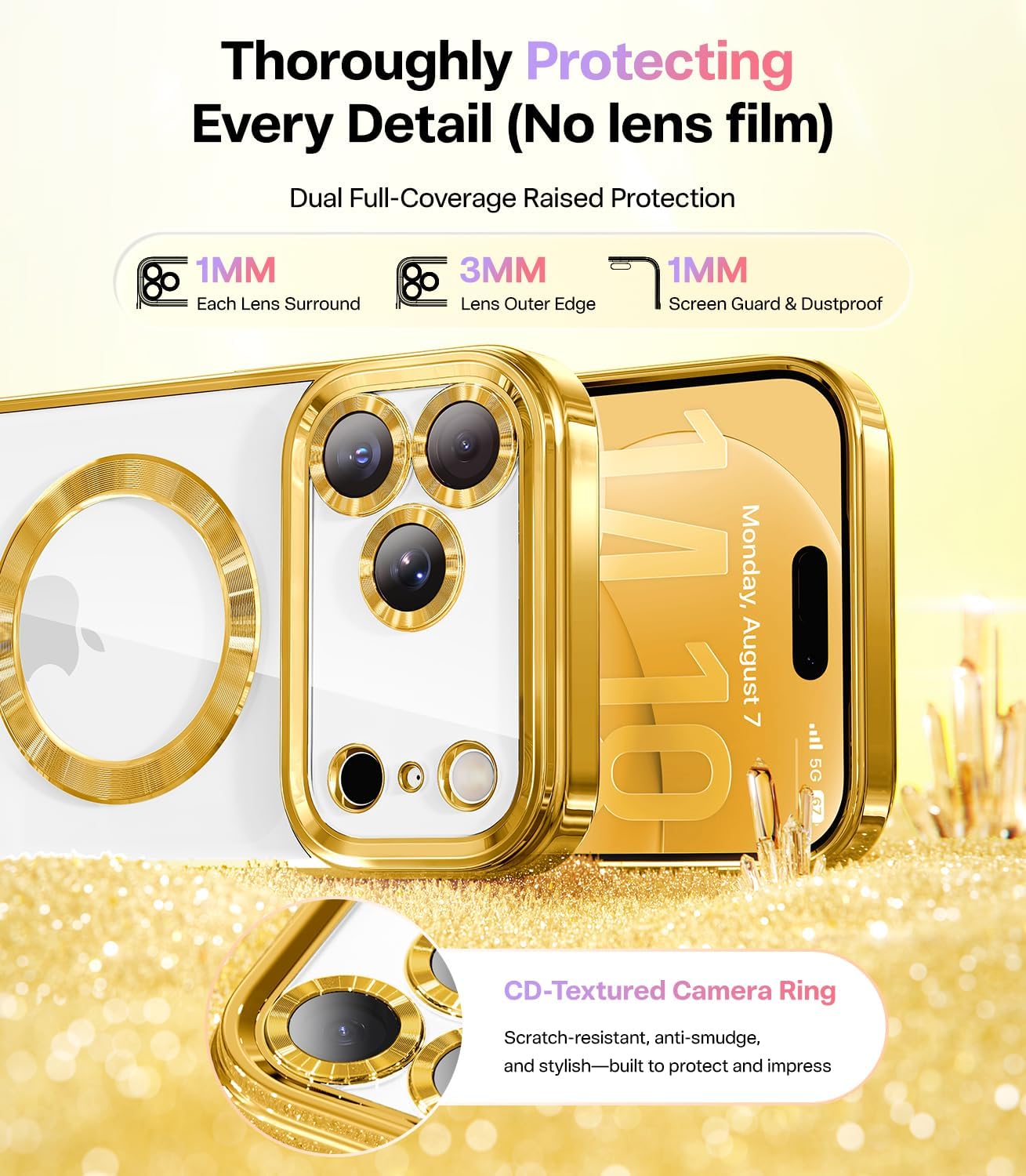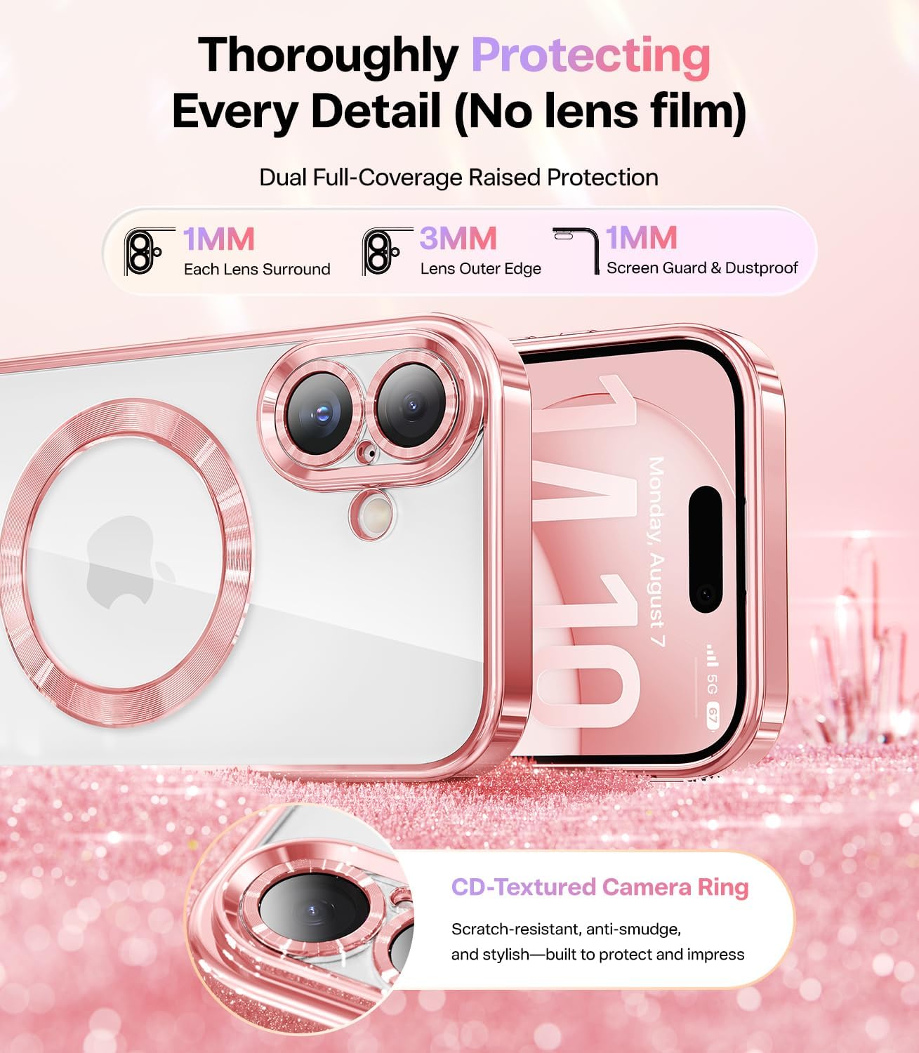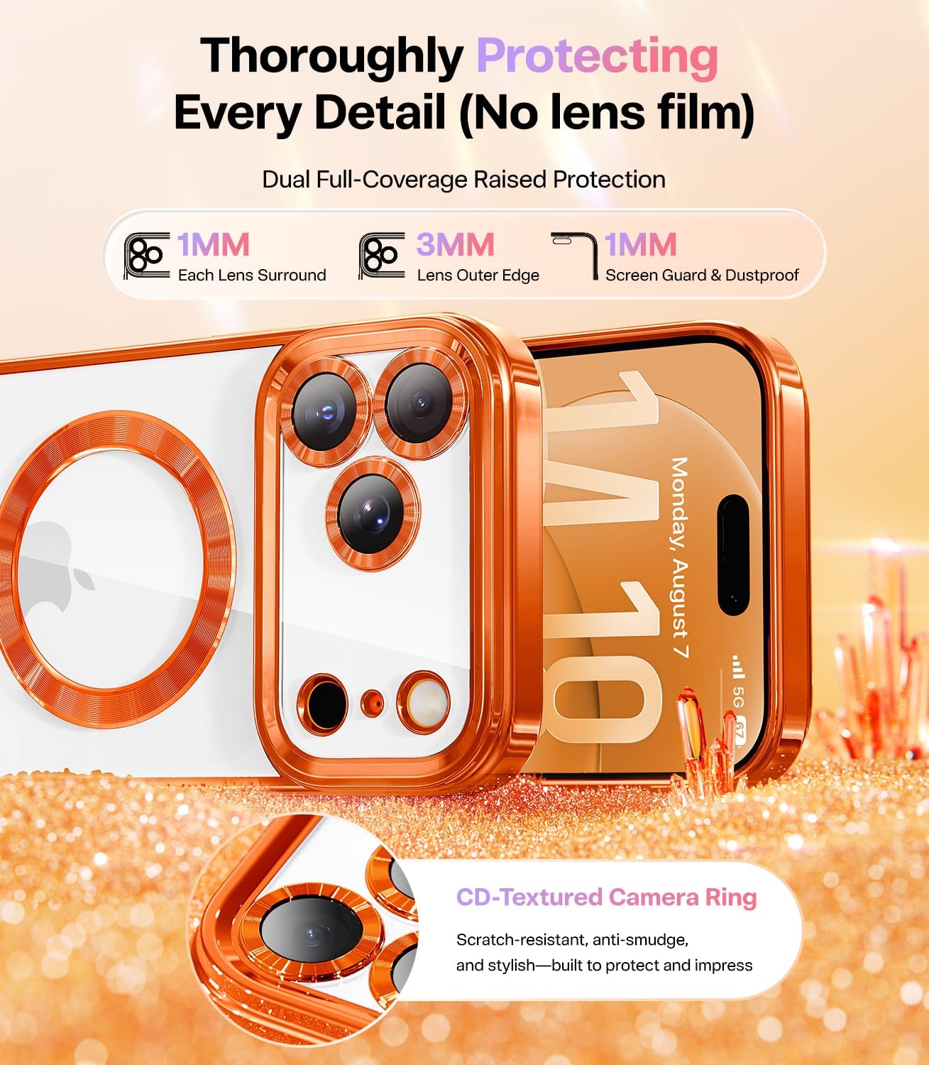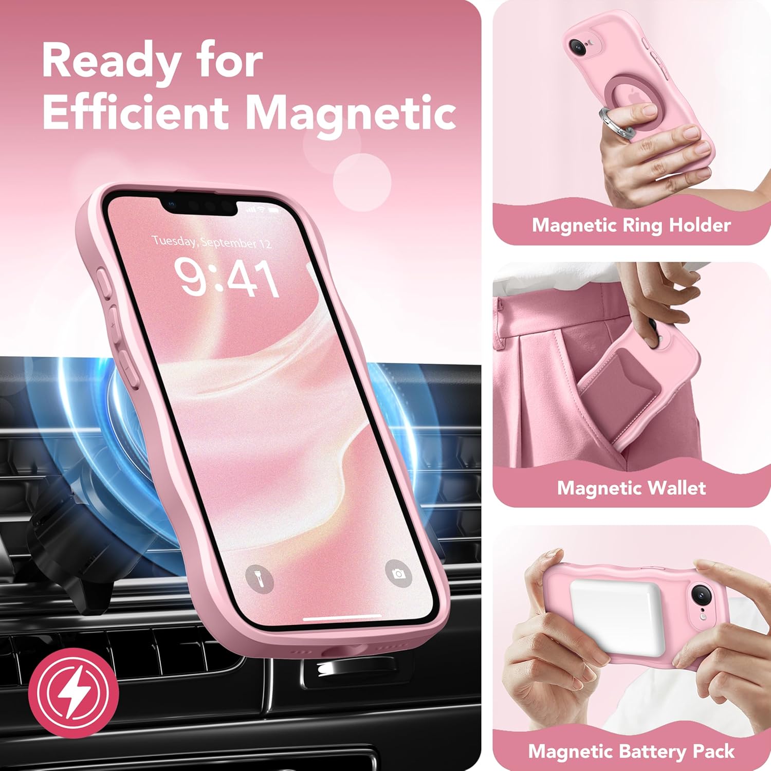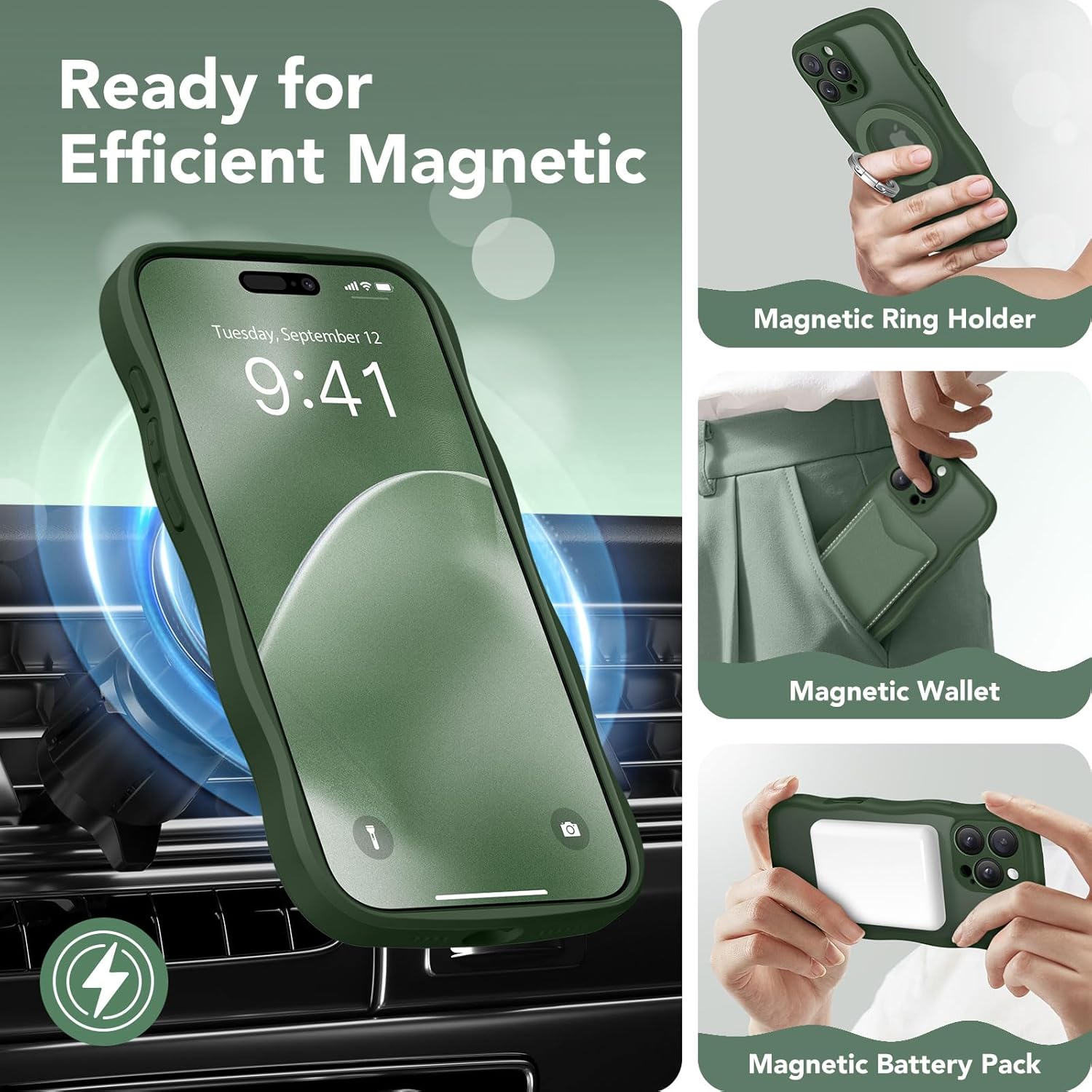 CAPRARO 适用于 iPhone 16 Pro 女士女孩手机壳,升级 [全摄像头保护] [兼容 MagSafe] 可爱波浪半透明哑光手机壳适用于 iPhone 16 Pro,棕色