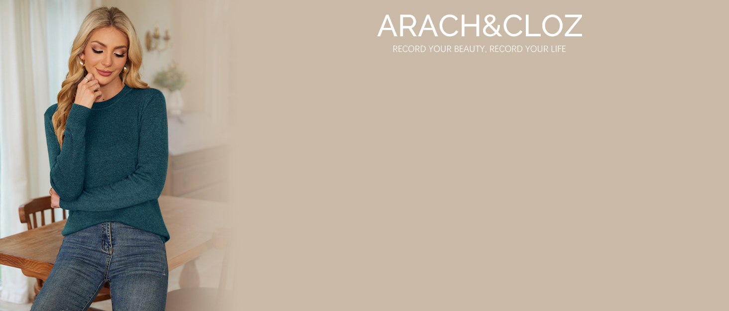 Arach&Cloz Women's Wool Blend Classic Crew Neck Casual Fall Sweaters
