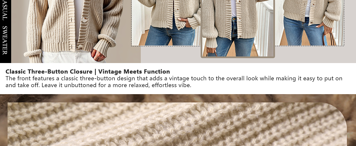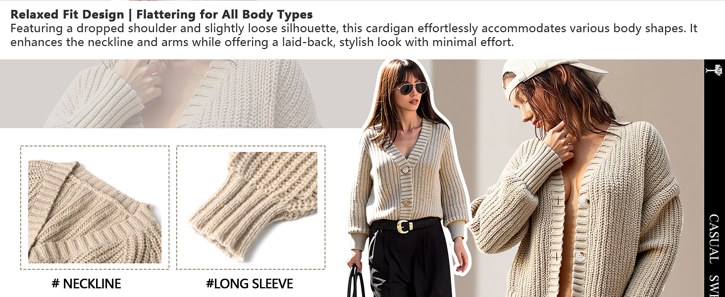 Women’s Chunky Knit Cardigan – Waffle Knit Button Down Oversized V Neck Fall Sweater for Casual Layering