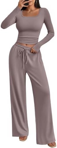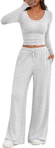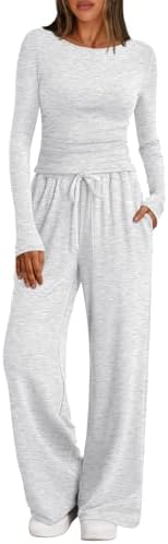 Trendy Queen Women's 2 Piece Matching Lounge Set Long Sleeve Slightly Crop Top Wide Leg Pants Casual Sweatsuit