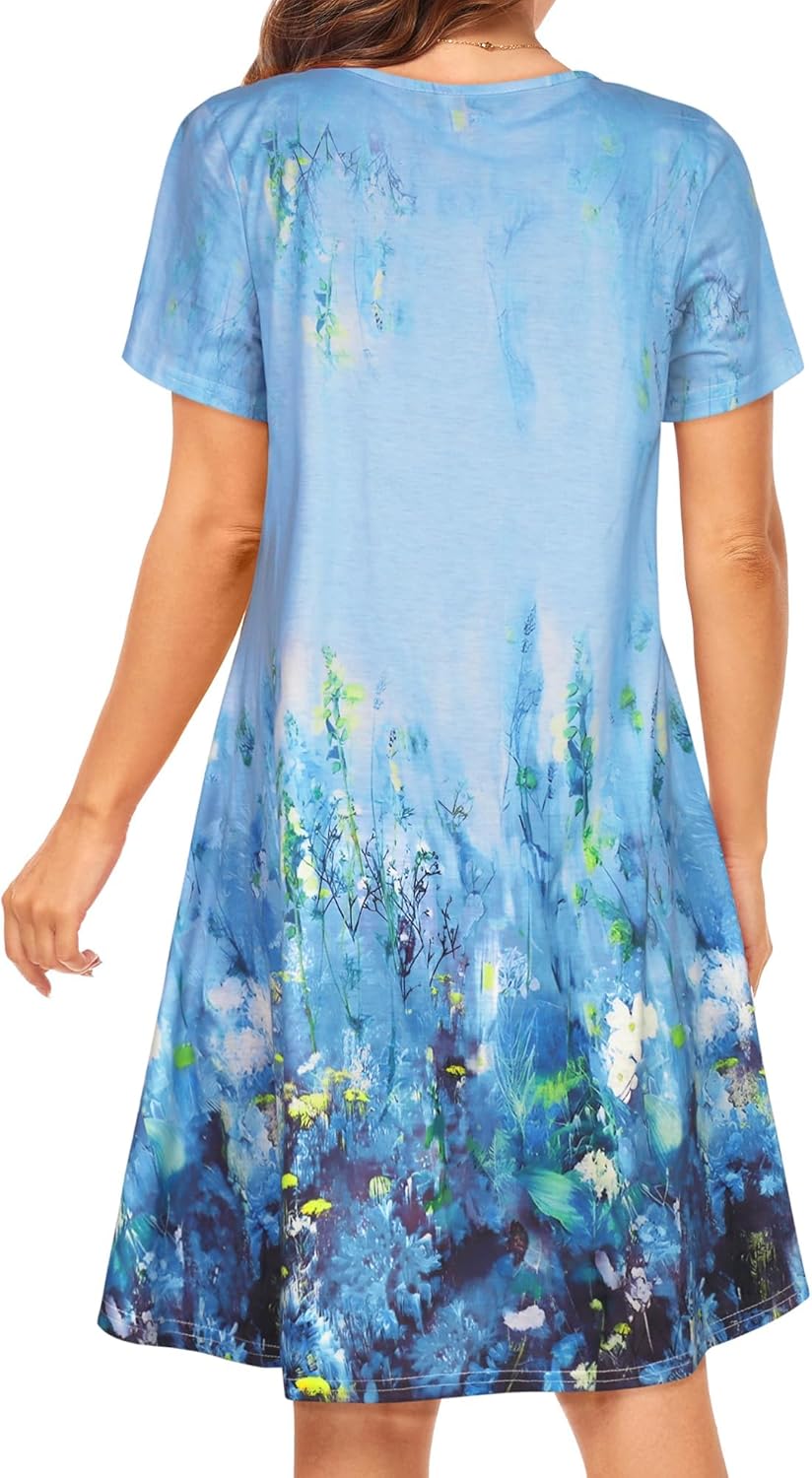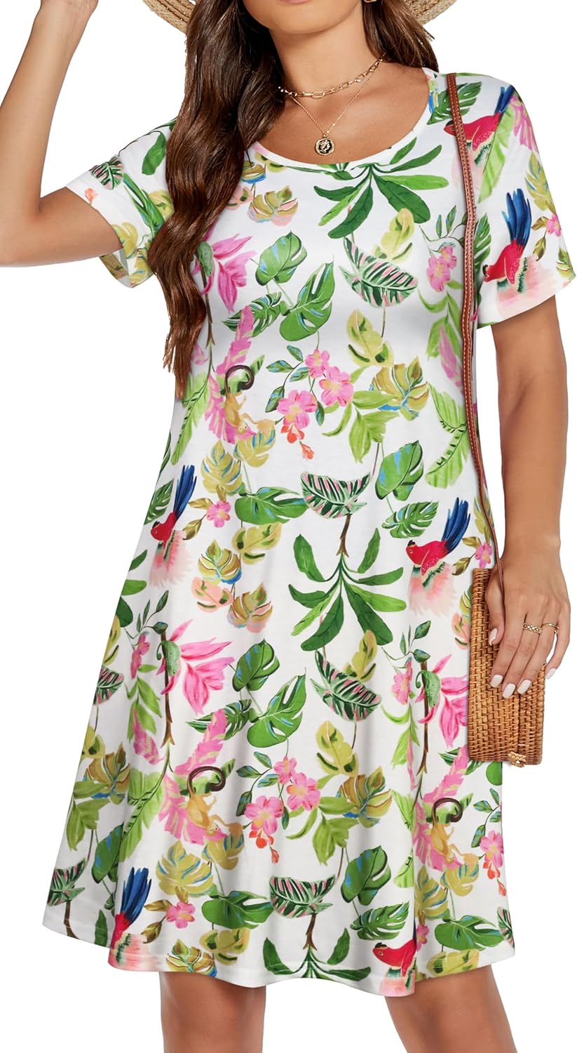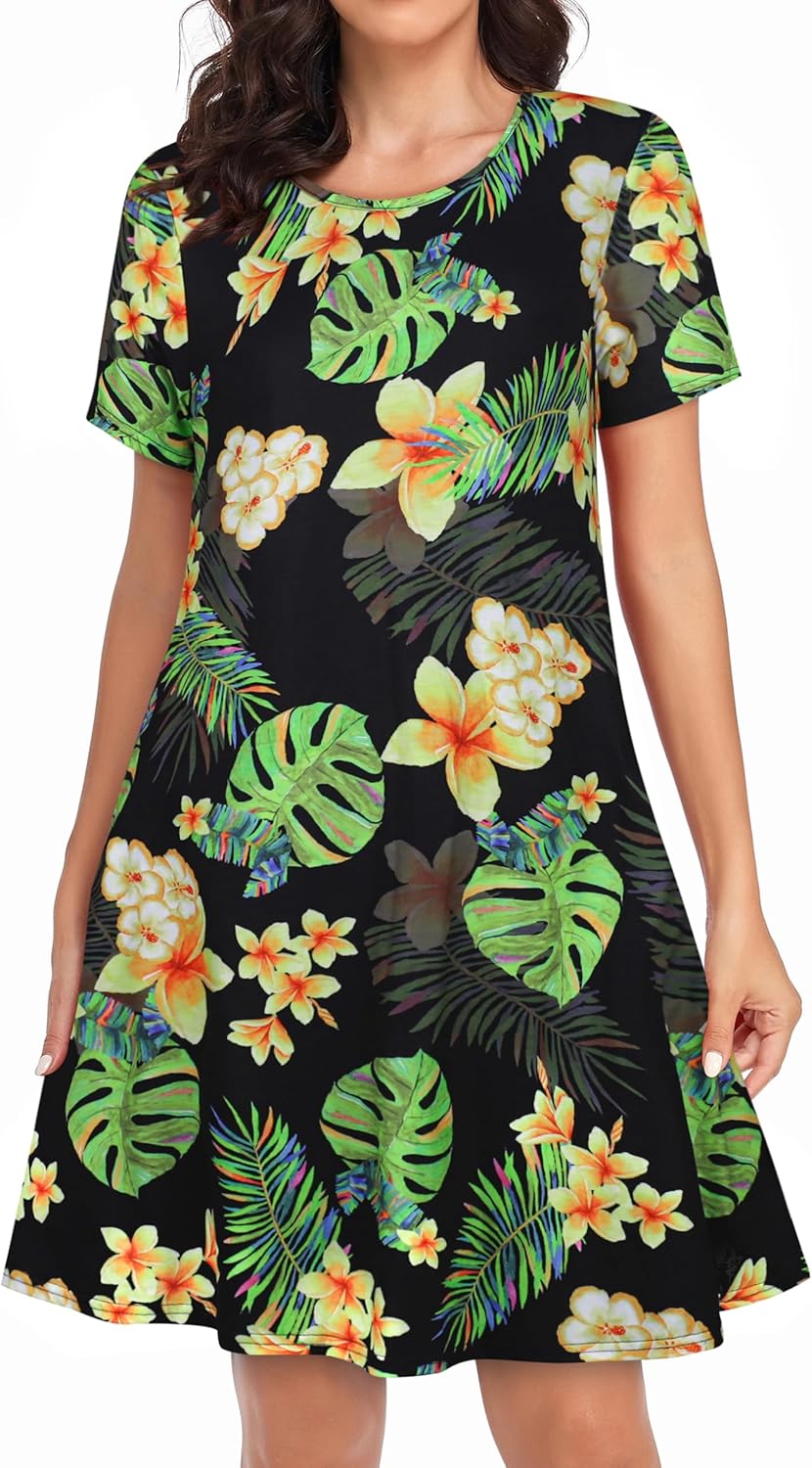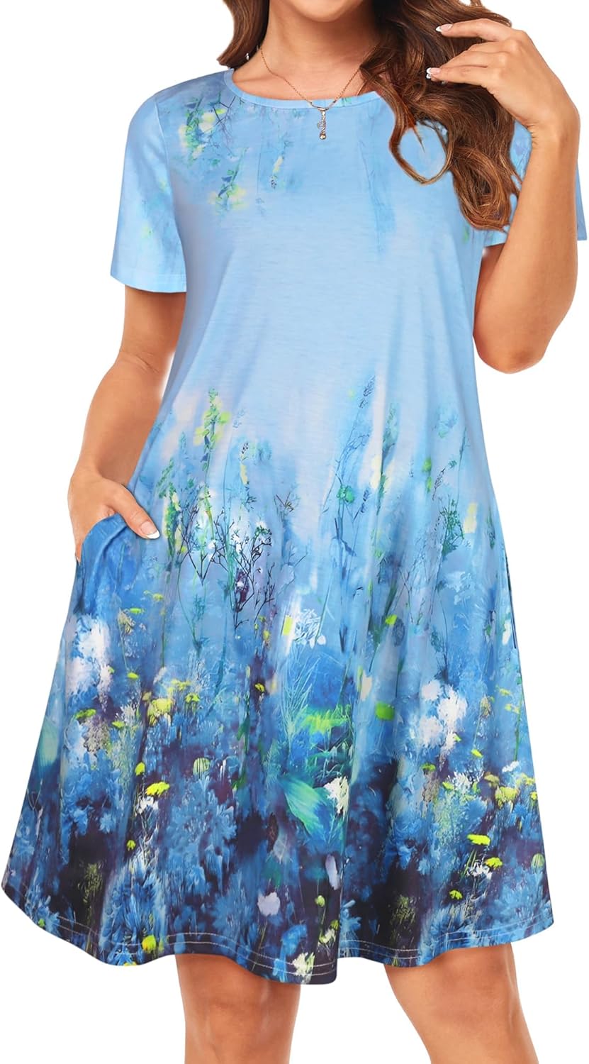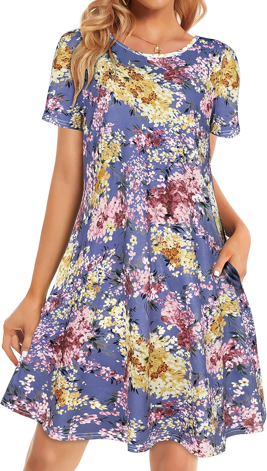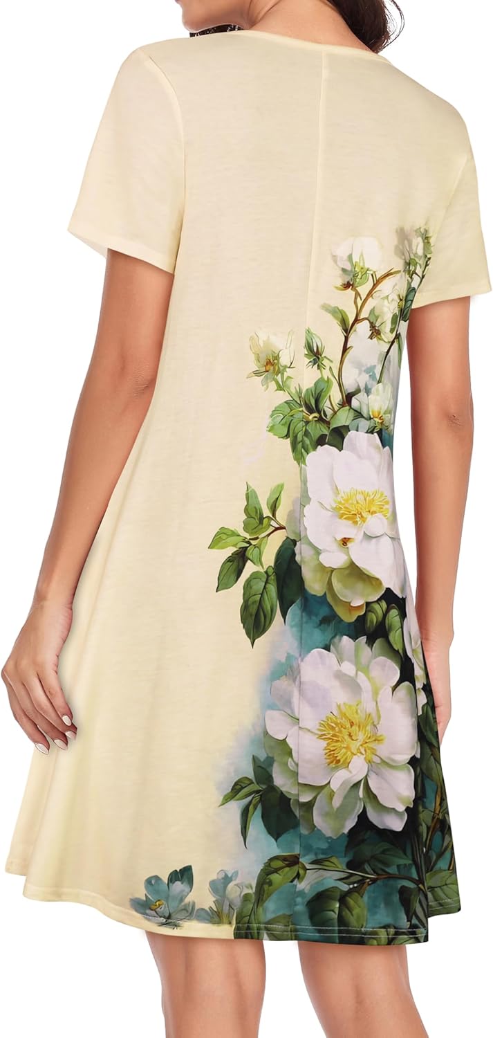Womens Summer Dresses Beach Casual Loose Tshirt Floral Short Sleeve Flowy Pockets Sundresses