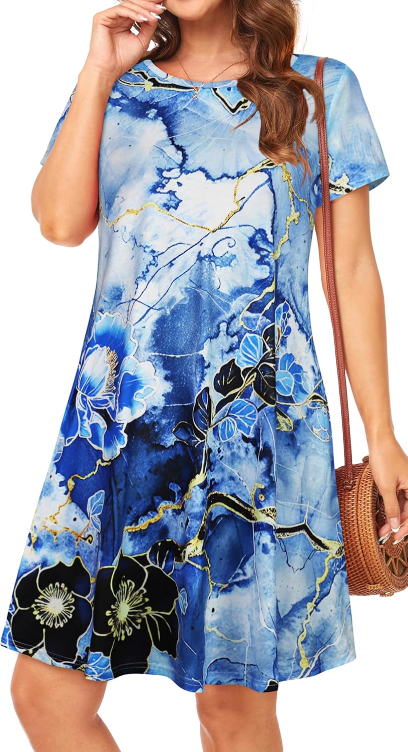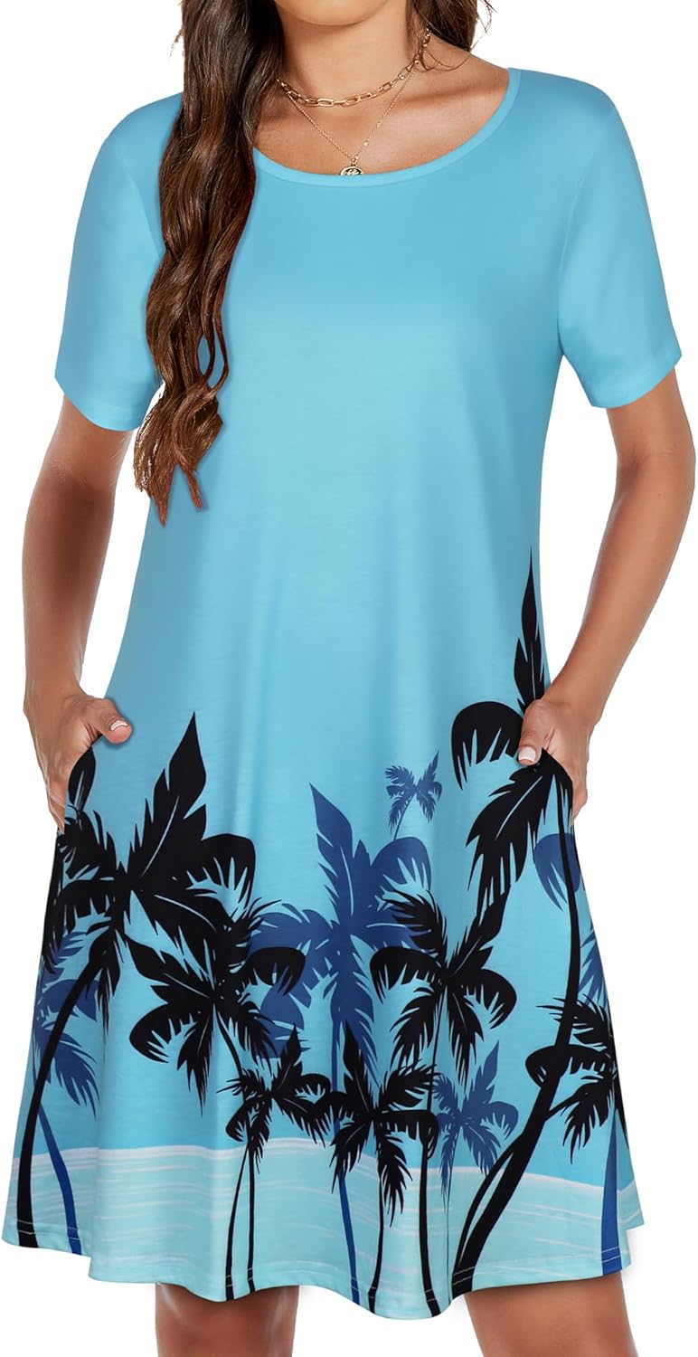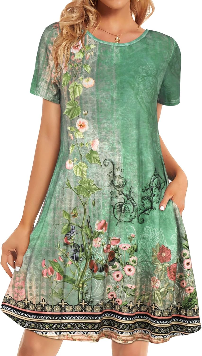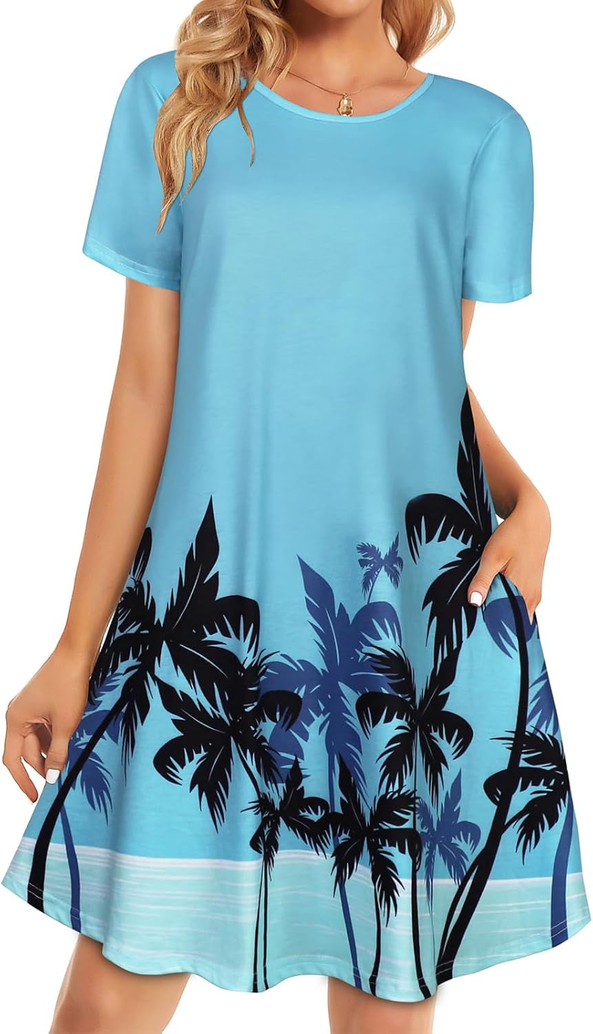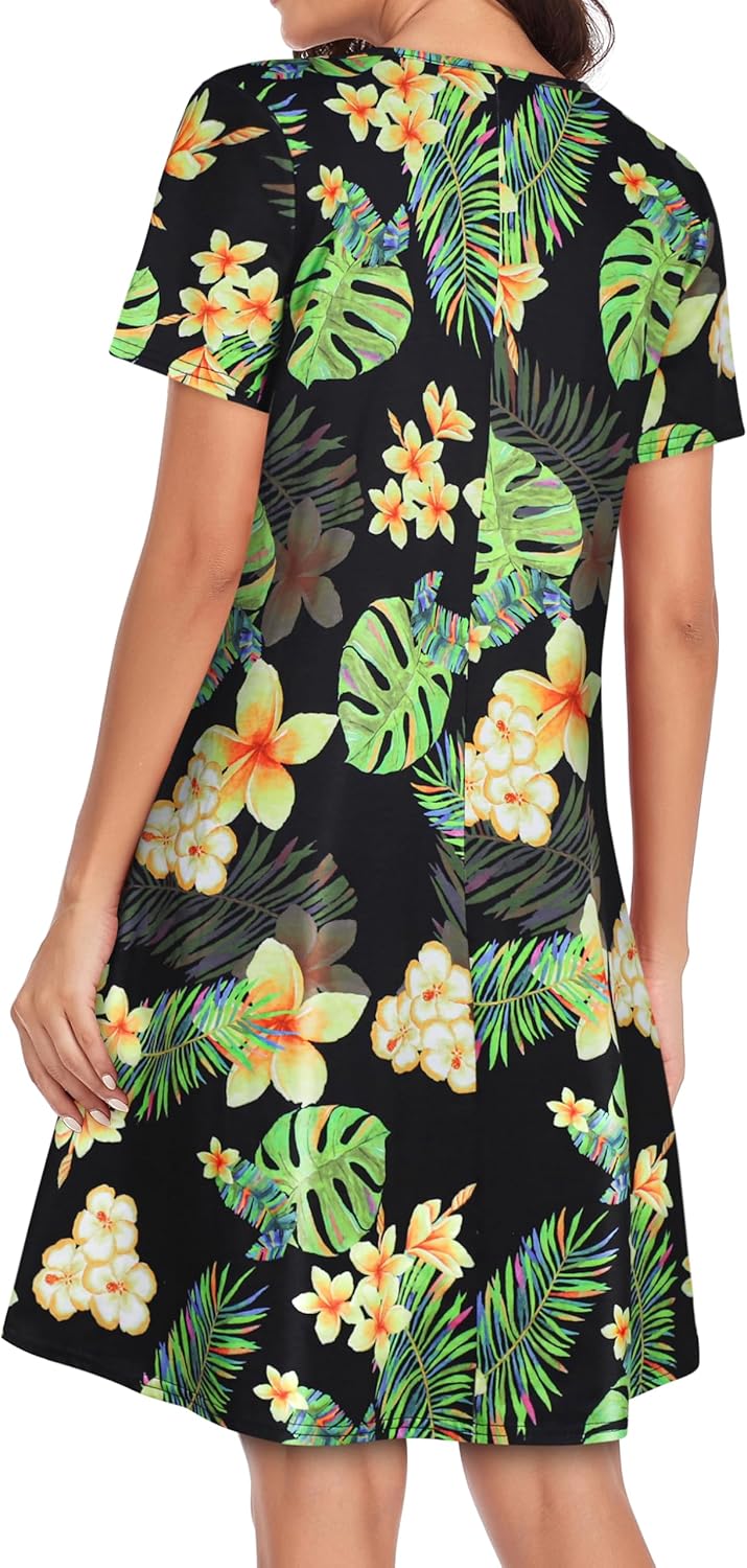 Womens Summer Dresses Beach Casual Loose Tshirt Floral Short Sleeve Flowy Pockets Sundresses