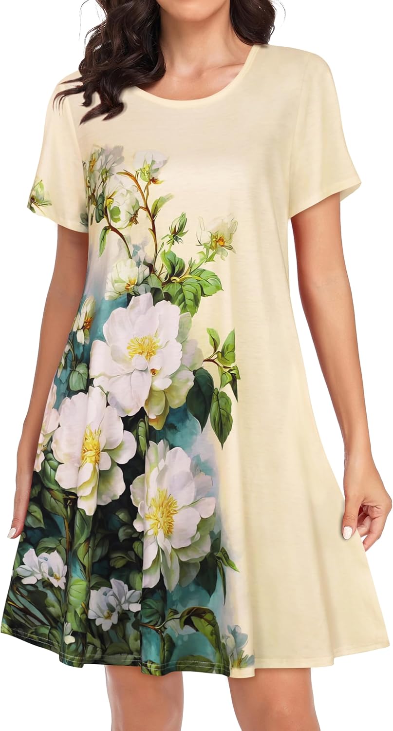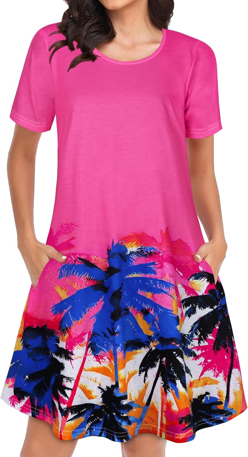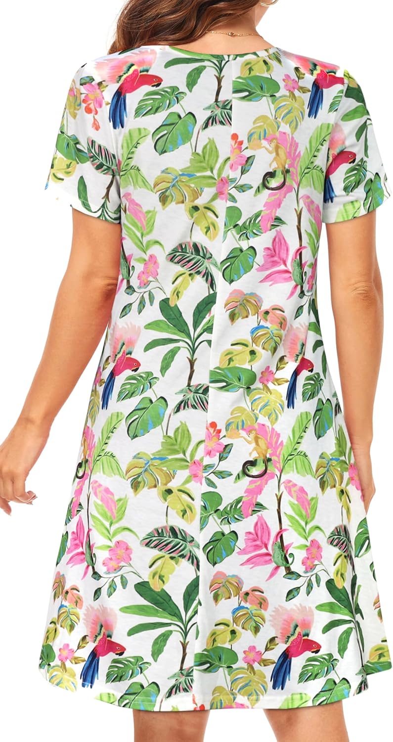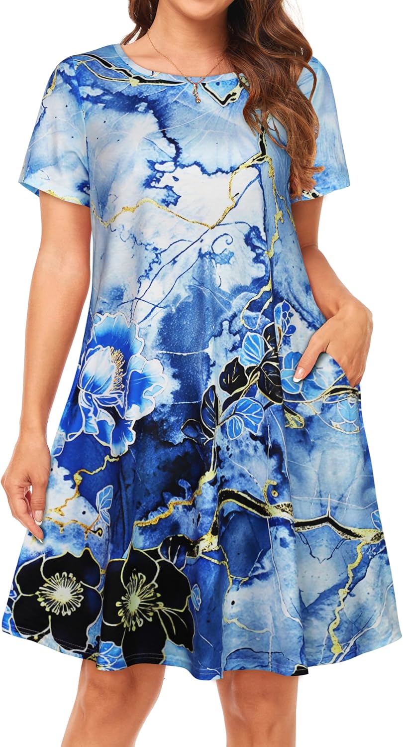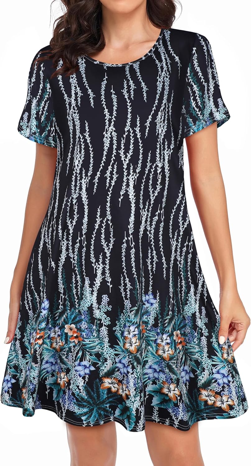 Womens Summer Dresses Beach Casual Loose Tshirt Floral Short Sleeve Flowy Pockets Sundresses