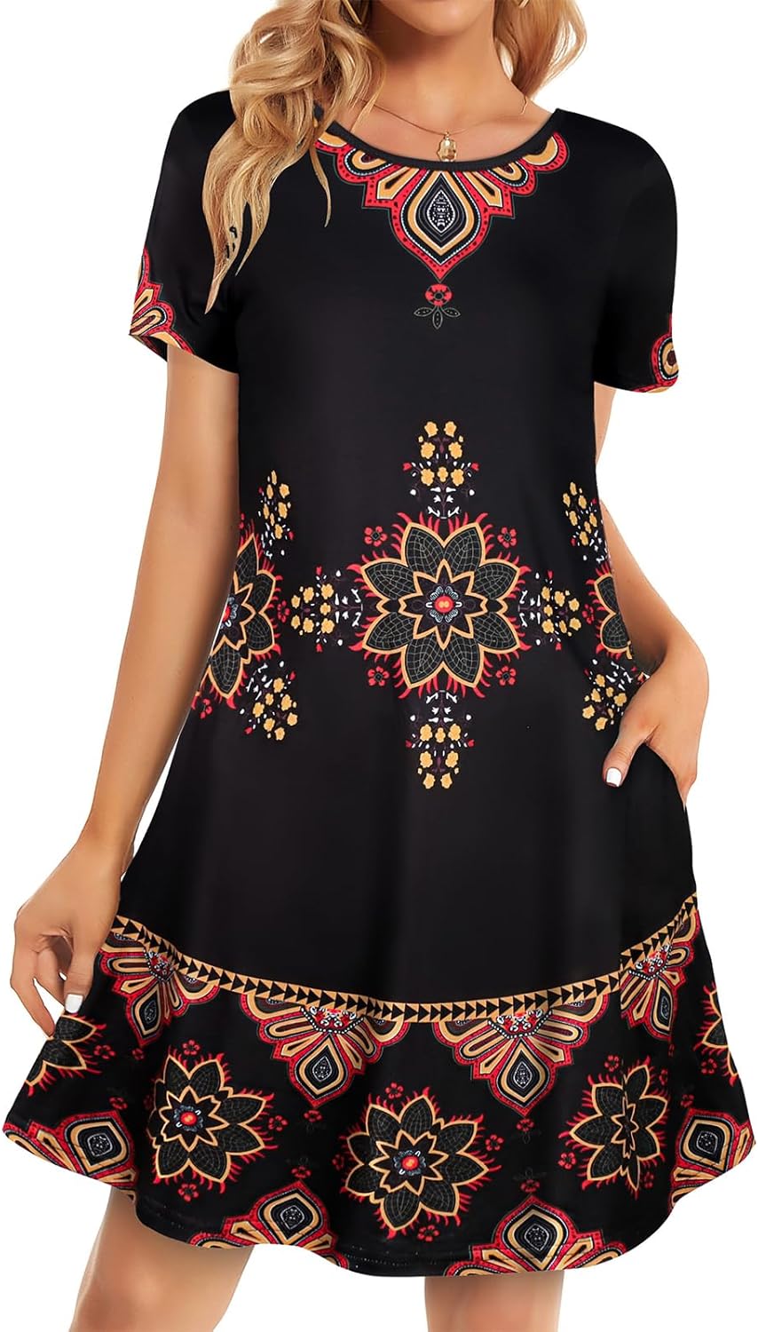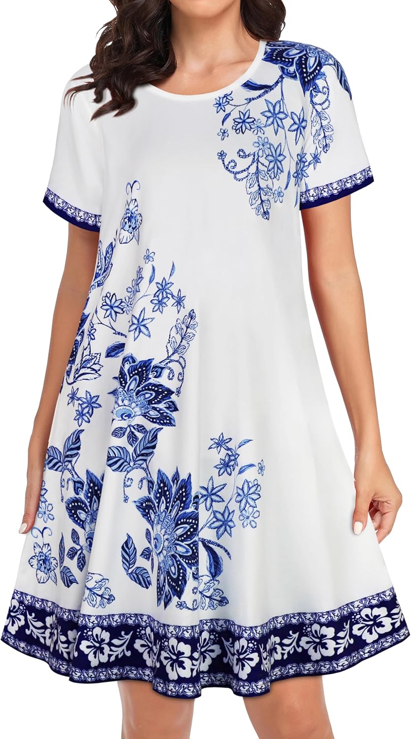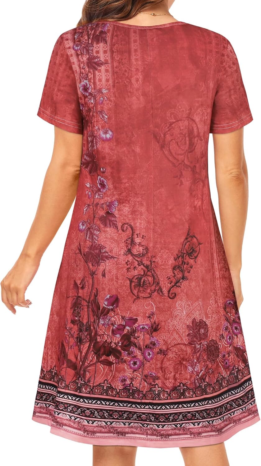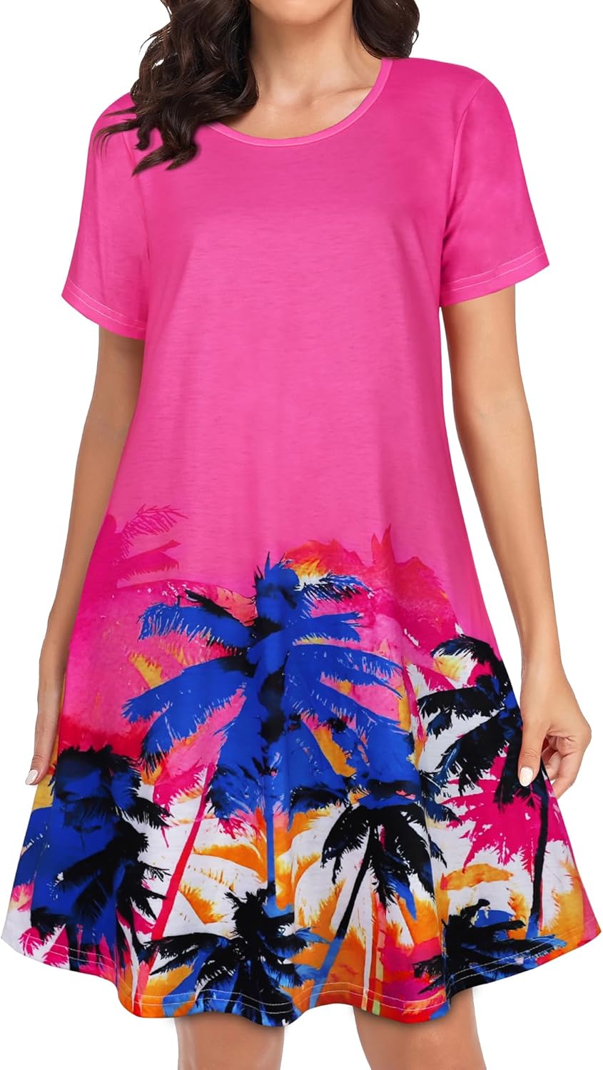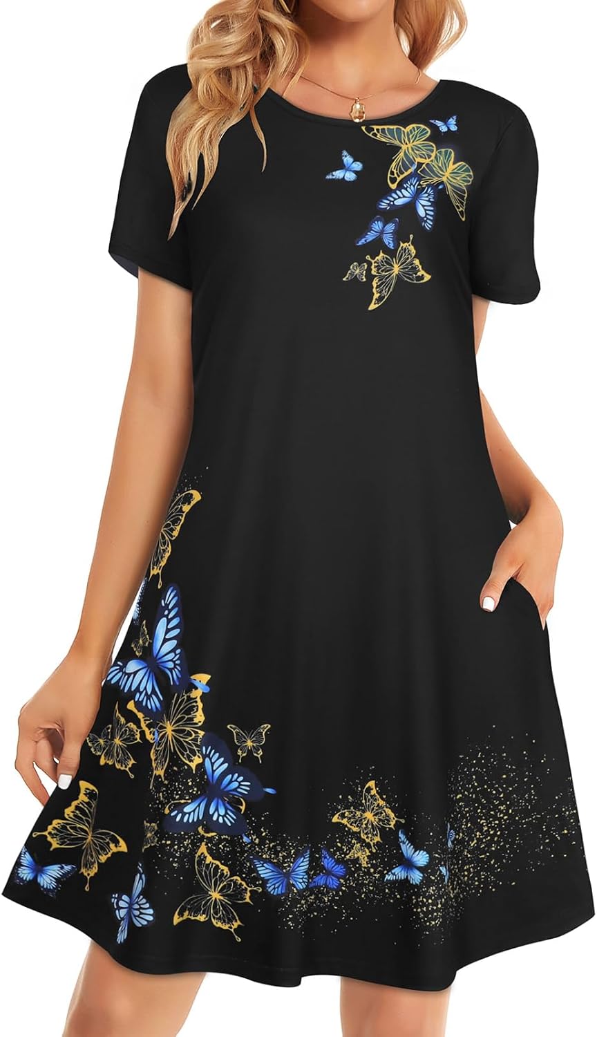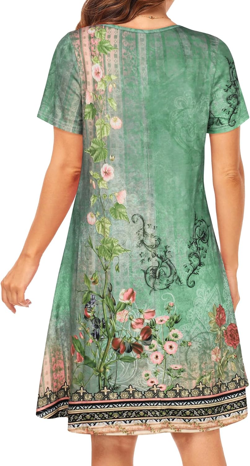 Womens Summer Dresses Beach Casual Loose Tshirt Floral Short Sleeve Flowy Pockets Sundresses