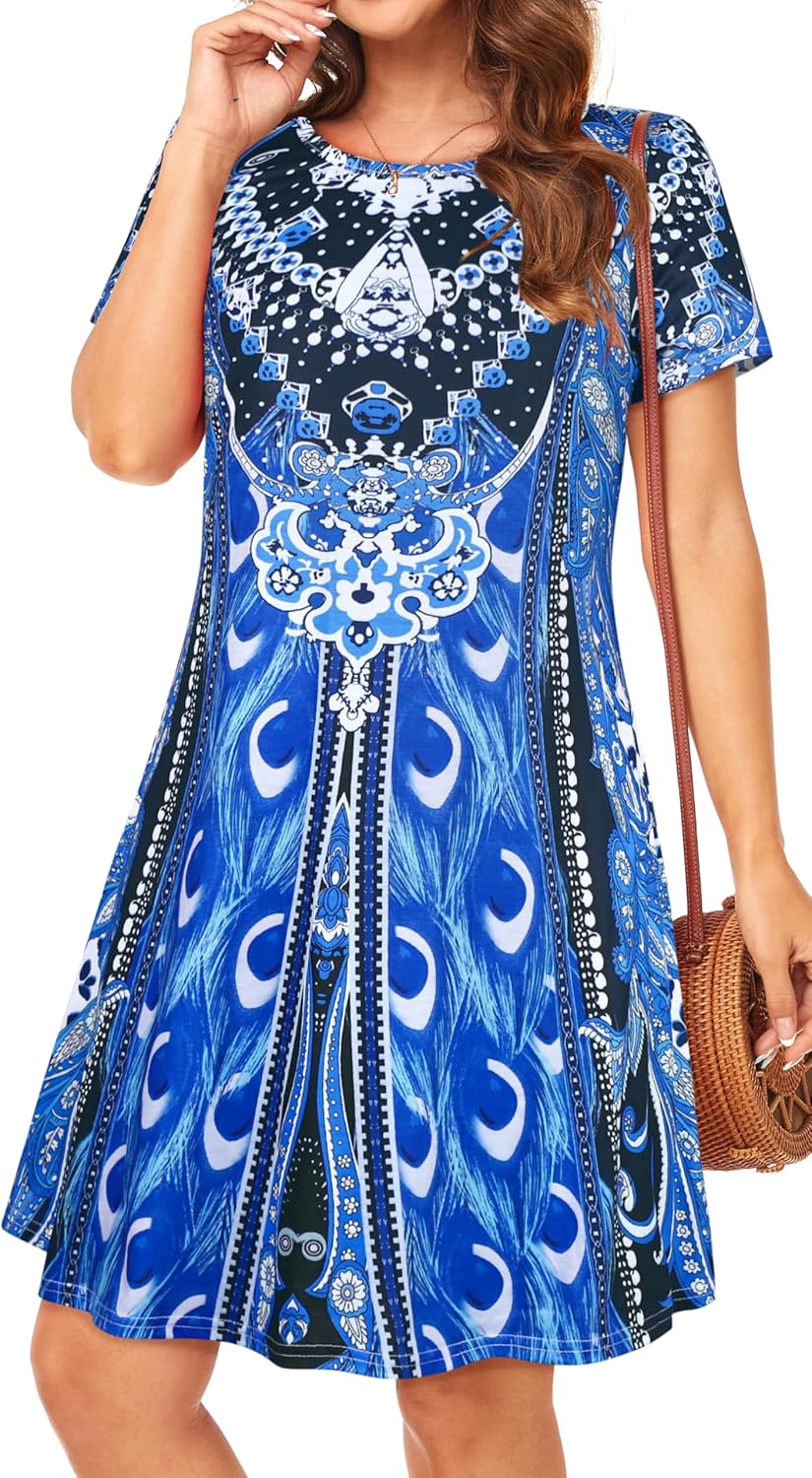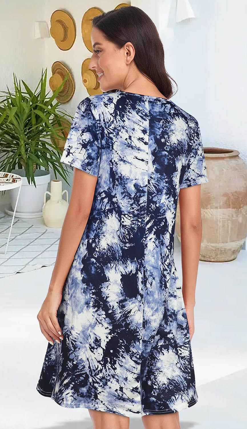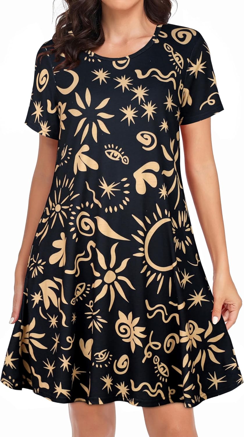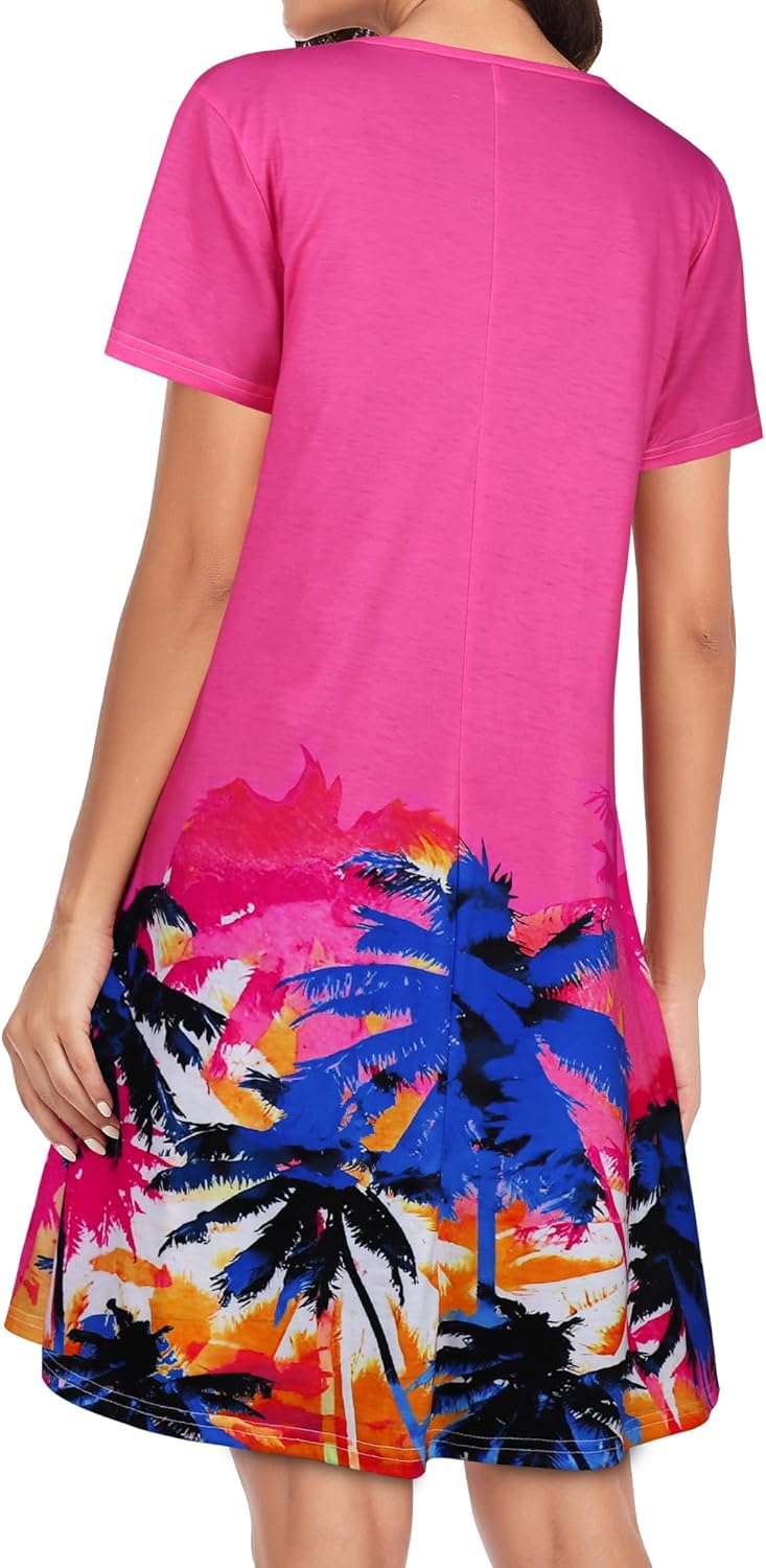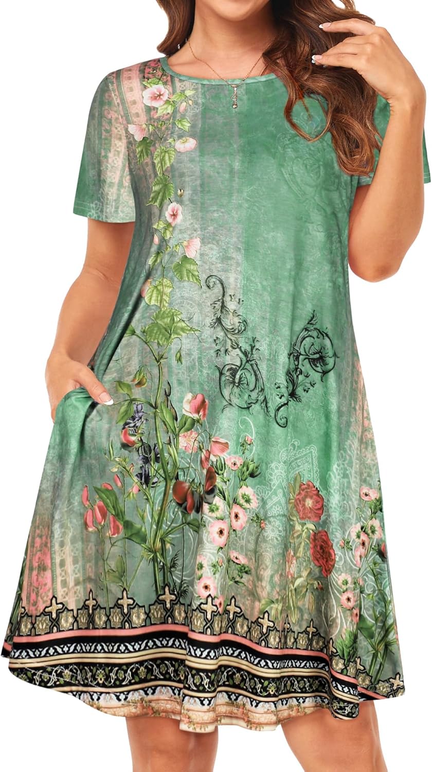 Womens Summer Dresses Beach Casual Loose Tshirt Floral Short Sleeve Flowy Pockets Sundresses