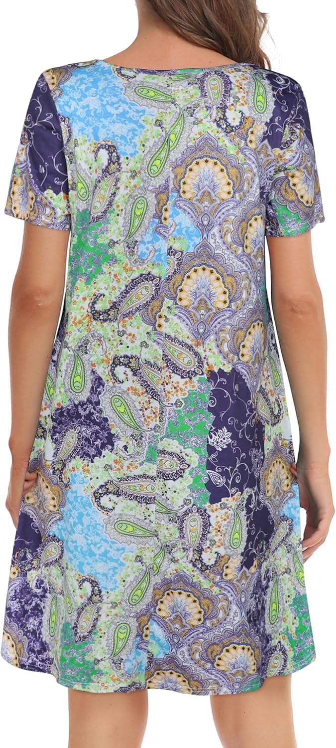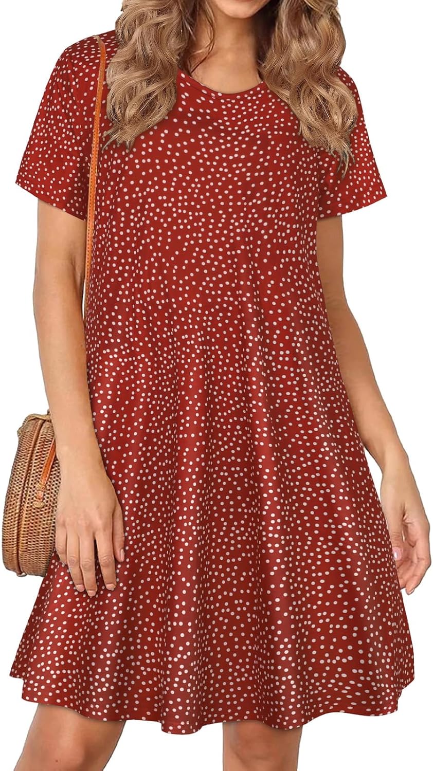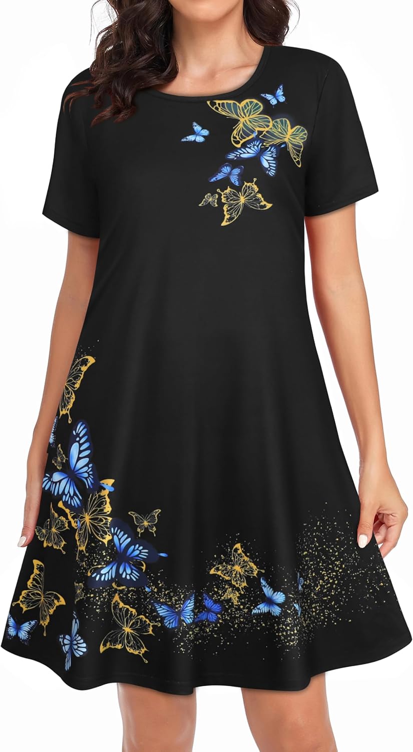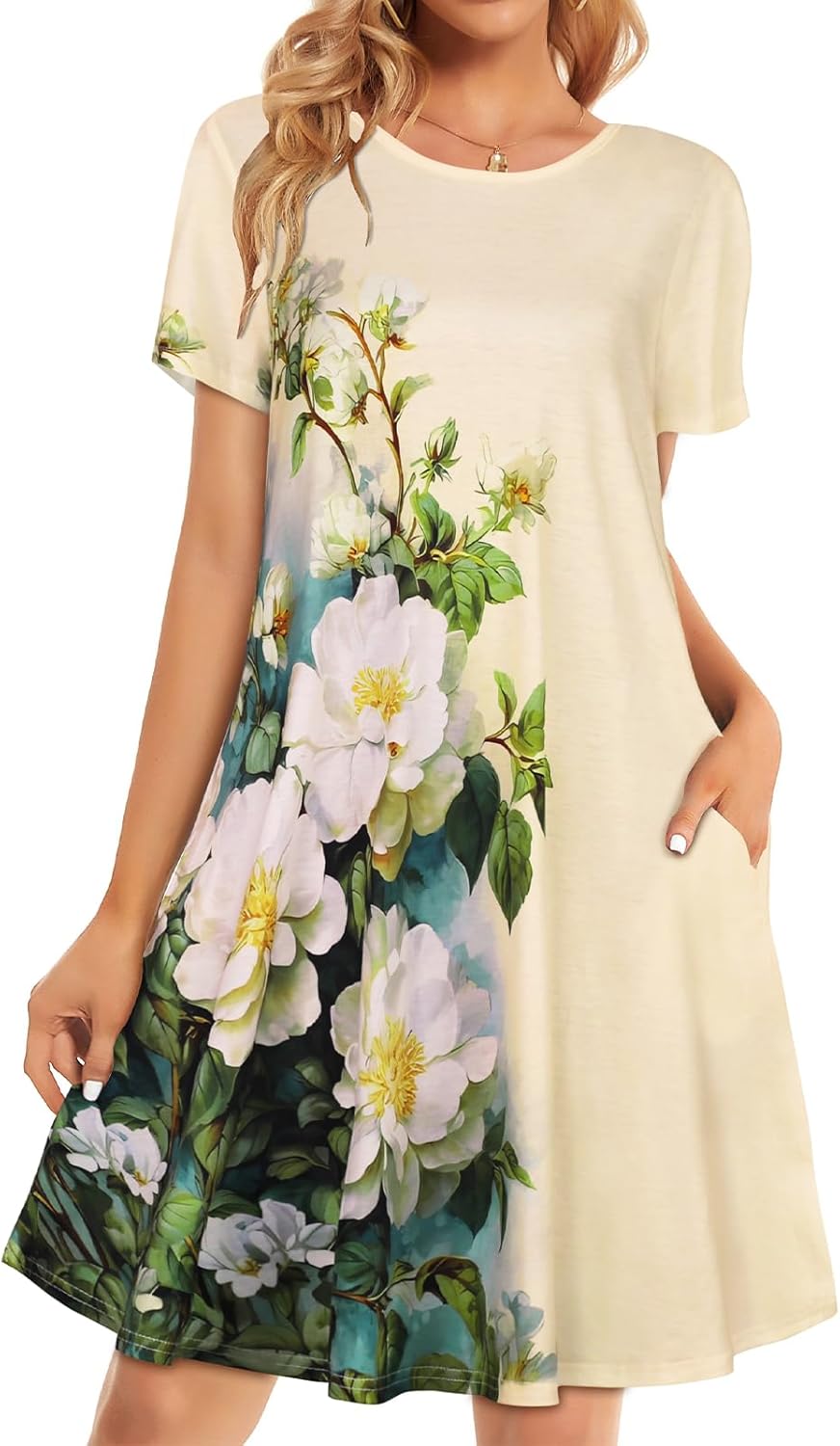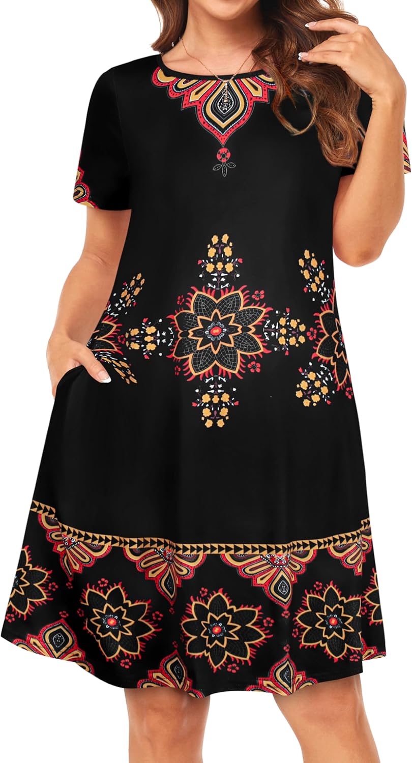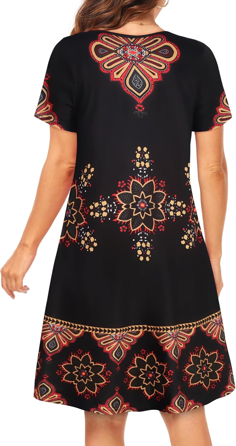Womens Summer Dresses Beach Casual Loose Tshirt Floral Short Sleeve Flowy Pockets Sundresses