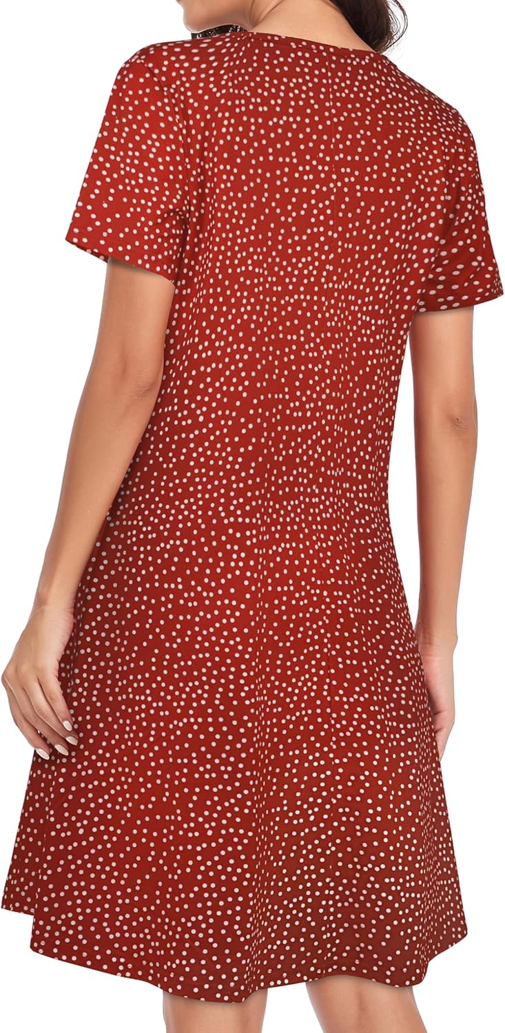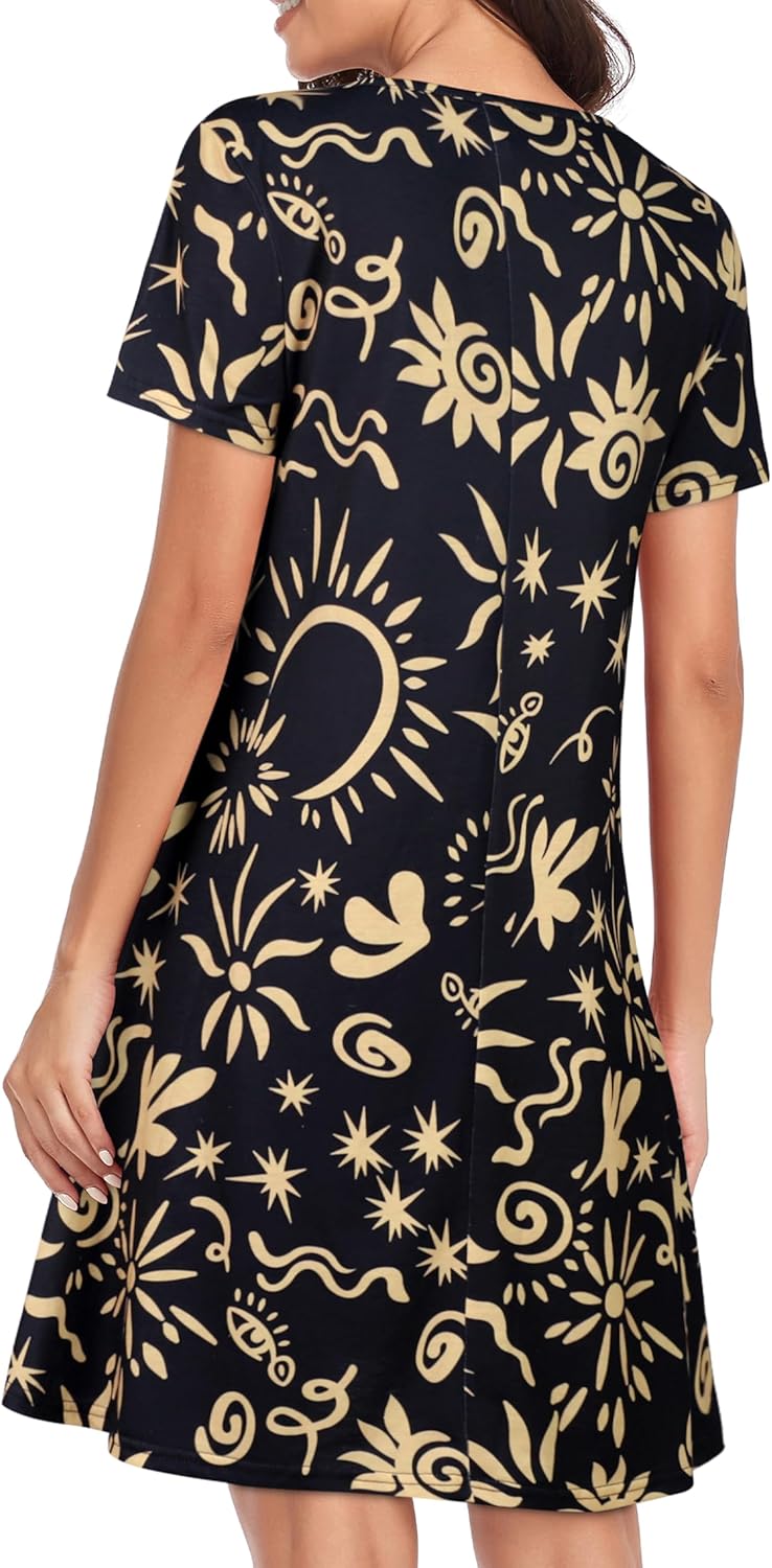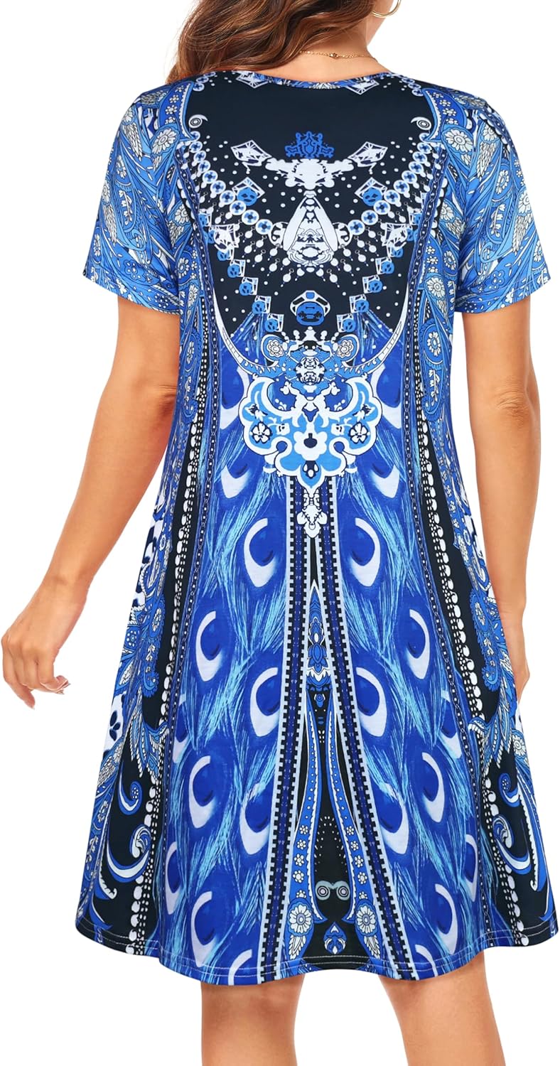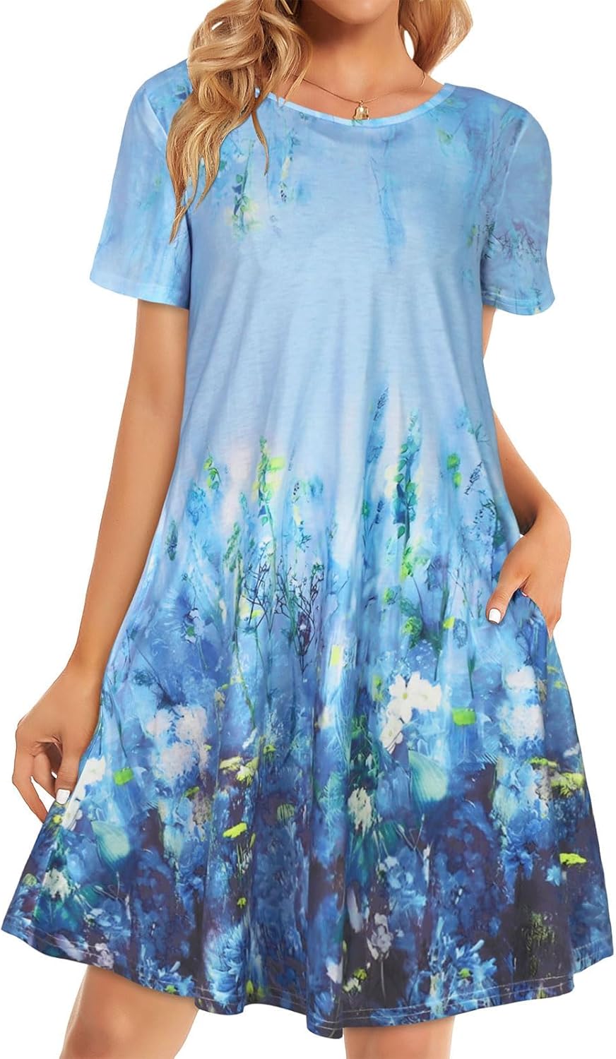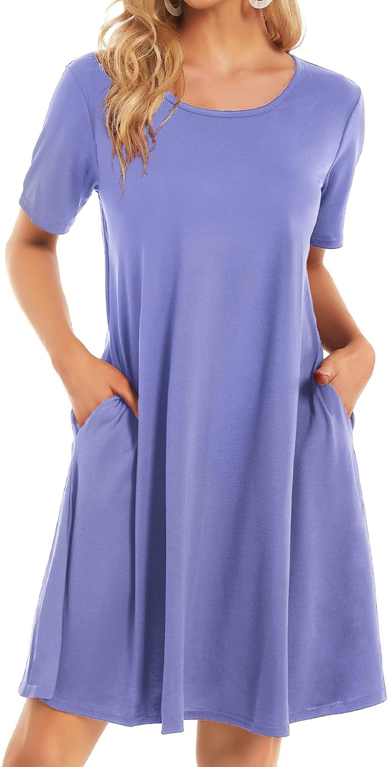 Womens Summer Dresses Beach Casual Loose Tshirt Floral Short Sleeve Flowy Pockets Sundresses