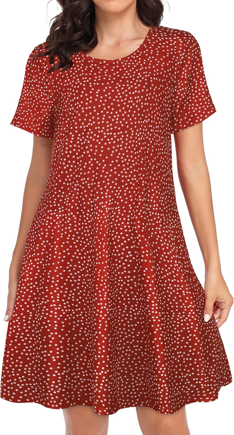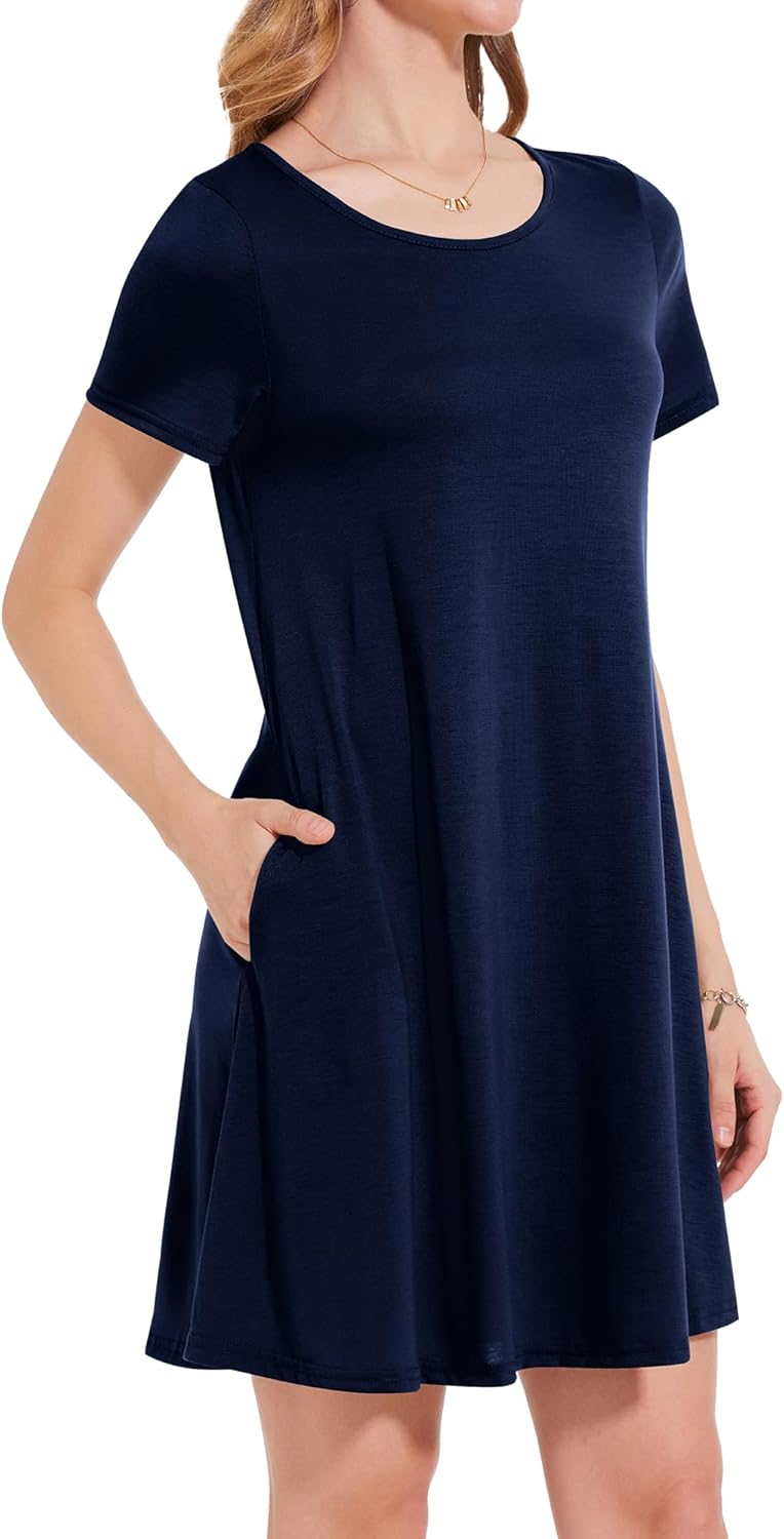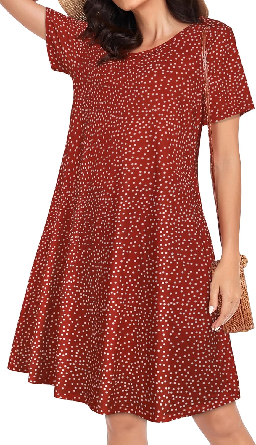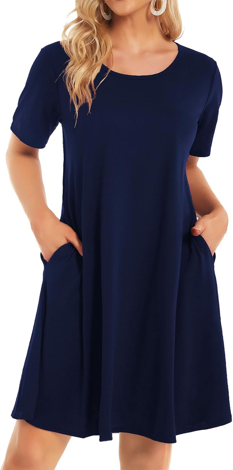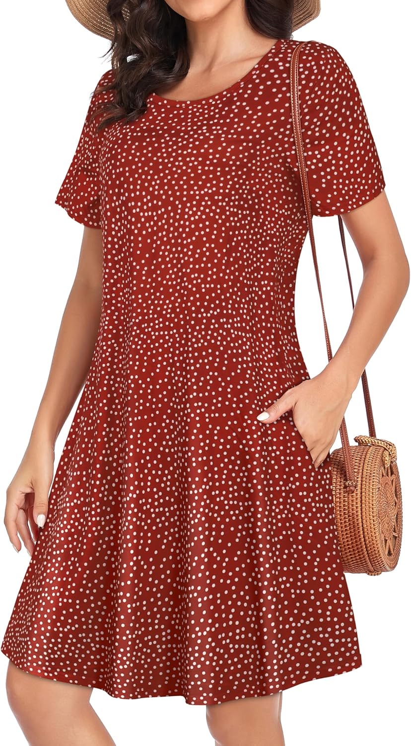 Womens Summer Dresses Beach Casual Loose Tshirt Floral Short Sleeve Flowy Pockets Sundresses