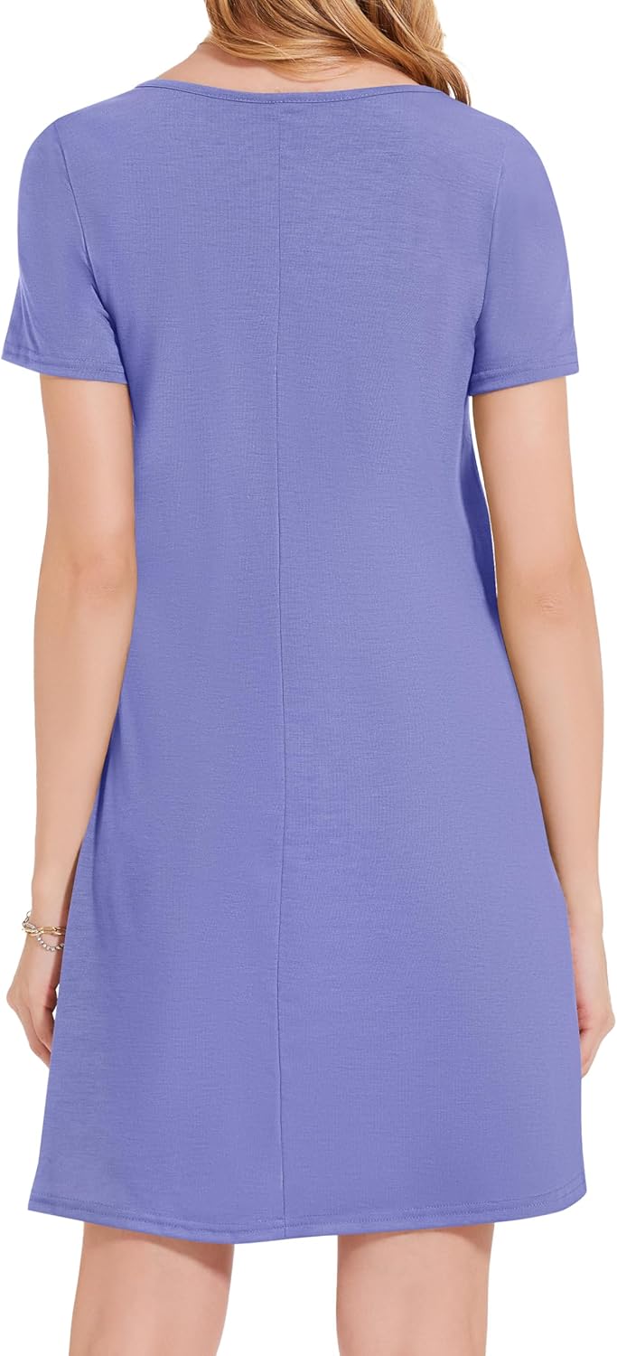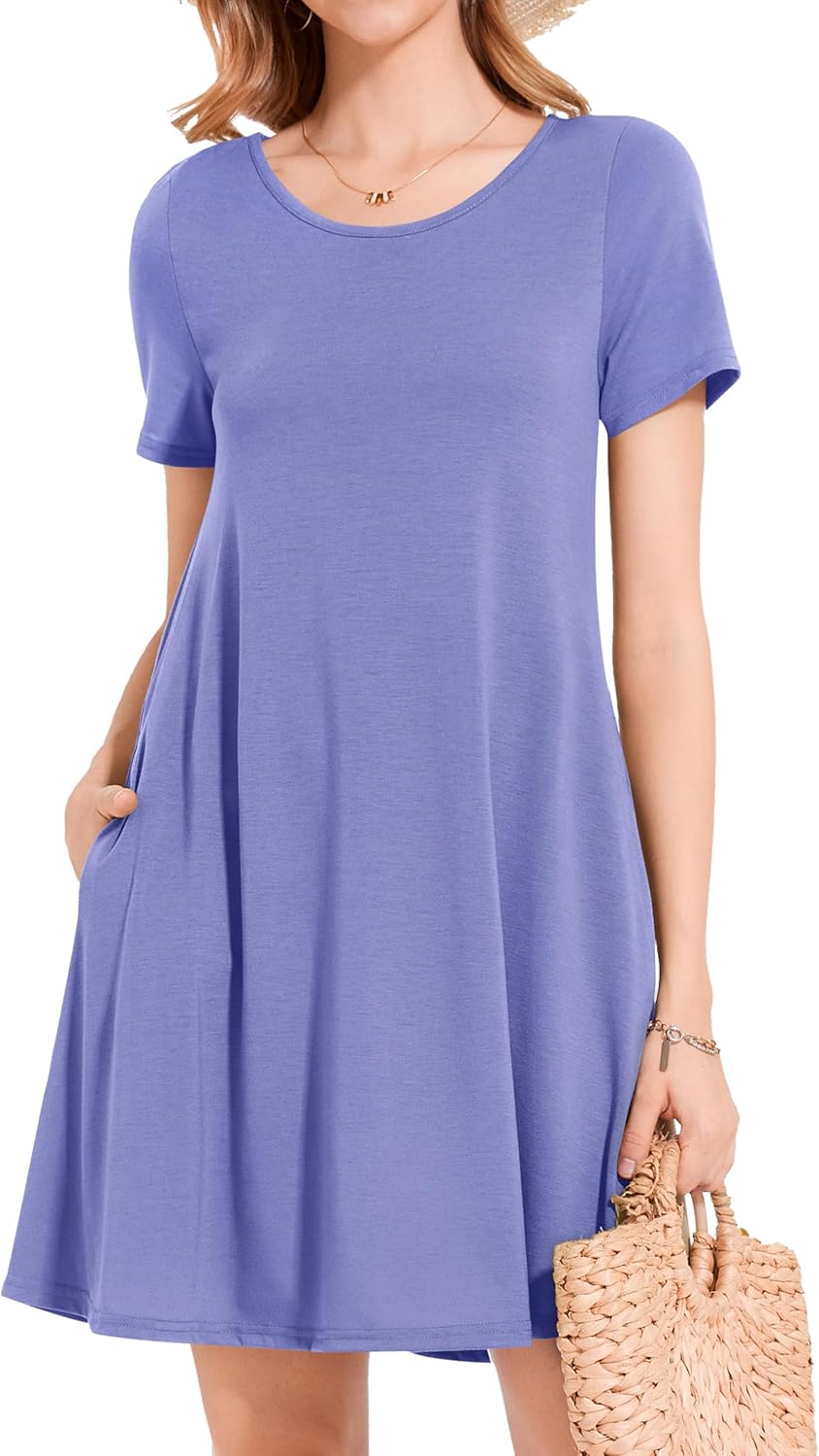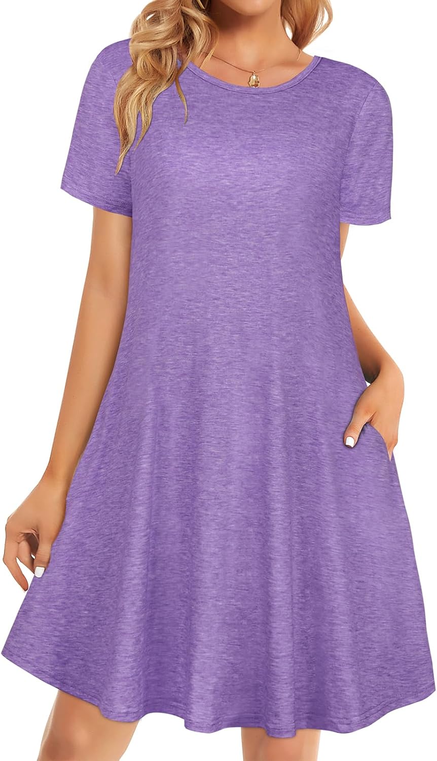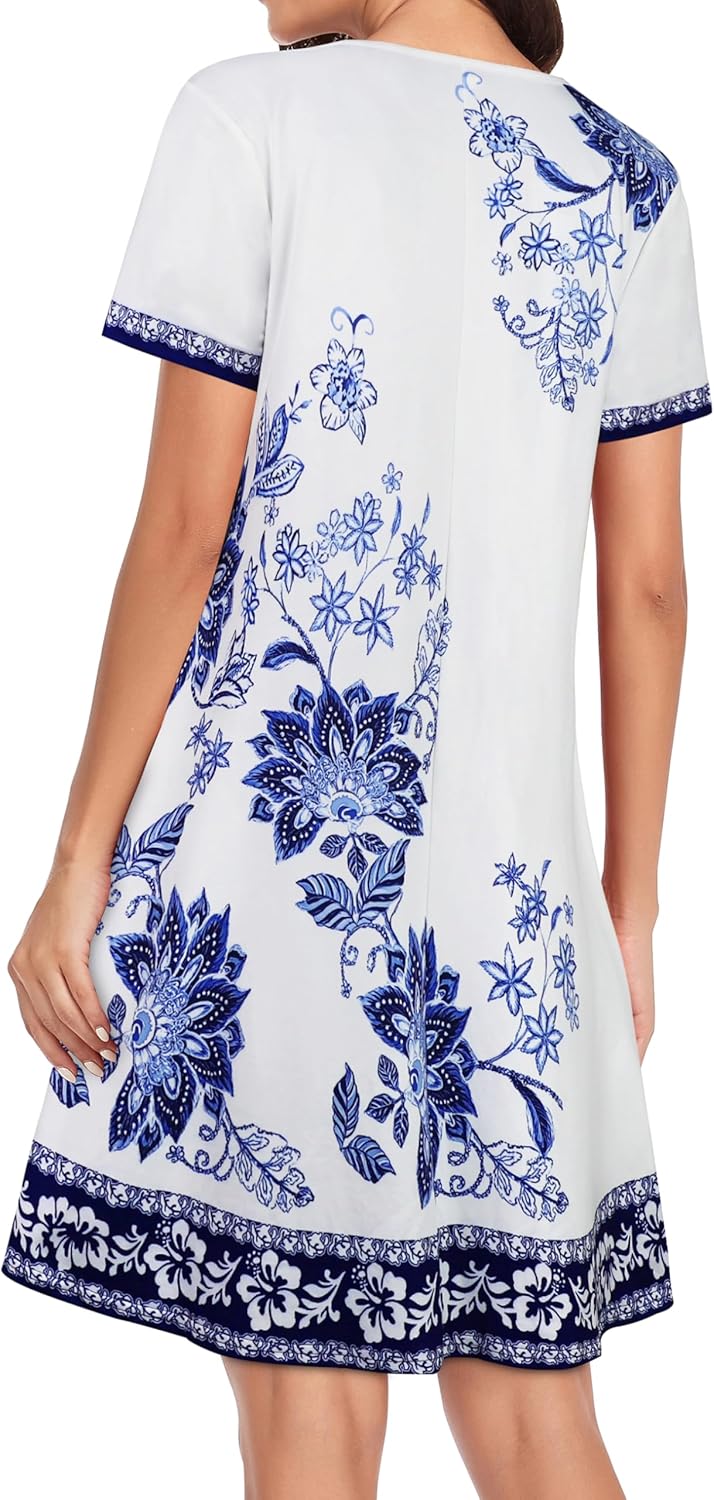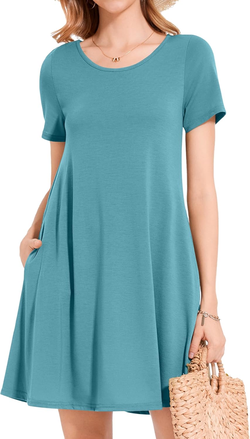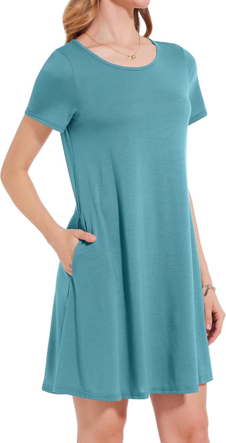 Womens Summer Dresses Beach Casual Loose Tshirt Floral Short Sleeve Flowy Pockets Sundresses