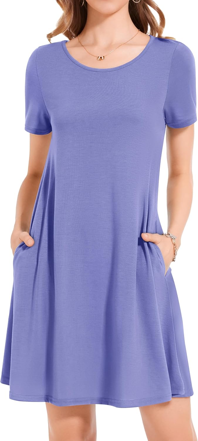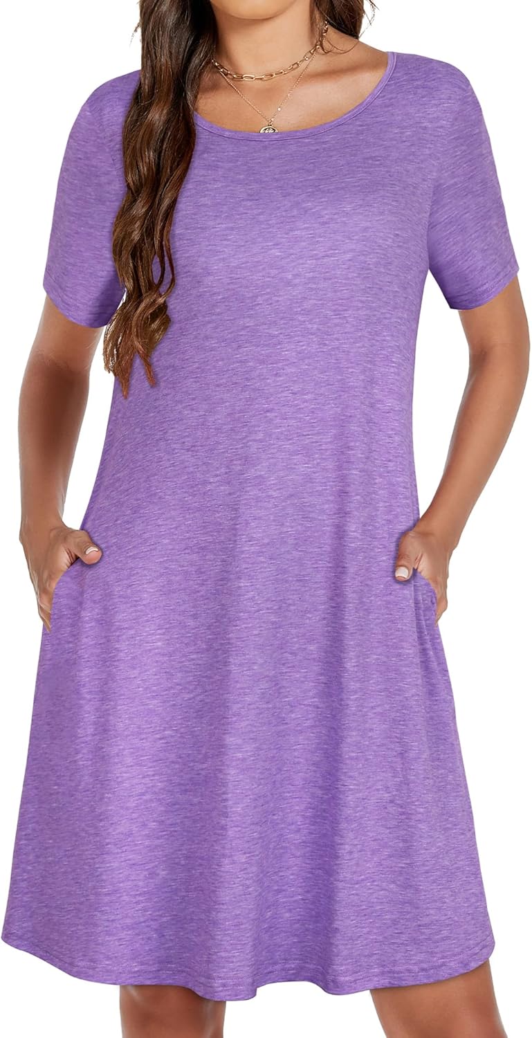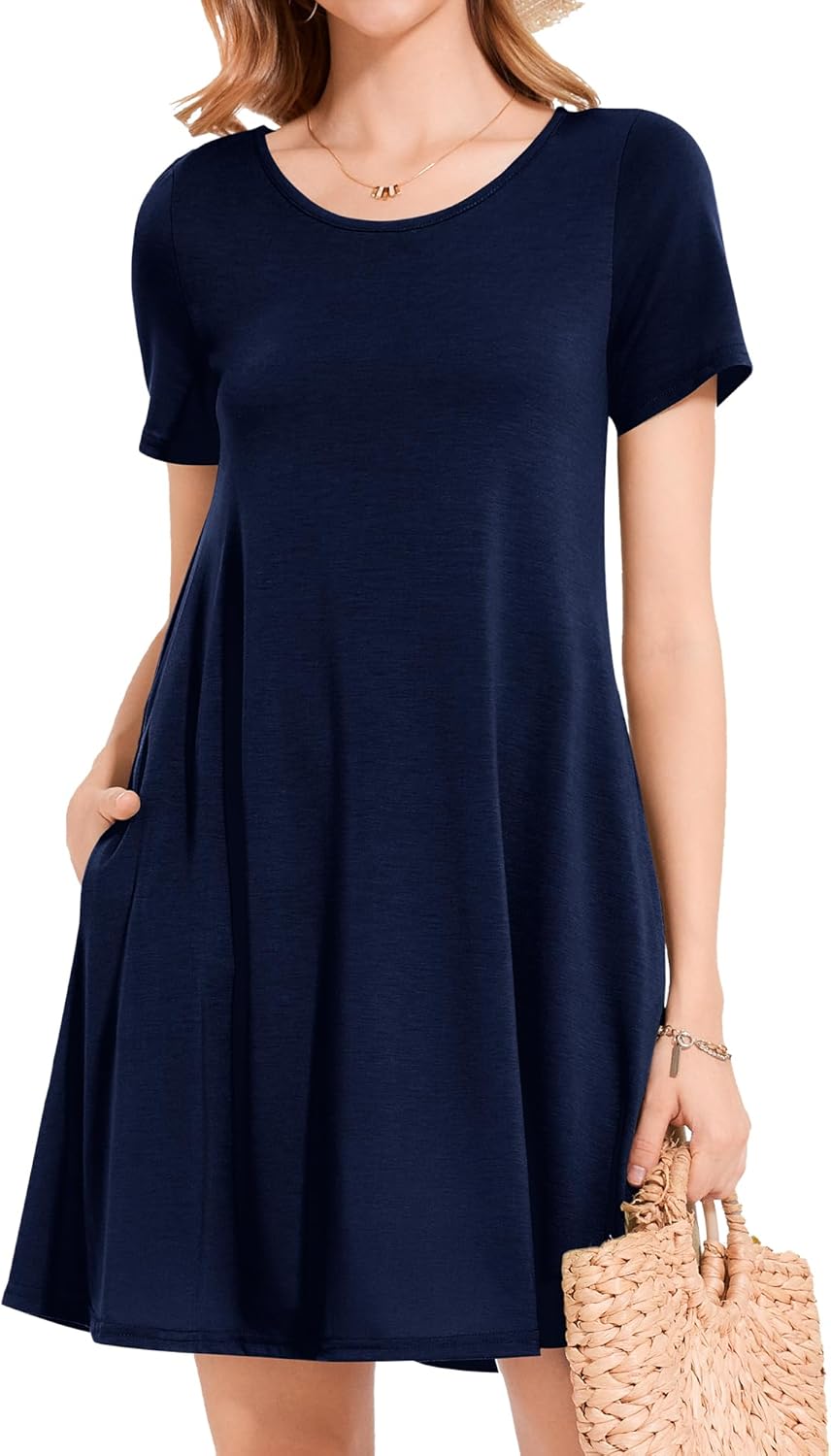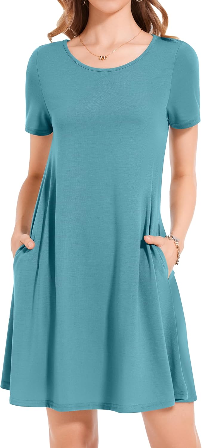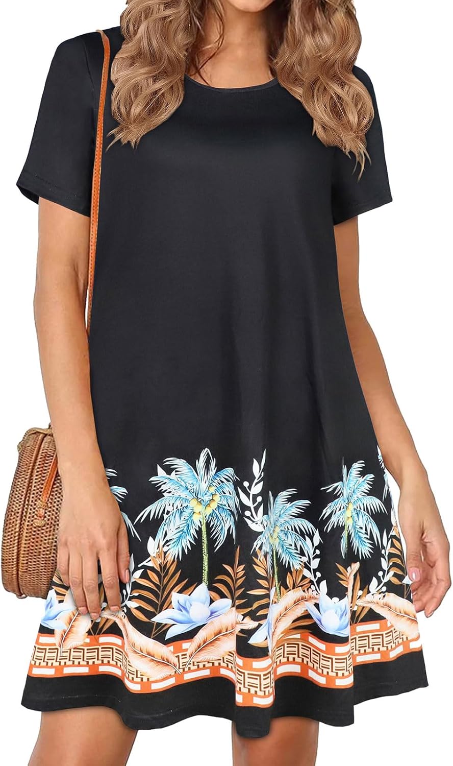 Womens Summer Dresses Beach Casual Loose Tshirt Floral Short Sleeve Flowy Pockets Sundresses