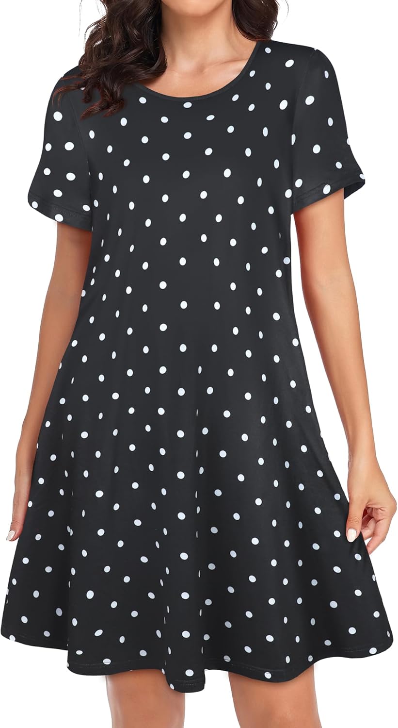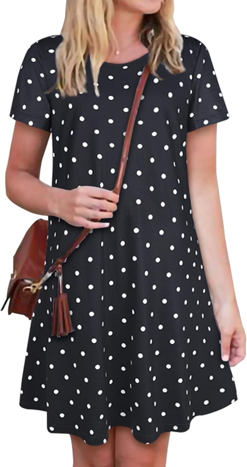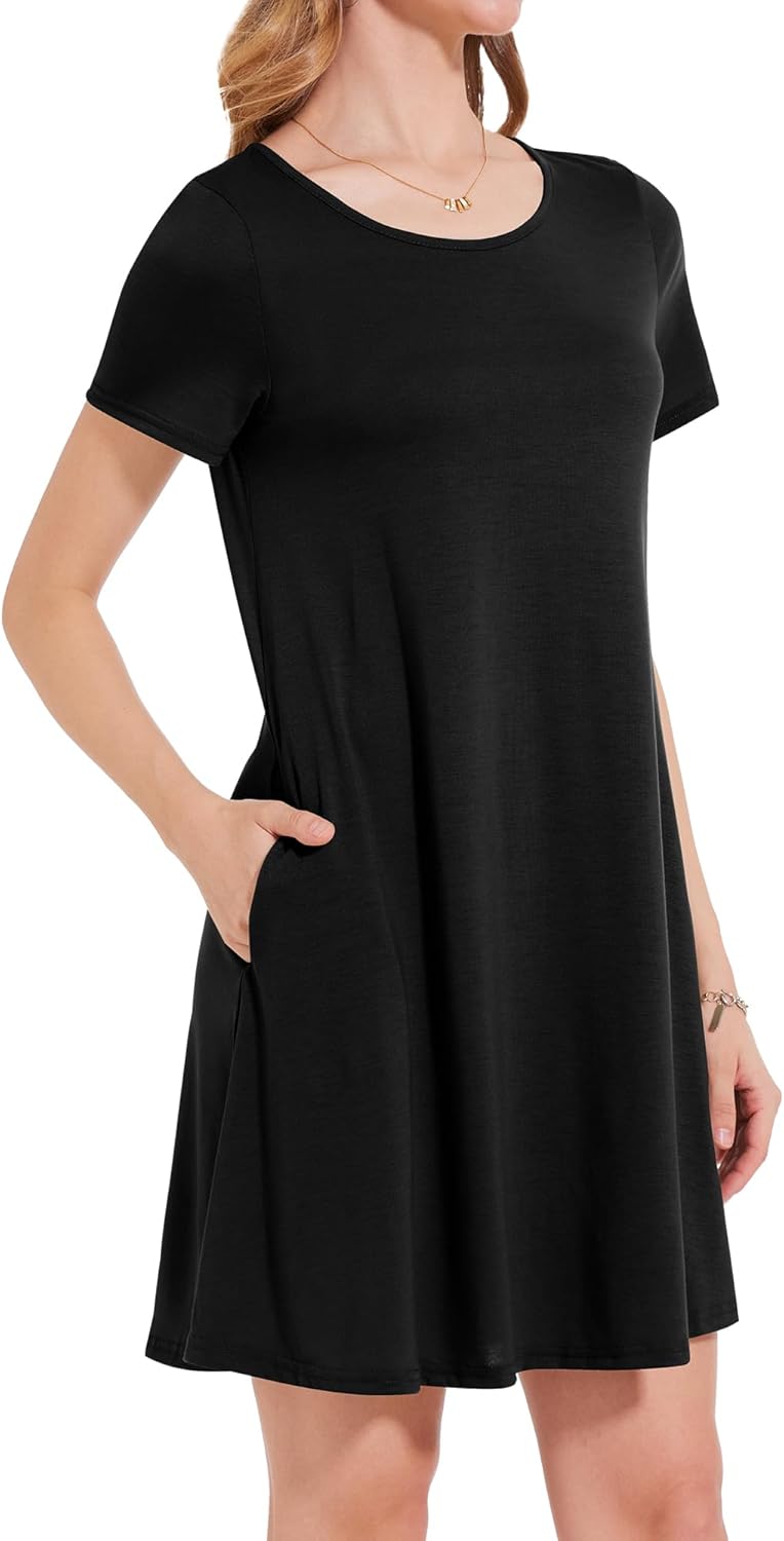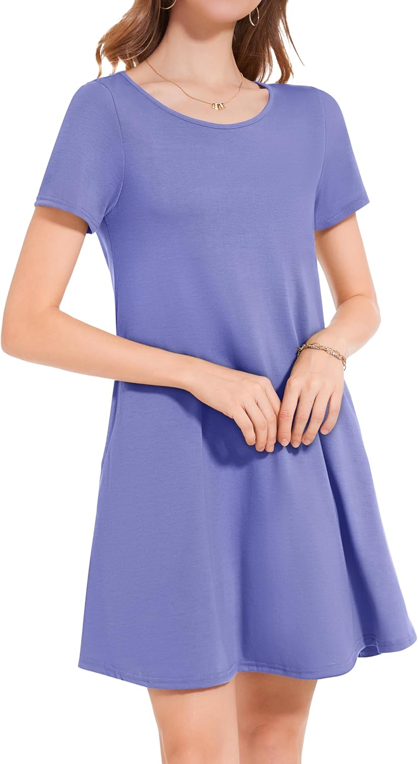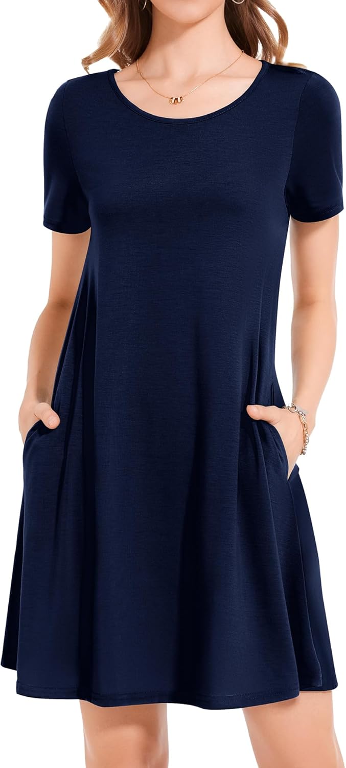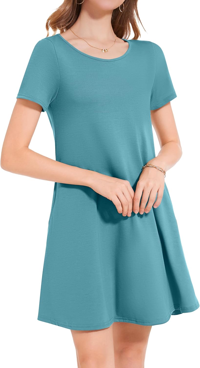 Womens Summer Dresses Beach Casual Loose Tshirt Floral Short Sleeve Flowy Pockets Sundresses