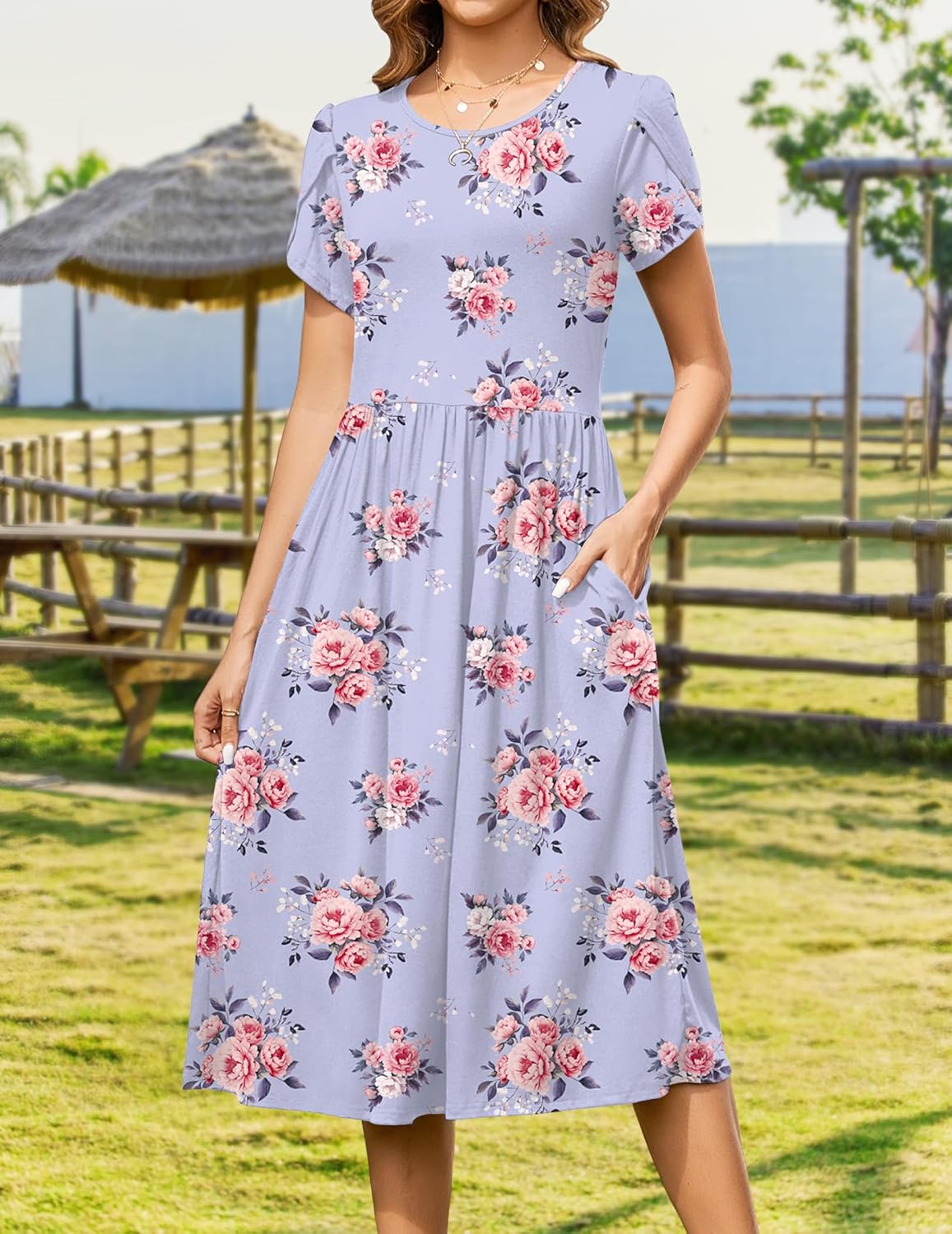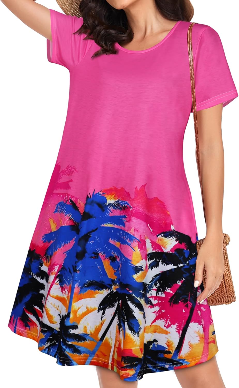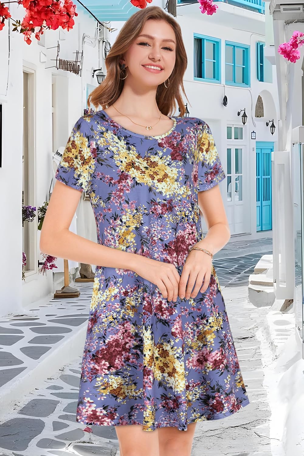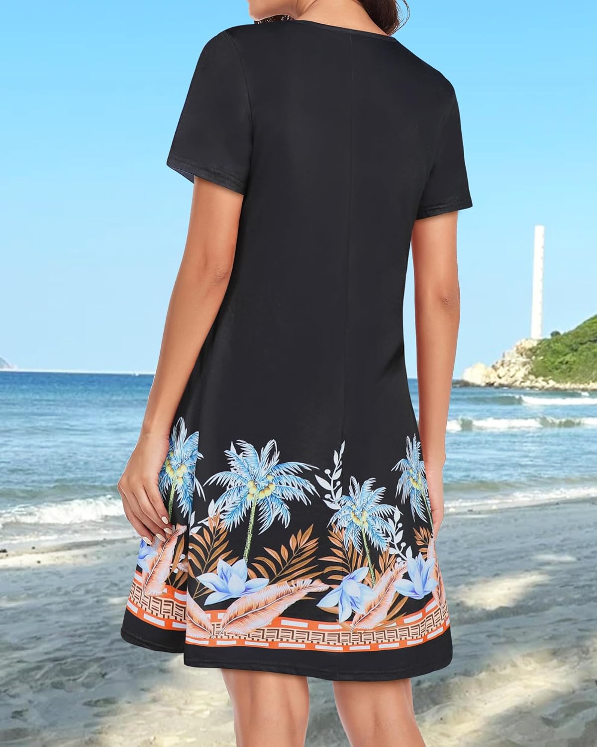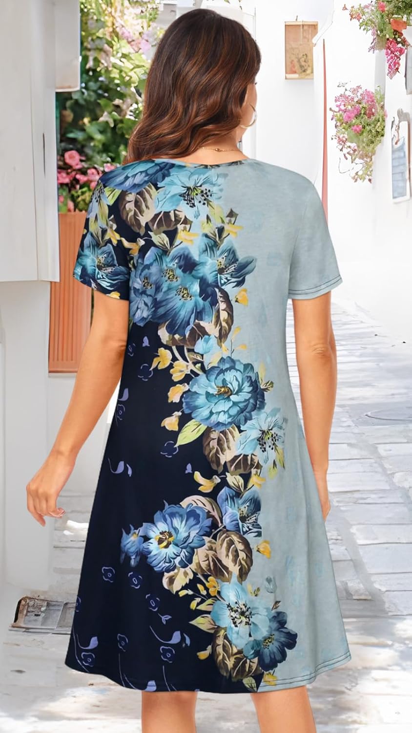 Womens Summer Dresses Beach Casual Loose Tshirt Floral Short Sleeve Flowy Pockets Sundresses