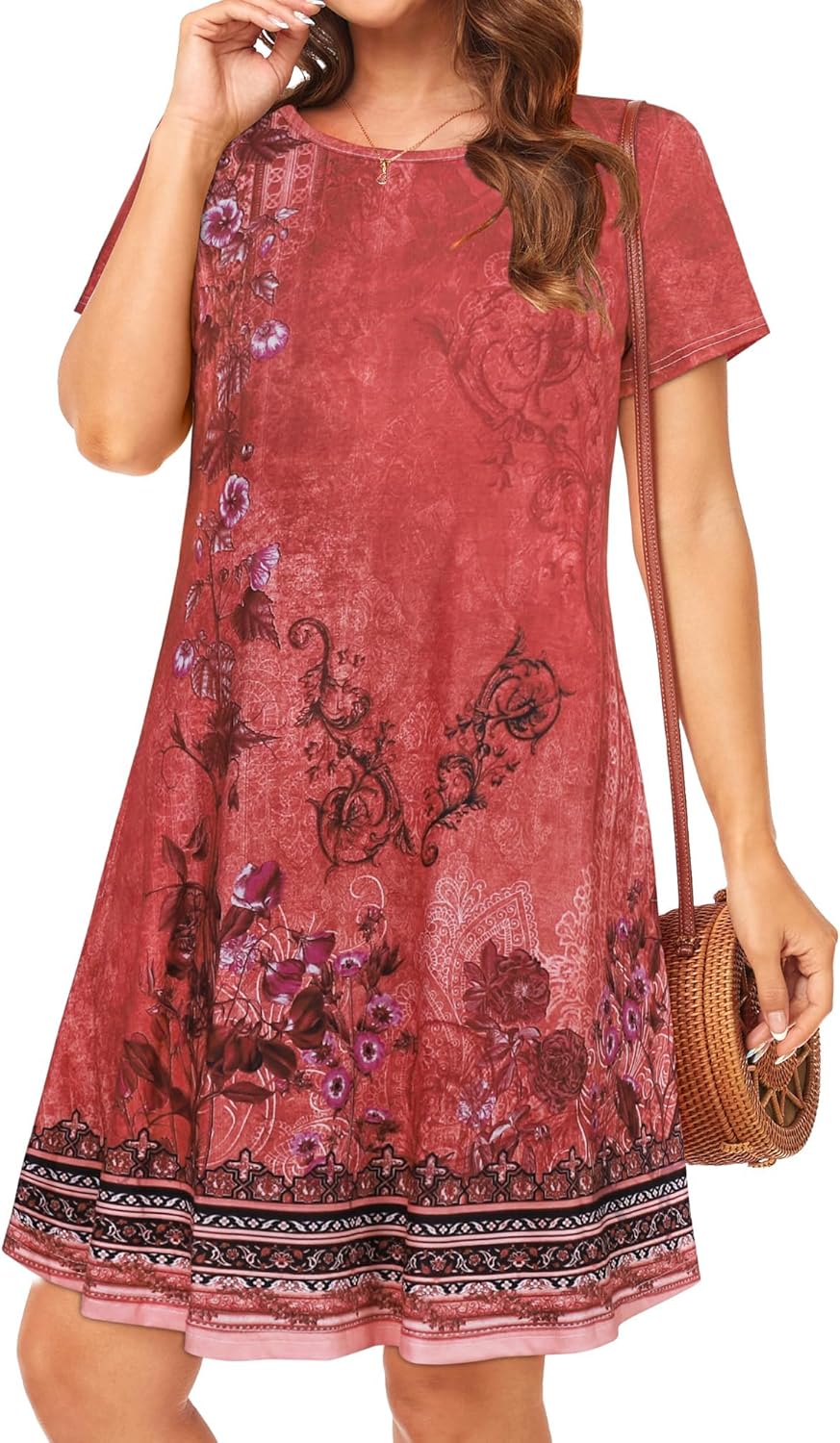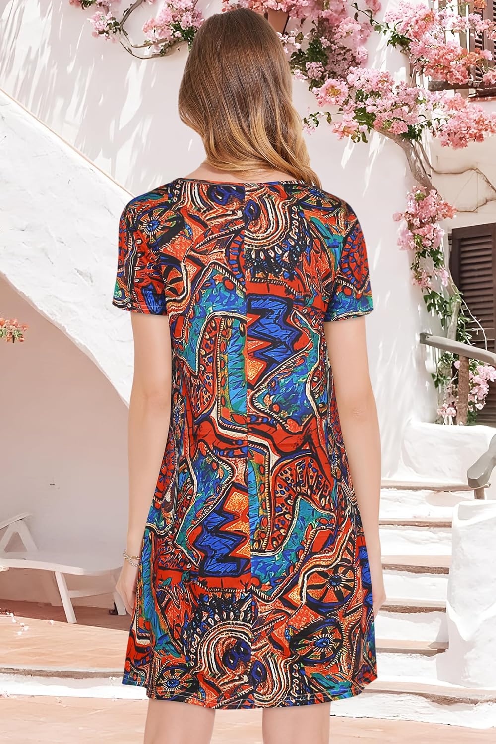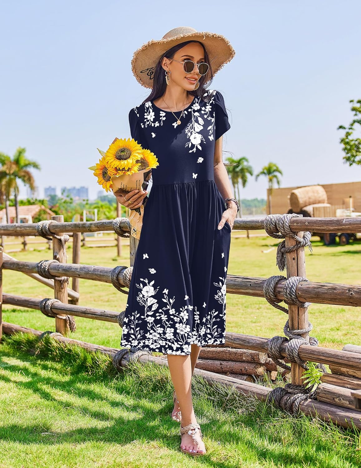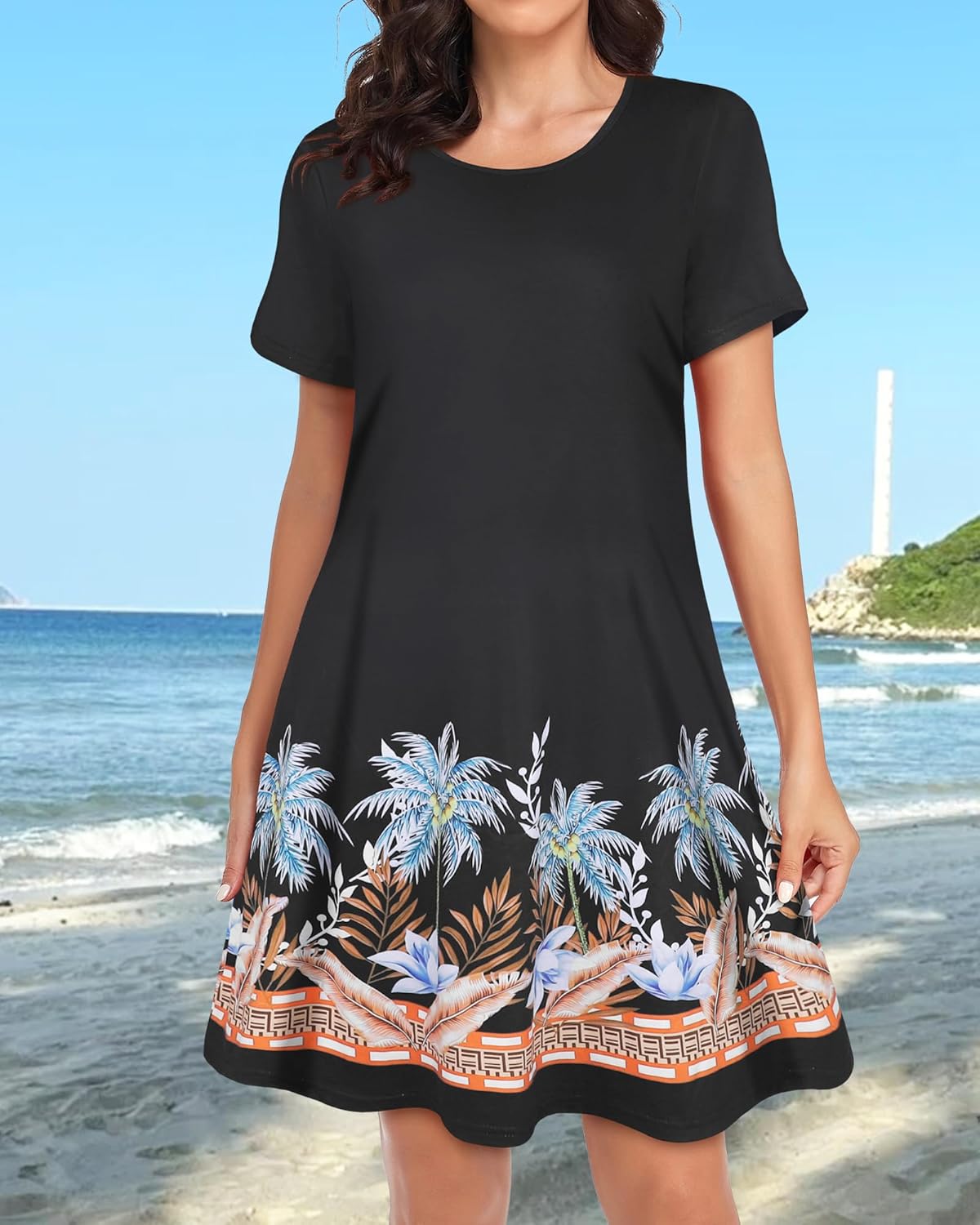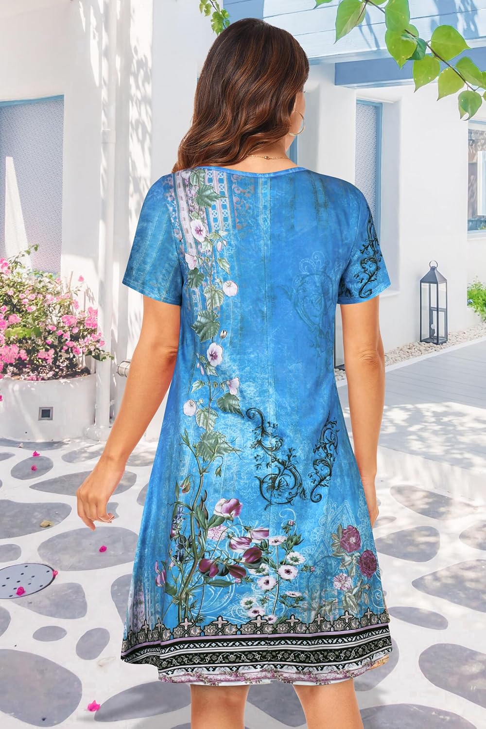 Womens Summer Dresses Beach Casual Loose Tshirt Floral Short Sleeve Flowy Pockets Sundresses