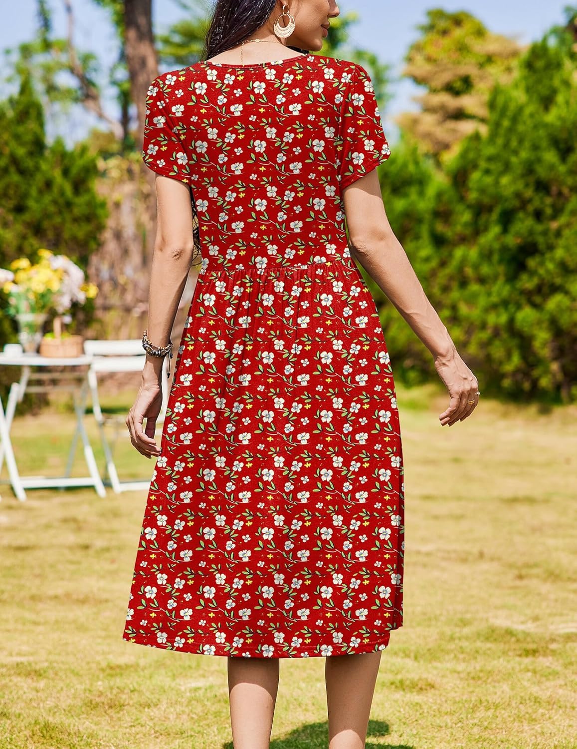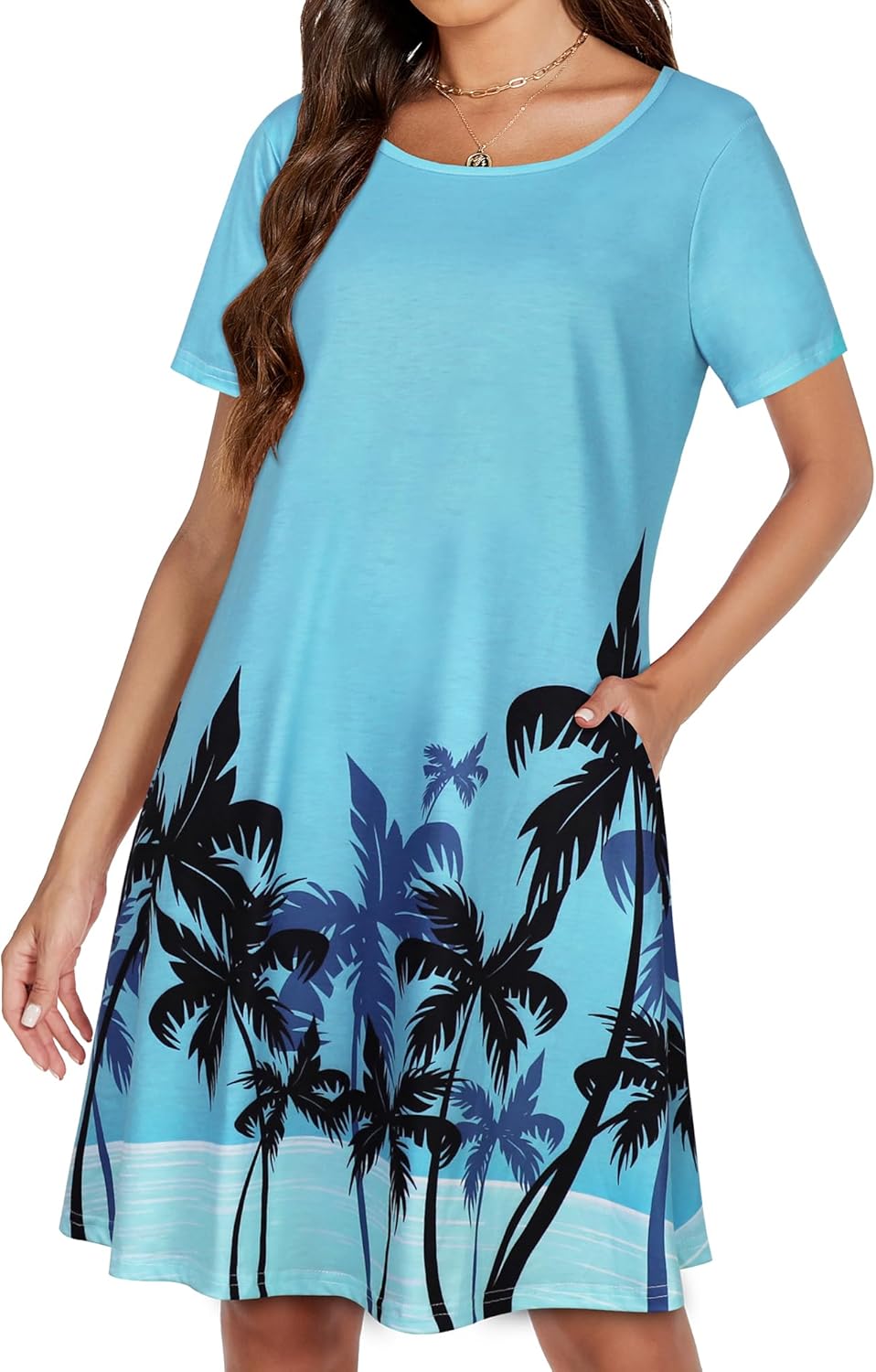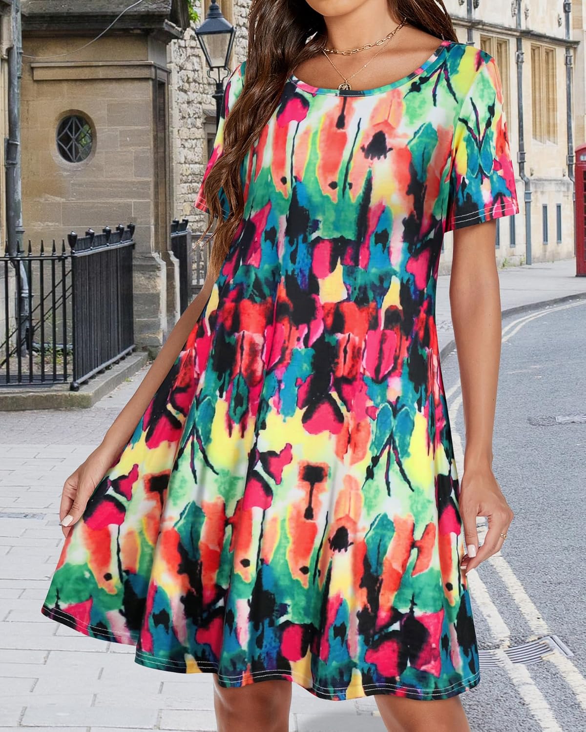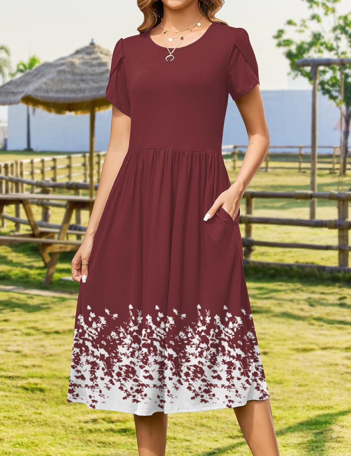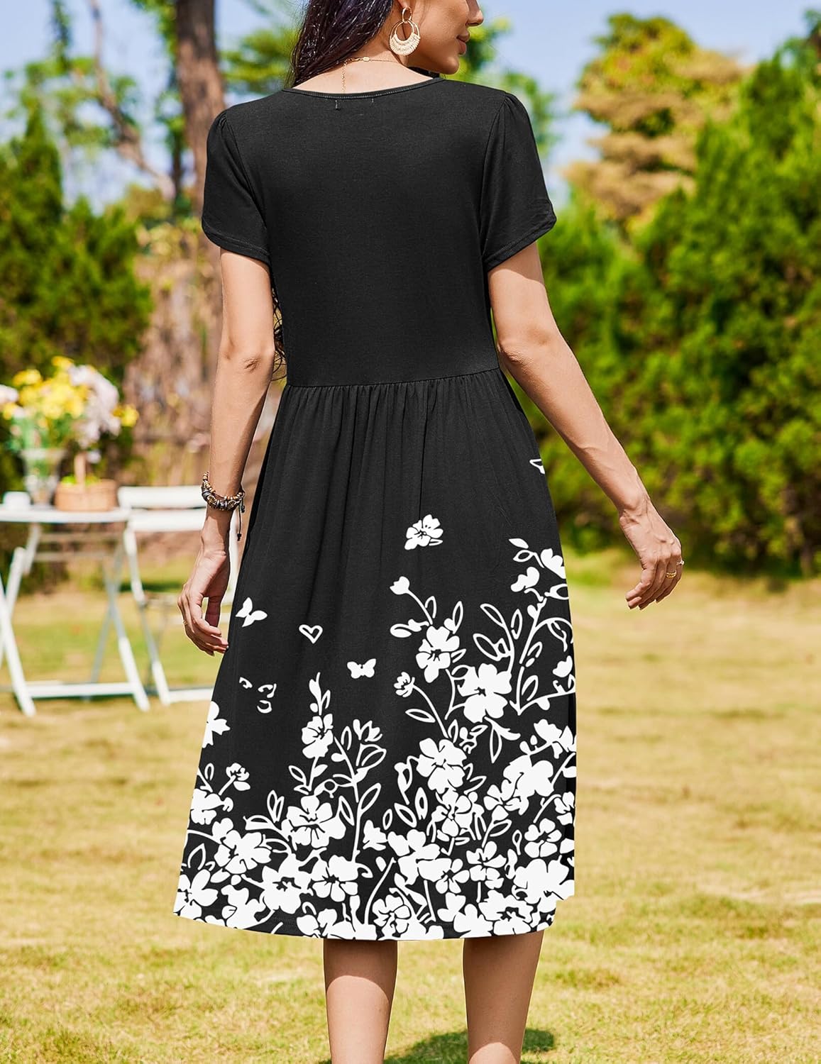 Womens Summer Dresses Beach Casual Loose Tshirt Floral Short Sleeve Flowy Pockets Sundresses