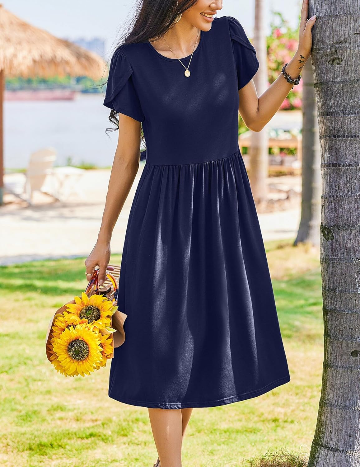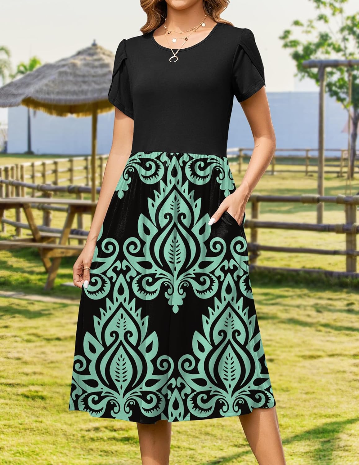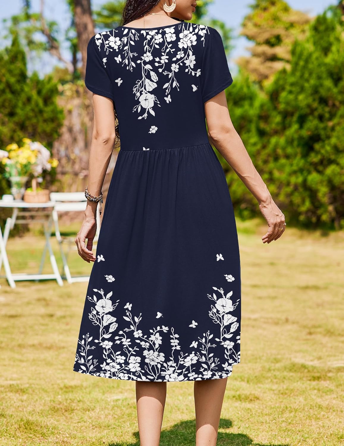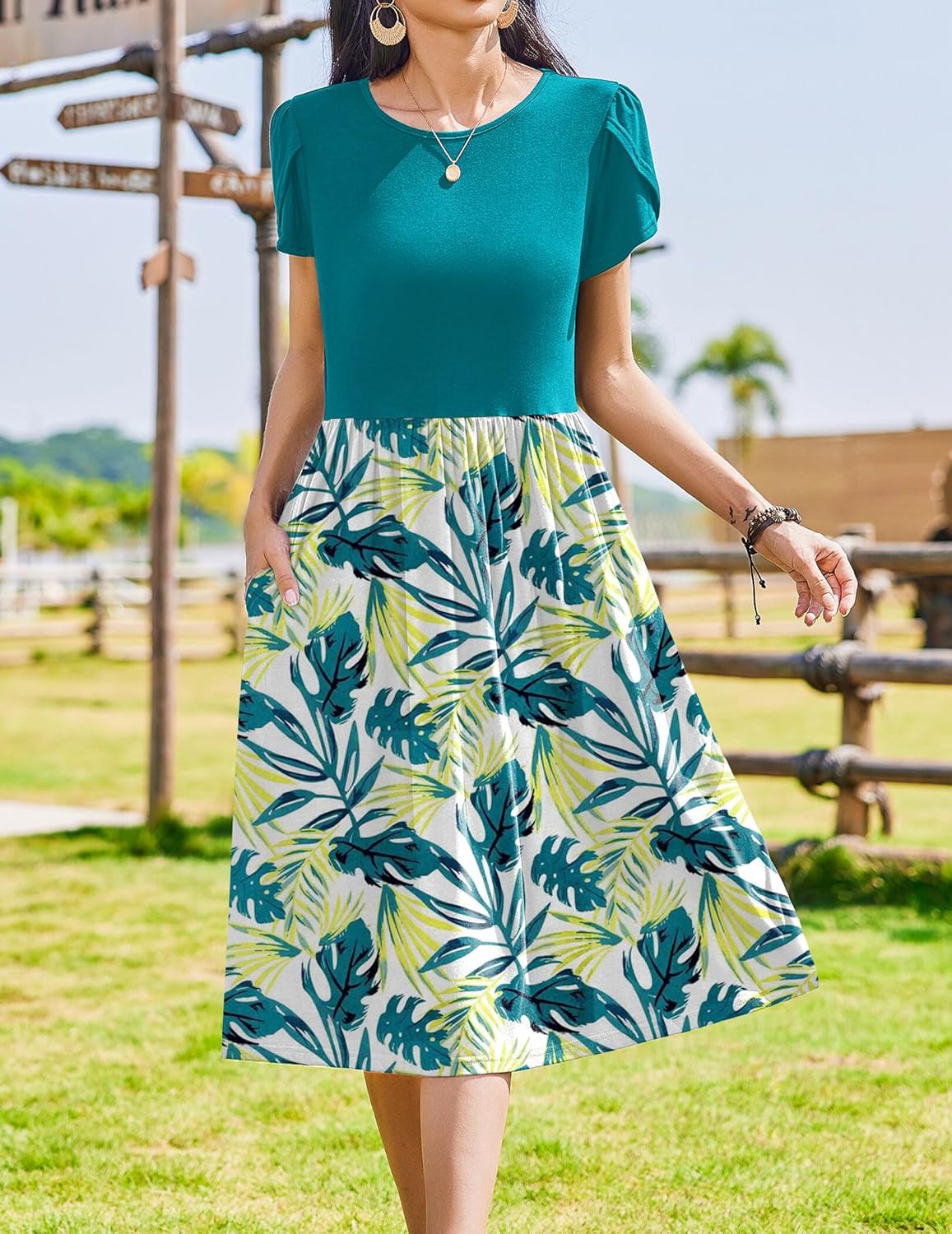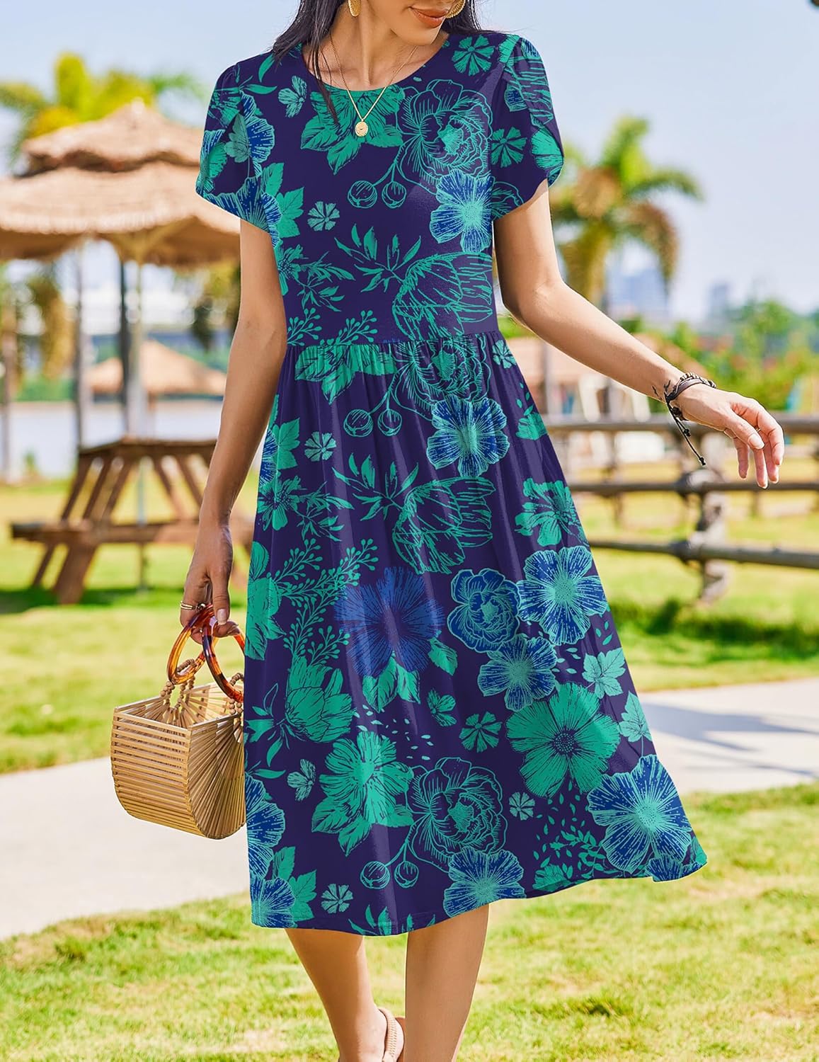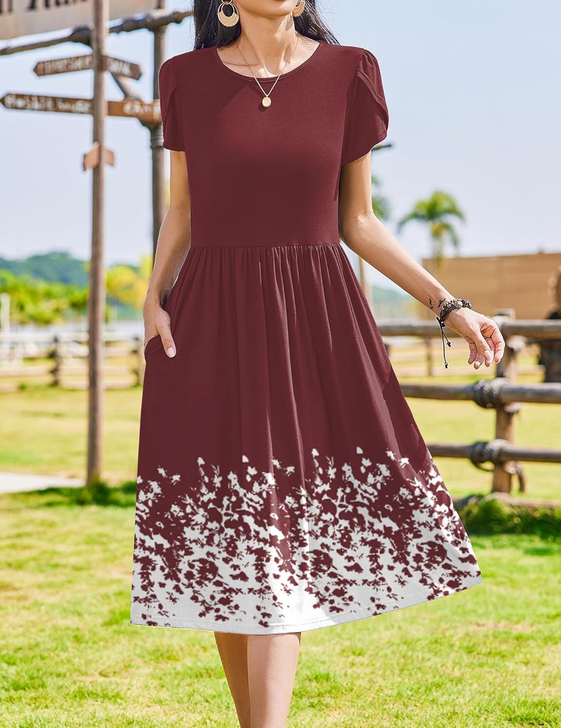 Womens Summer Dresses Beach Casual Loose Tshirt Floral Short Sleeve Flowy Pockets Sundresses
