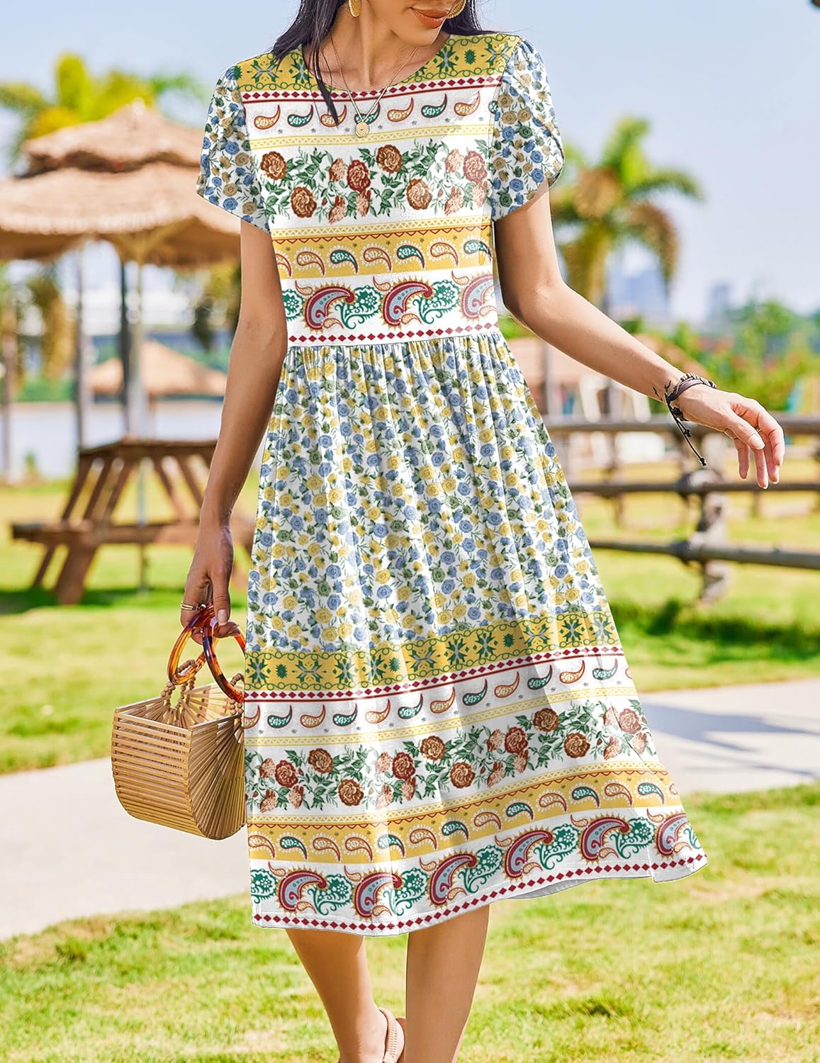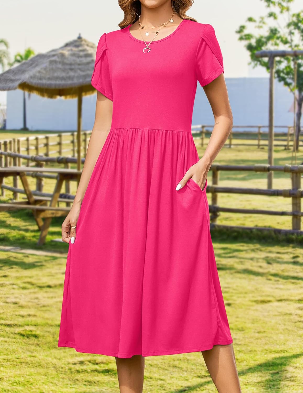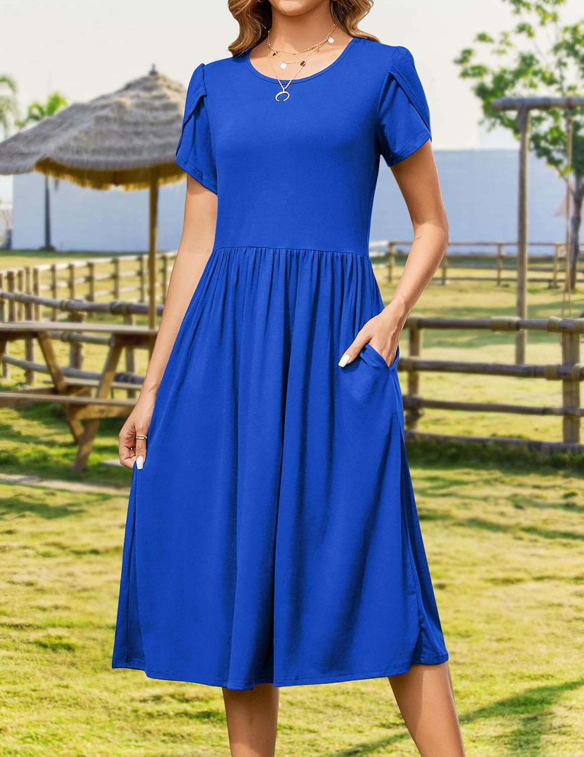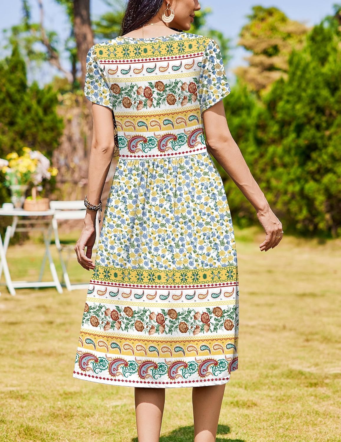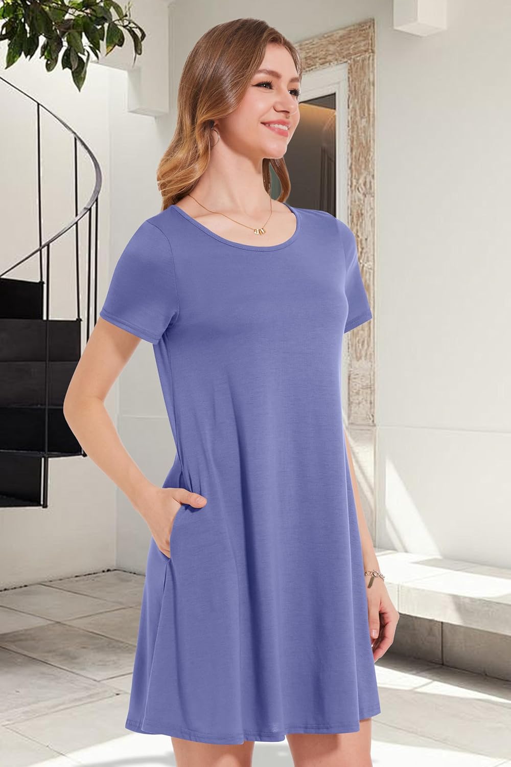 Womens Summer Dresses Beach Casual Loose Tshirt Floral Short Sleeve Flowy Pockets Sundresses