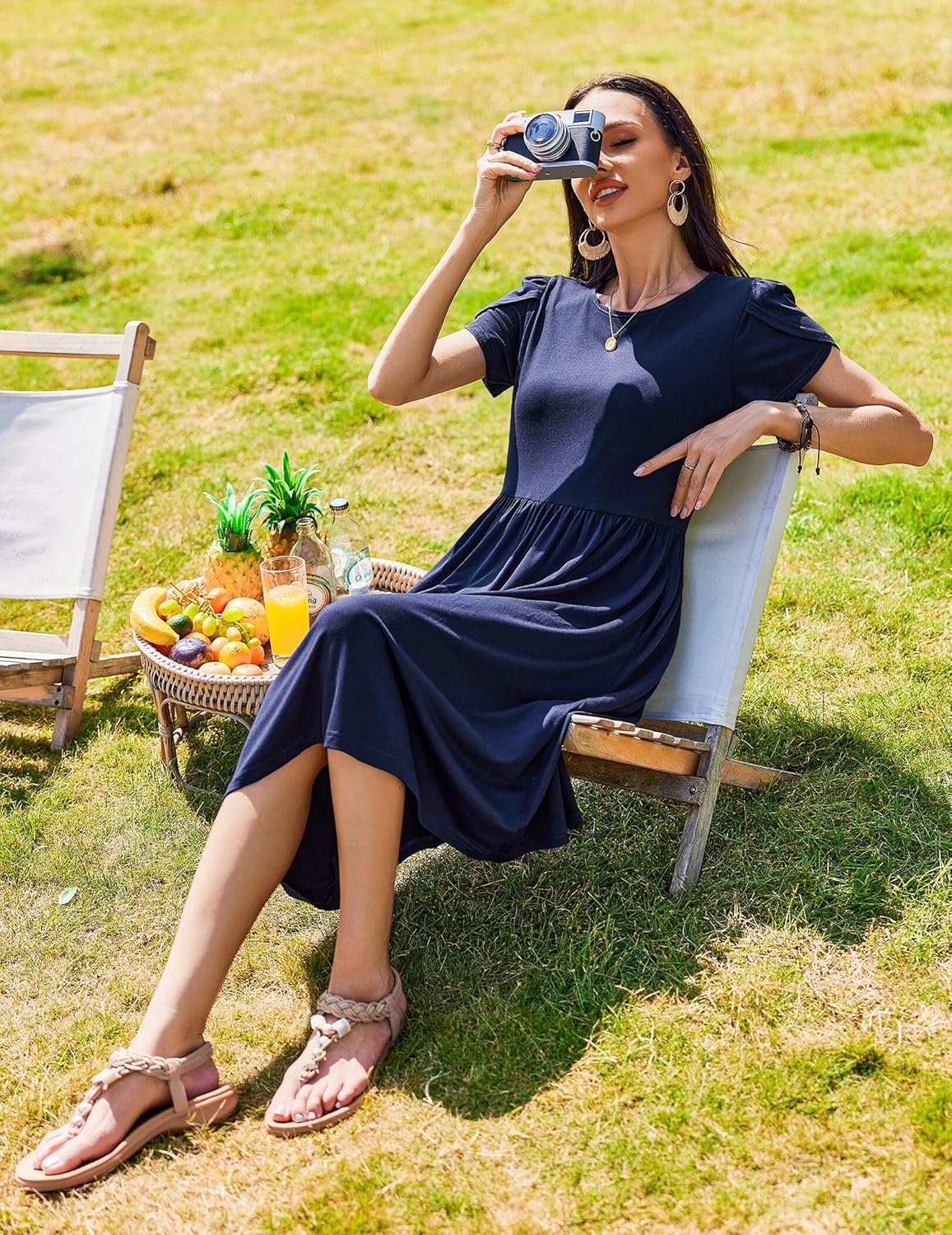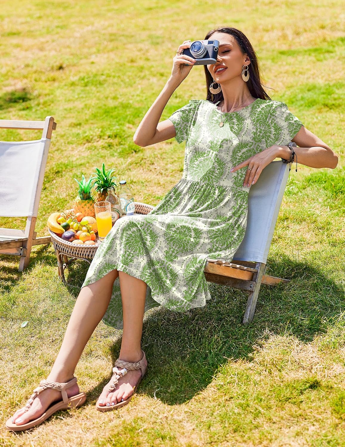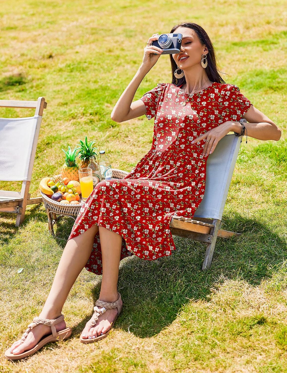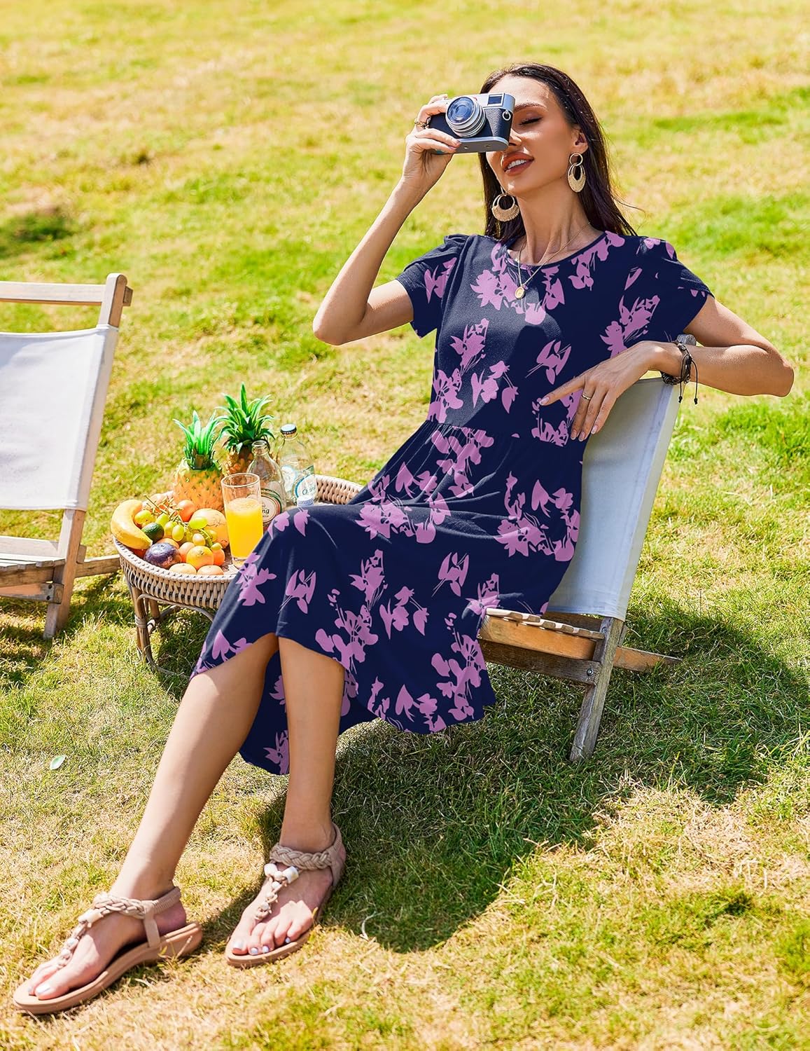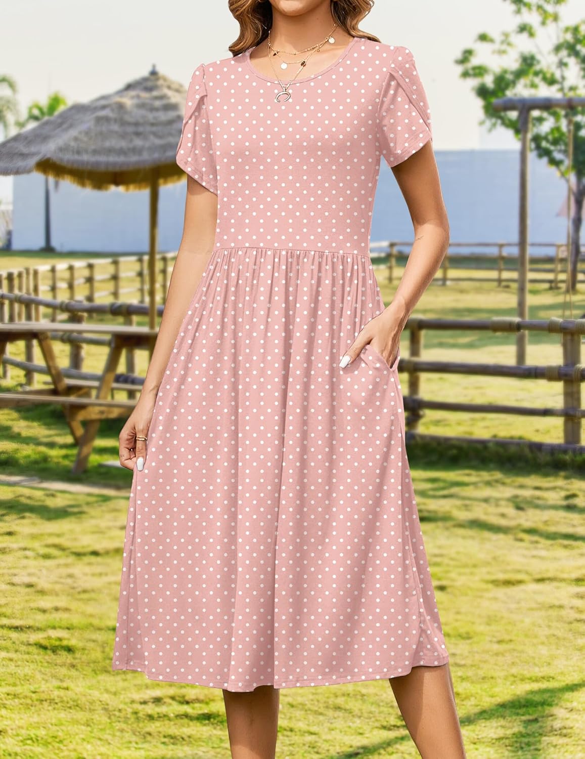 Womens Summer Dresses Beach Casual Loose Tshirt Floral Short Sleeve Flowy Pockets Sundresses