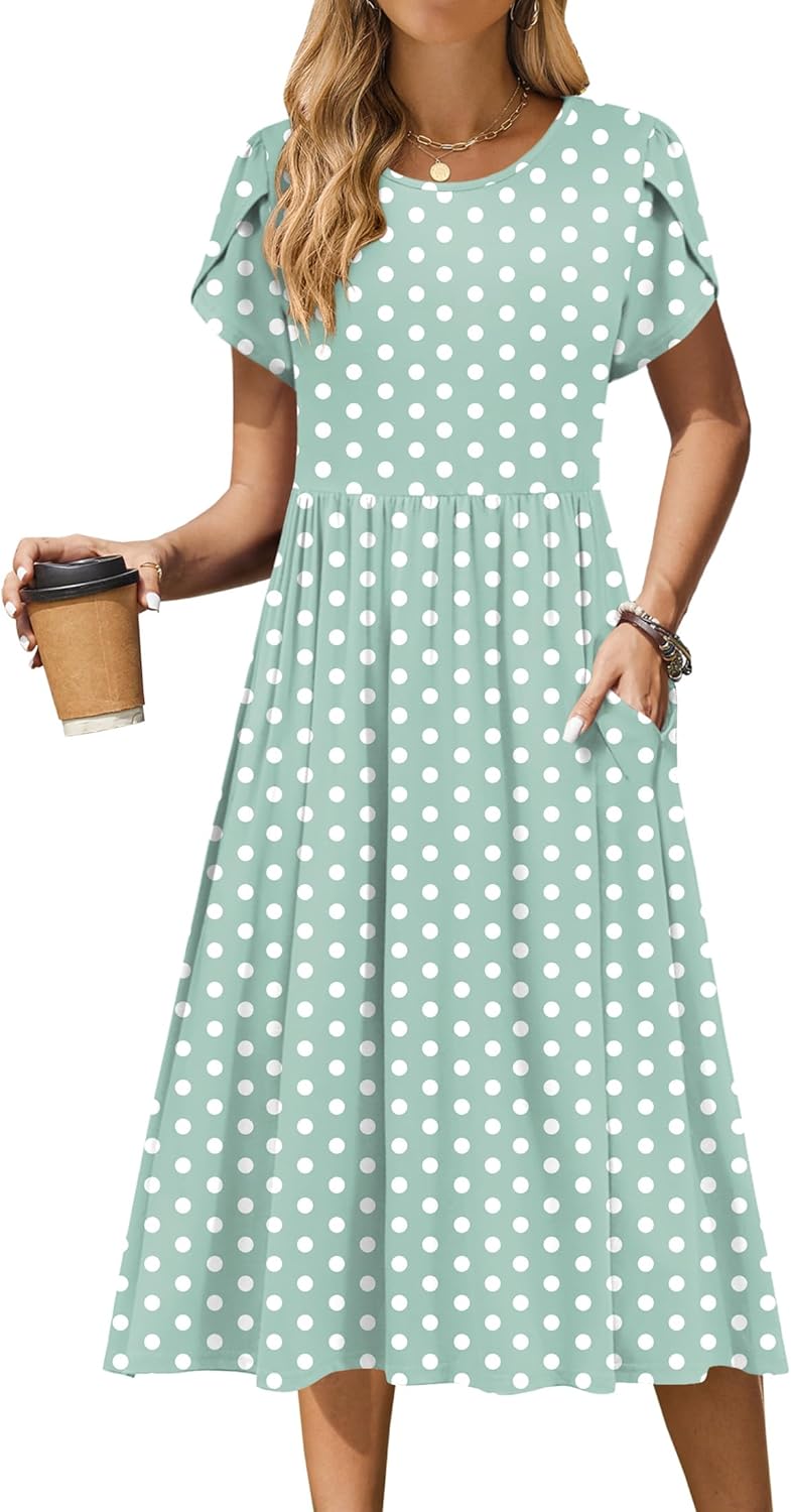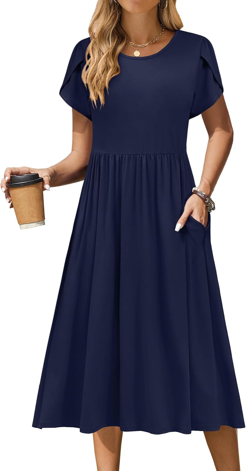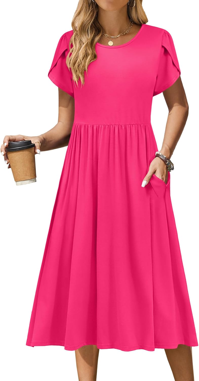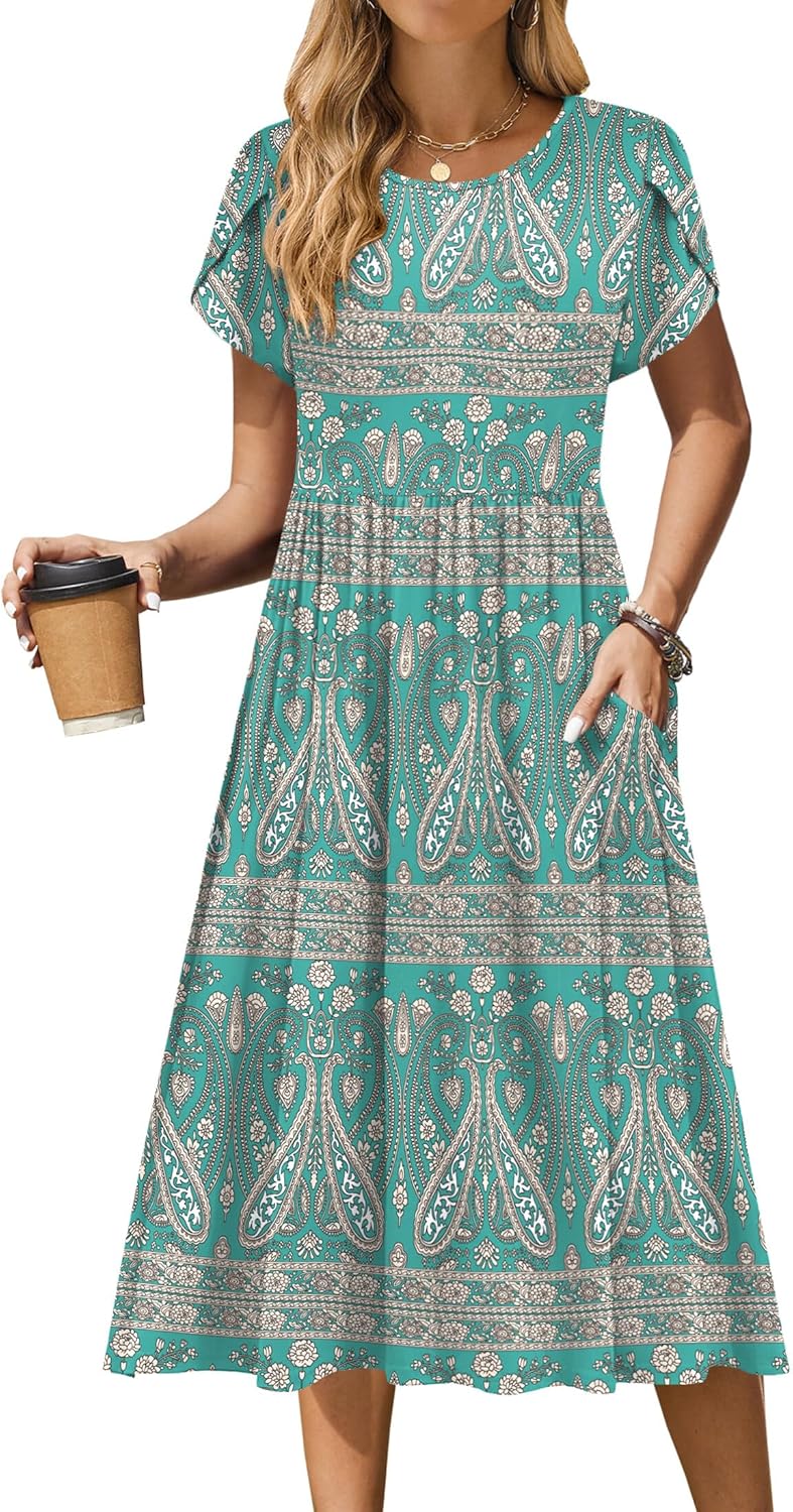 Zeagoo Women Summer Short Sleeve Midi Dress with Pockets Casual Aline Flowy Tshirt Dress Floral Vocation Beach Sundress