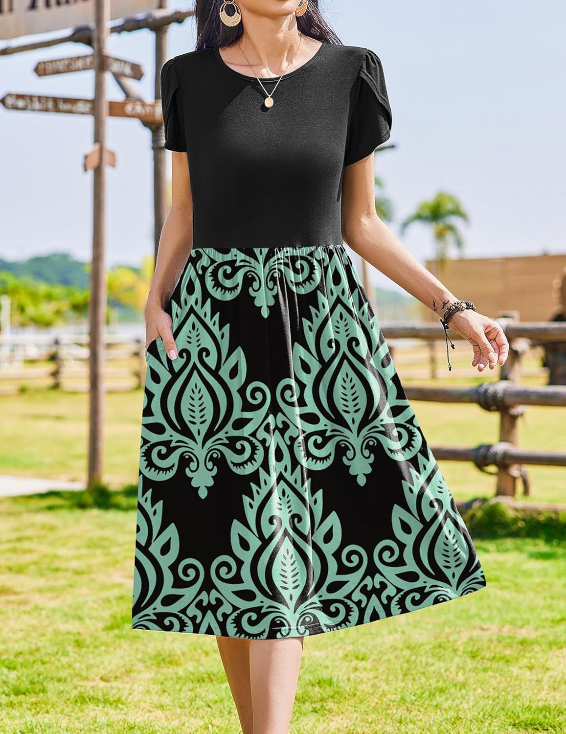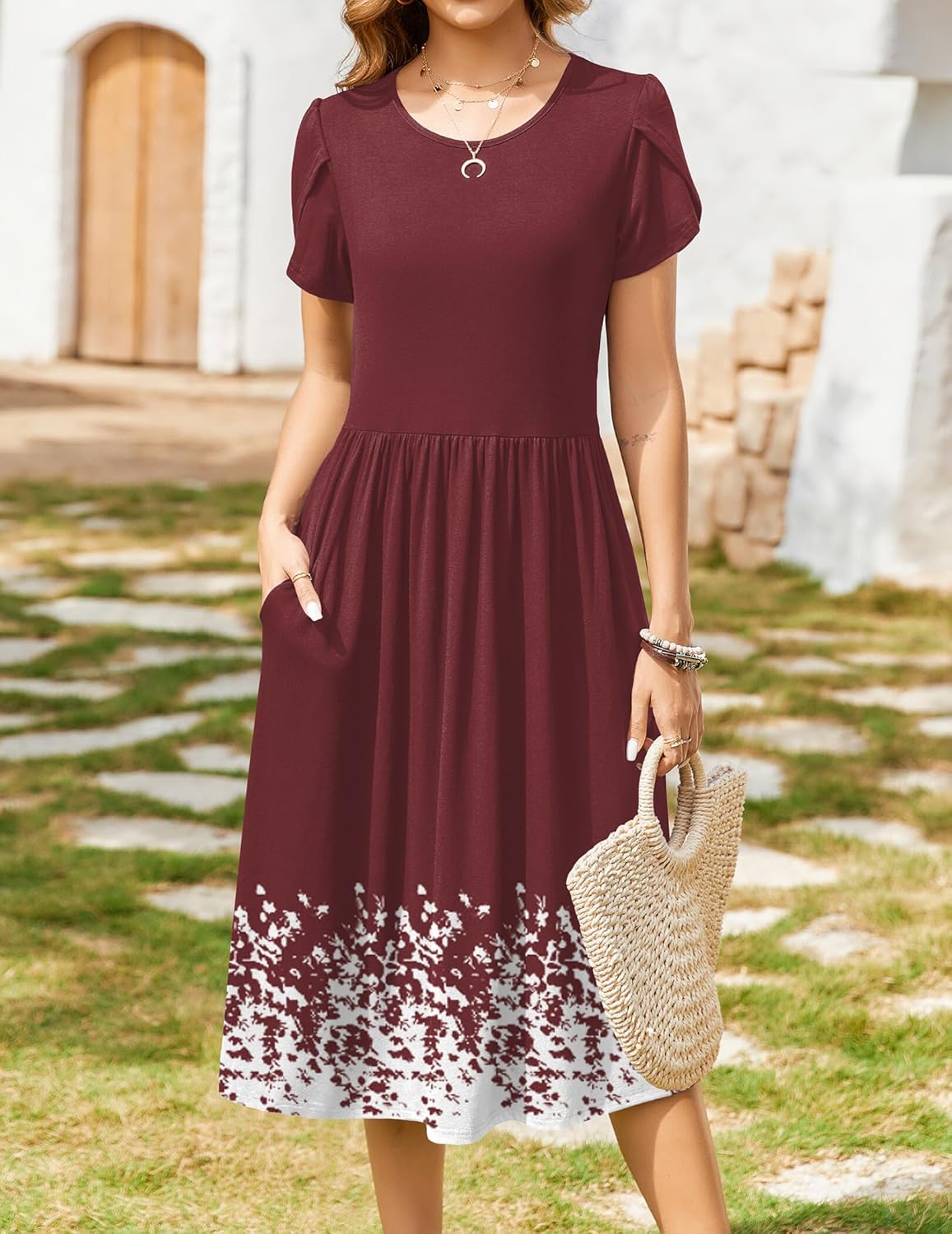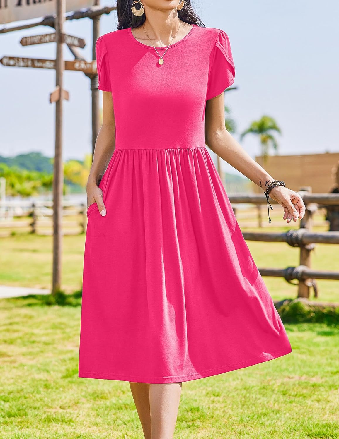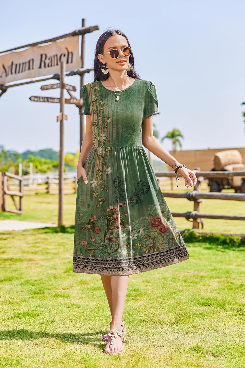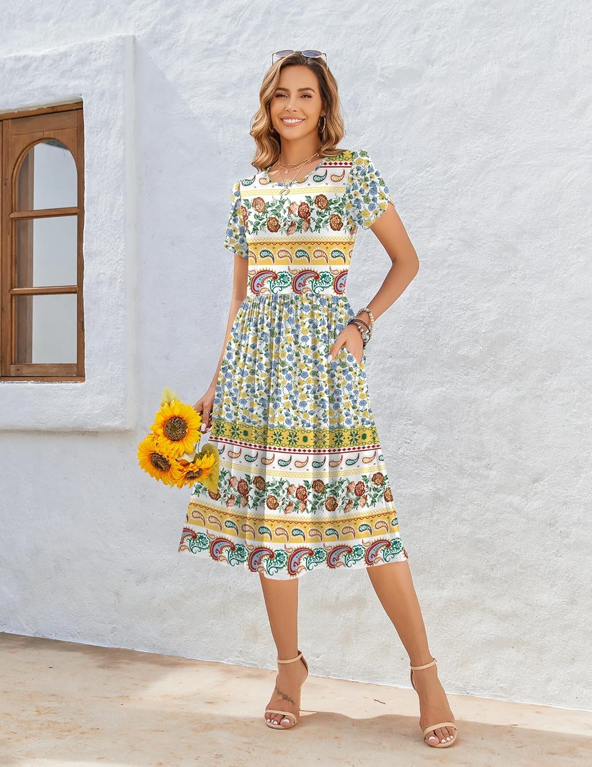 Zeagoo Women Summer Short Sleeve Midi Dress with Pockets Casual Aline Flowy Tshirt Dress Floral Vocation Beach Sundress