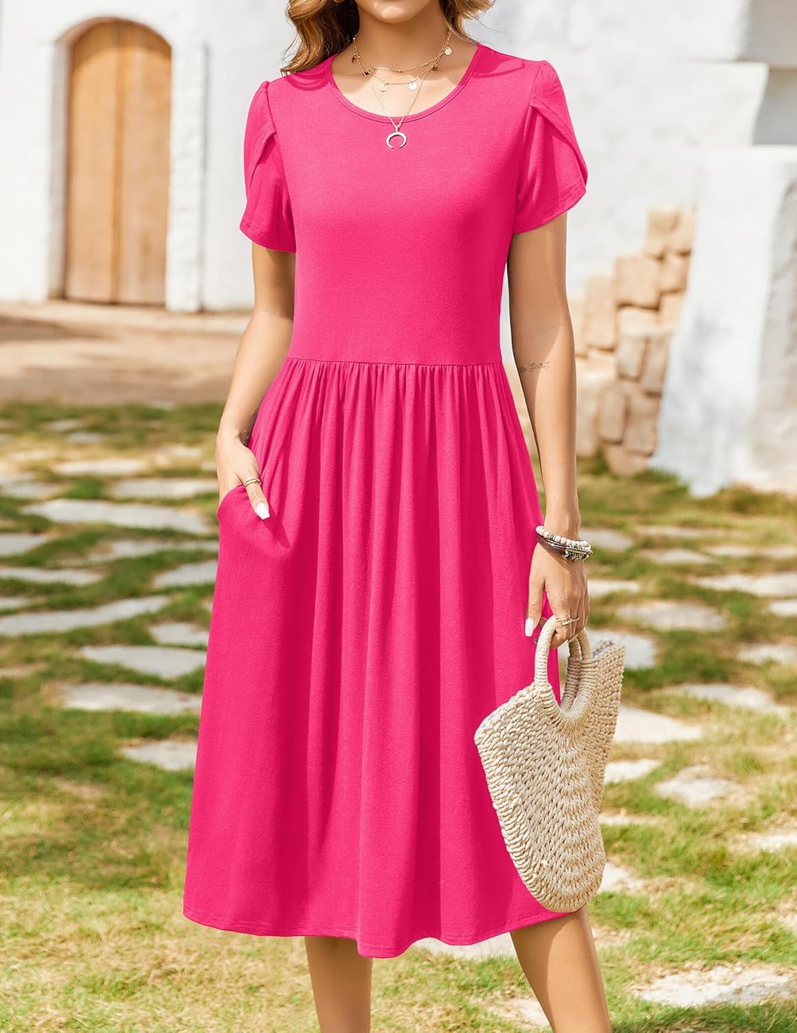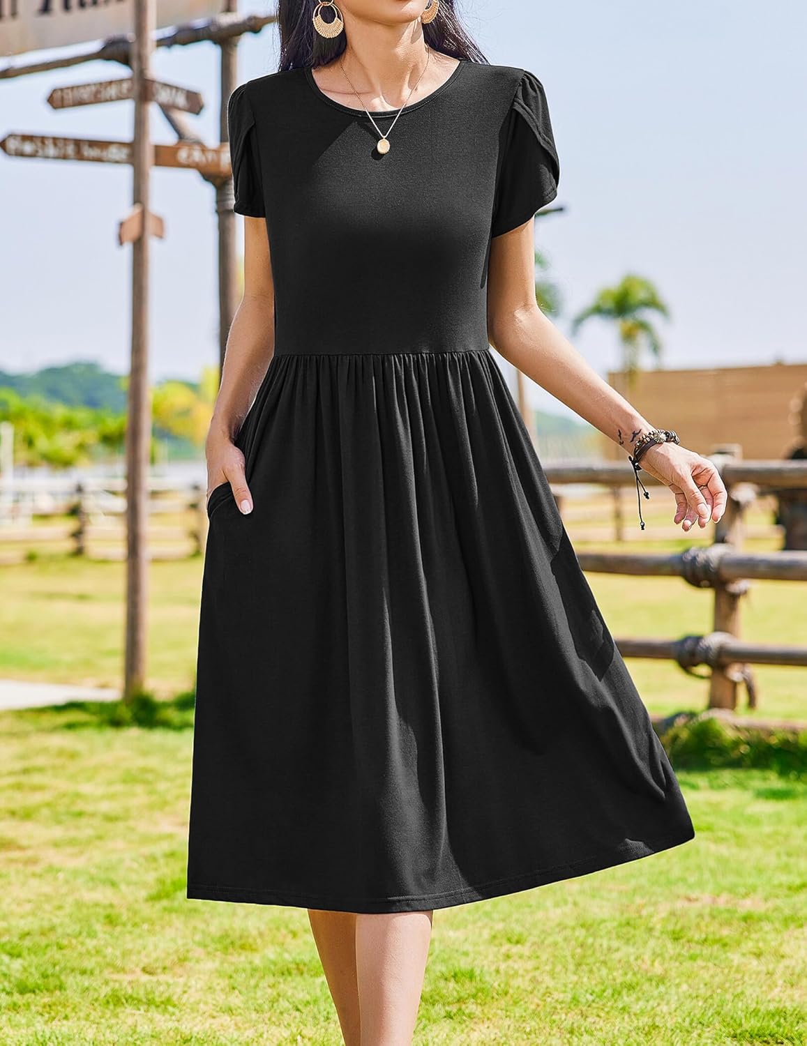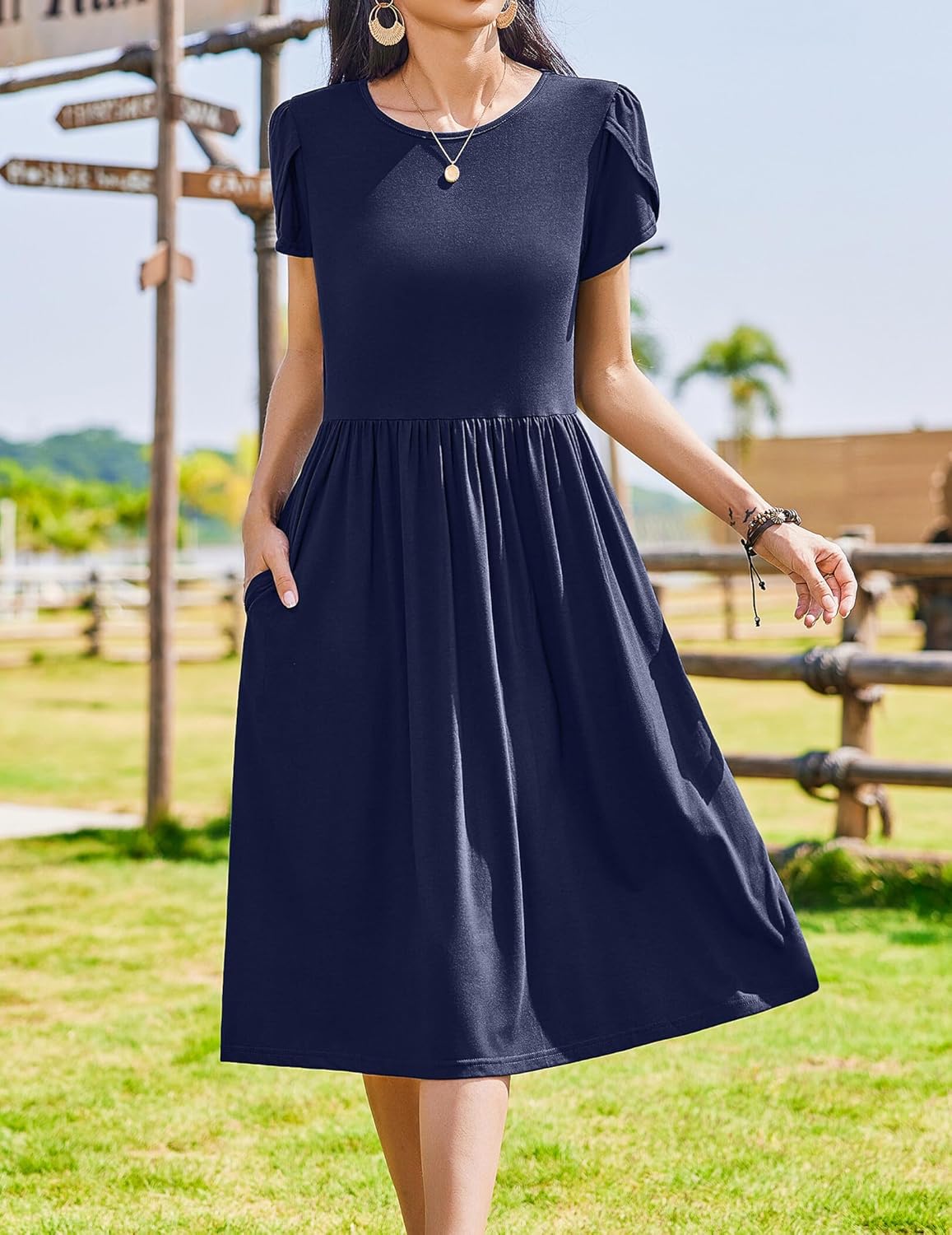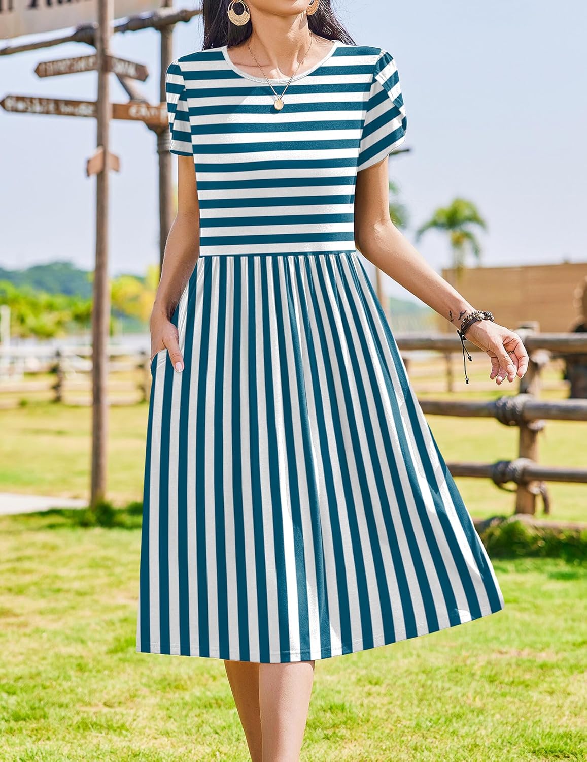 Zeagoo Women Summer Short Sleeve Midi Dress with Pockets Casual Aline Flowy Tshirt Dress Floral Vocation Beach Sundress