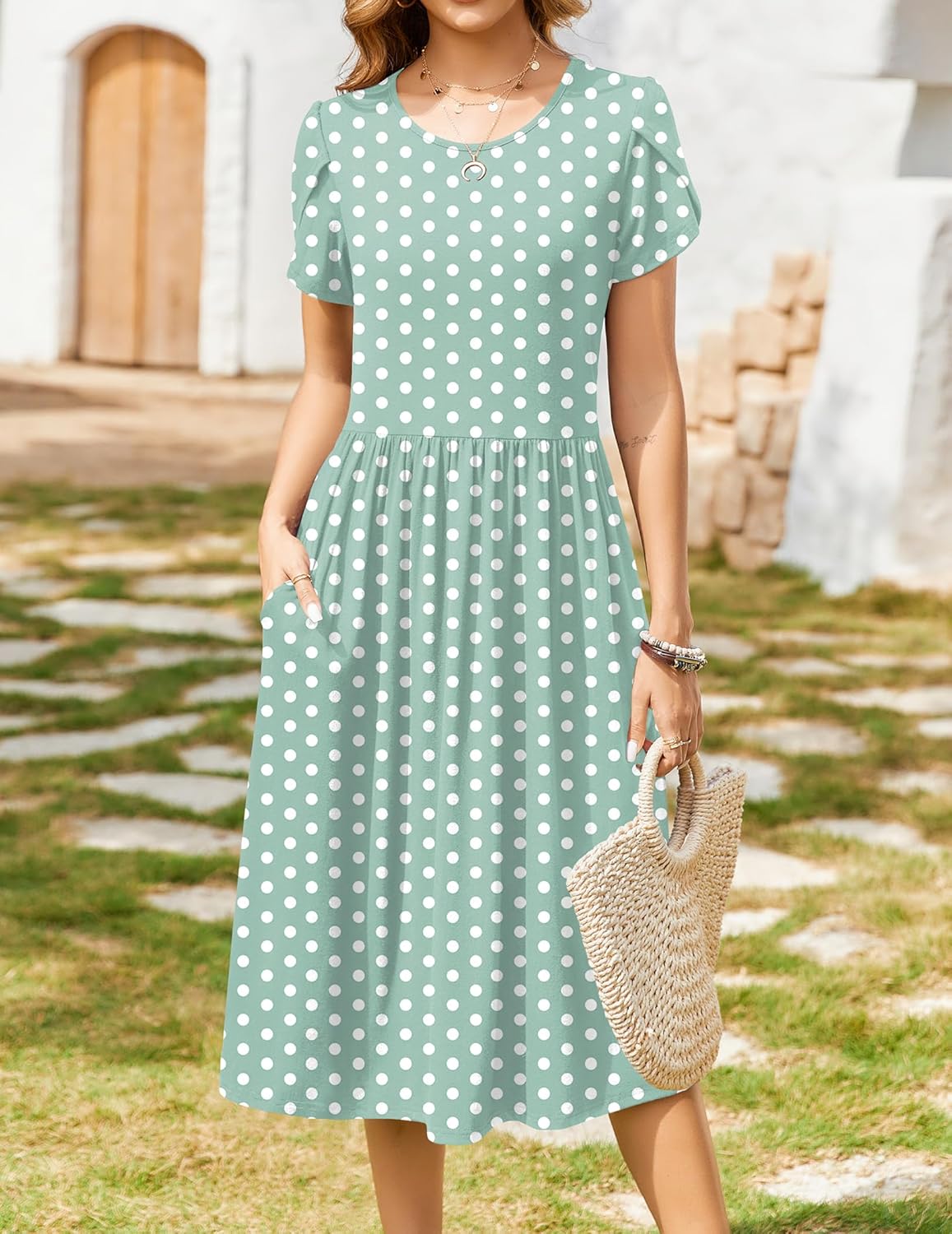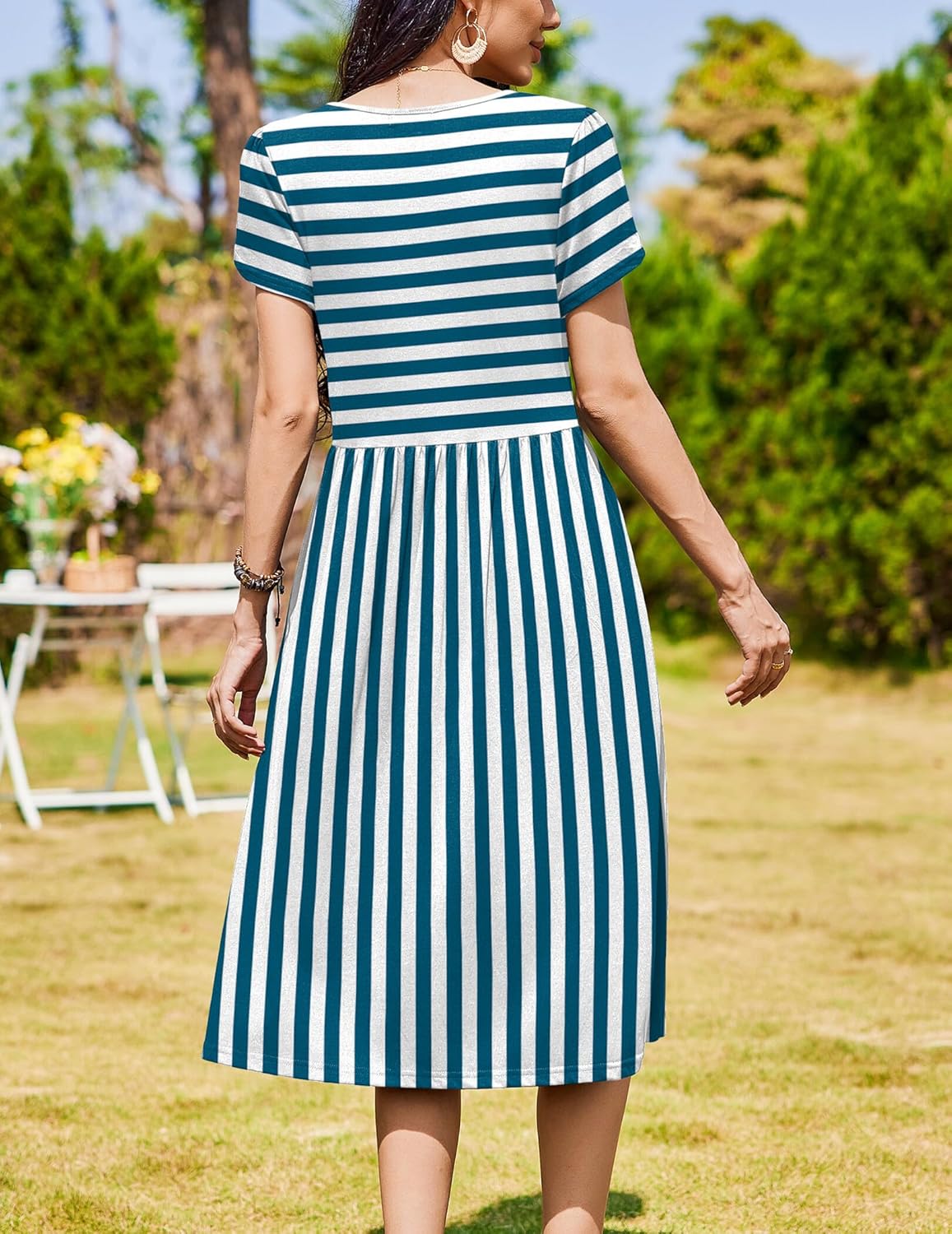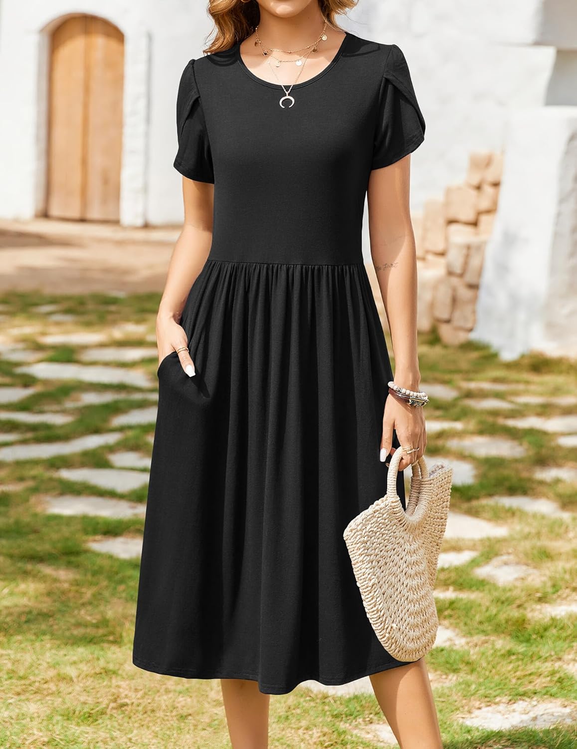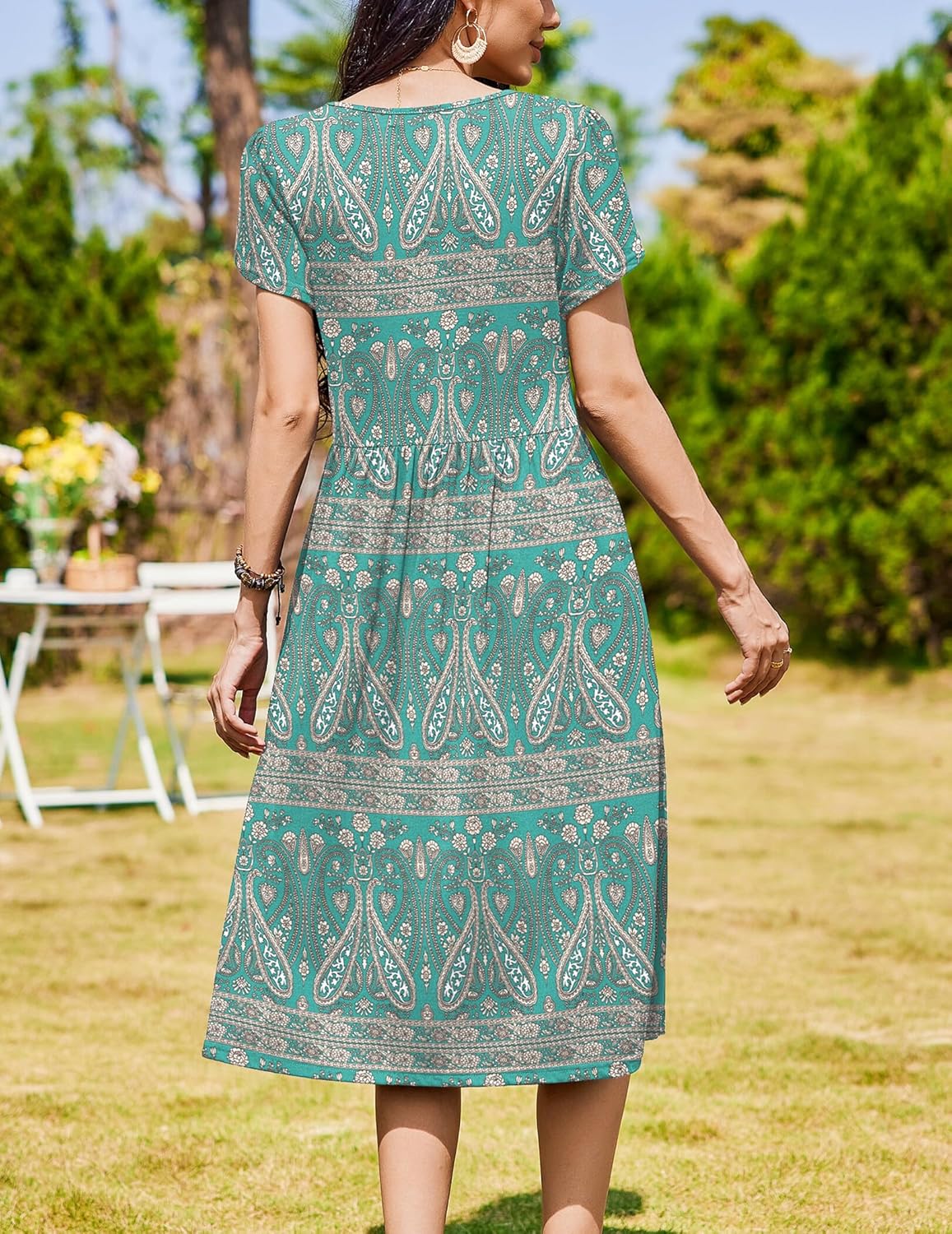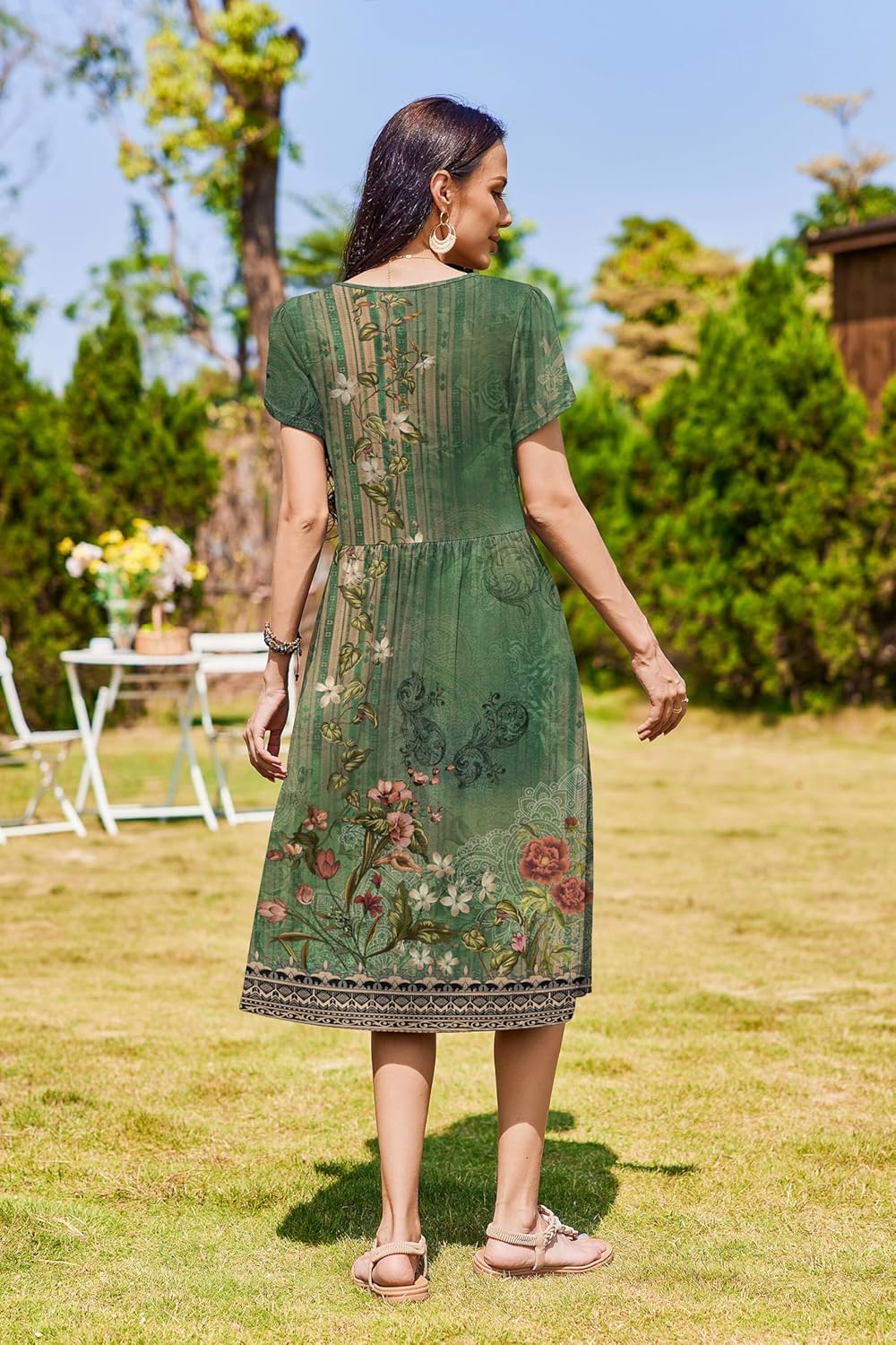 Zeagoo Women Summer Short Sleeve Midi Dress with Pockets Casual Aline Flowy Tshirt Dress Floral Vocation Beach Sundress