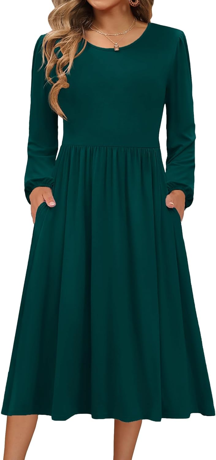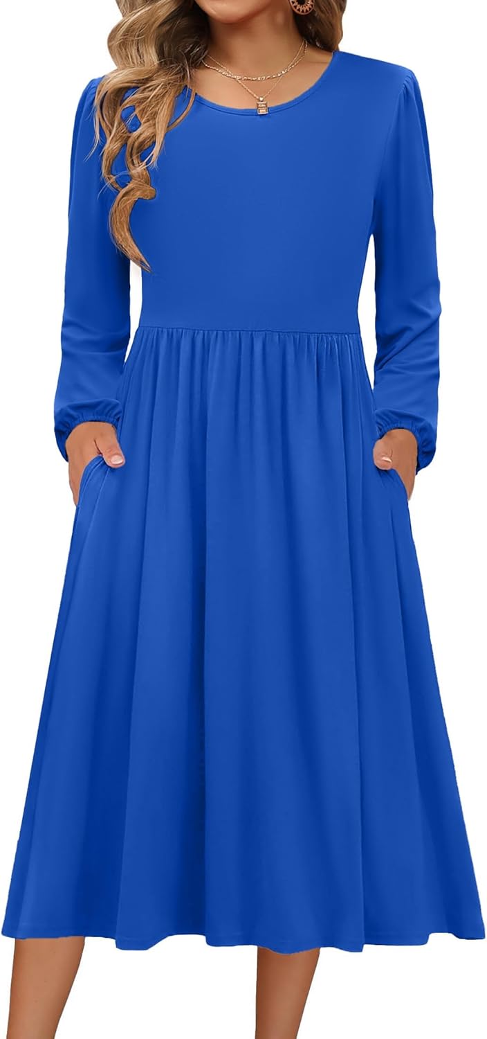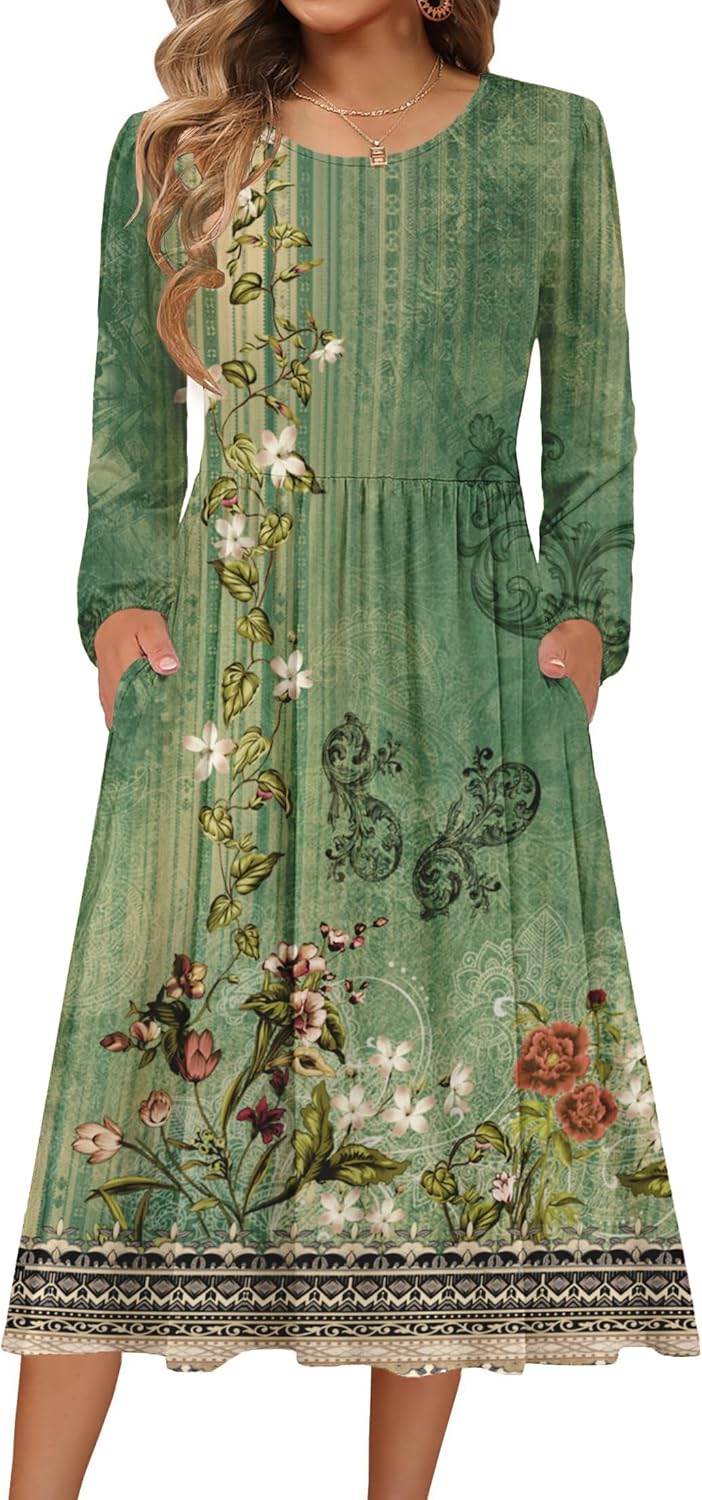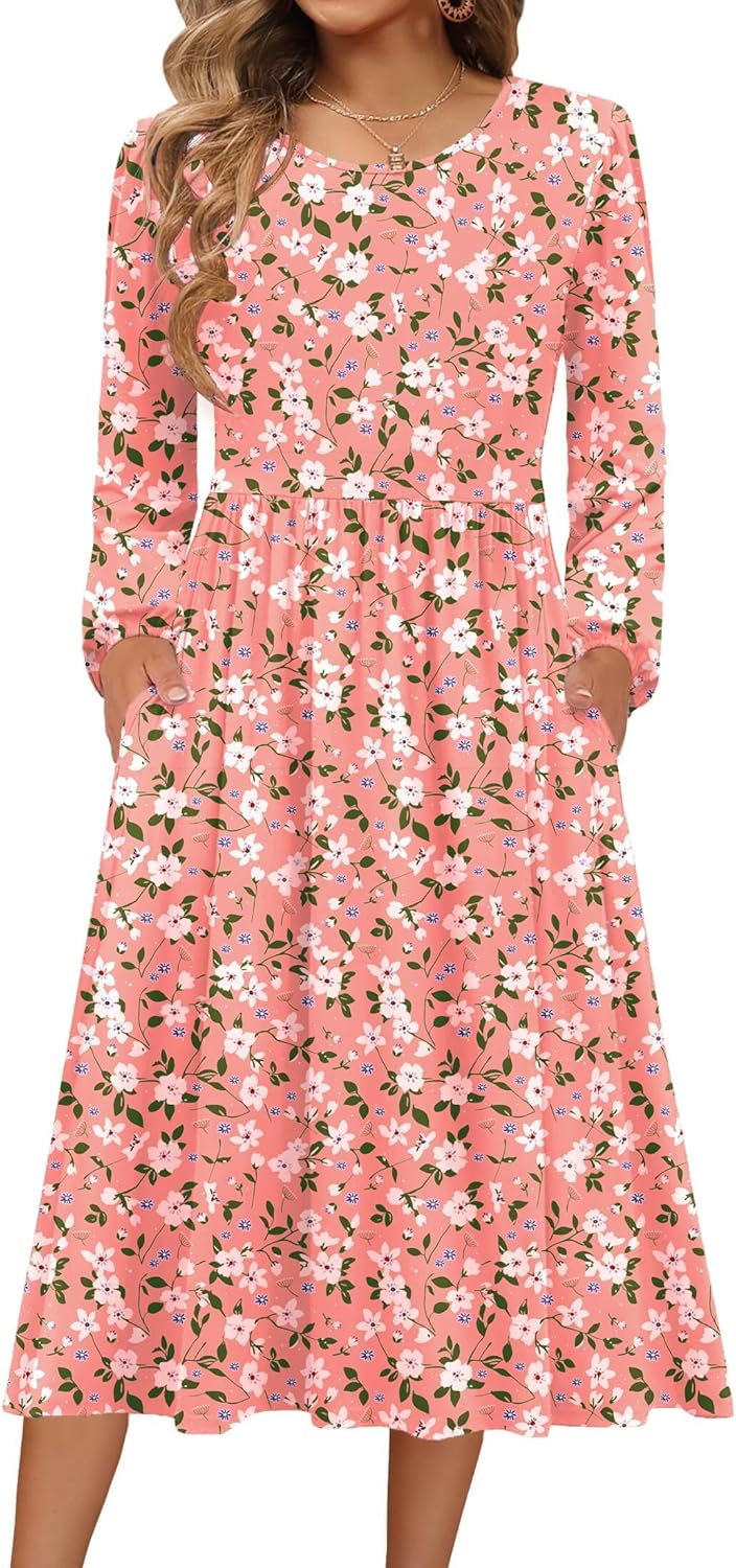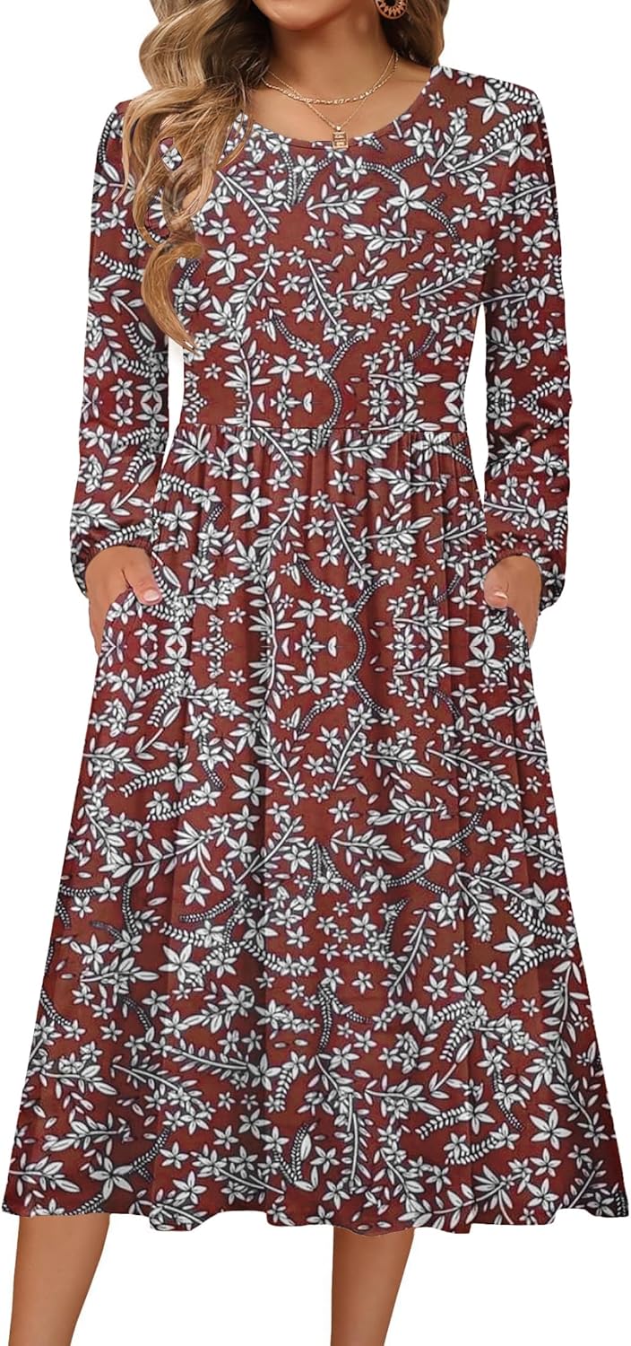 Zeagoo Long Sleeve Dresses for Women 2025 Fall Winter Casual Flowy A-Line Boho Midi Party Long Dress with Pockets