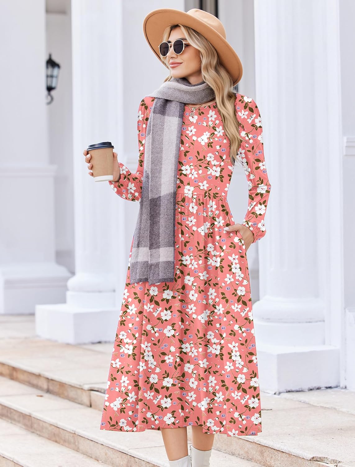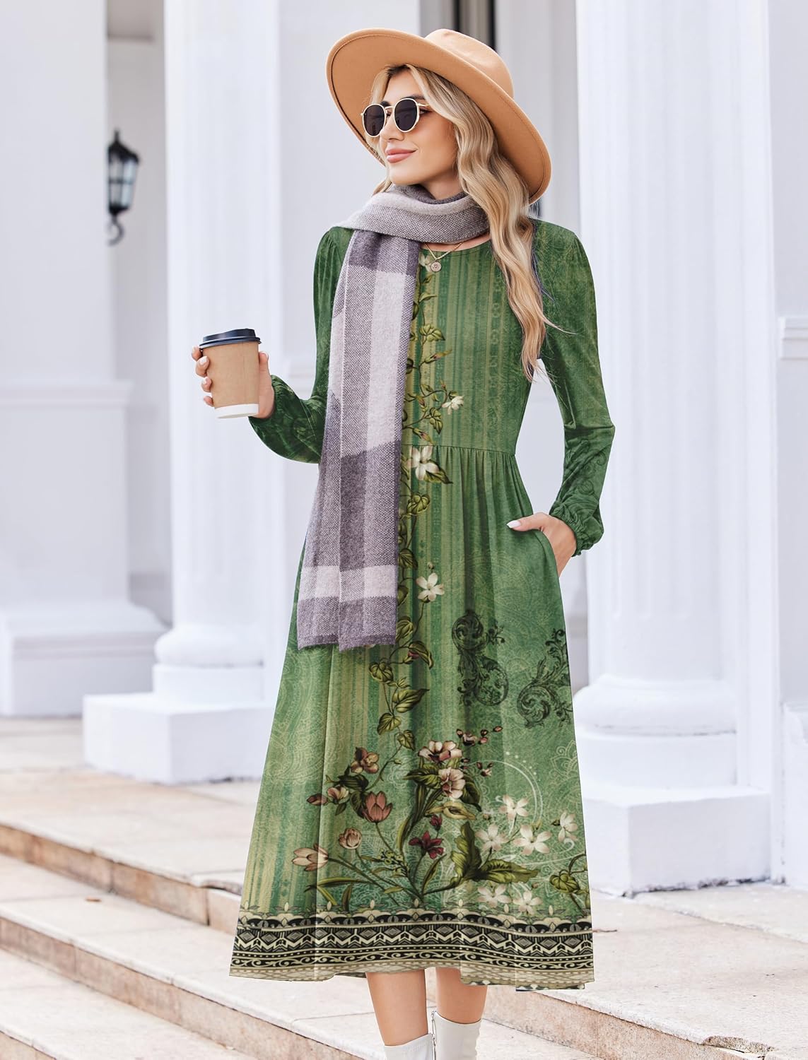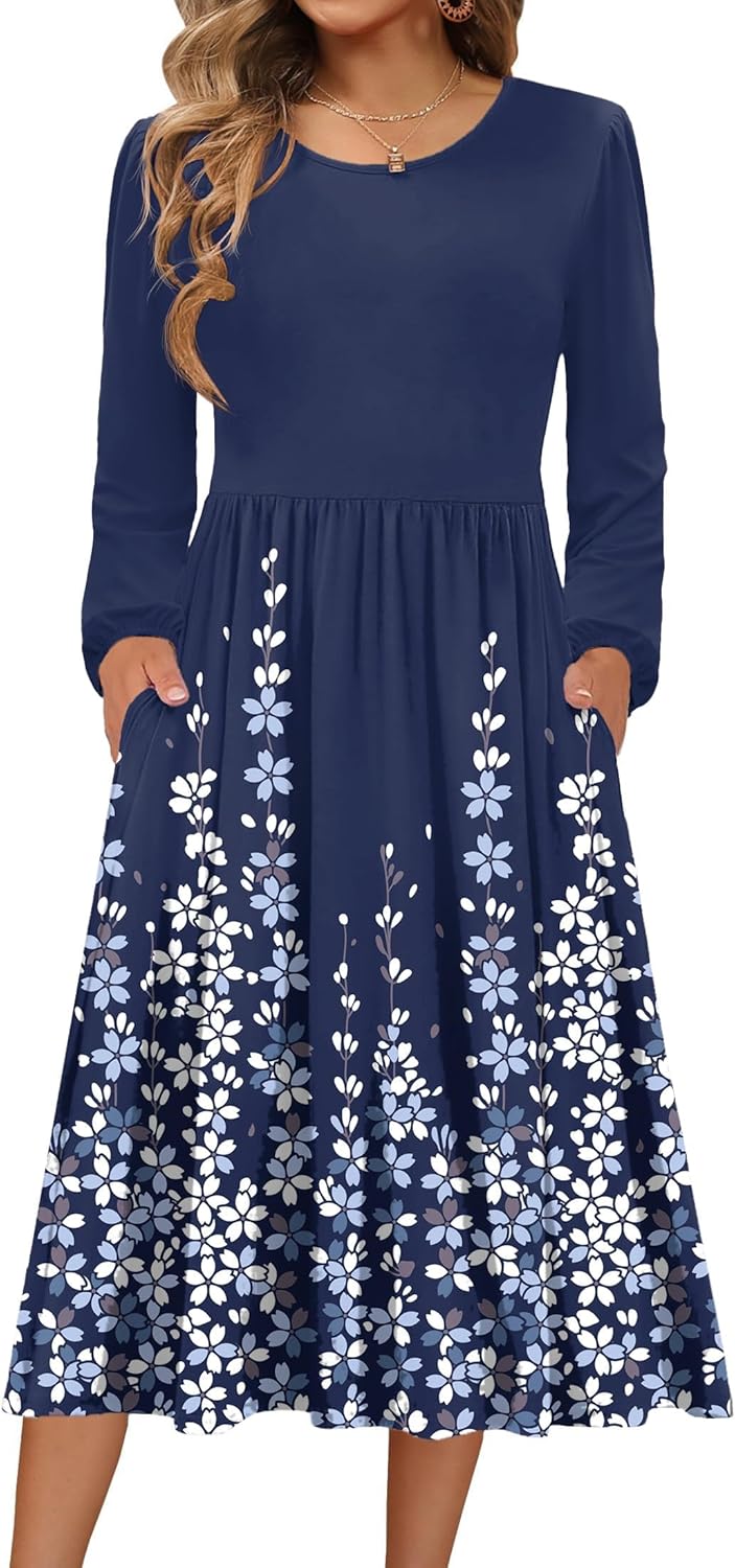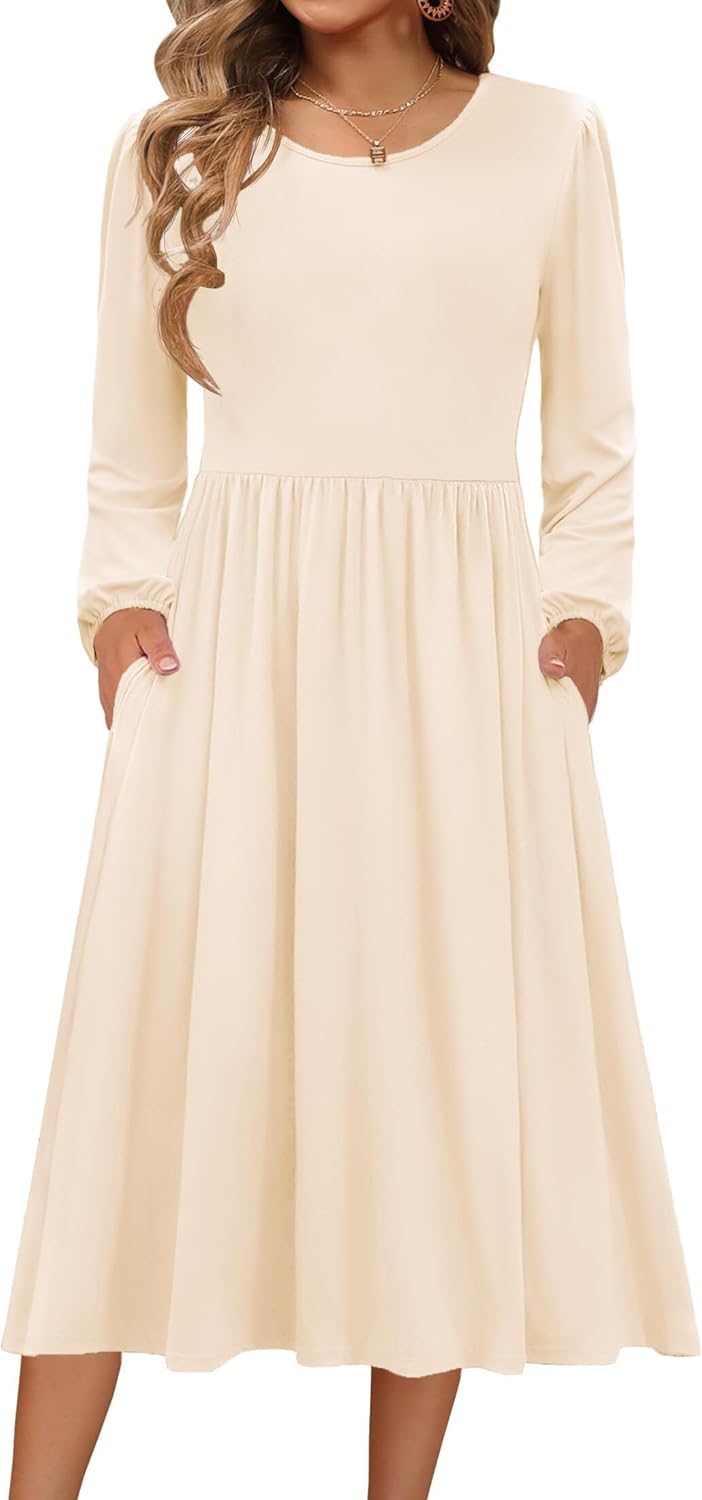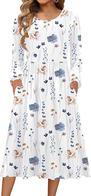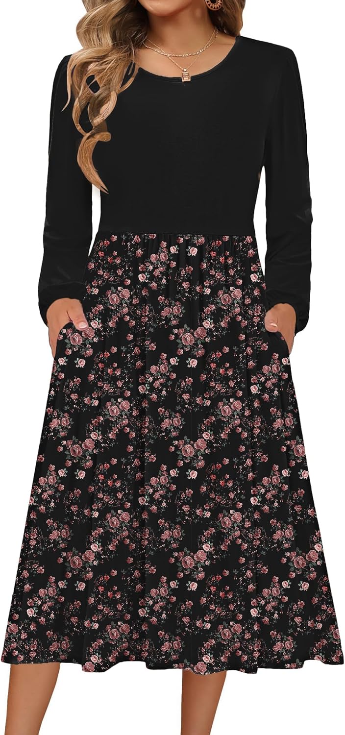 Zeagoo Long Sleeve Dresses for Women 2025 Fall Winter Casual Flowy A-Line Boho Midi Party Long Dress with Pockets