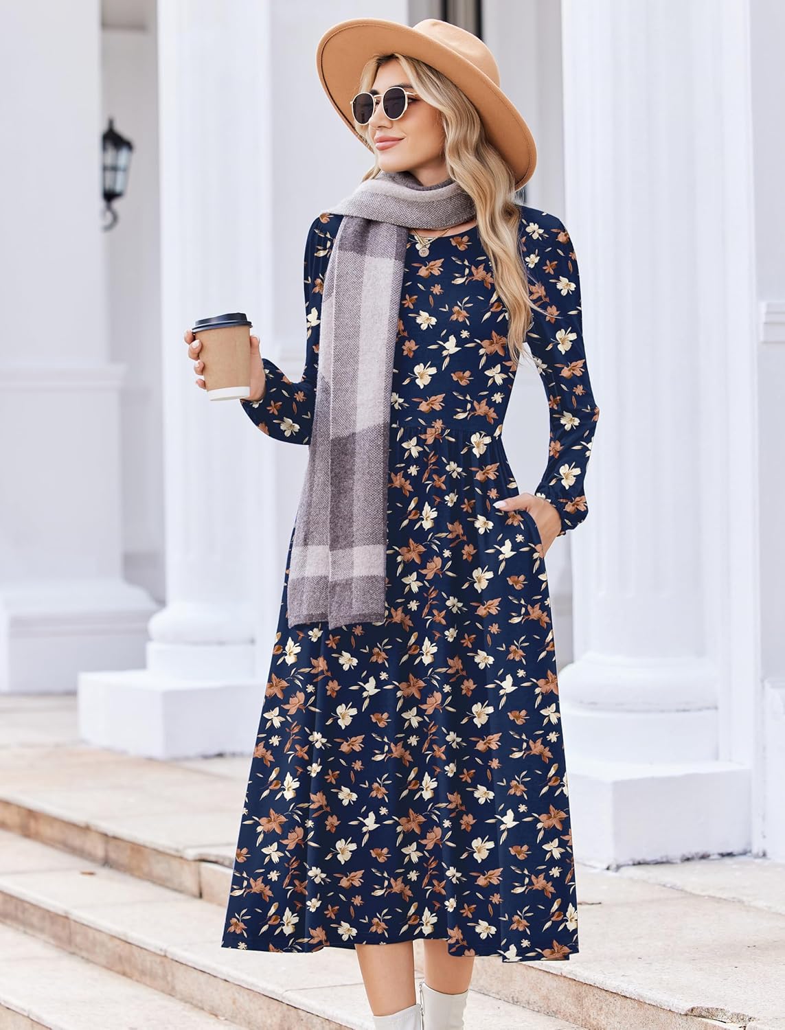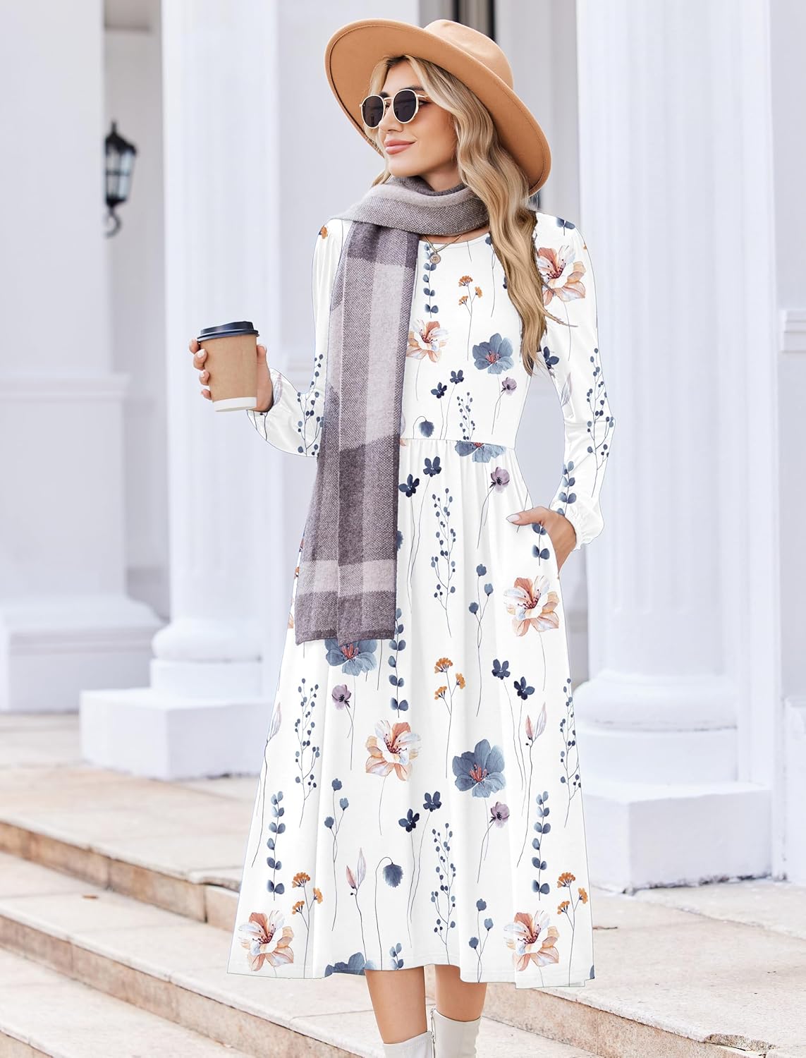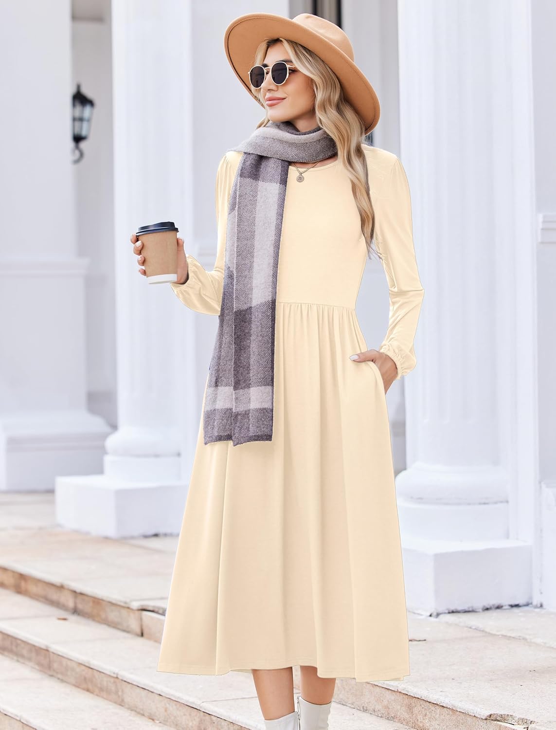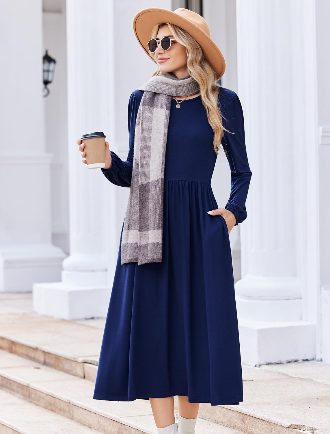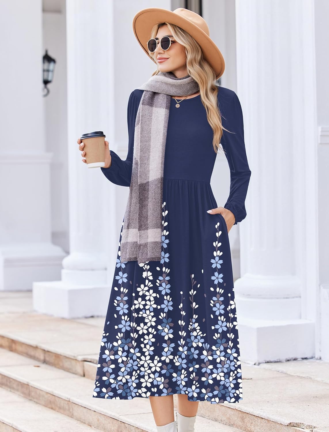 Zeagoo Long Sleeve Dresses for Women 2025 Fall Winter Casual Flowy A-Line Boho Midi Party Long Dress with Pockets