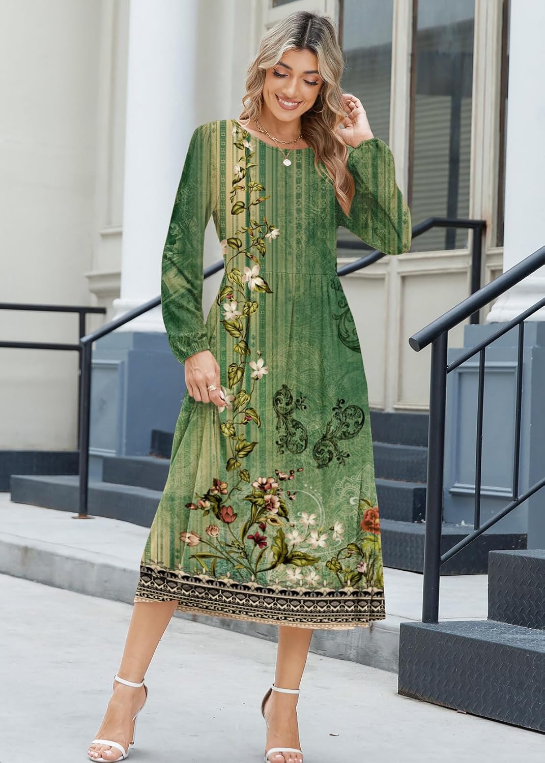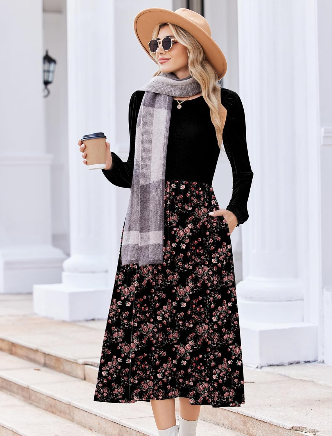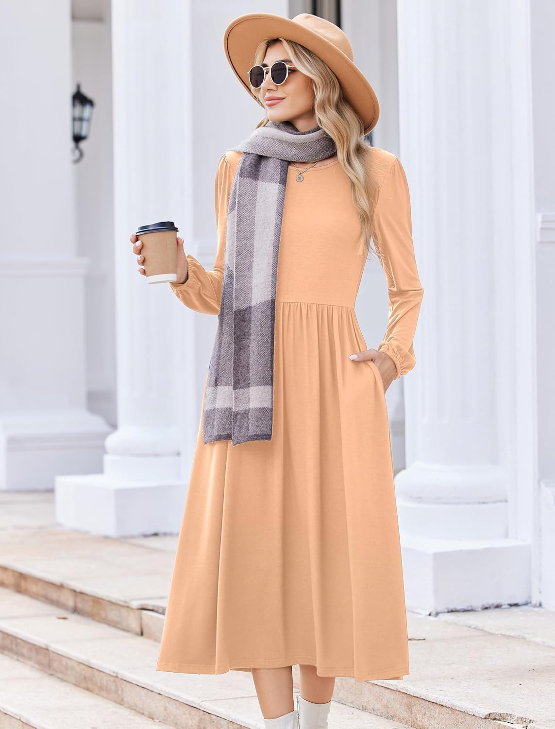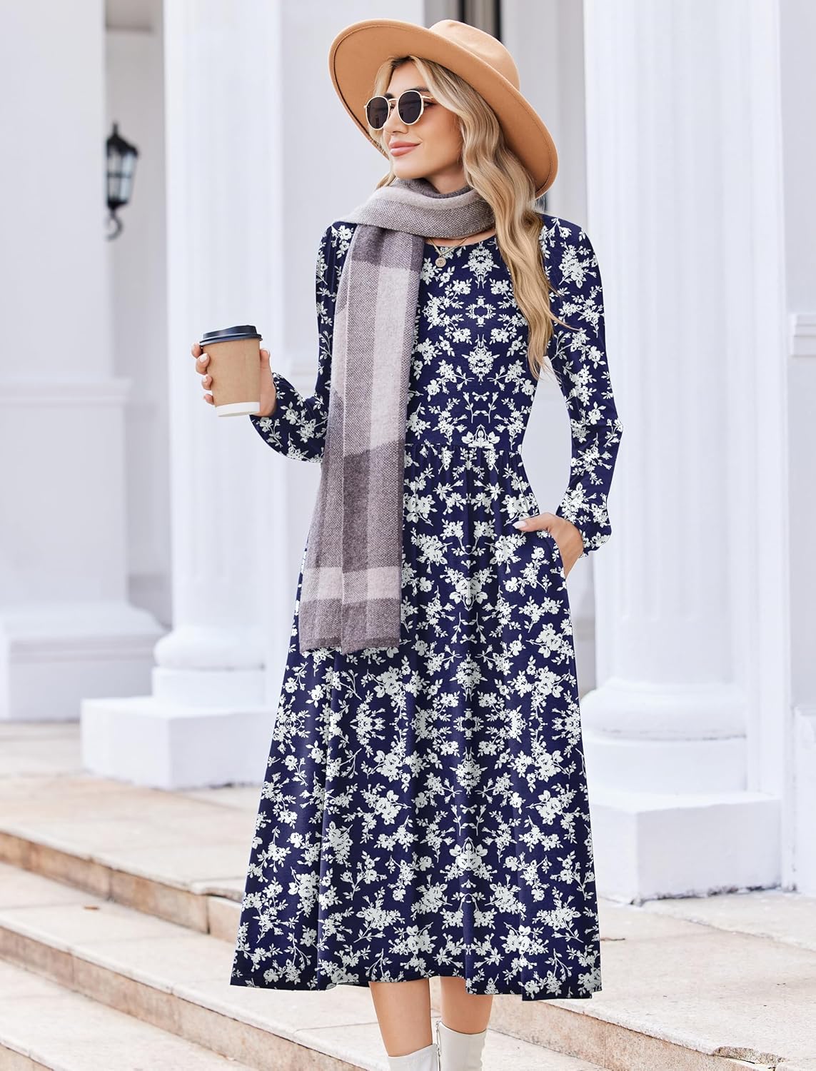 Zeagoo Long Sleeve Dresses for Women 2025 Fall Winter Casual Flowy A-Line Boho Midi Party Long Dress with Pockets