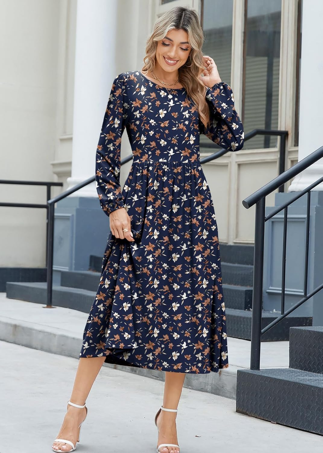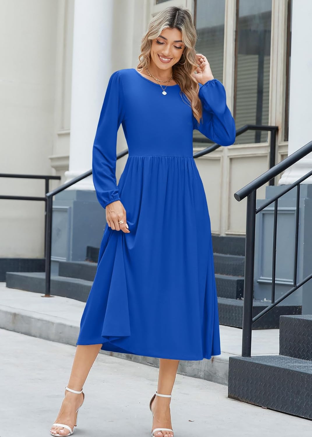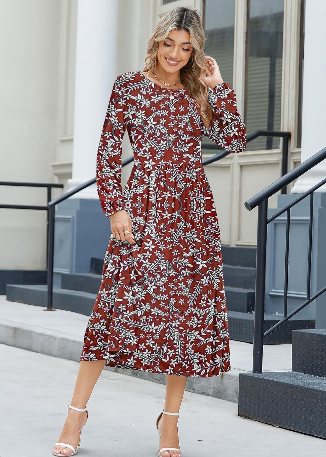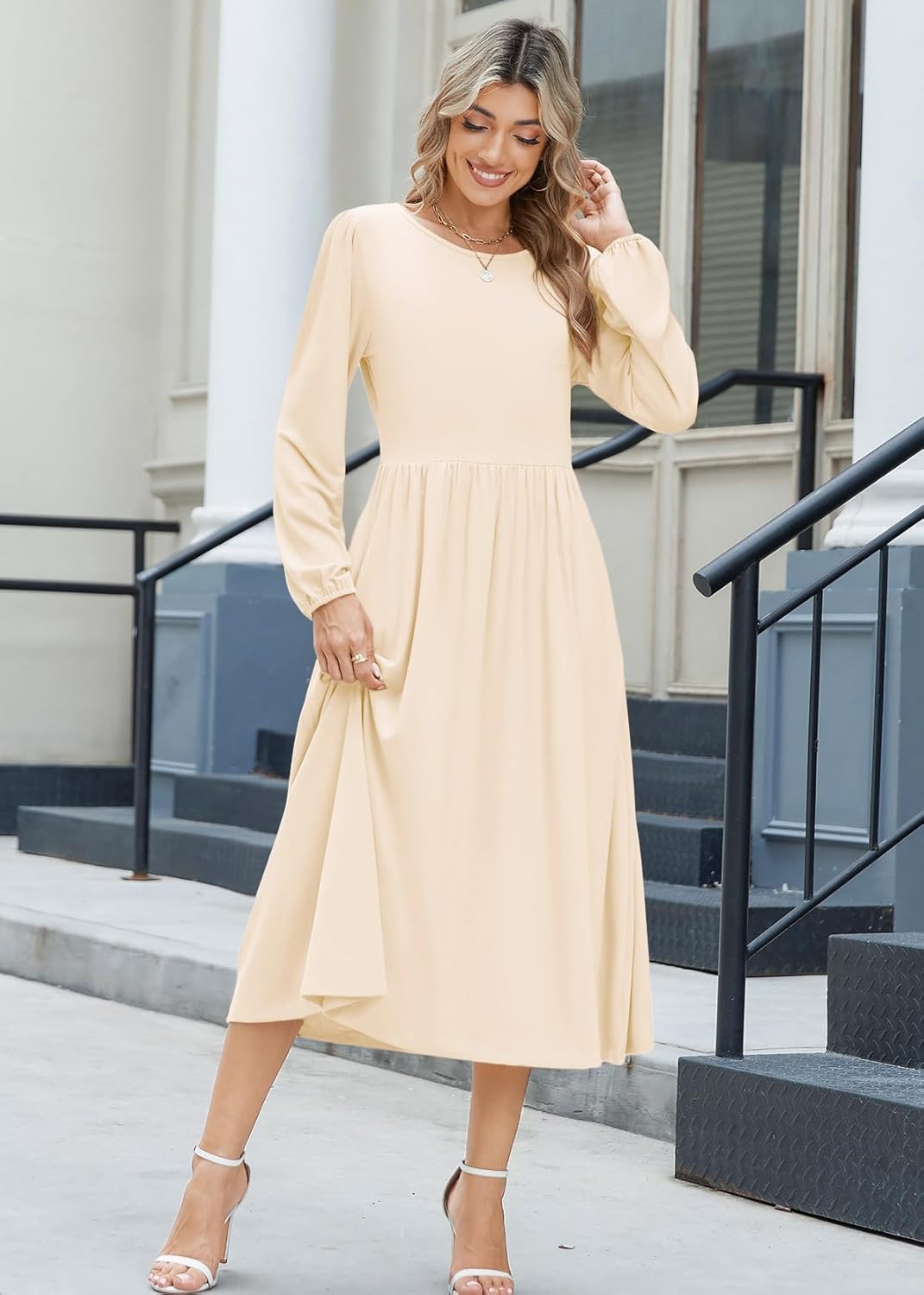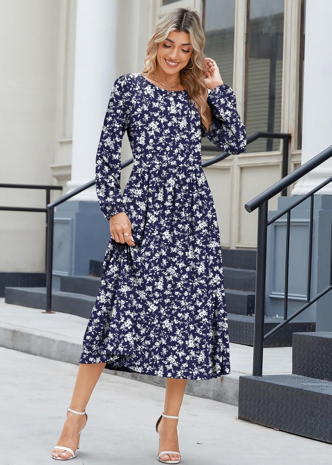 Zeagoo Long Sleeve Dresses for Women 2025 Fall Winter Casual Flowy A-Line Boho Midi Party Long Dress with Pockets