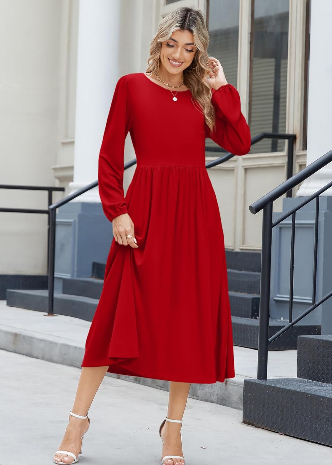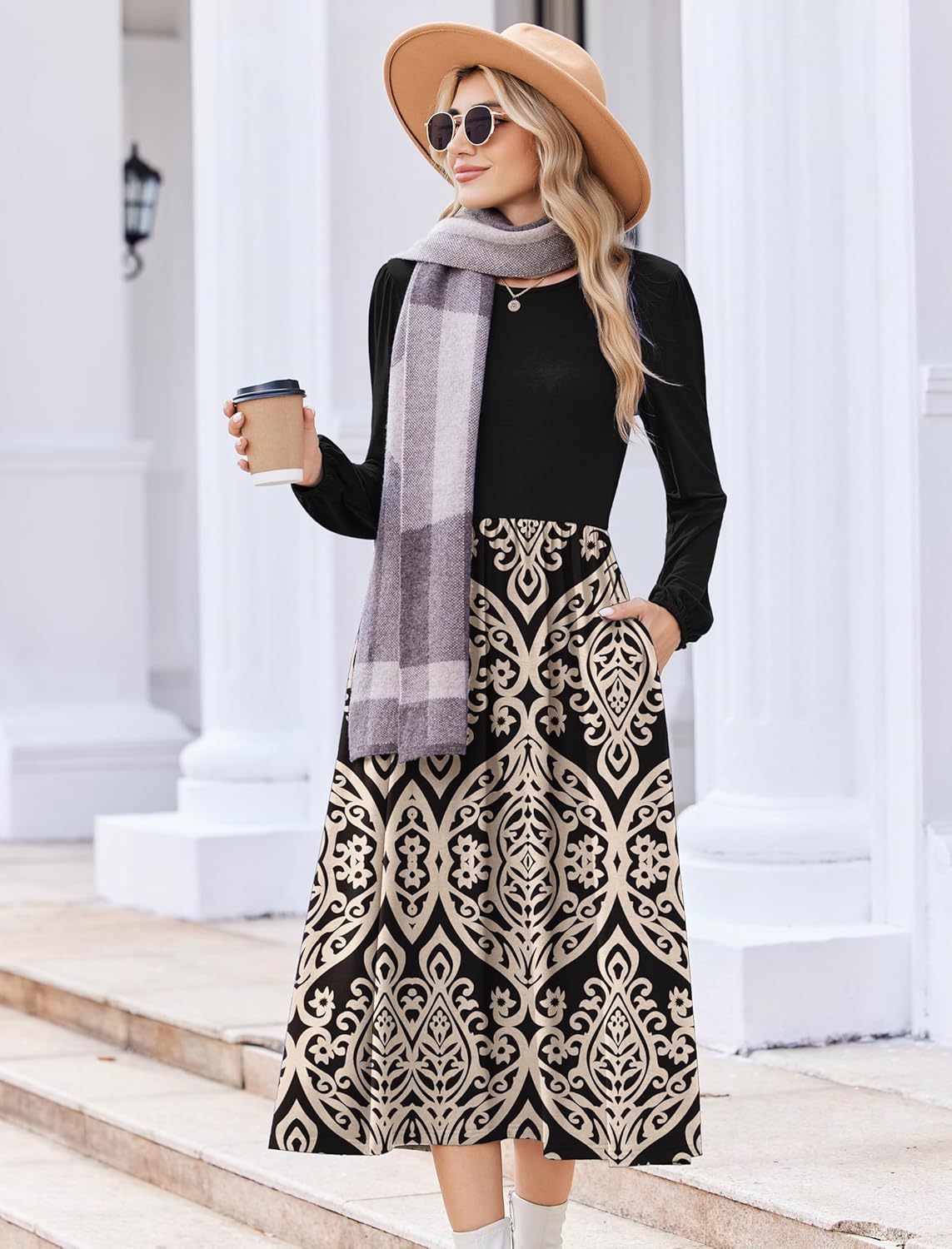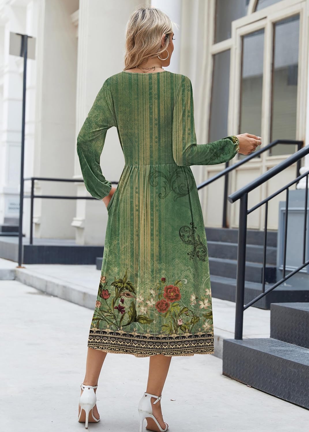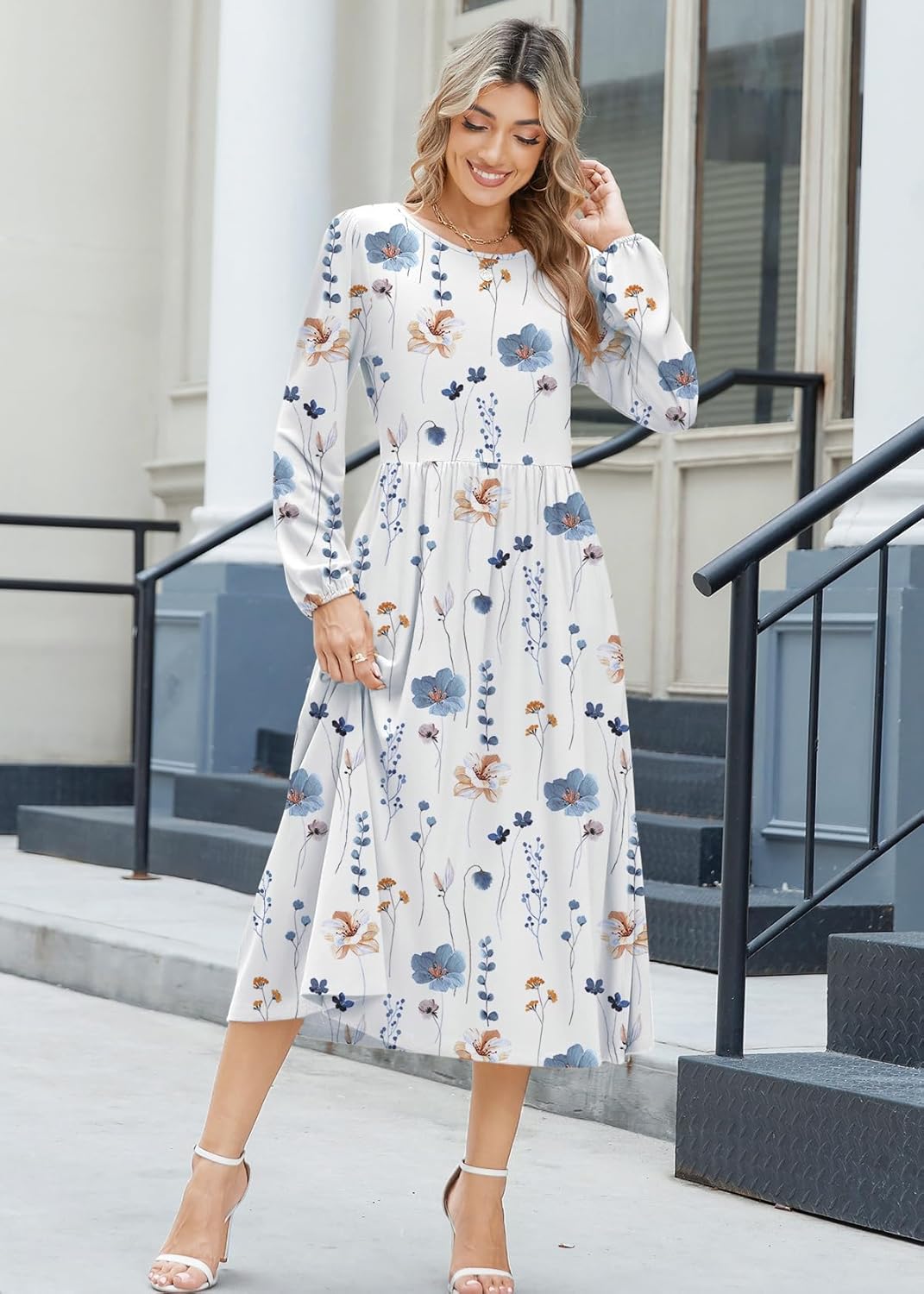 Zeagoo Long Sleeve Dresses for Women 2025 Fall Winter Casual Flowy A-Line Boho Midi Party Long Dress with Pockets