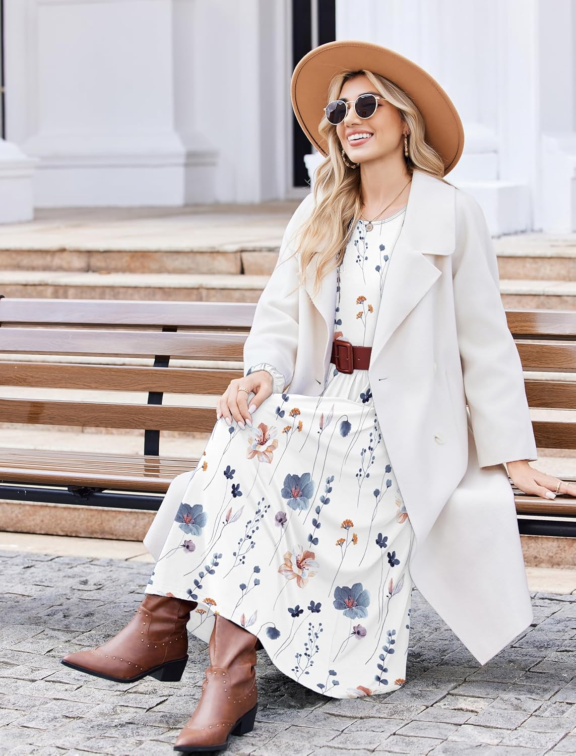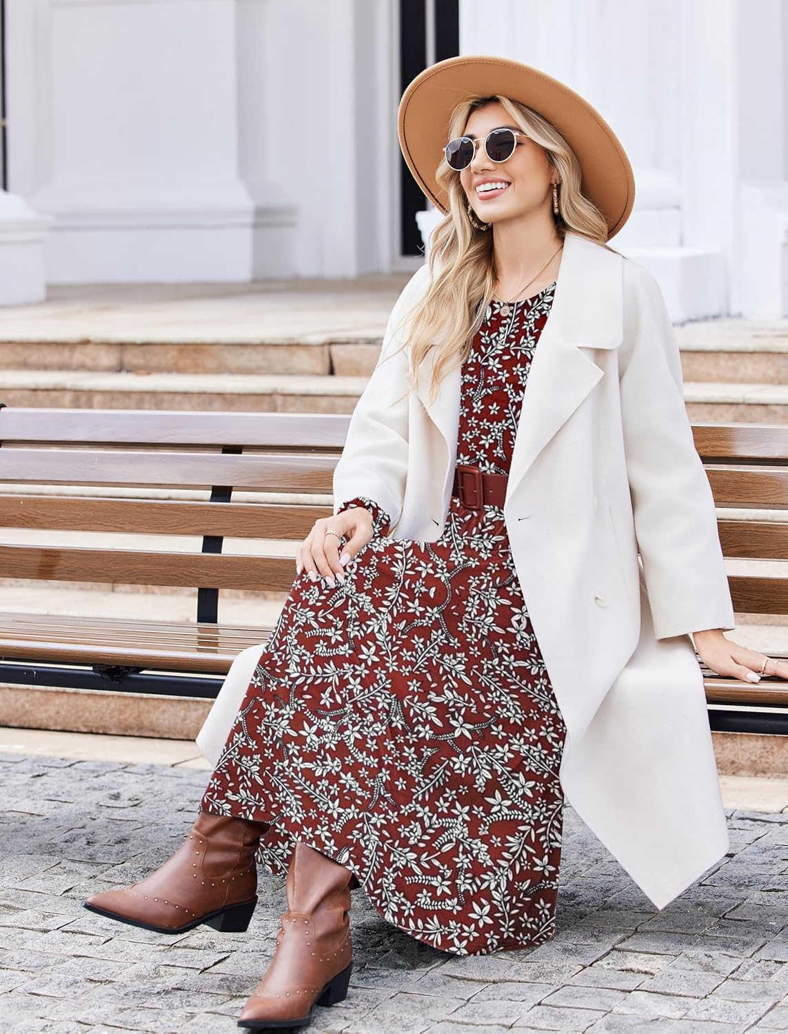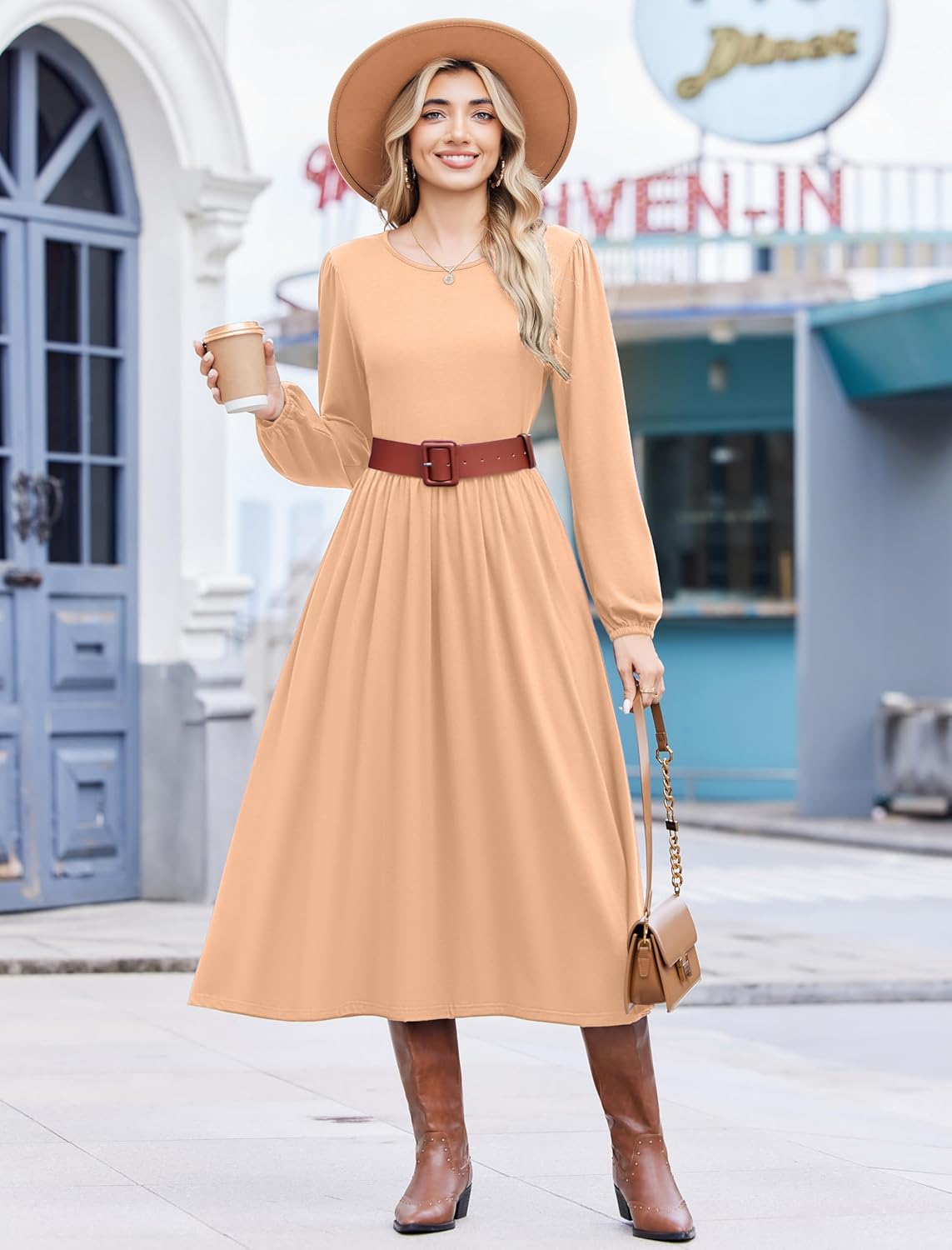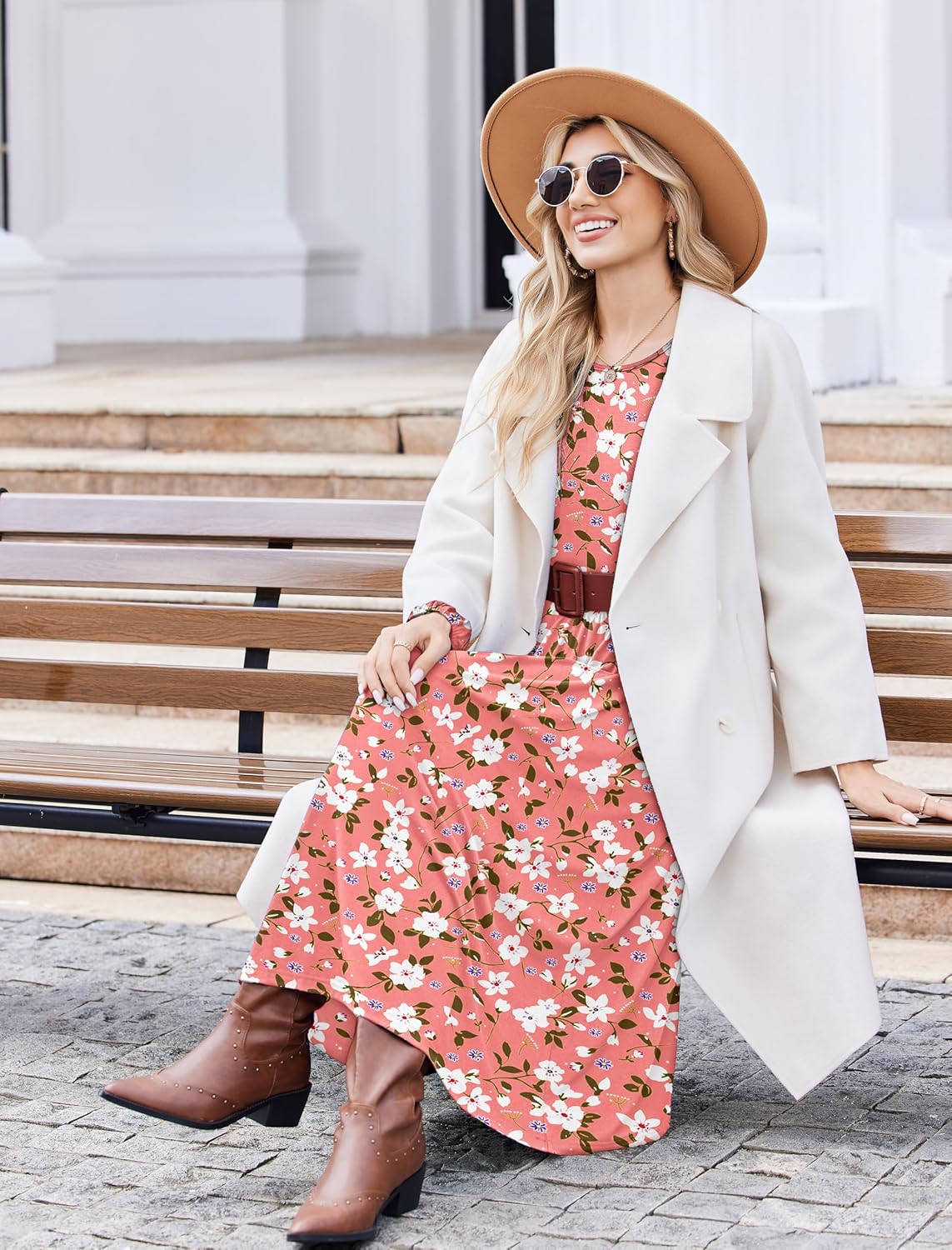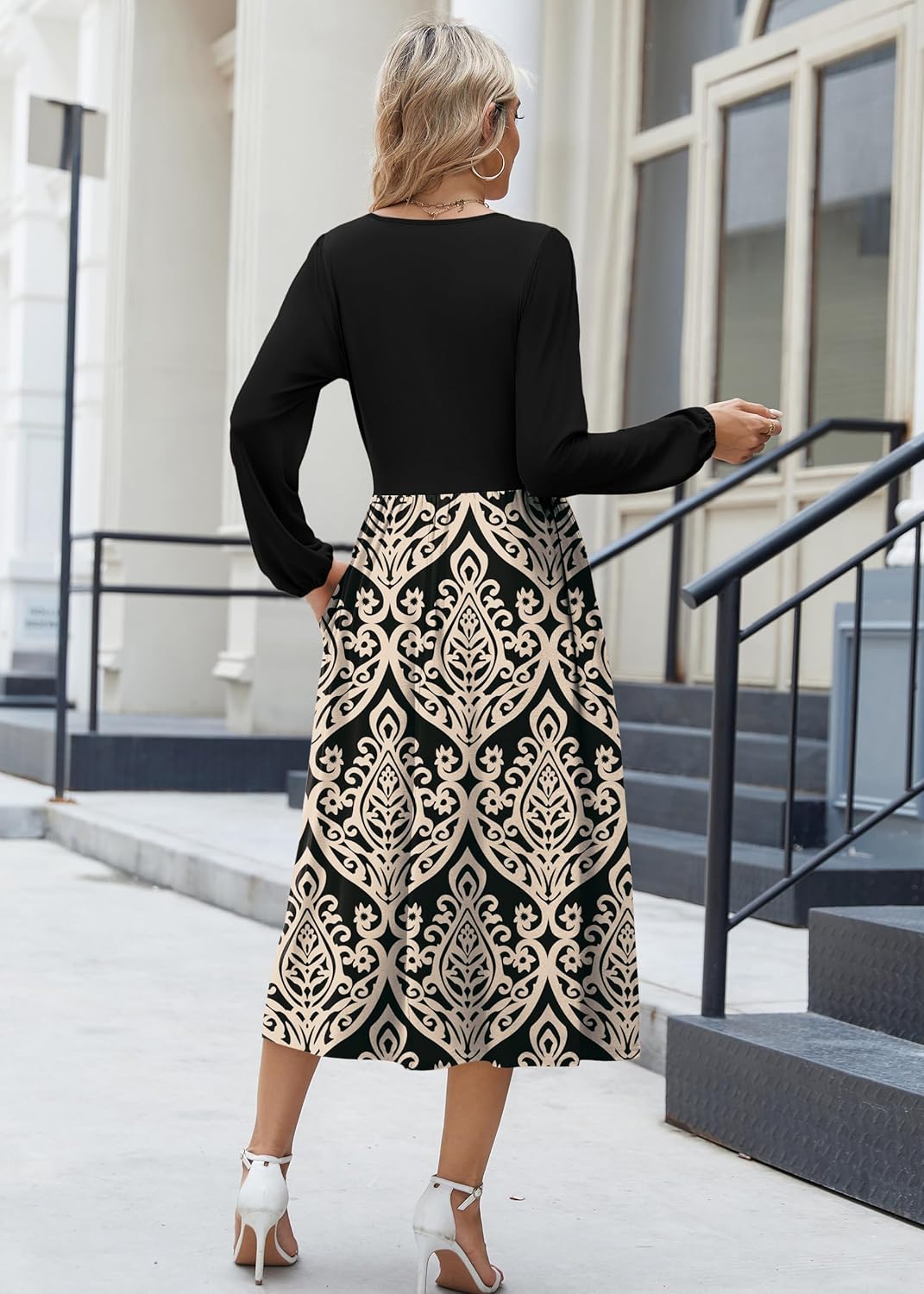 Zeagoo Long Sleeve Dresses for Women 2025 Fall Winter Casual Flowy A-Line Boho Midi Party Long Dress with Pockets