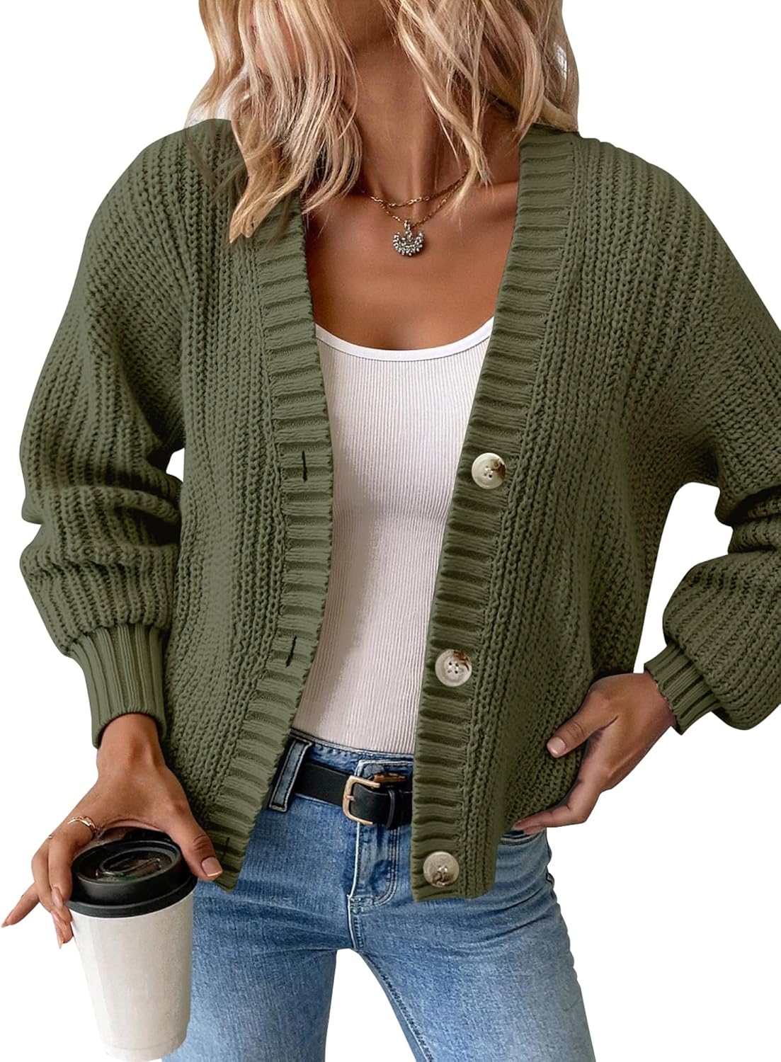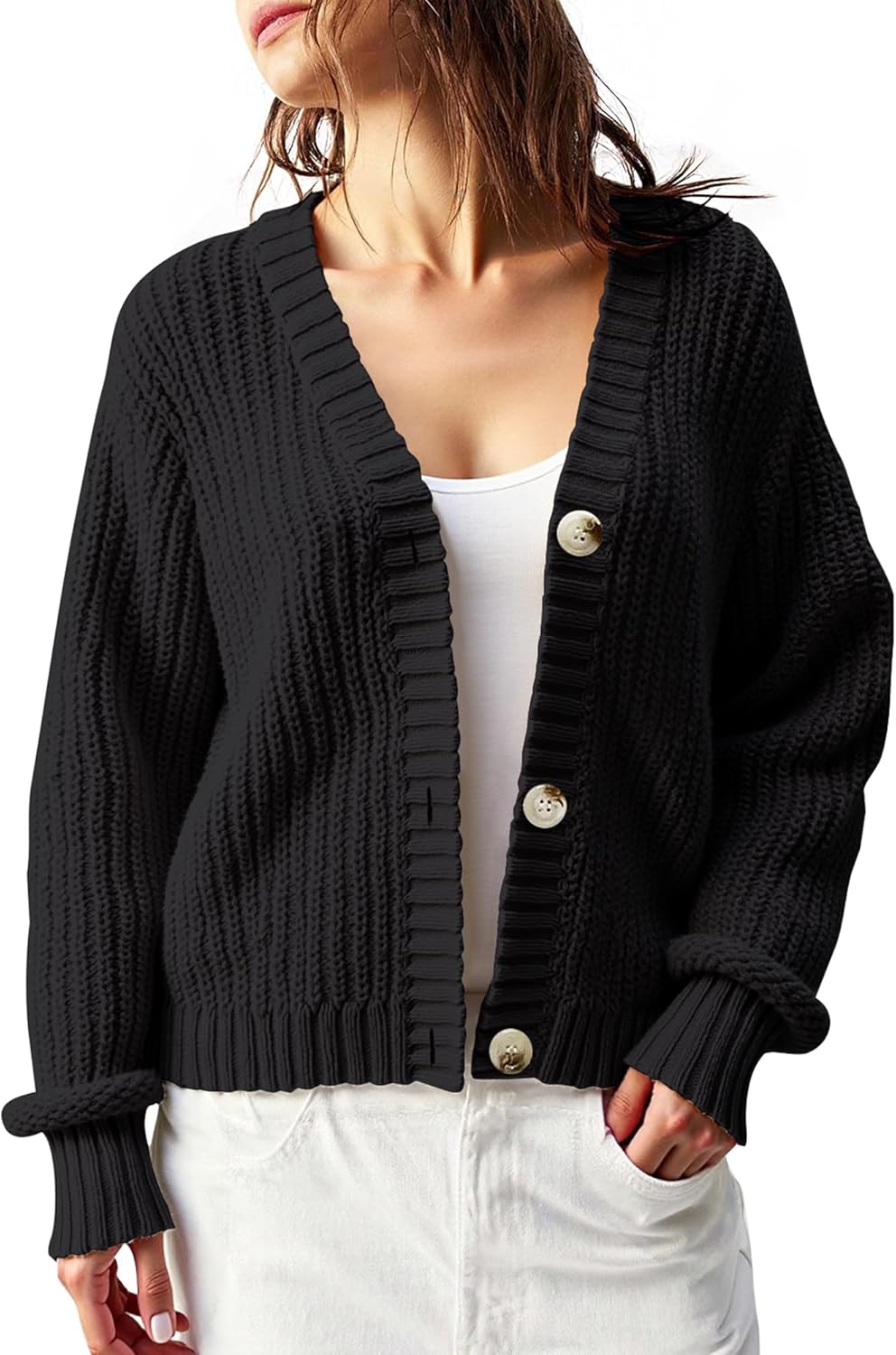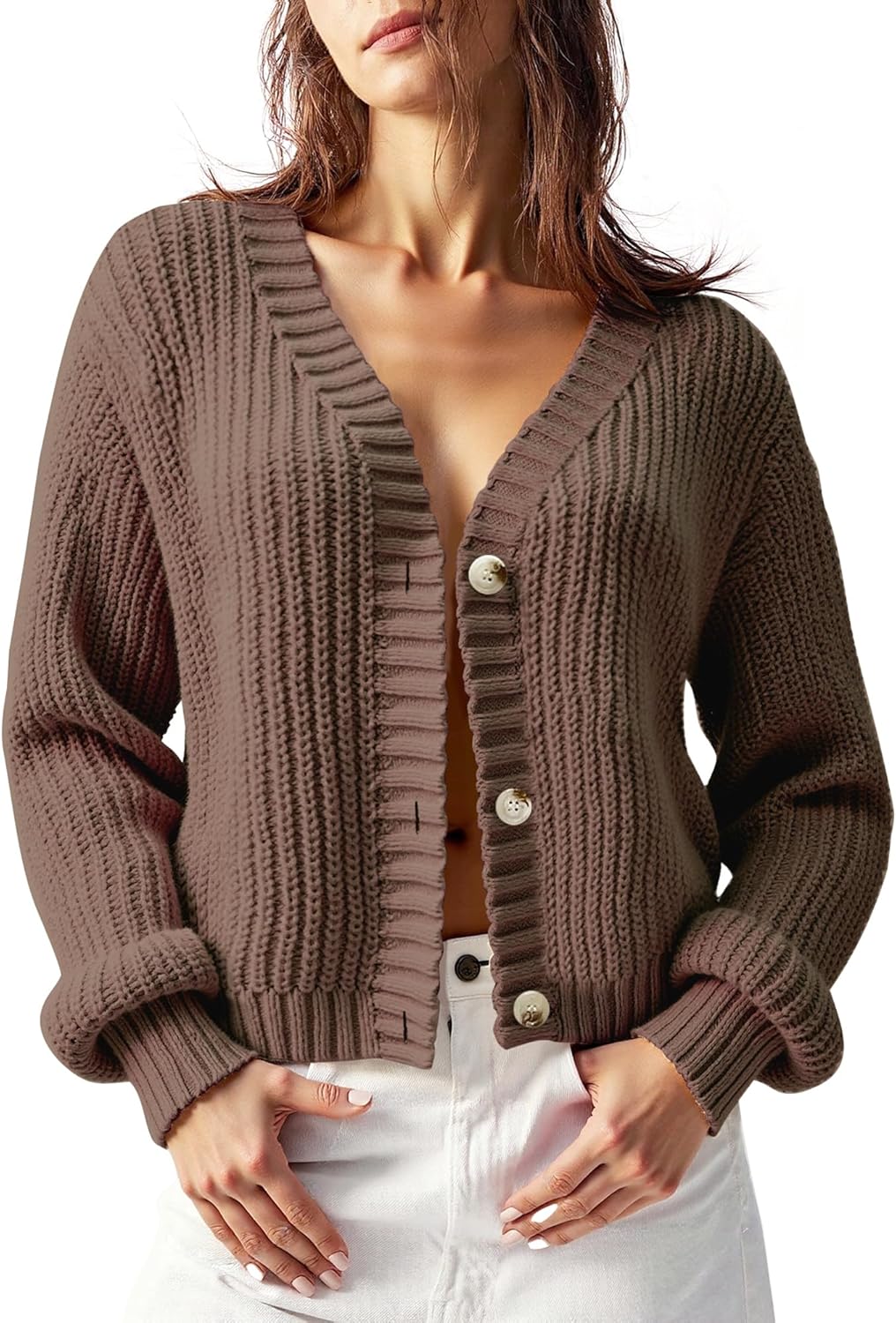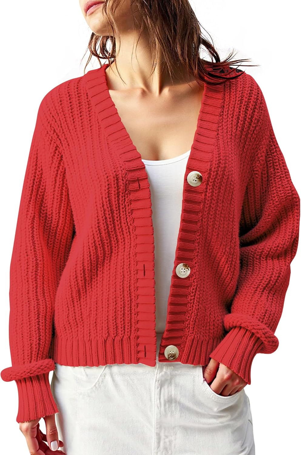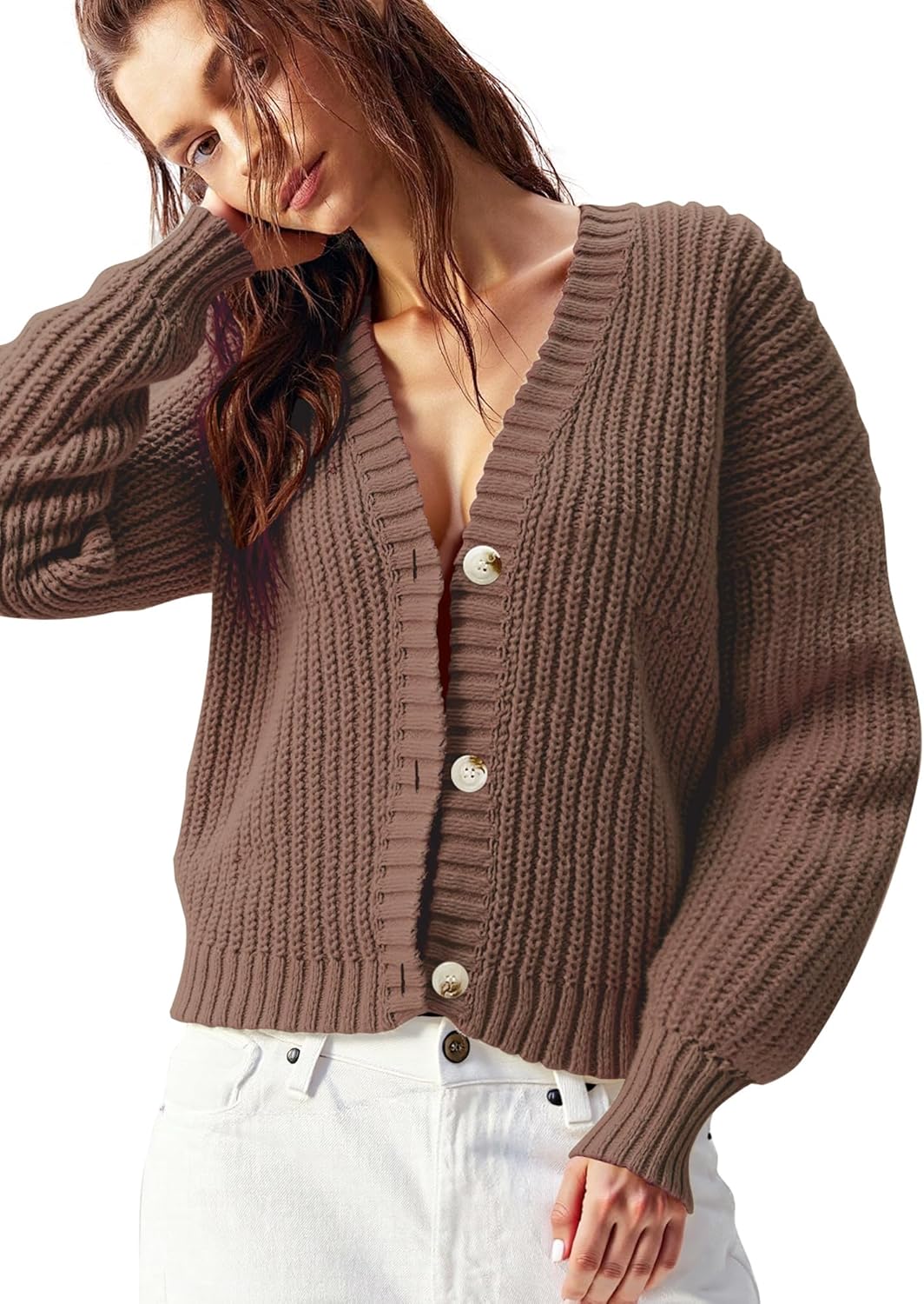 Women’s Chunky Knit Cardigan – Waffle Knit Button Down Oversized V Neck Fall Sweater for Casual Layering