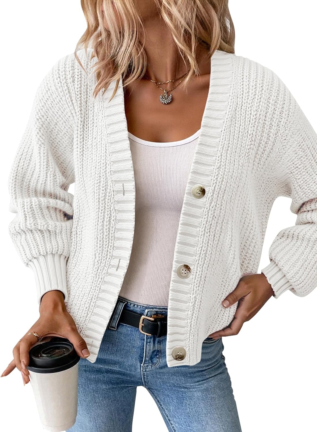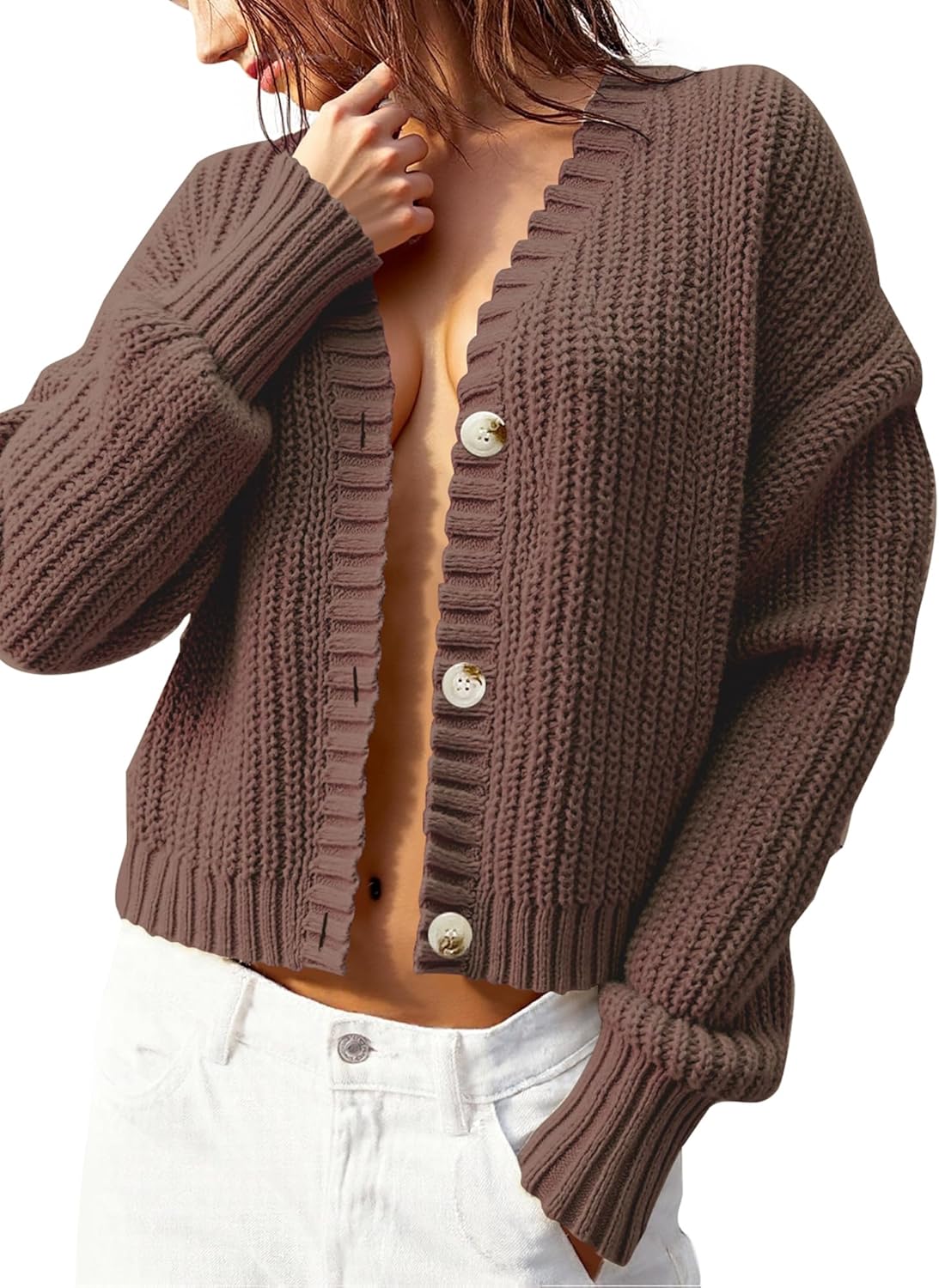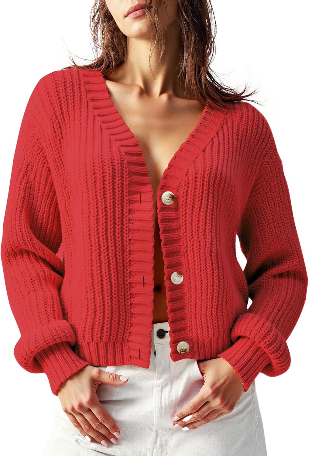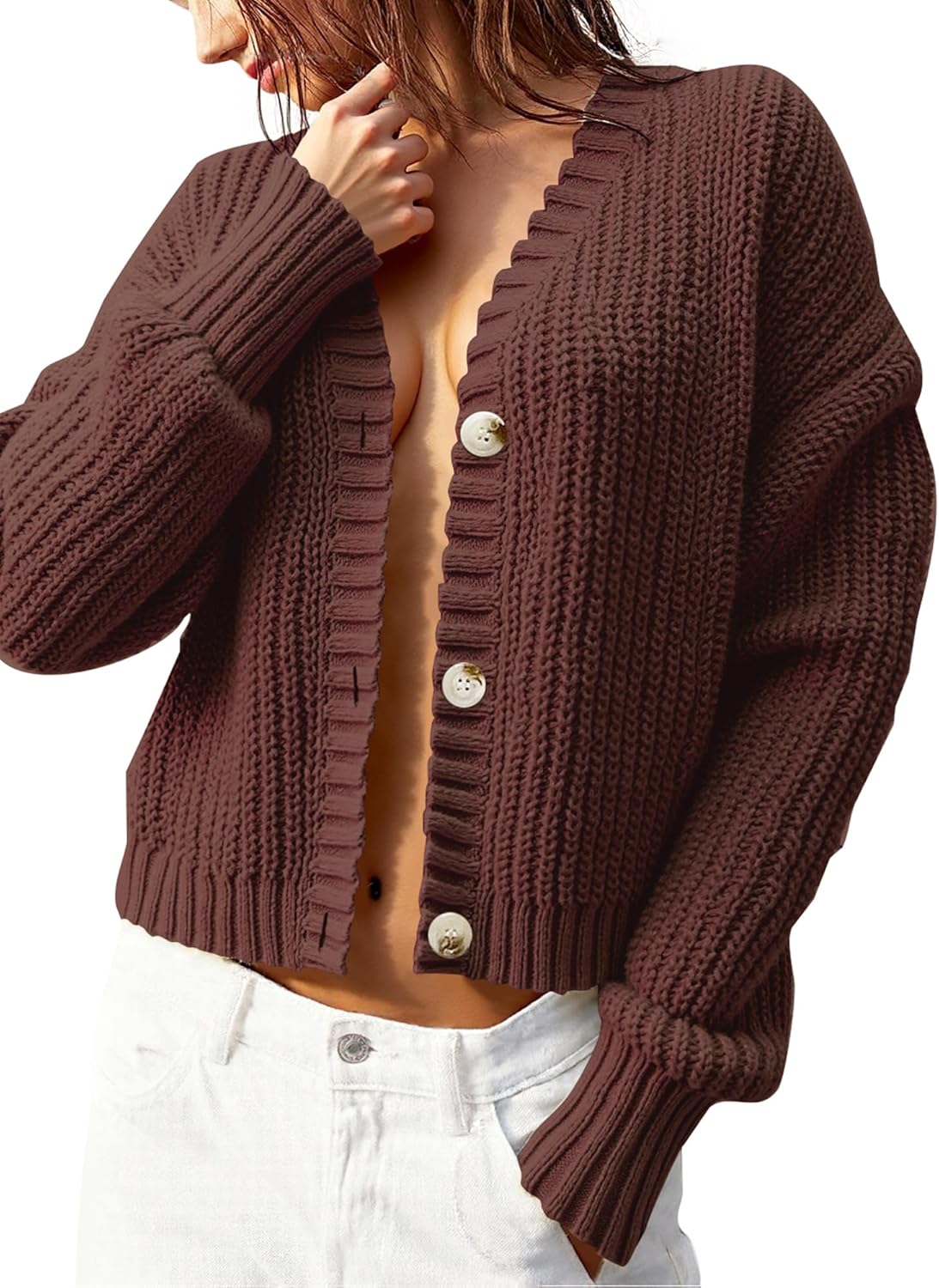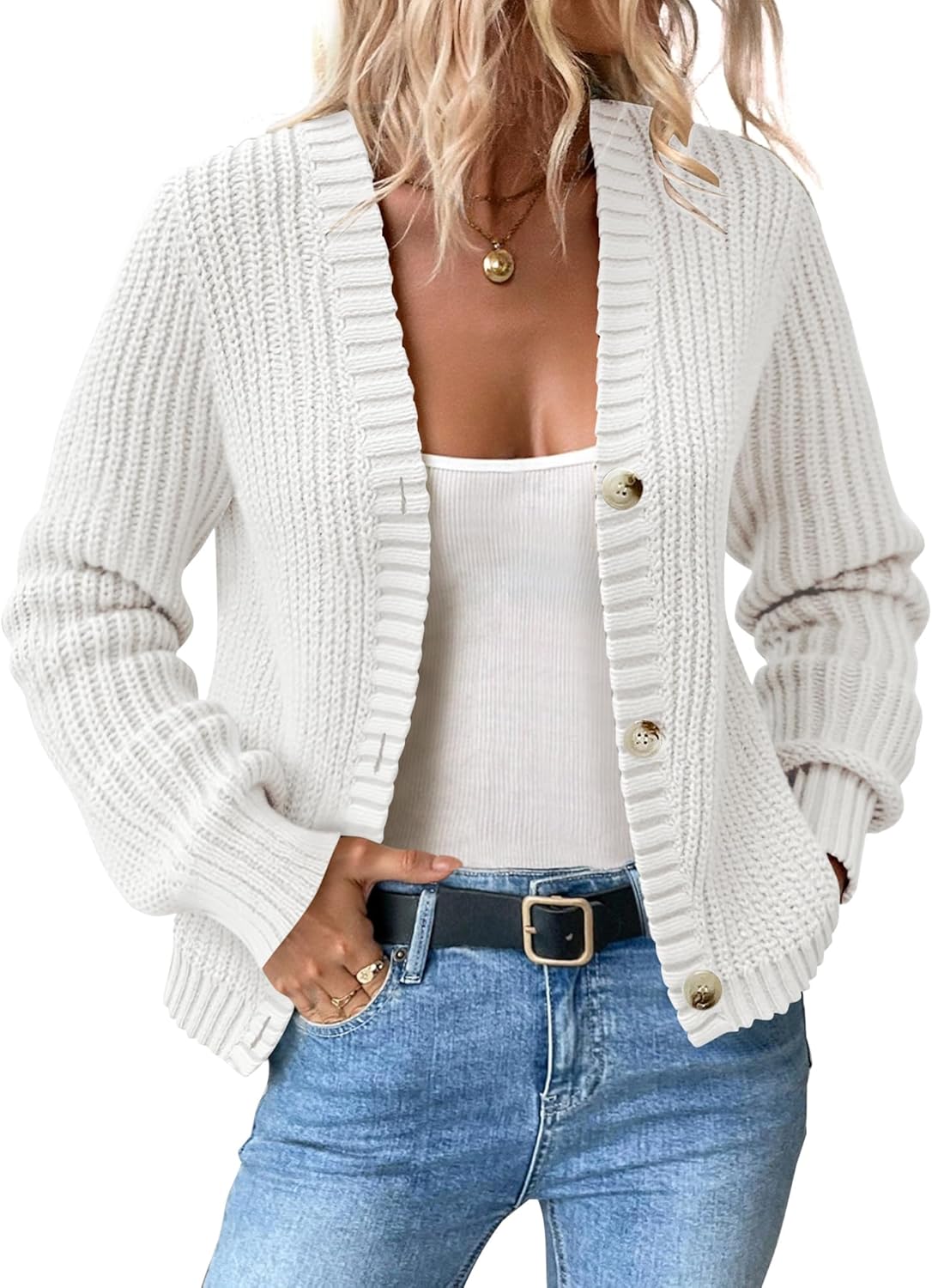 Women’s Chunky Knit Cardigan – Waffle Knit Button Down Oversized V Neck Fall Sweater for Casual Layering