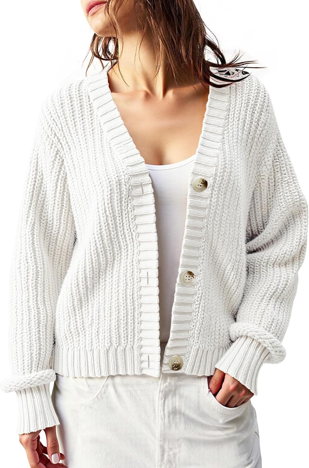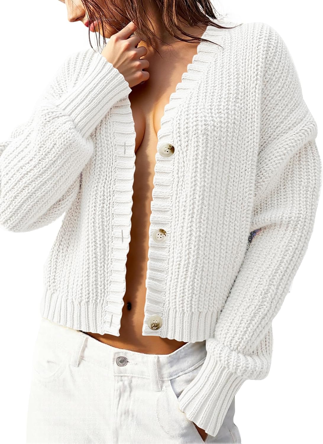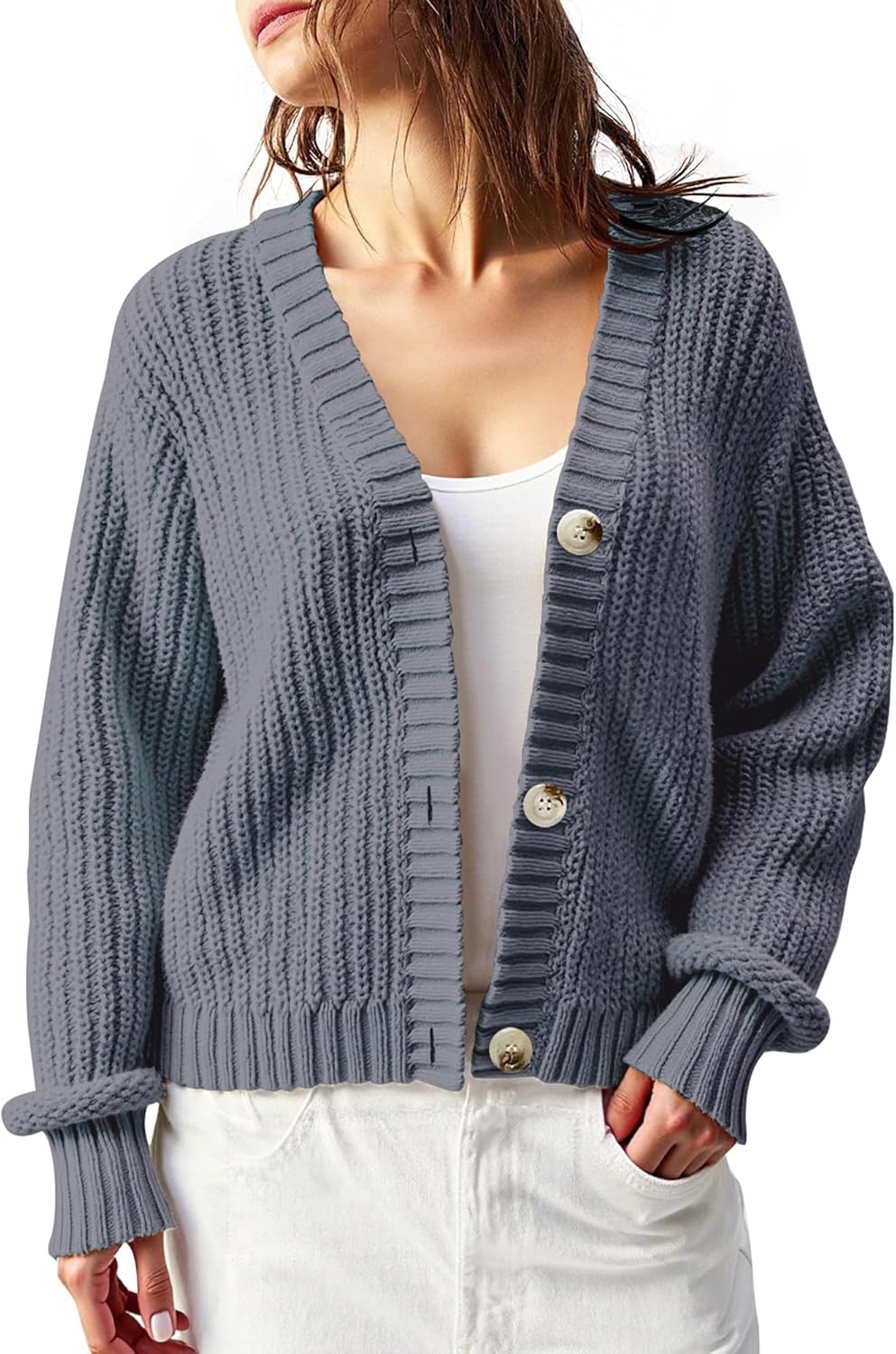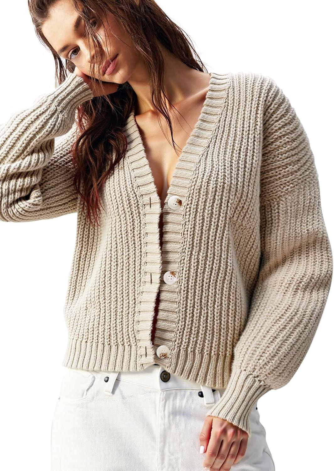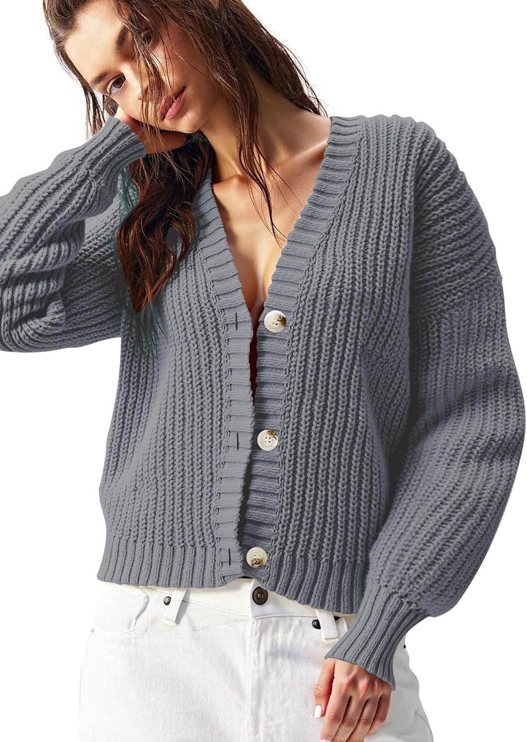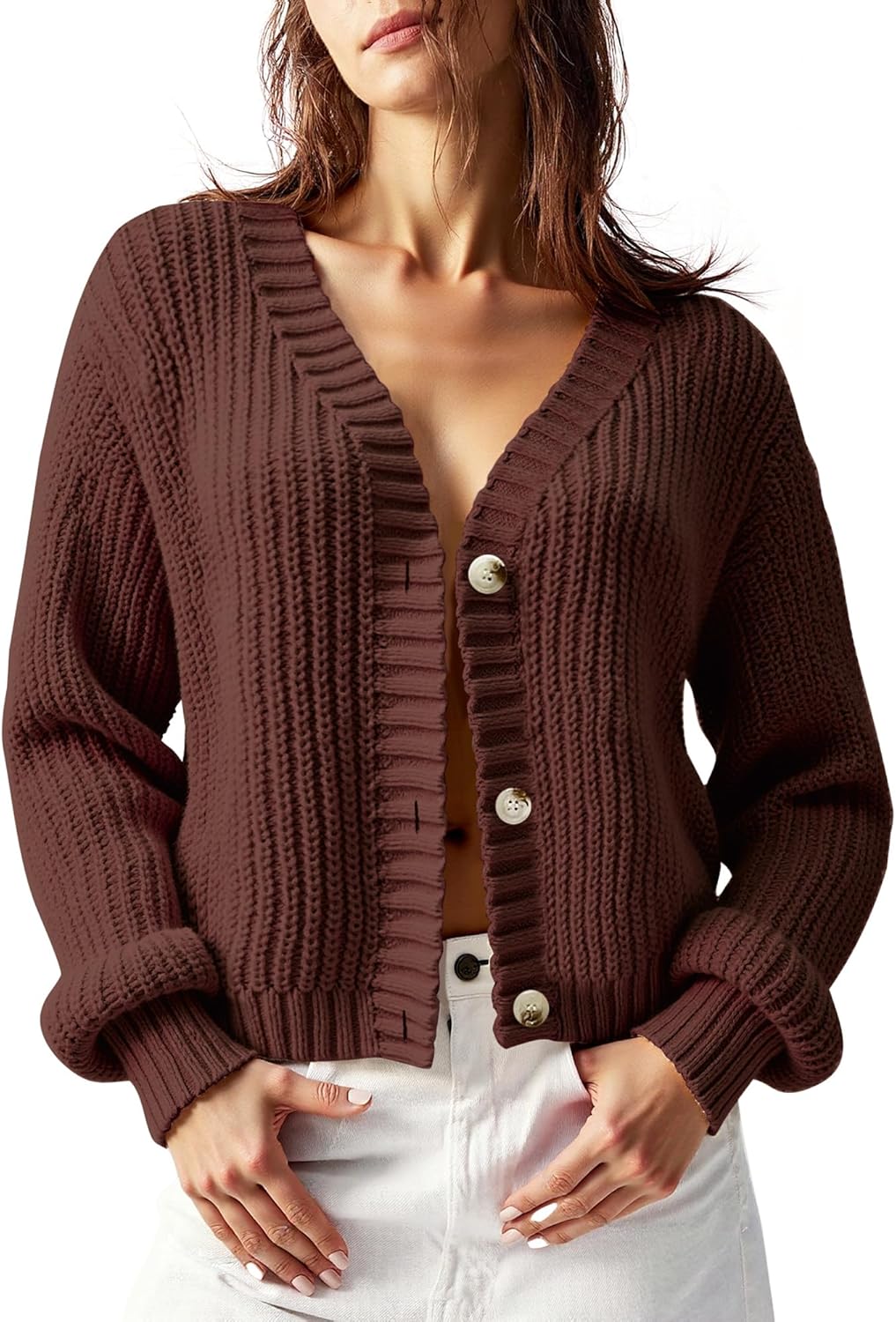 Women’s Chunky Knit Cardigan – Waffle Knit Button Down Oversized V Neck Fall Sweater for Casual Layering